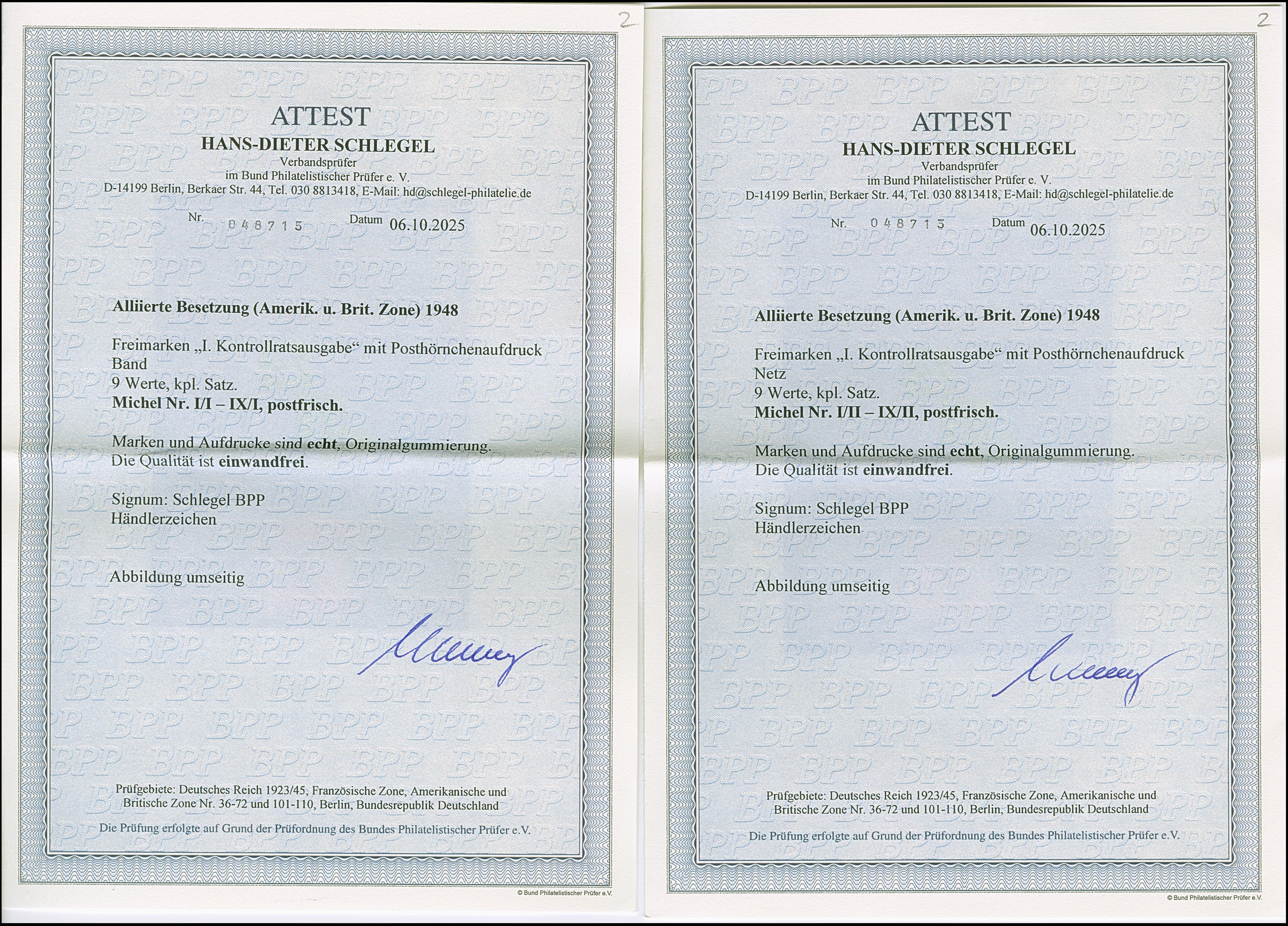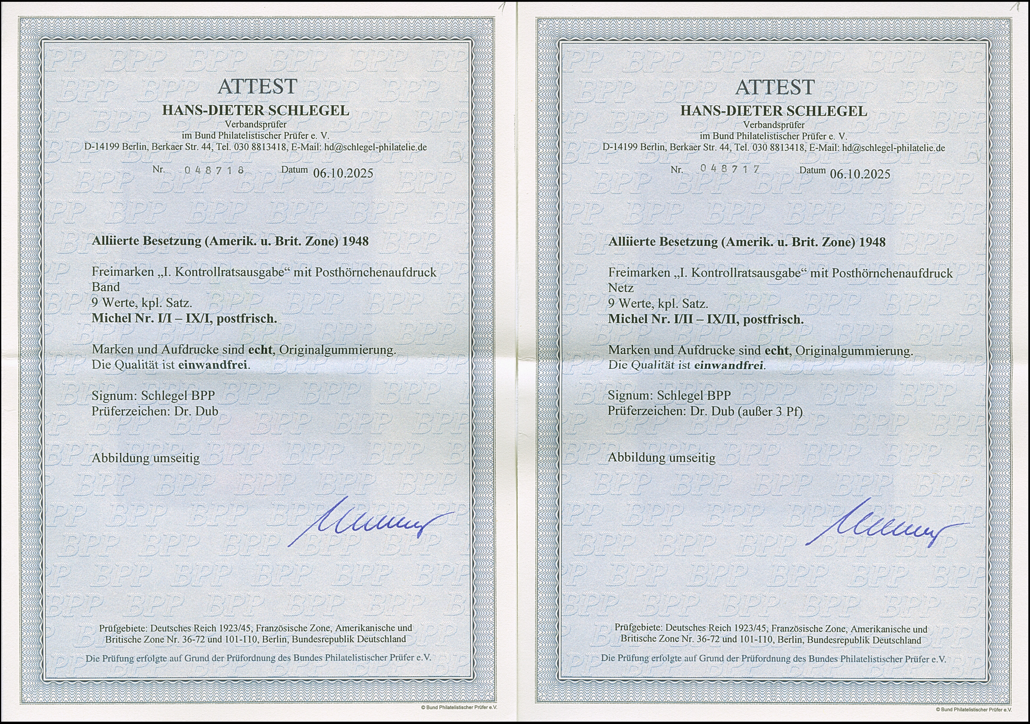 Unverausgabte Werte mit Band- und Netzaufdruck, 1-80 Pfg., postfrisch, tadellos. Signiert Schlegel BPP und Dr. Dub, 2 Fotoatteste H.-D. Schlegel BPP (2025)