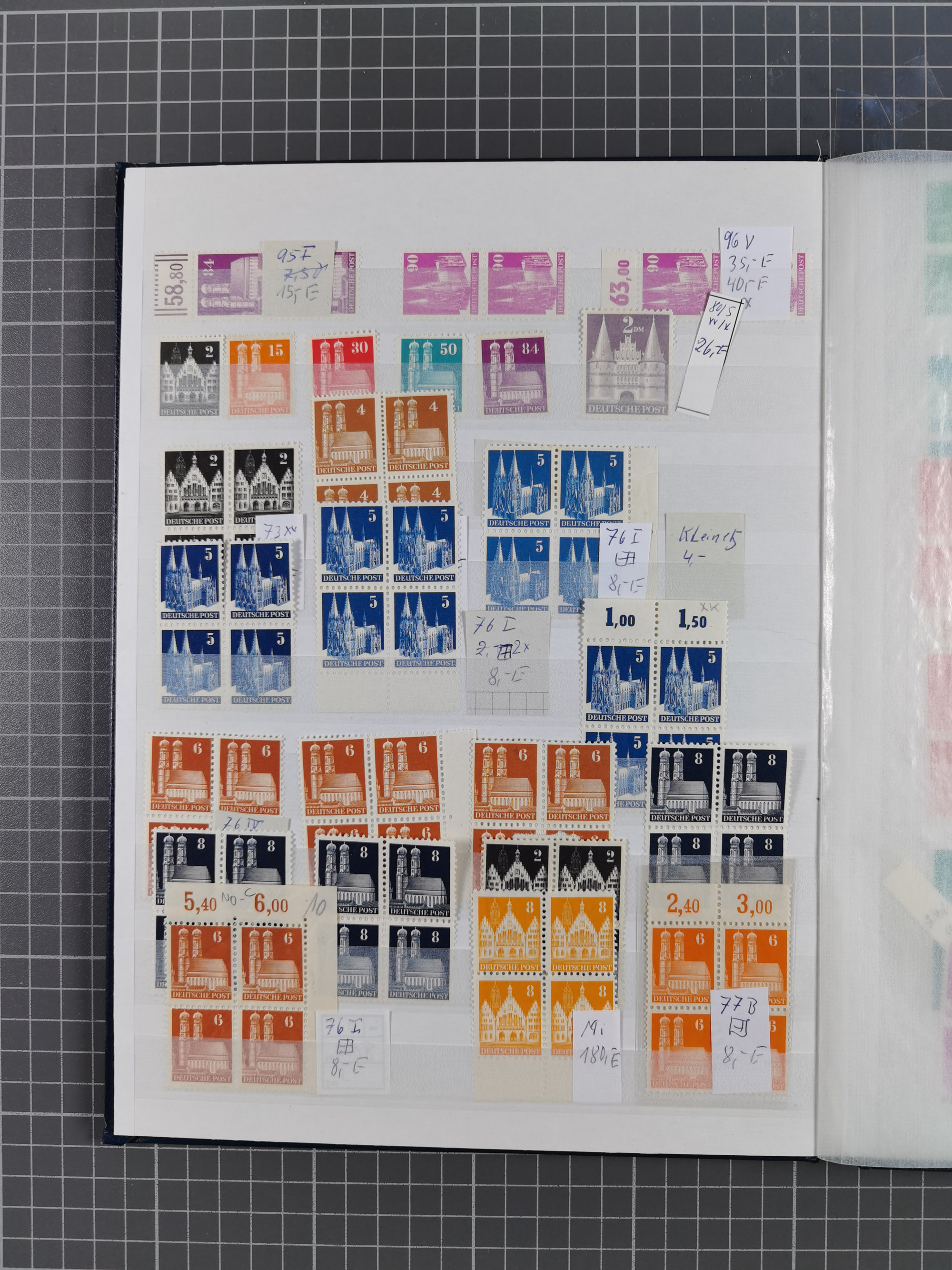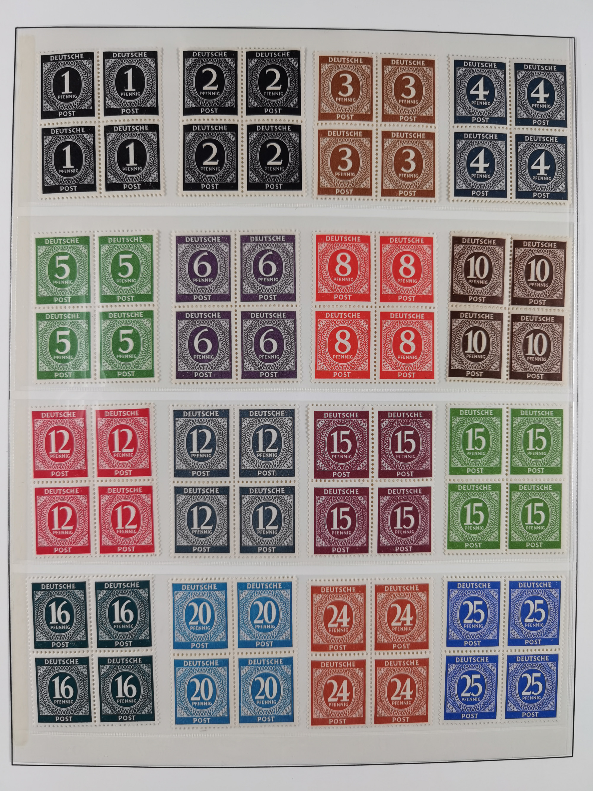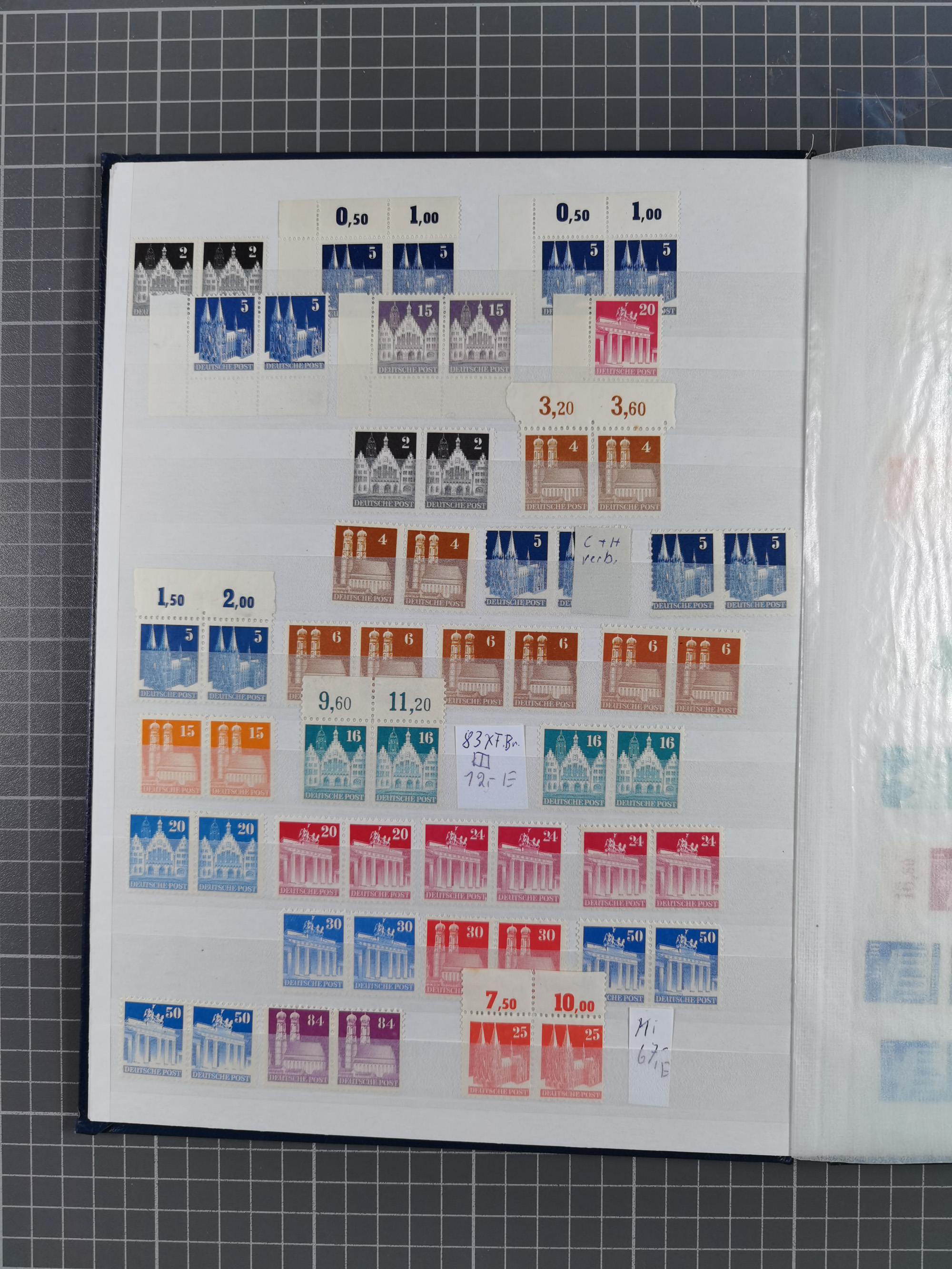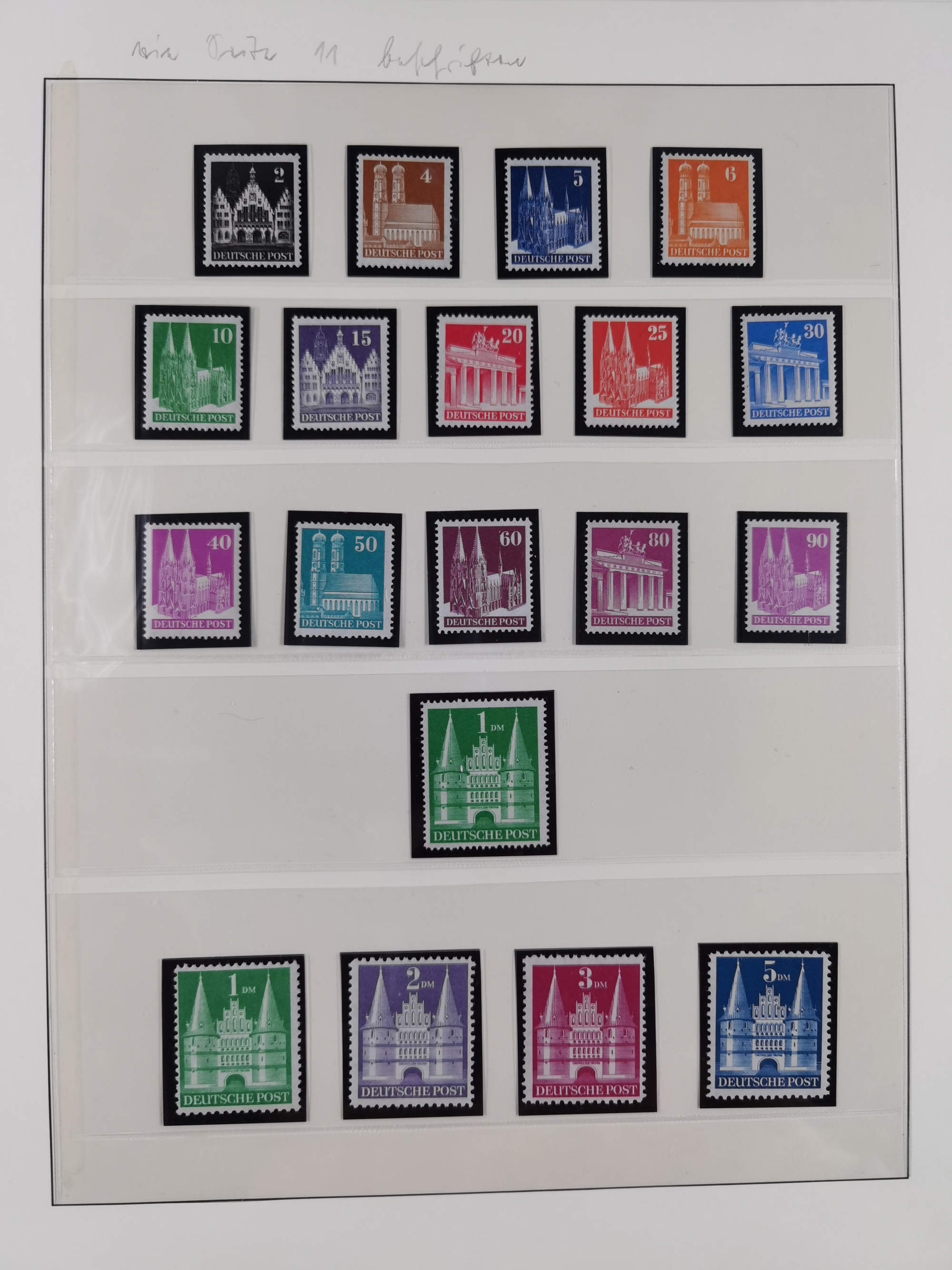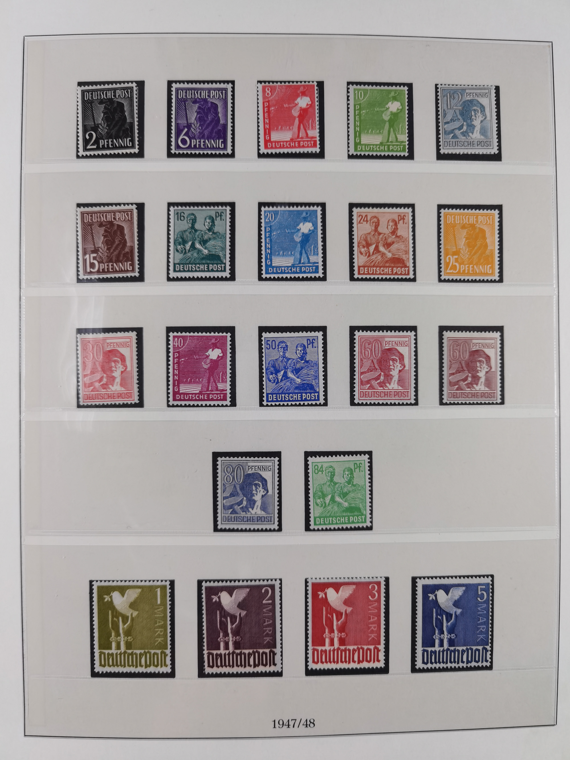 1948, meist postfrischer und gestempelter Bestand “Band/Netz” und “Bauten” mit u.a. Viererblocks, Marken mit Rändern, Bogenecken, Aufdruck-Abarten, in zwei Alben