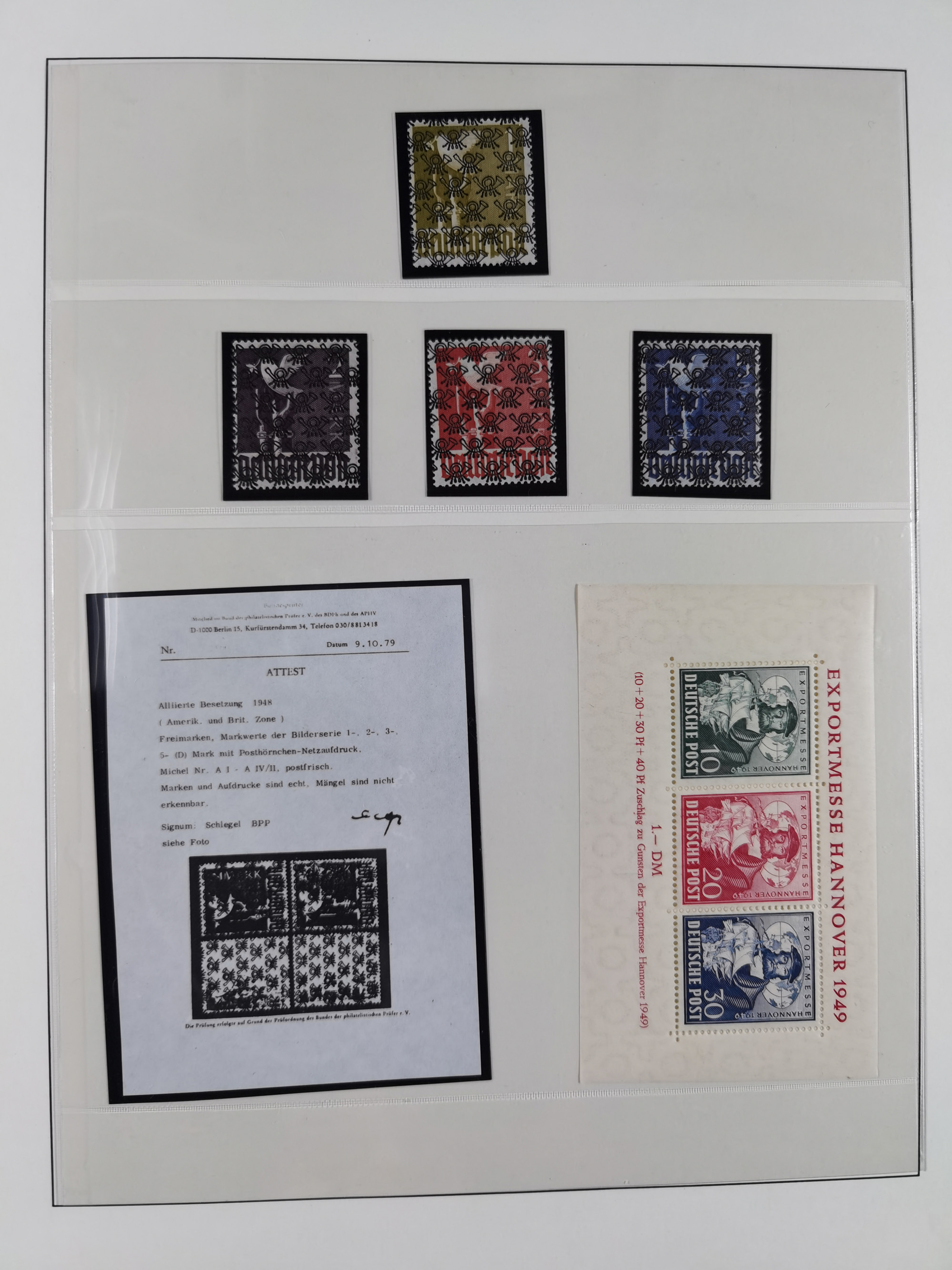 1948/49, postfrische und oft zusätzlich gestempelte Sammlung, dabei Band-und Netzaufdrucke mit unverausgabten (signiert Schlegel BPP), A Ia/I (Fotoattest H.-D. Schlegel BPP, Block 1b und c, etc.