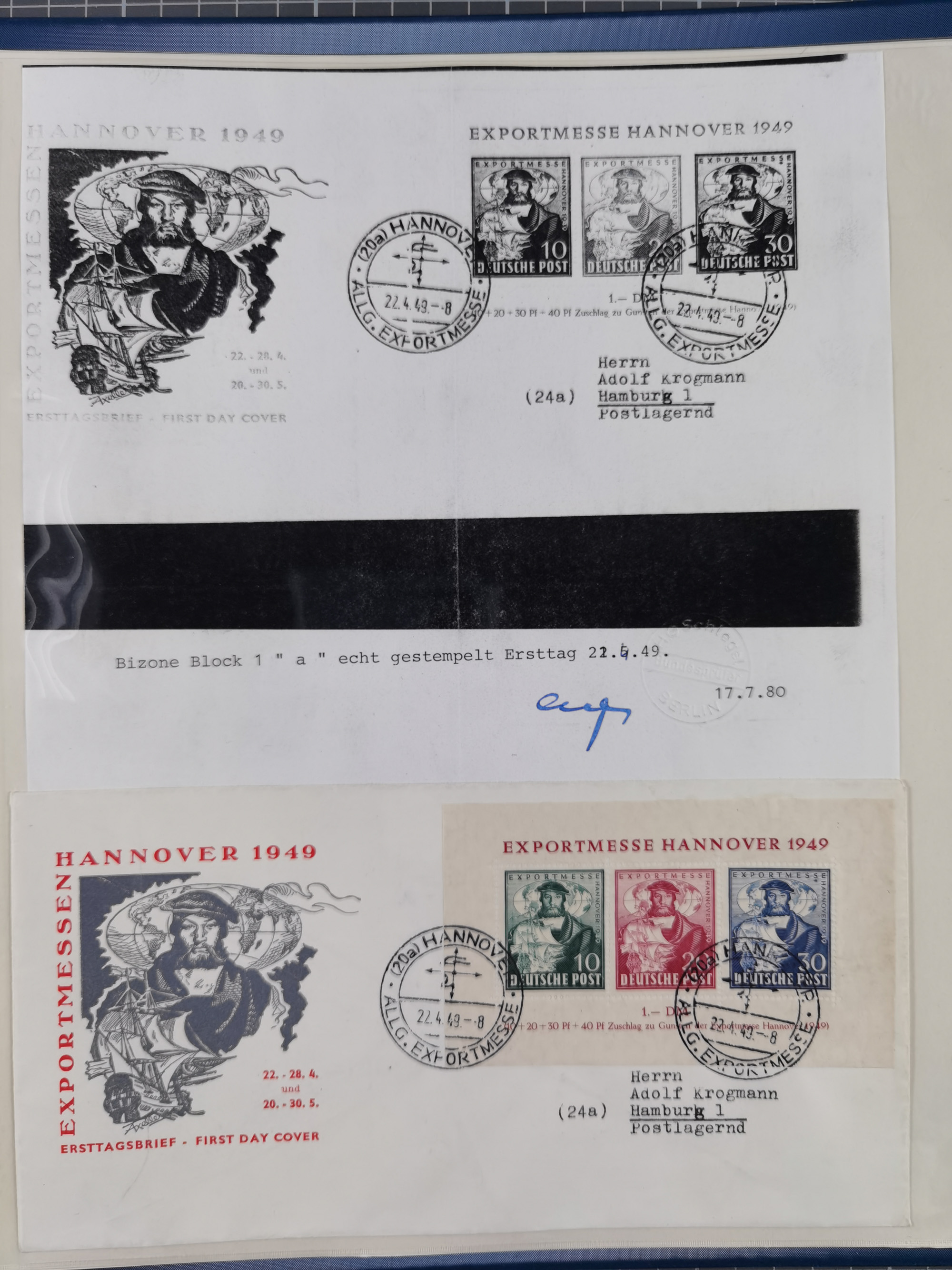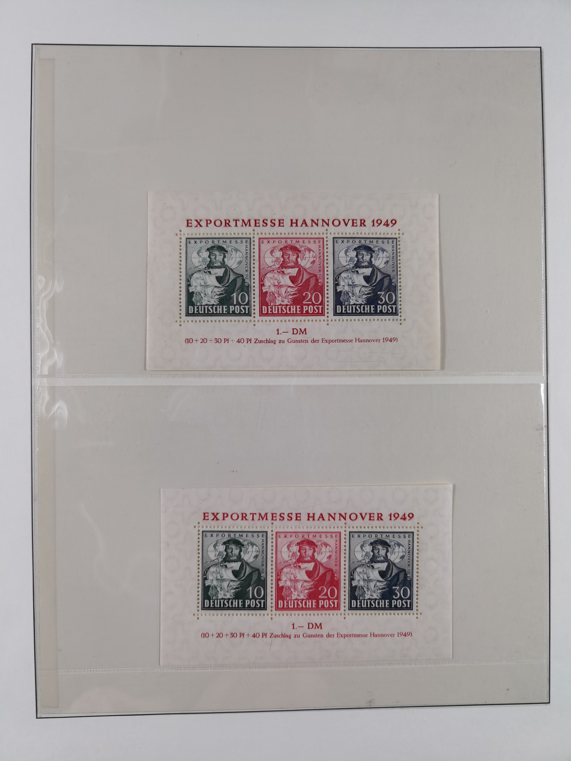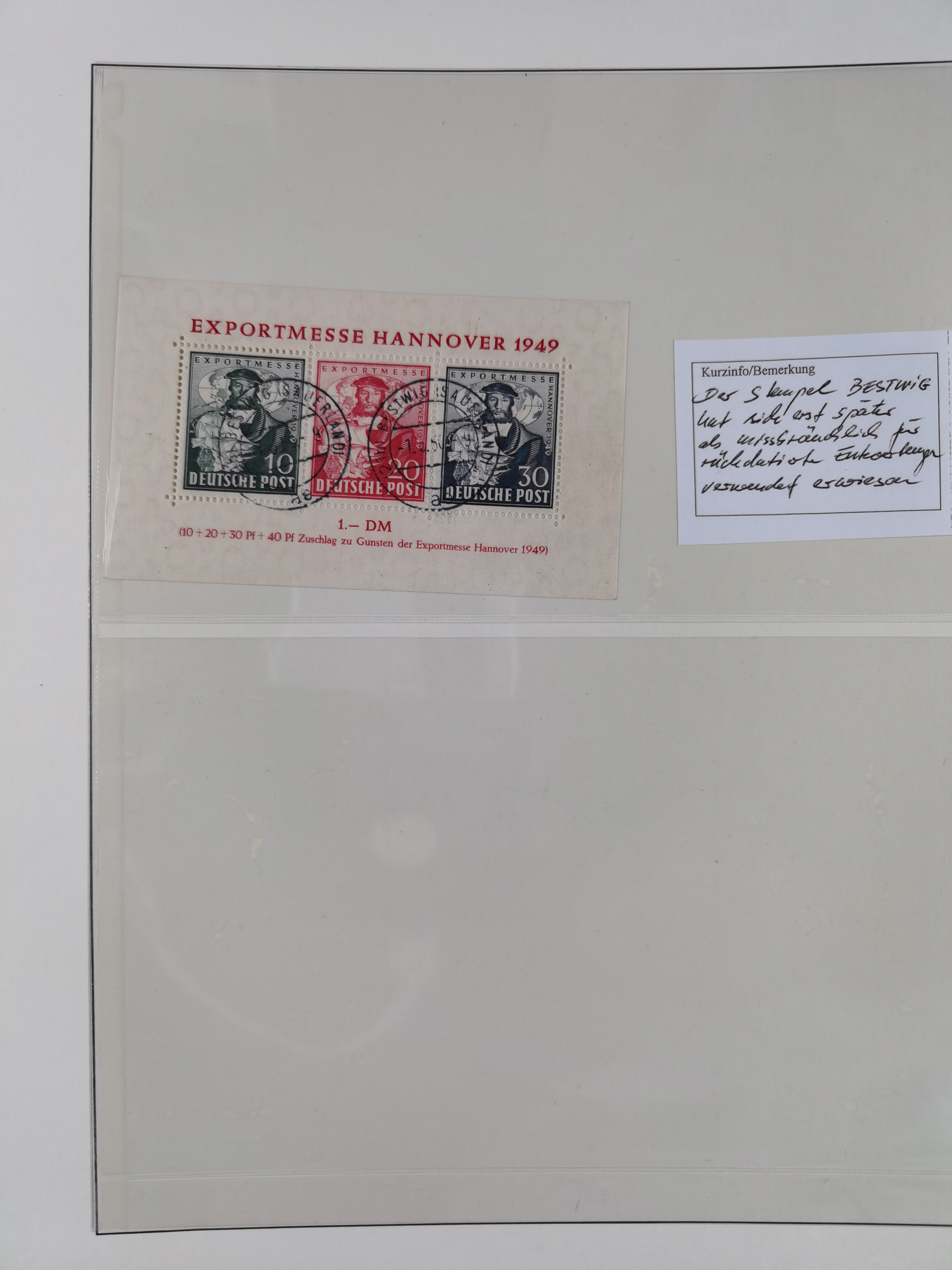 1949, Exportmesse Hannover-Block mit 30 Pfg. dunkelgrünlichgraublau, postfrisch und in einwandfreier Erhaltung, dreifach signiert Schlegel BPP mit Fotoattest (1995)