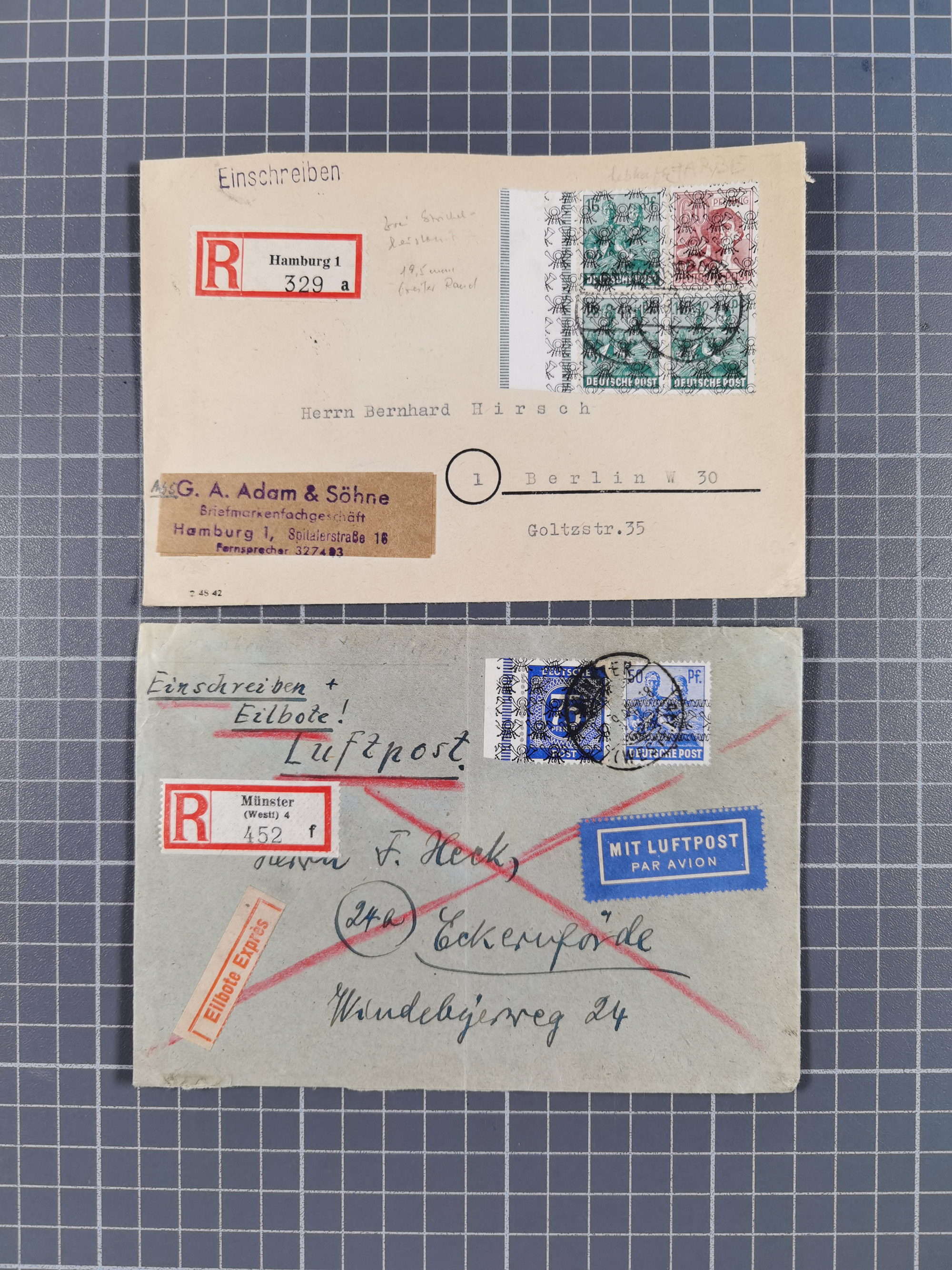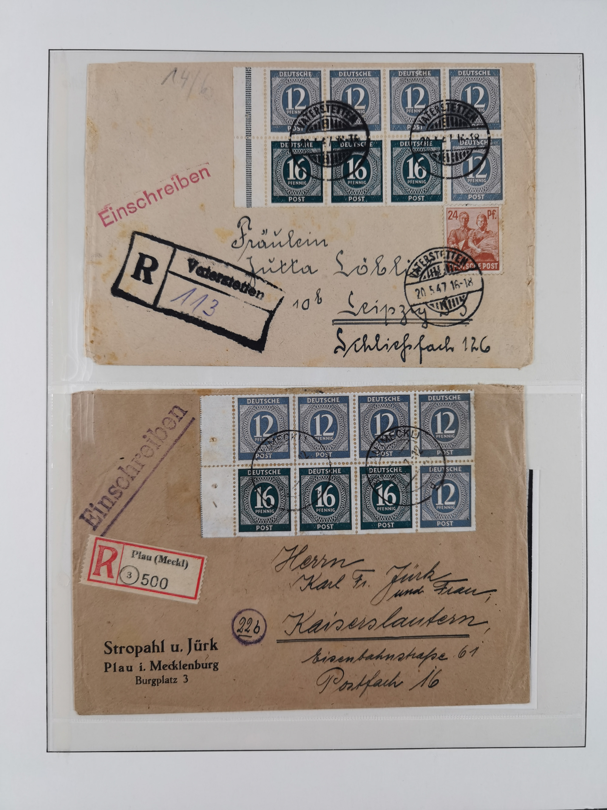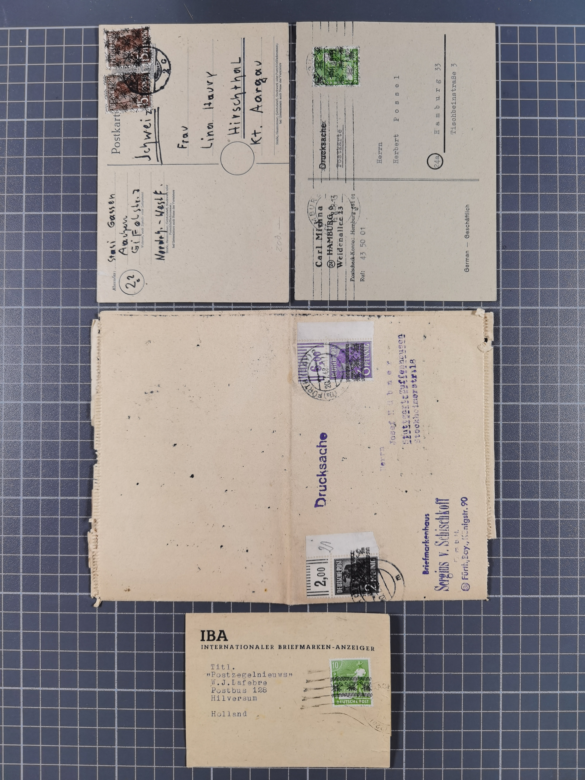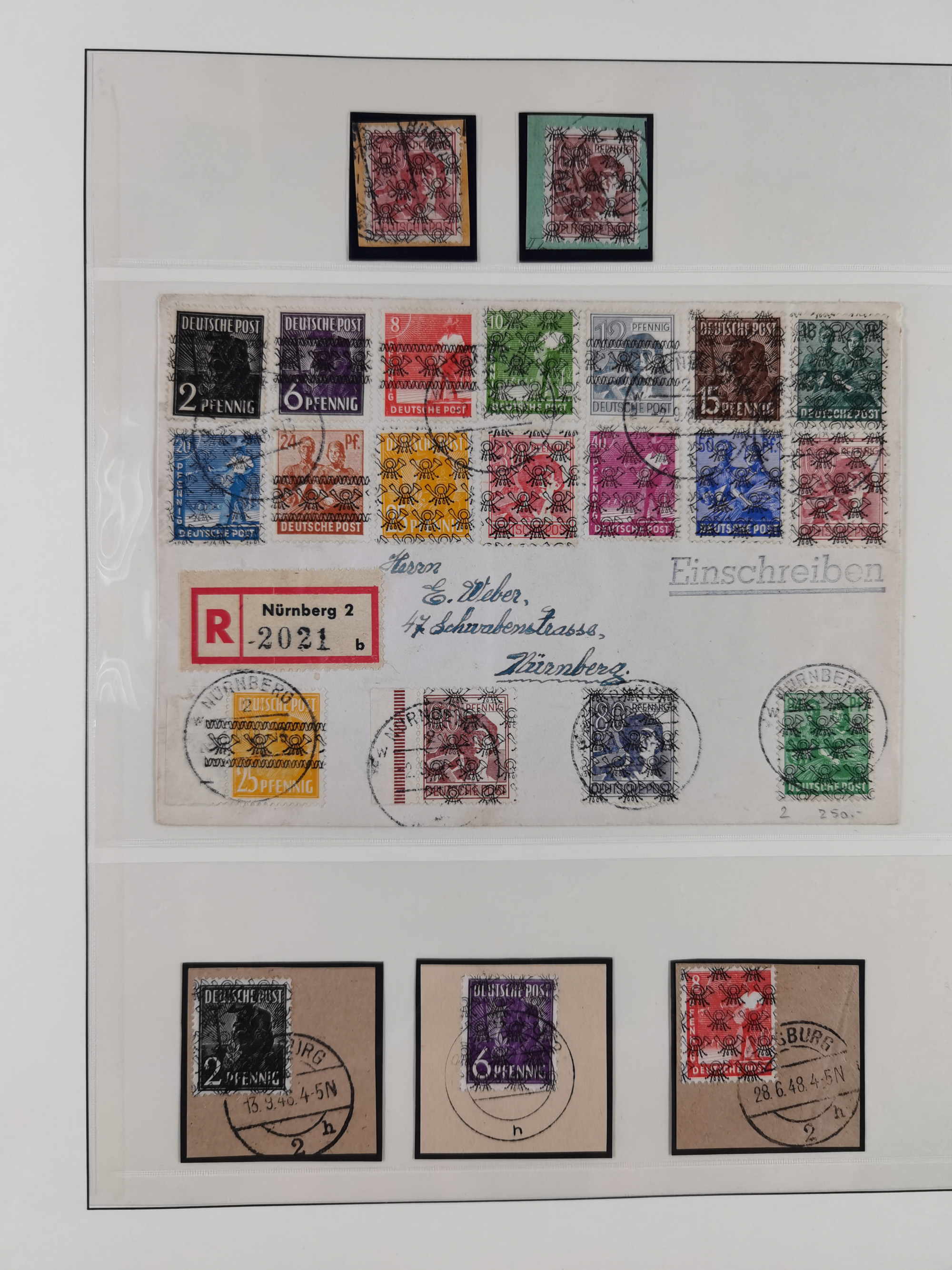 1948, über 120 Briefe und Karten mit Band/Netz-Frankaturen inkl. vieler Einzel- und Mehrfachfrankaturen, dabei bessere Frankaturen, R-Briefe, sieben JEIA-Briefe inkl. MeF Mi.-Nr. 39II (15) und MEF Mi.-Nr. 45I (6), Mi.-Nr. 37I MEF (18), Mi.-Nr. 48I MEF (3) auf Eilboten-Brief nach Basel und Mi.-Nr. 55I MEF (sign. Schlegel BPP)
