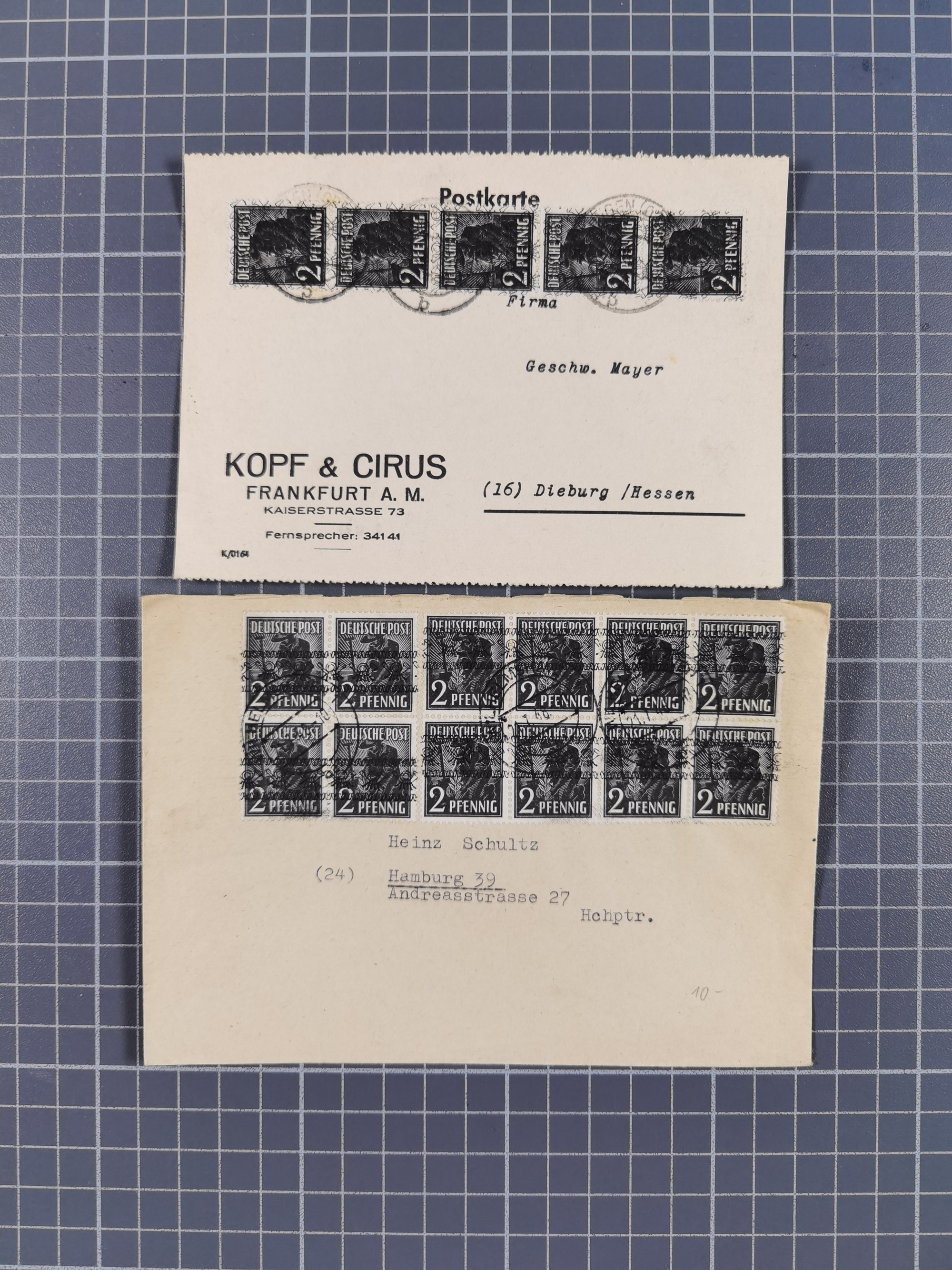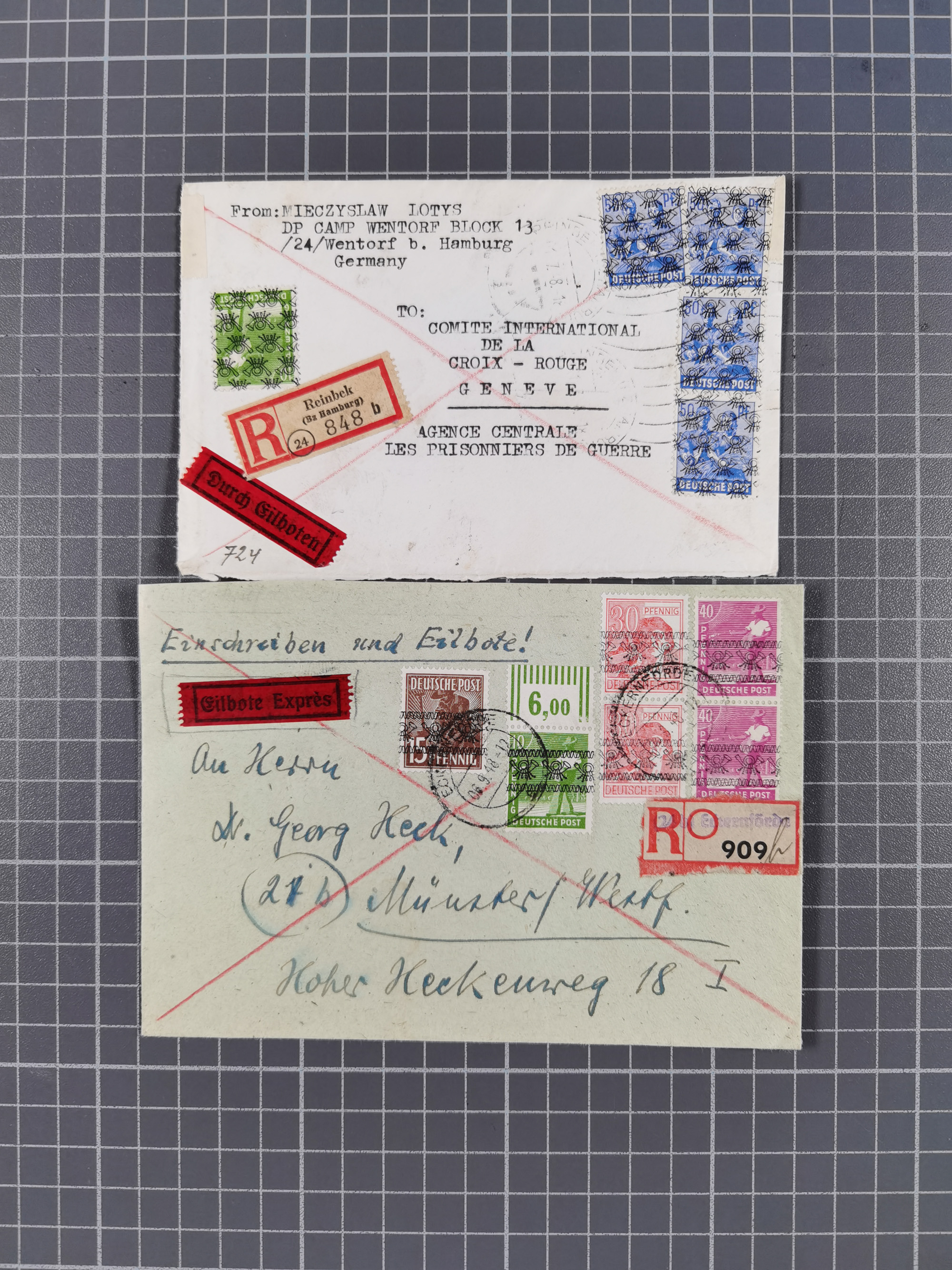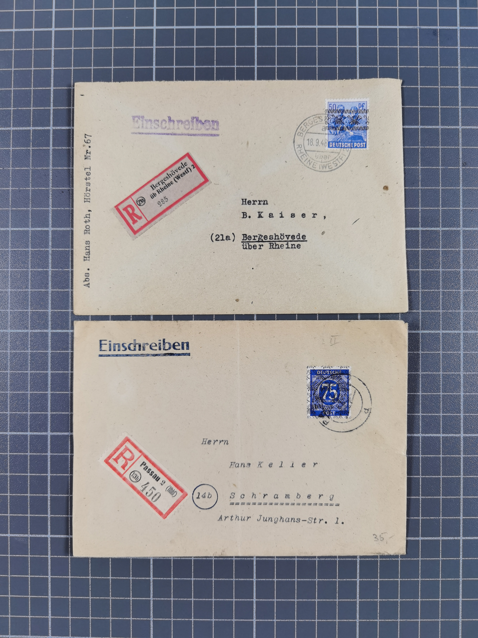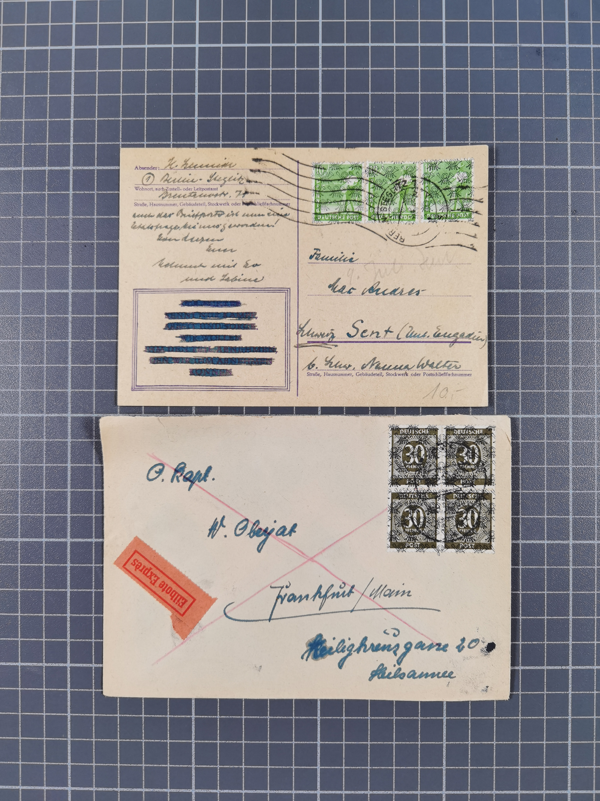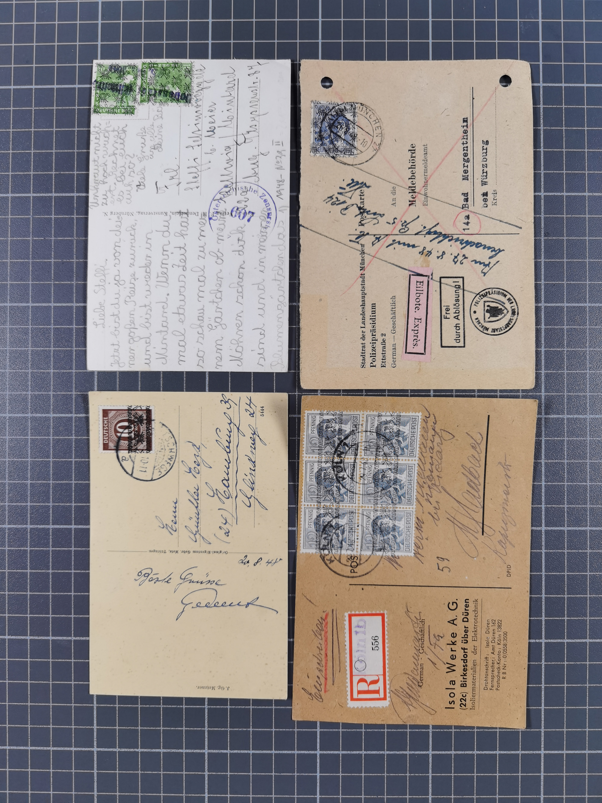 1948, über 120 Briefe und Karten mit Band/Netz-Frankaturen inkl. vieler Einzel- und Mehrfachfrankaturen, dabei bessere Frankaturen, R-Briefe, sieben JEIA-Briefe inkl. MeF Mi.-Nr. 39II (15) und MEF Mi.-Nr. 45I (6), Mi.-Nr. 37I MEF (18), Mi.-Nr. 48I MEF (3) auf Eilboten-Brief nach Basel und Mi.-Nr. 55I MEF (sign. Schlegel BPP)