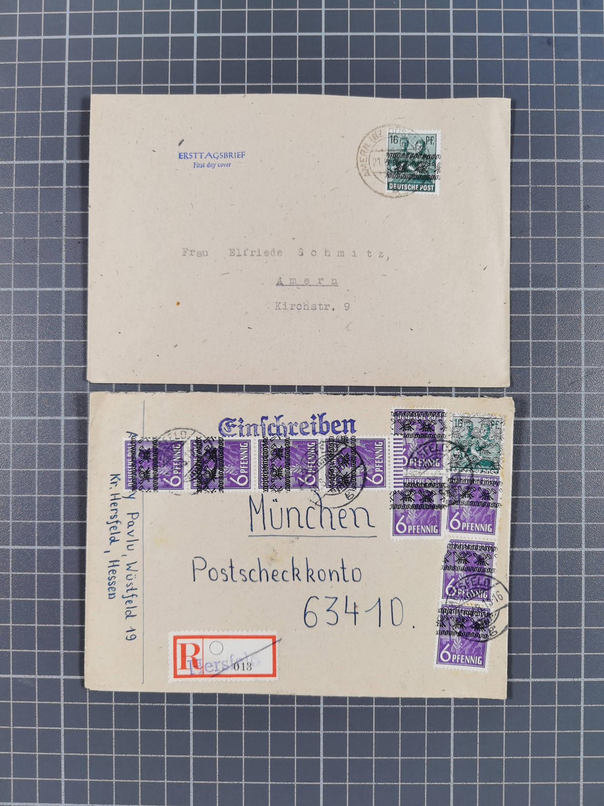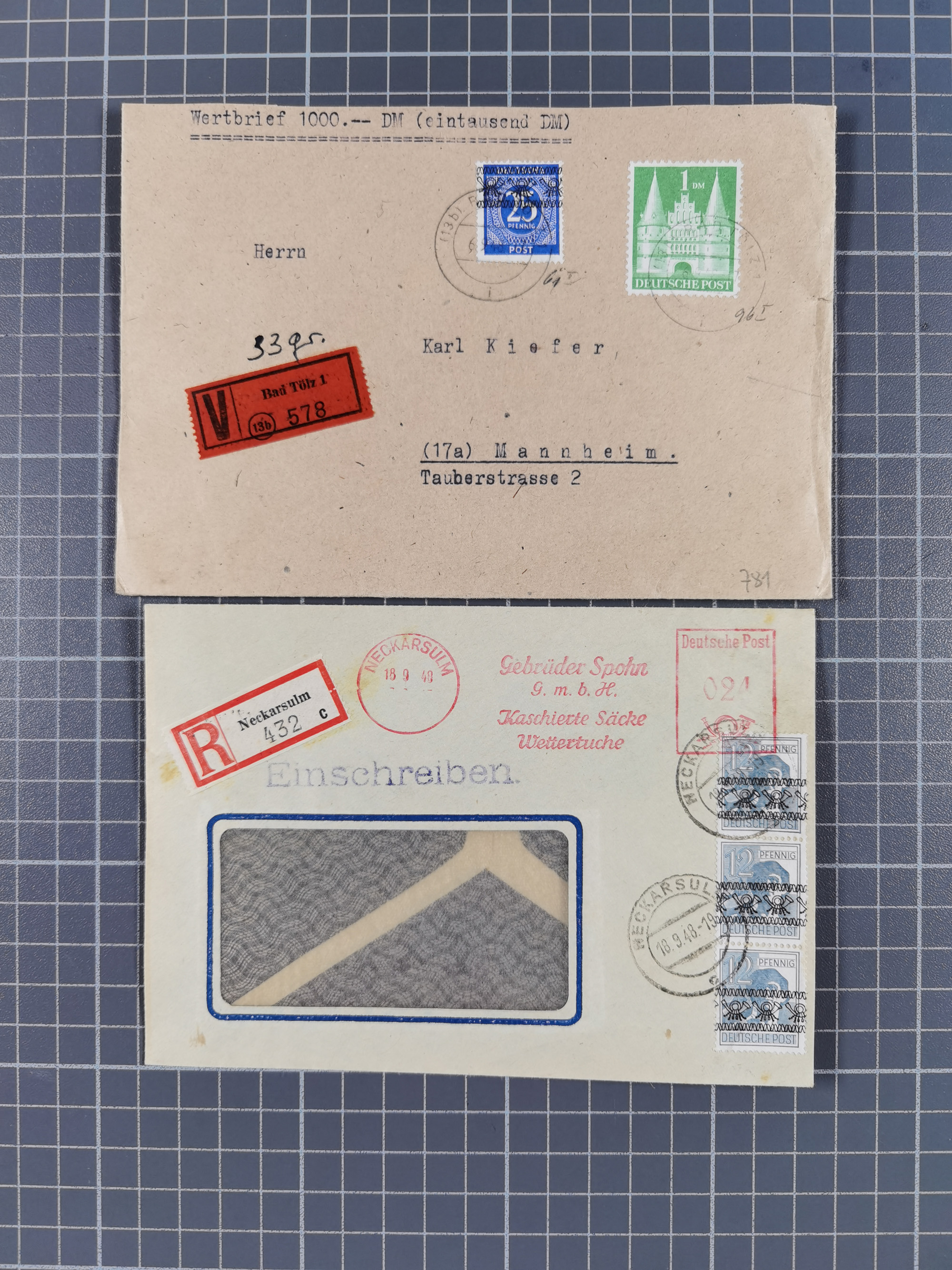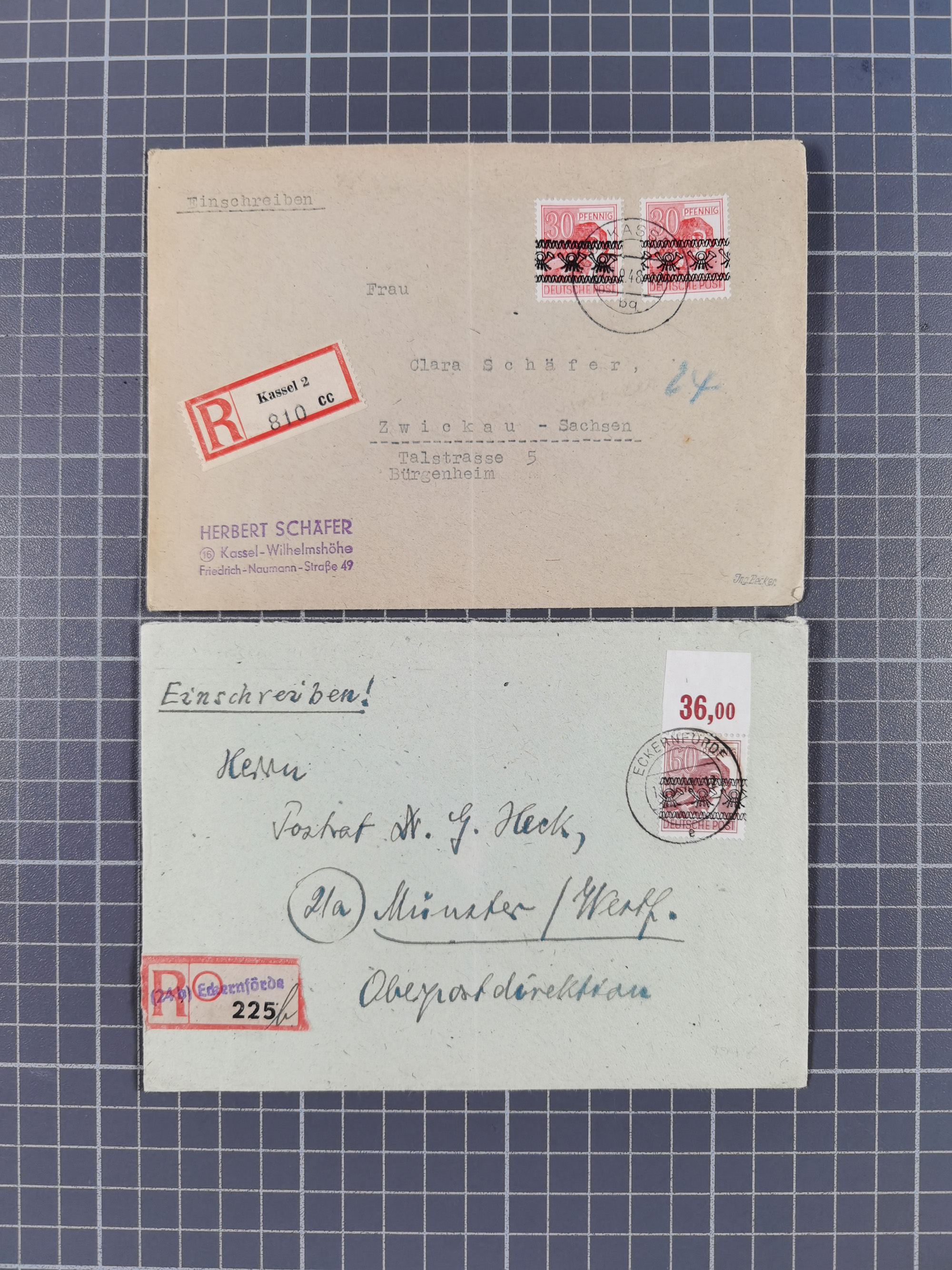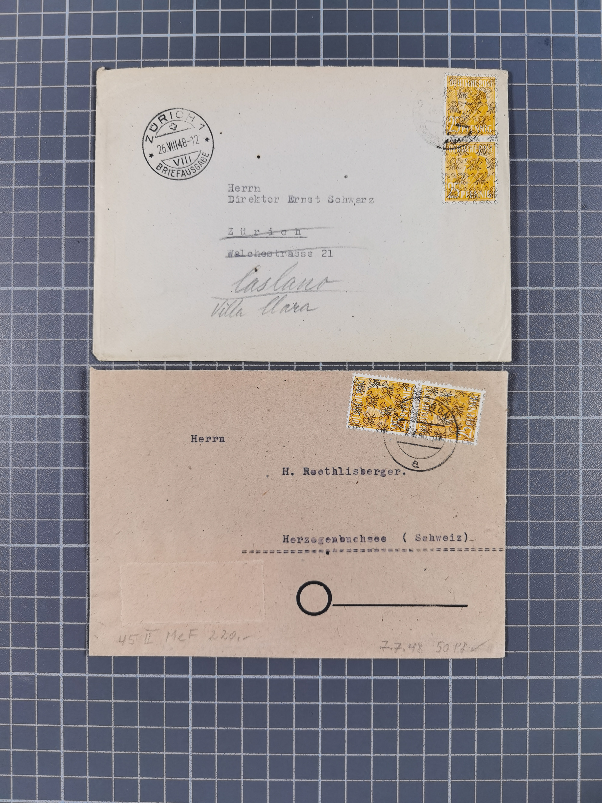 1948, über 120 Briefe und Karten mit Band/Netz-Frankaturen inkl. vieler Einzel- und Mehrfachfrankaturen, dabei bessere Frankaturen, R-Briefe, sieben JEIA-Briefe inkl. MeF Mi.-Nr. 39II (15) und MEF Mi.-Nr. 45I (6), Mi.-Nr. 37I MEF (18), Mi.-Nr. 48I MEF (3) auf Eilboten-Brief nach Basel und Mi.-Nr. 55I MEF (sign. Schlegel BPP)