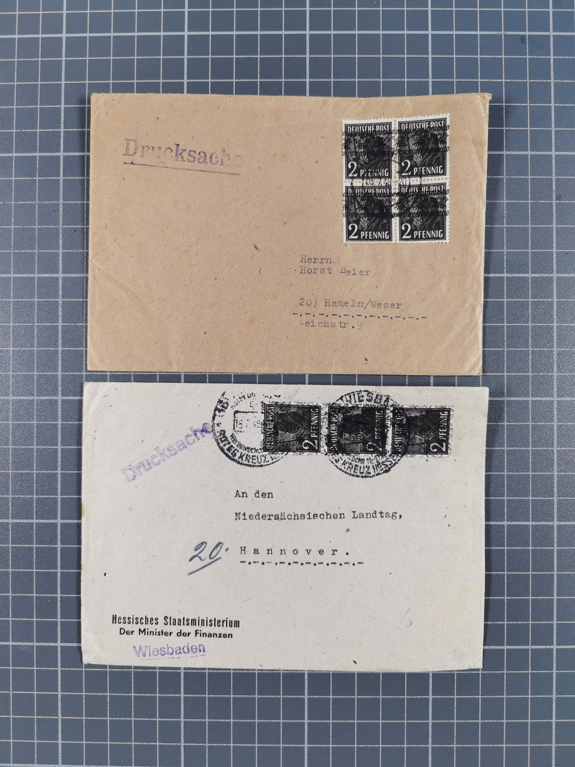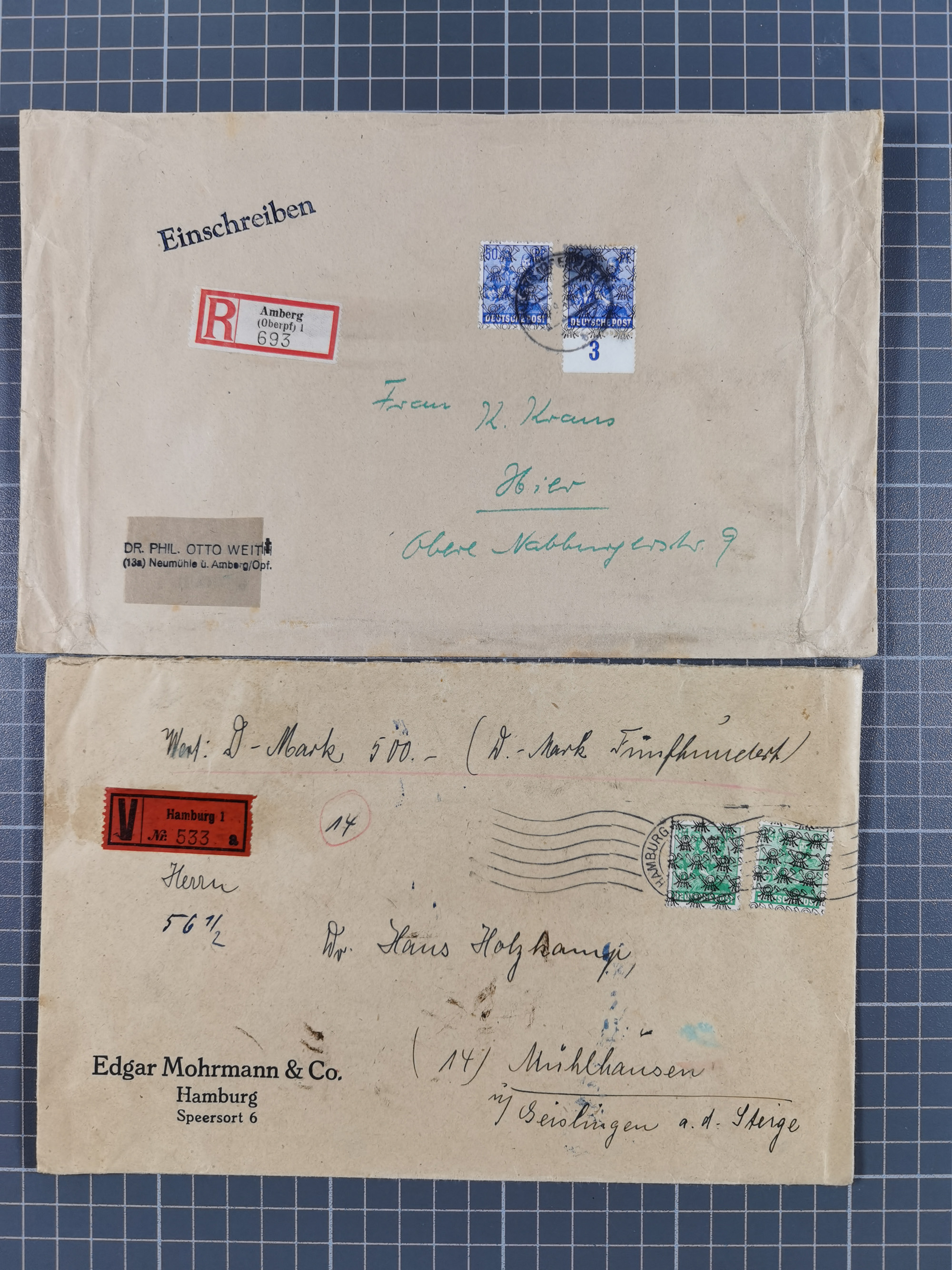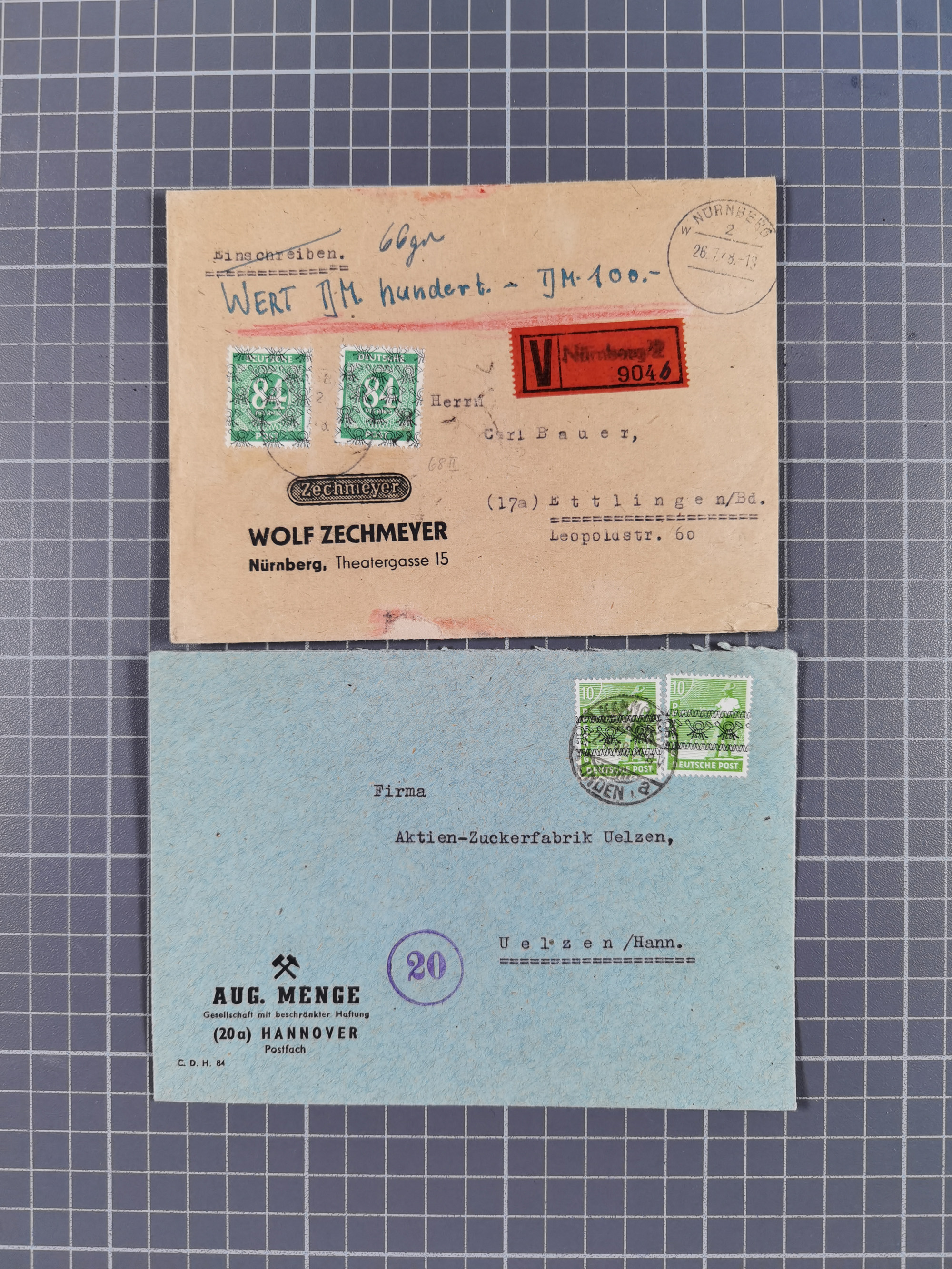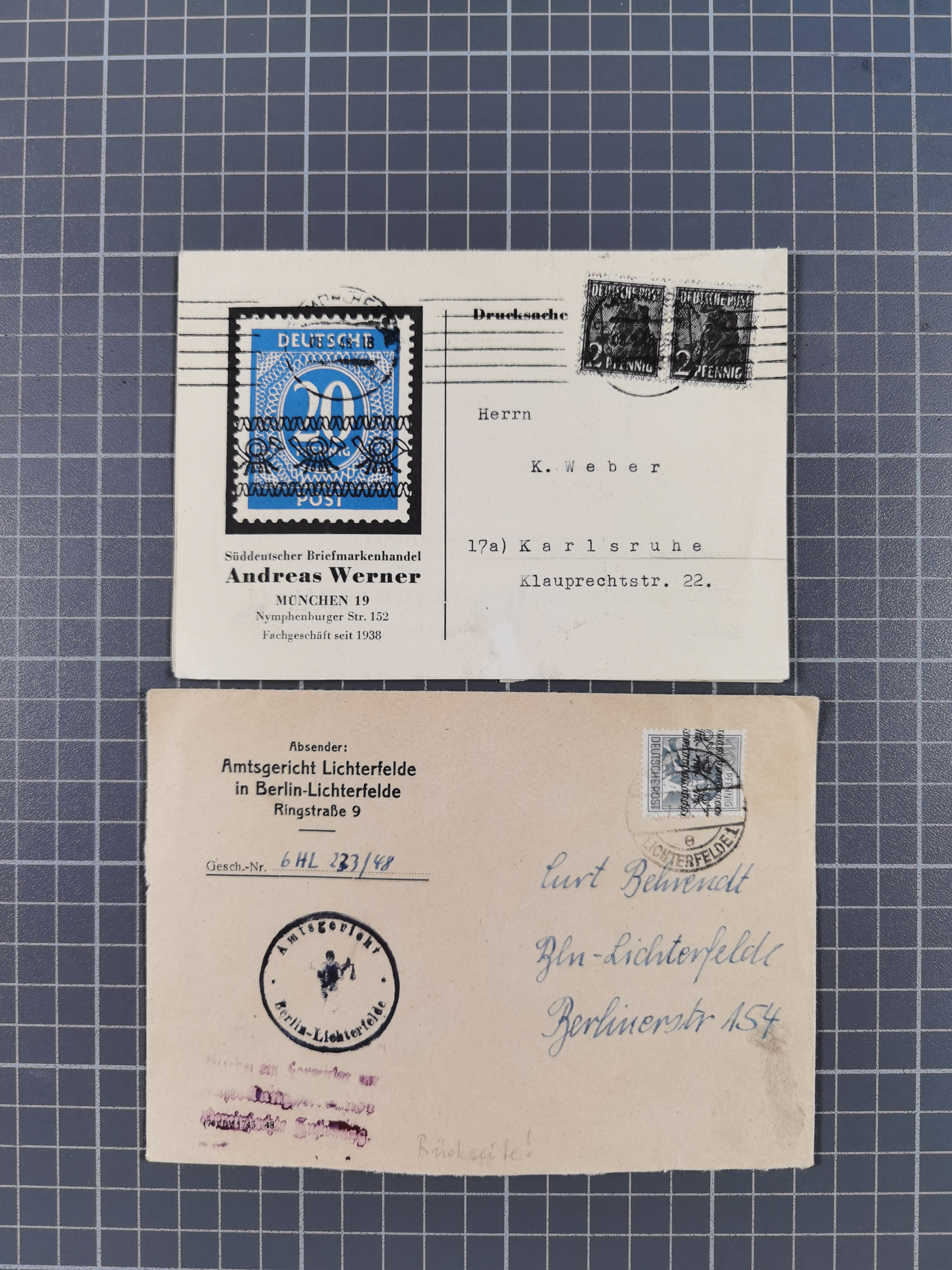 1948, über 120 Briefe und Karten mit Band/Netz-Frankaturen inkl. vieler Einzel- und Mehrfachfrankaturen, dabei bessere Frankaturen, R-Briefe, sieben JEIA-Briefe inkl. MeF Mi.-Nr. 39II (15) und MEF Mi.-Nr. 45I (6), Mi.-Nr. 37I MEF (18), Mi.-Nr. 48I MEF (3) auf Eilboten-Brief nach Basel und Mi.-Nr. 55I MEF (sign. Schlegel BPP)