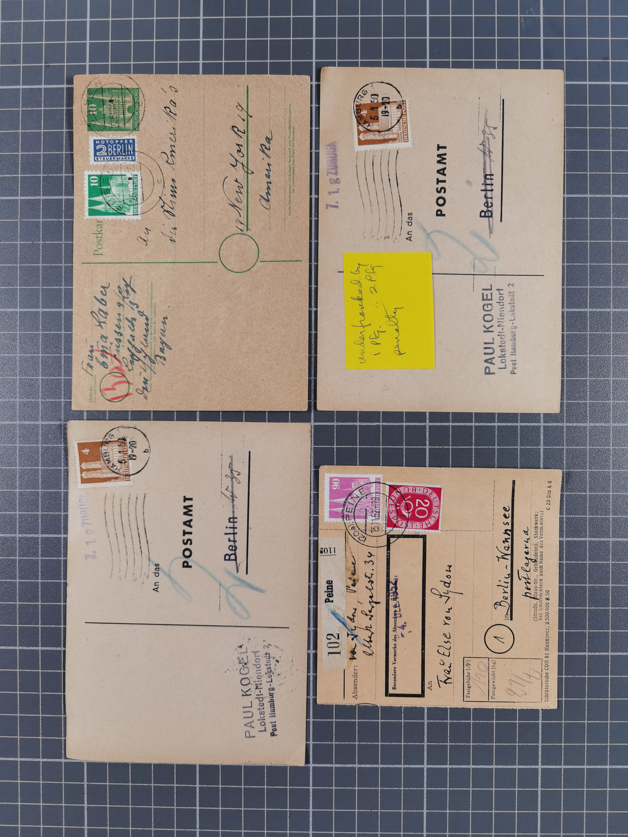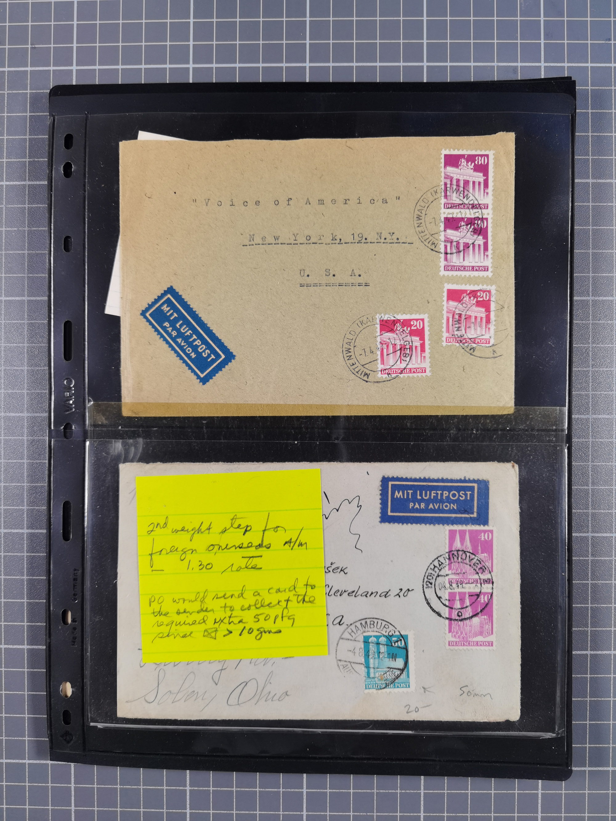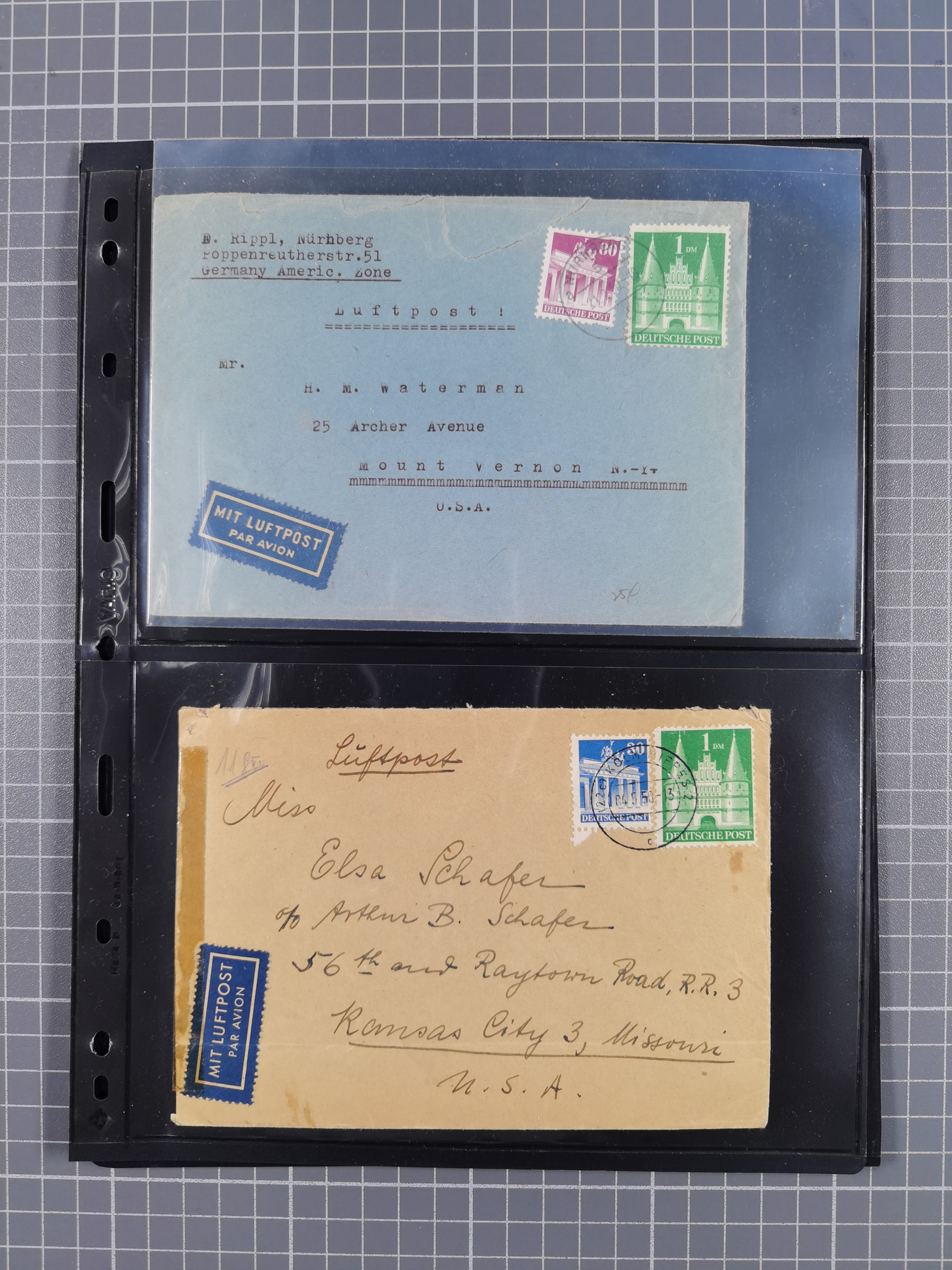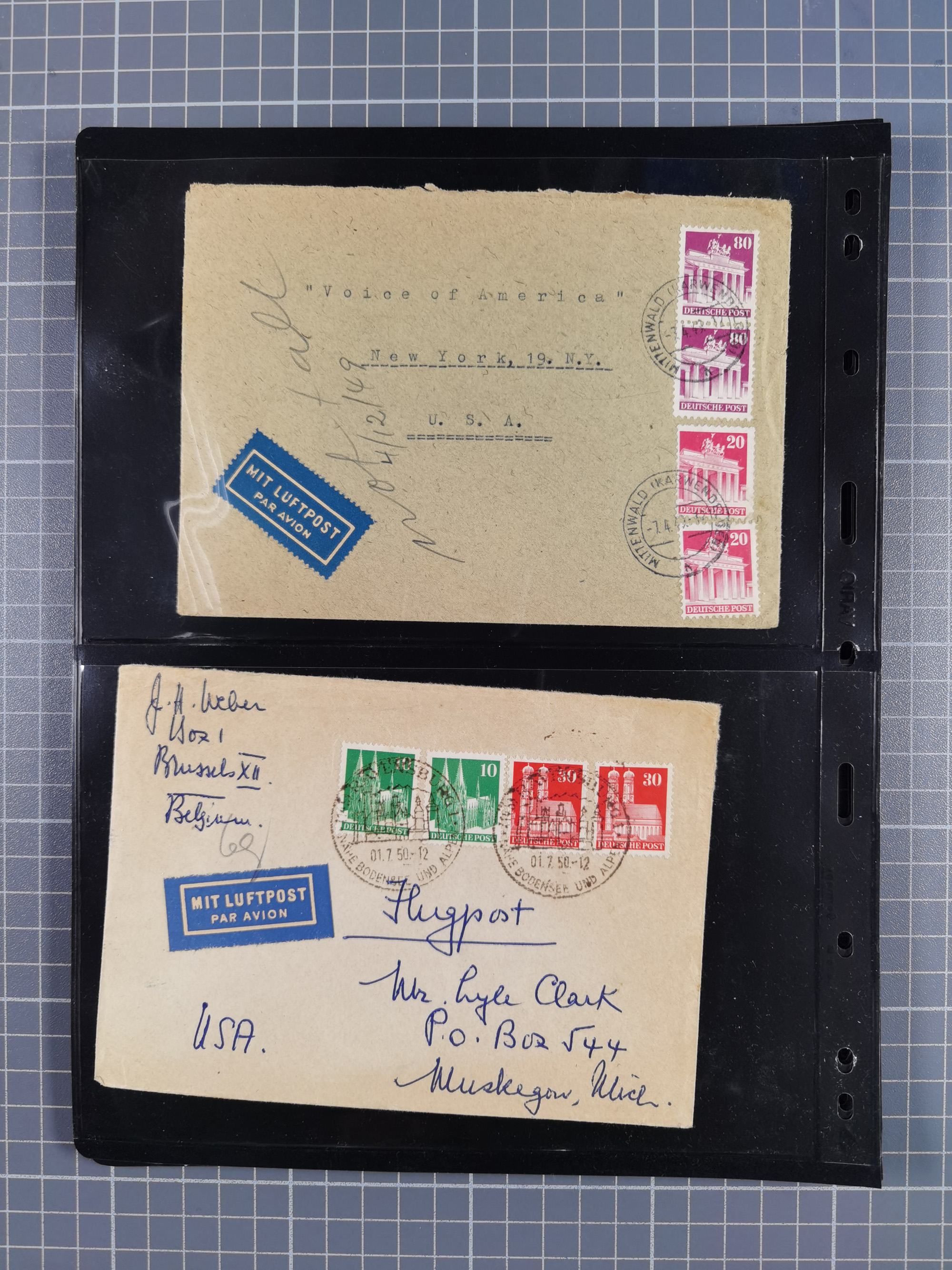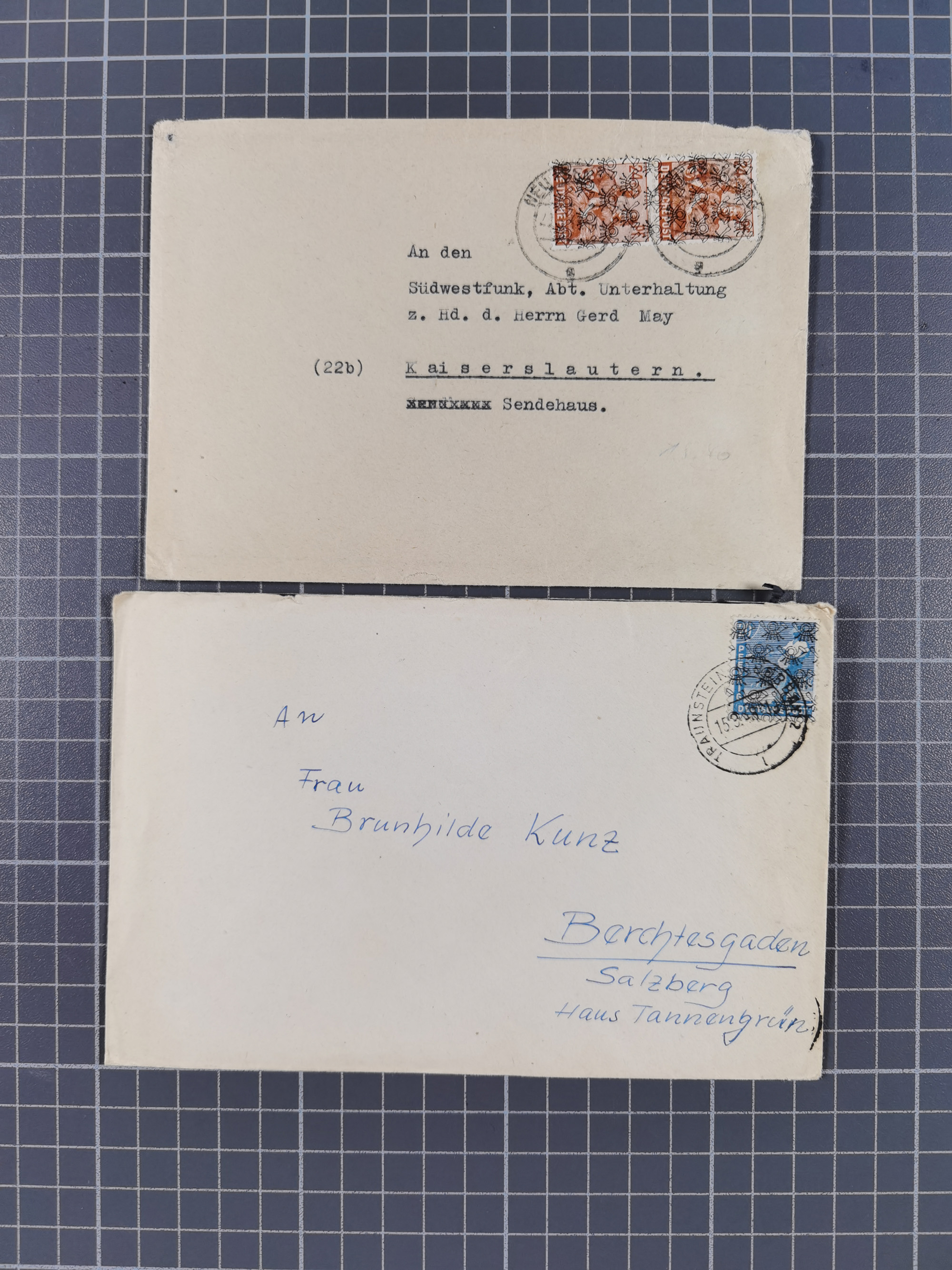 1948/49, ca. 80 Briefe,Karten und Ganzsachen mit Bauten-Frankaturen, dabei oft Auslandspost mit vielen Luftpost-Frankaturen in die USA mit u.a. Mi.-Nr. 97wg im waagerechten Paar auf Luftpost-Brief, senkrechtes Paar Mi.-Nr. 98+90 auf großformatigem Luftpostbrief und Mi.-Nr. 100+93 auf großformatigem Luftpostbrief in die USA. Zum Teil die Briefe mit Randfehlern, vieles aus dem Bedarf