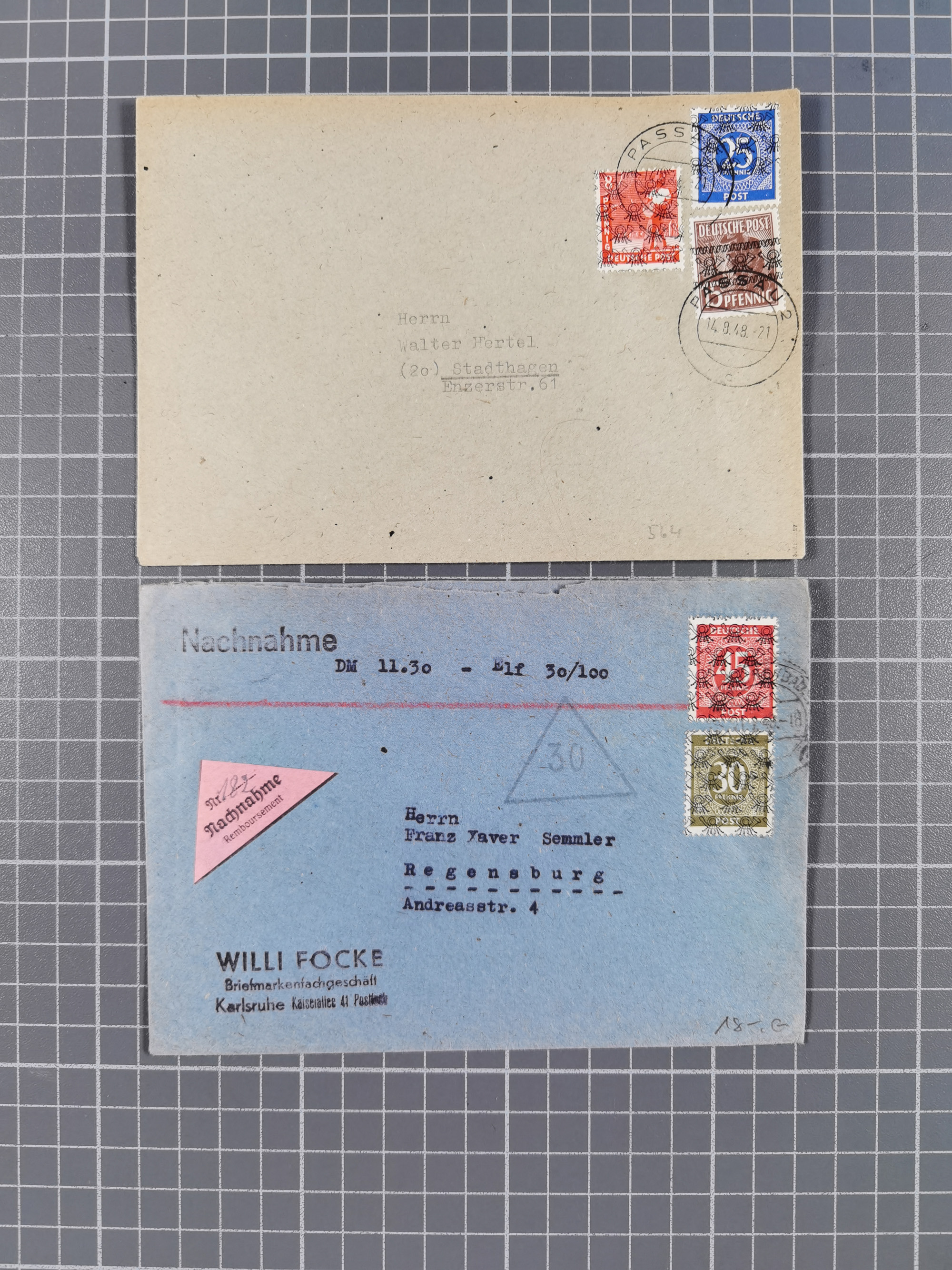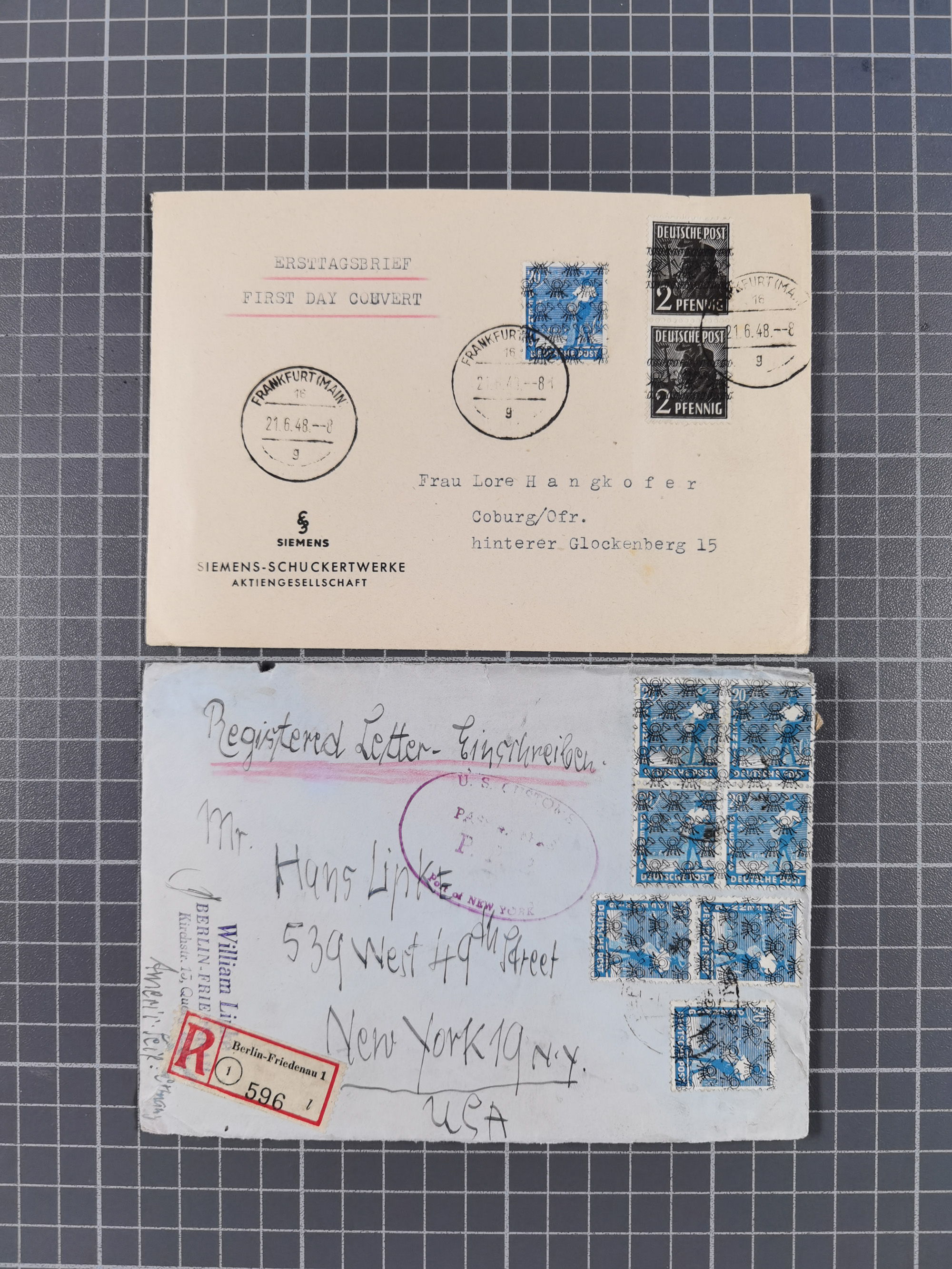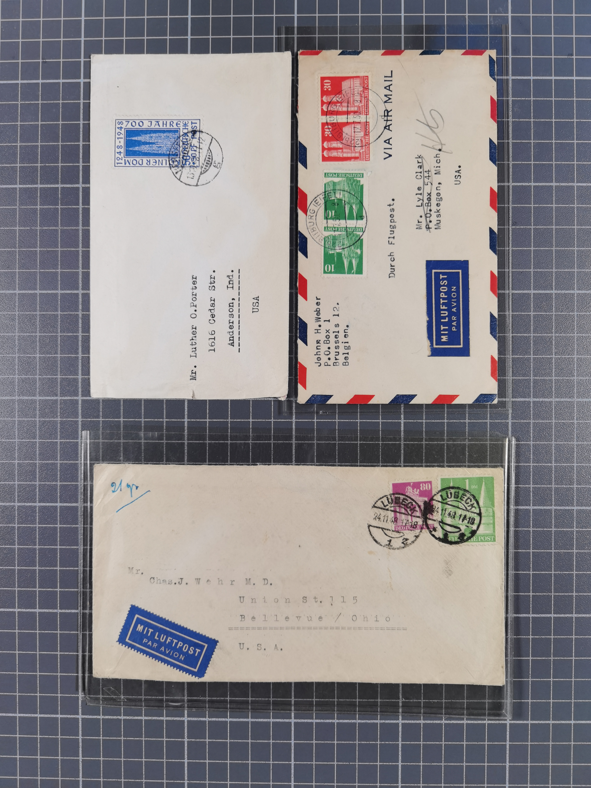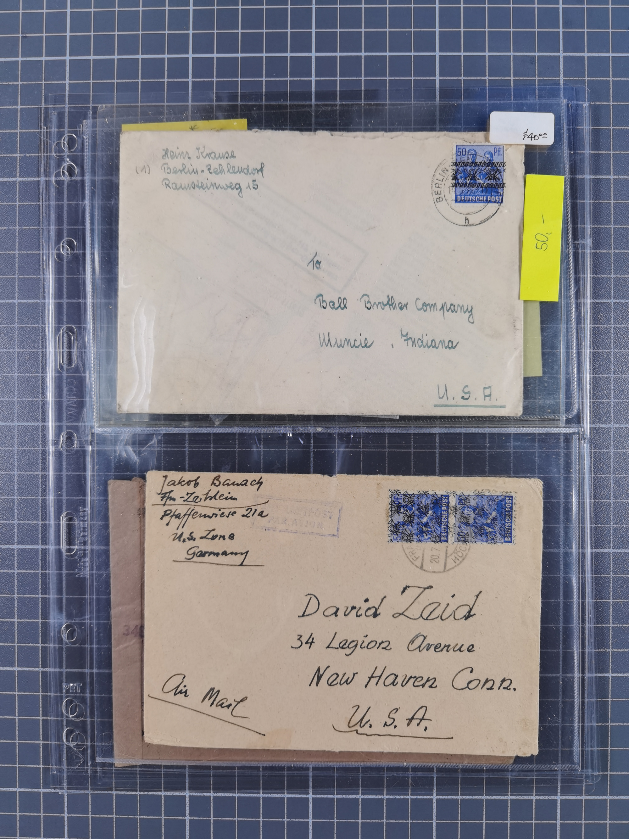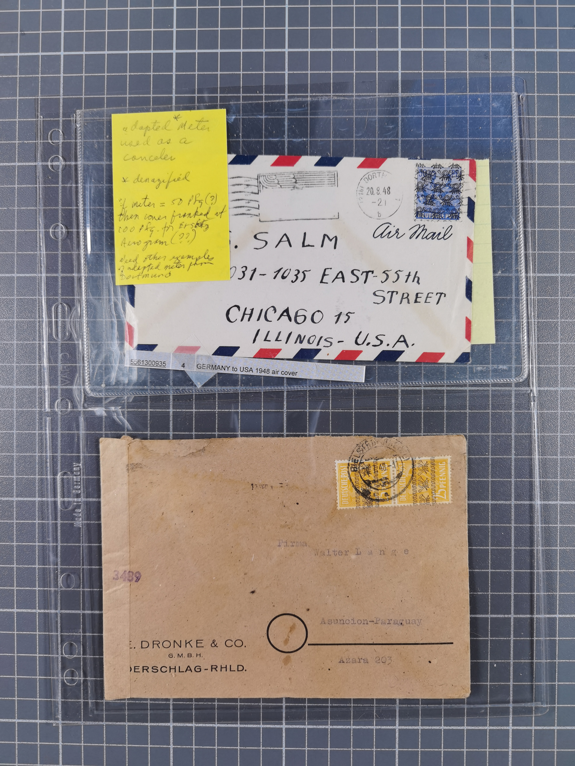 1948, fast 30 Briefe und Karten mit Band/Netz-Frankaturen, dabei meist Briefe in die USA mit u.a. sieben Luftpost-Ersatz-Aerogrammen und ein JEIA-Brief