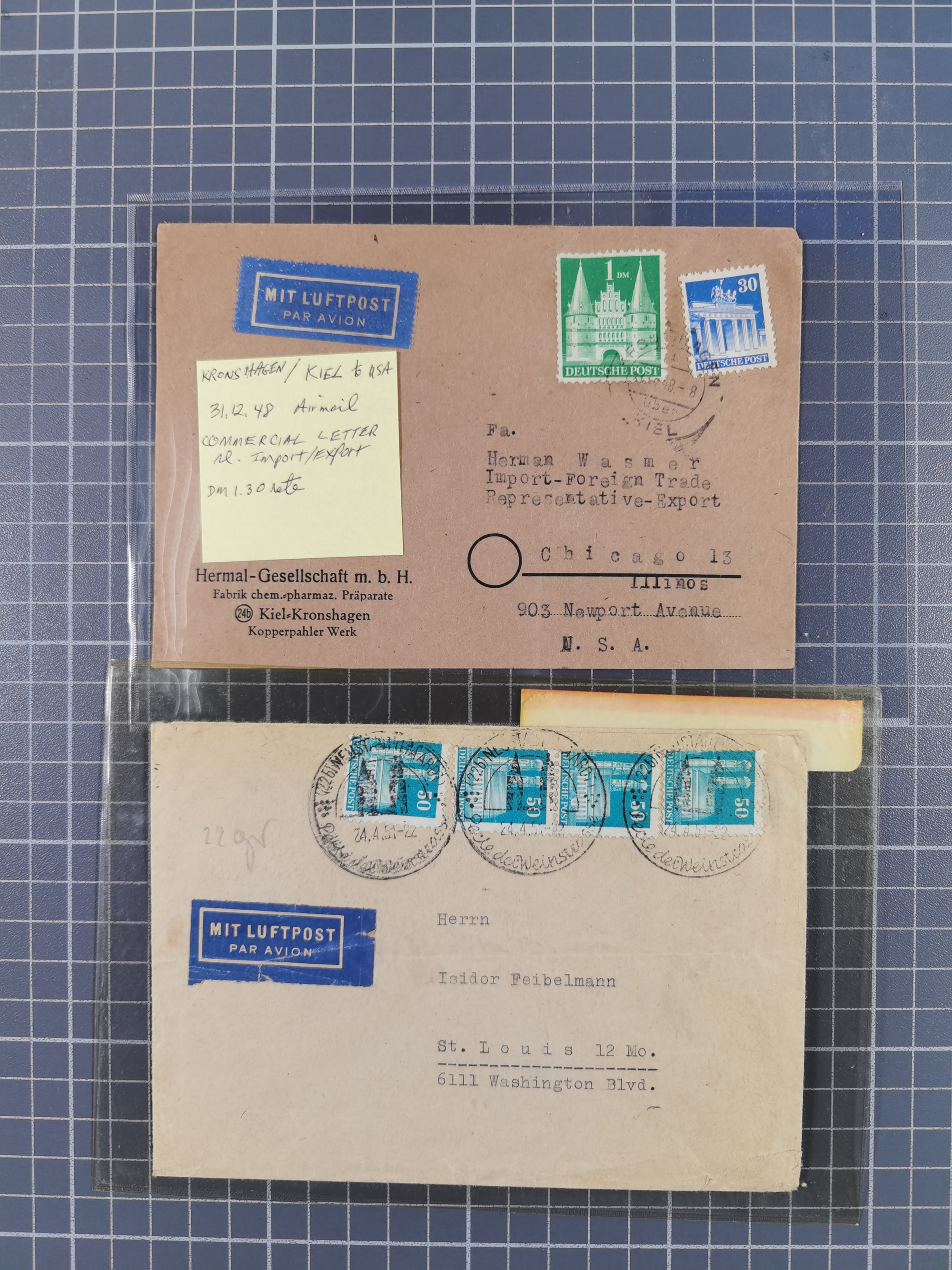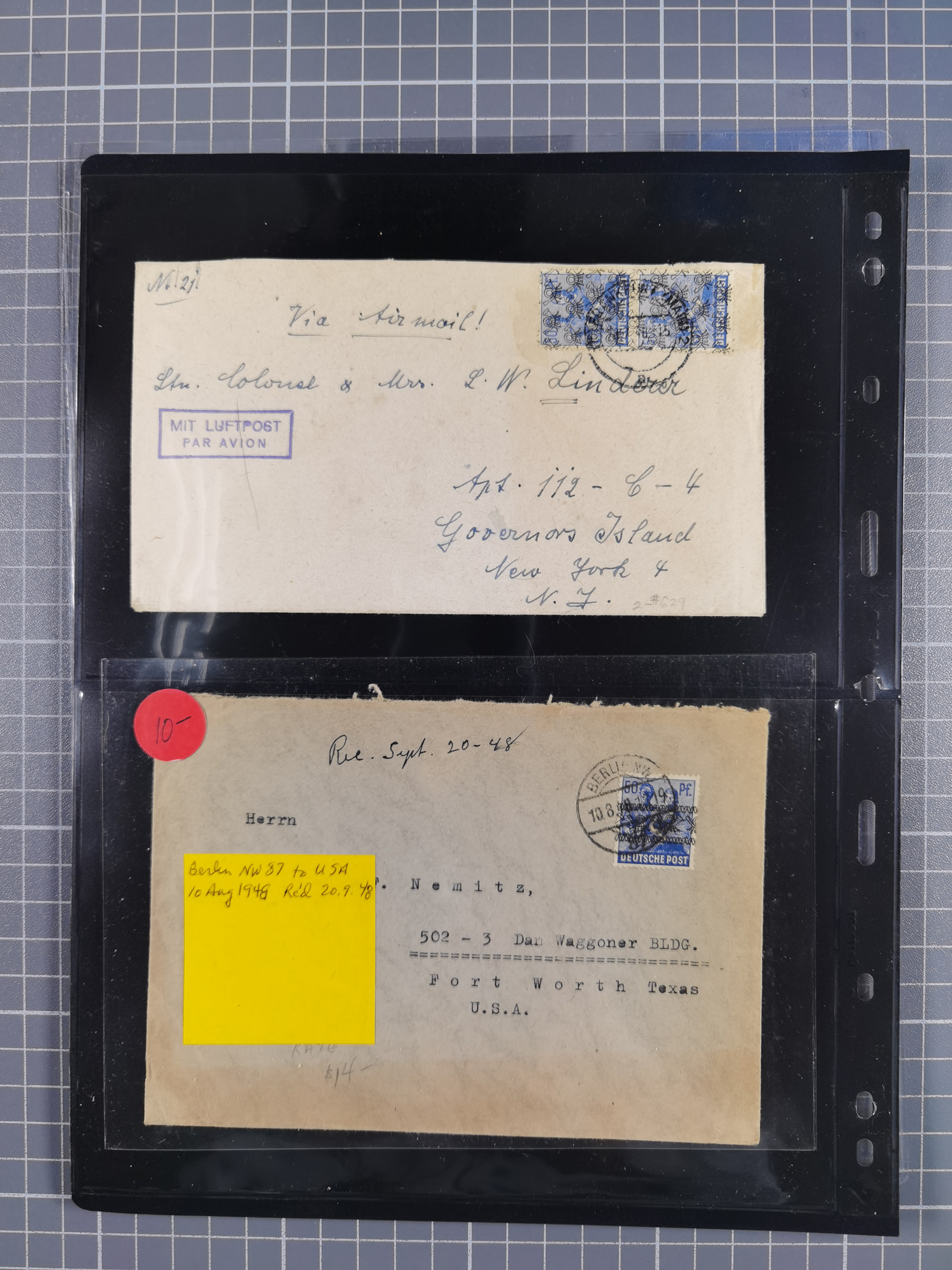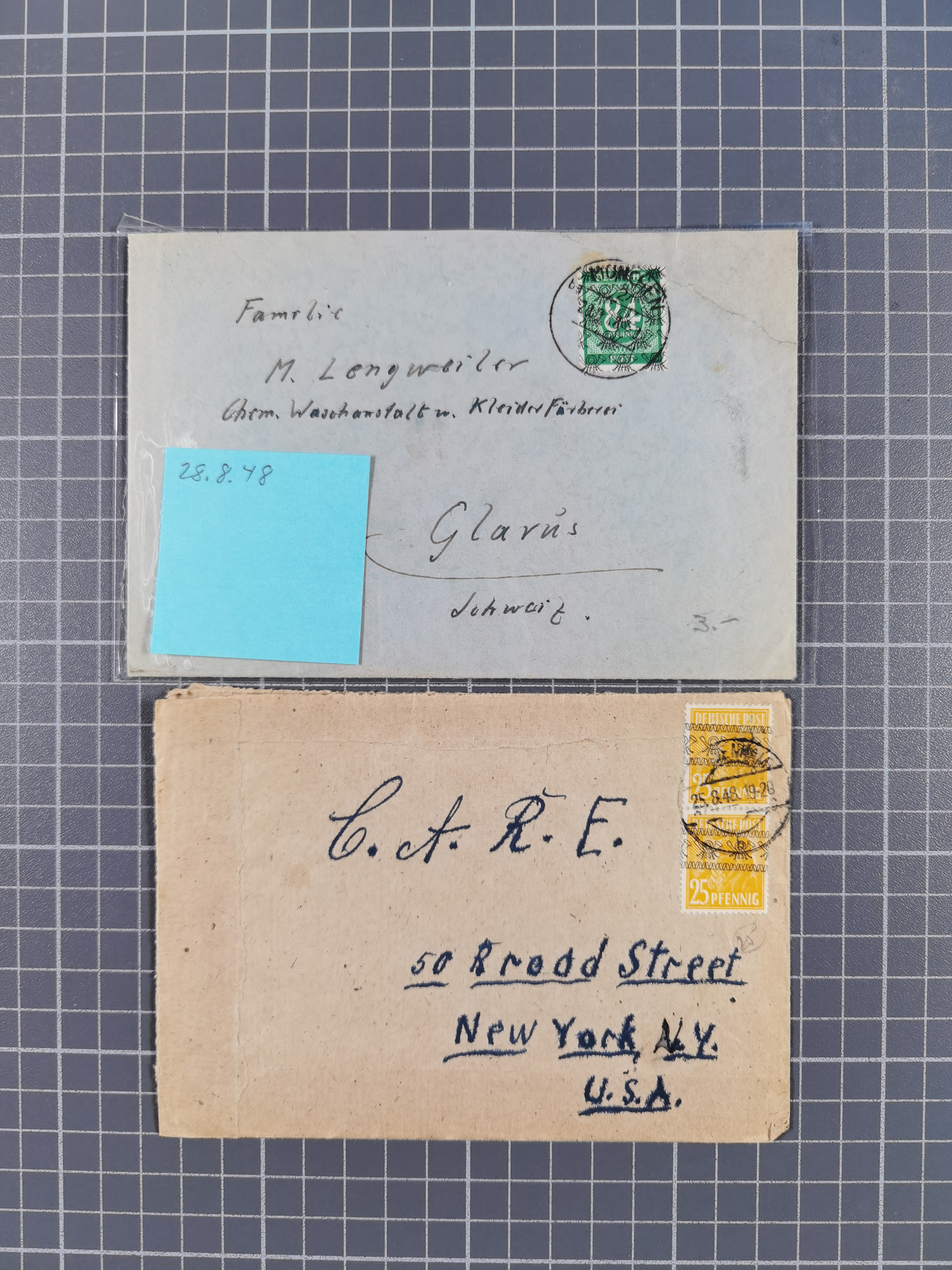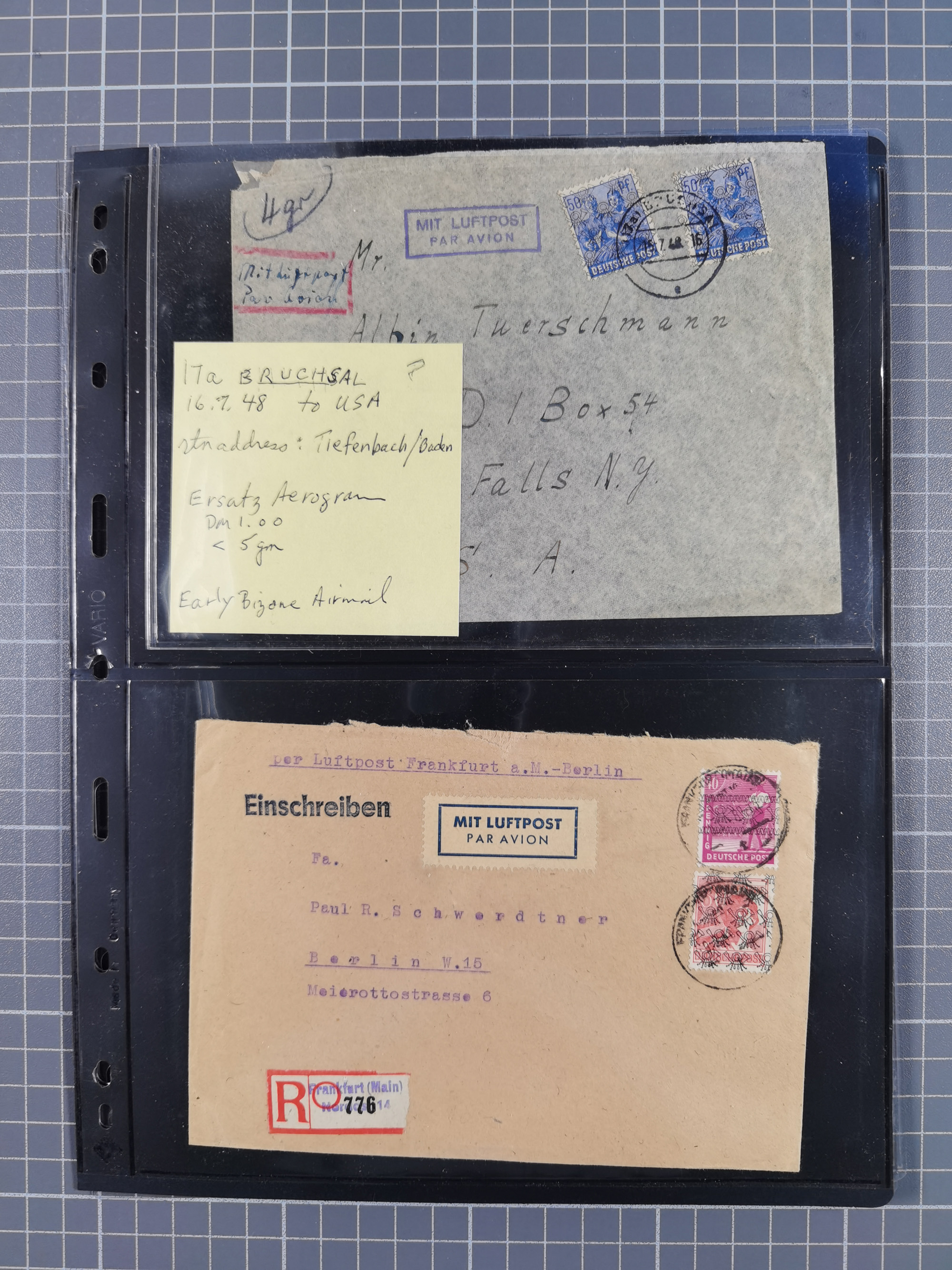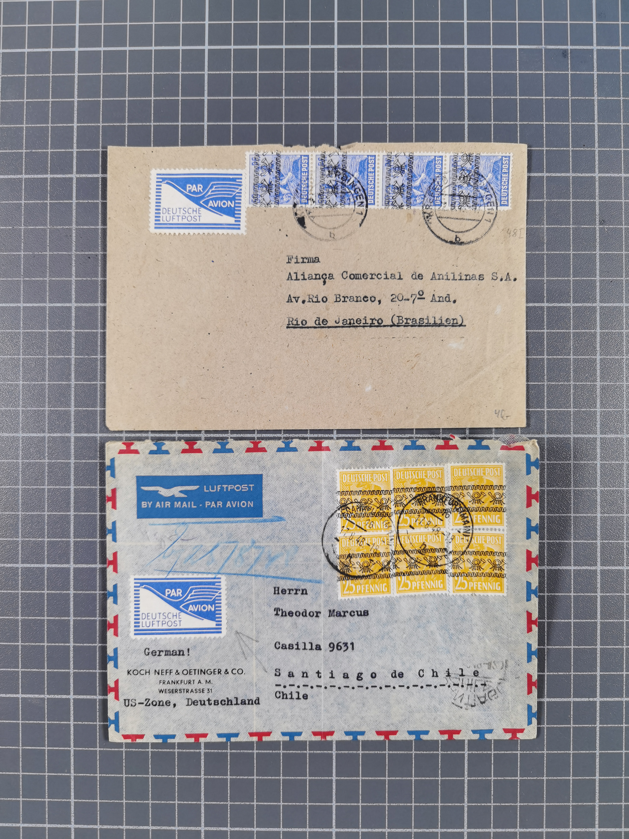 1948, fast 30 Briefe und Karten mit Band/Netz-Frankaturen, dabei meist Briefe in die USA mit u.a. sieben Luftpost-Ersatz-Aerogrammen und ein JEIA-Brief