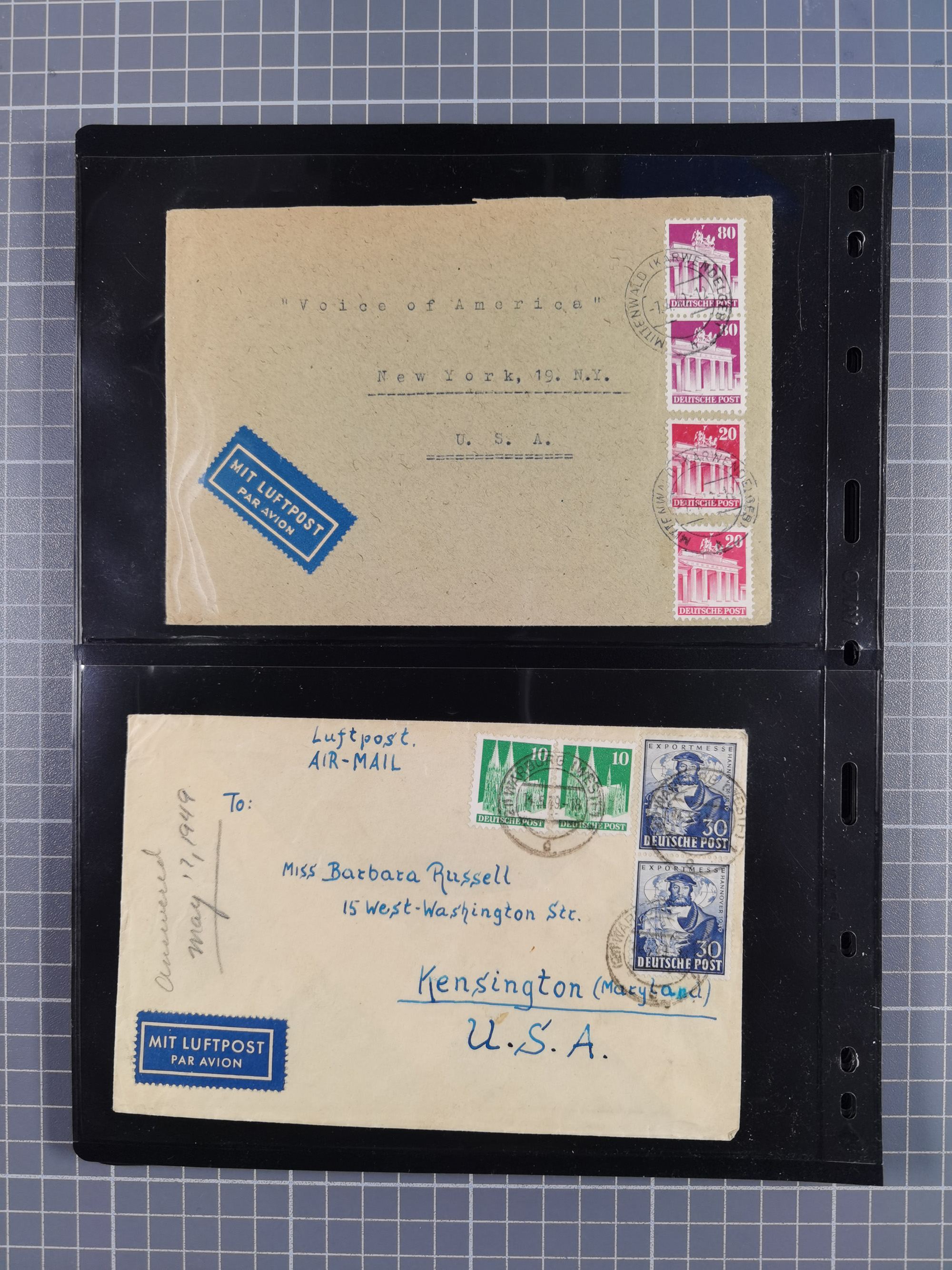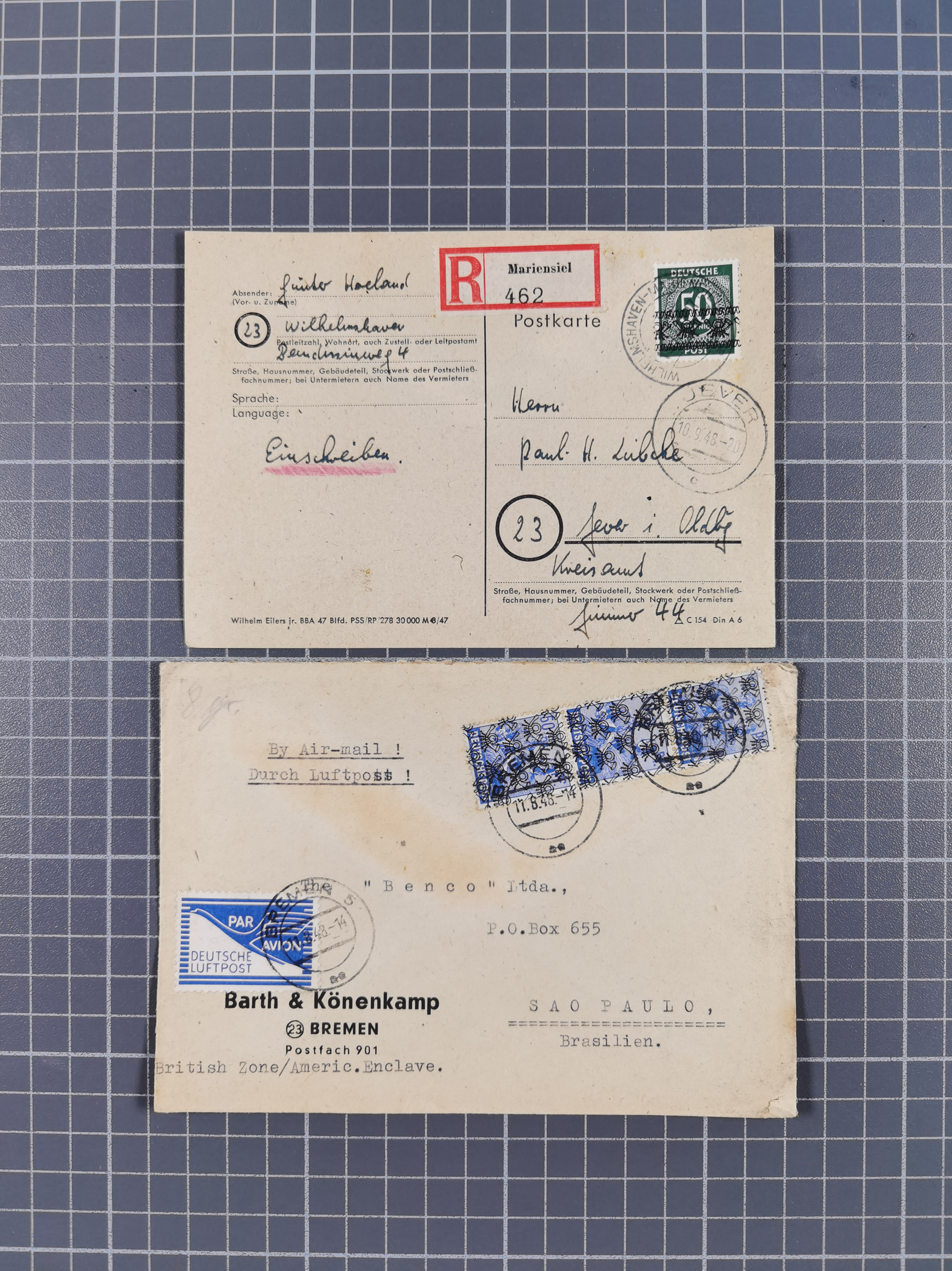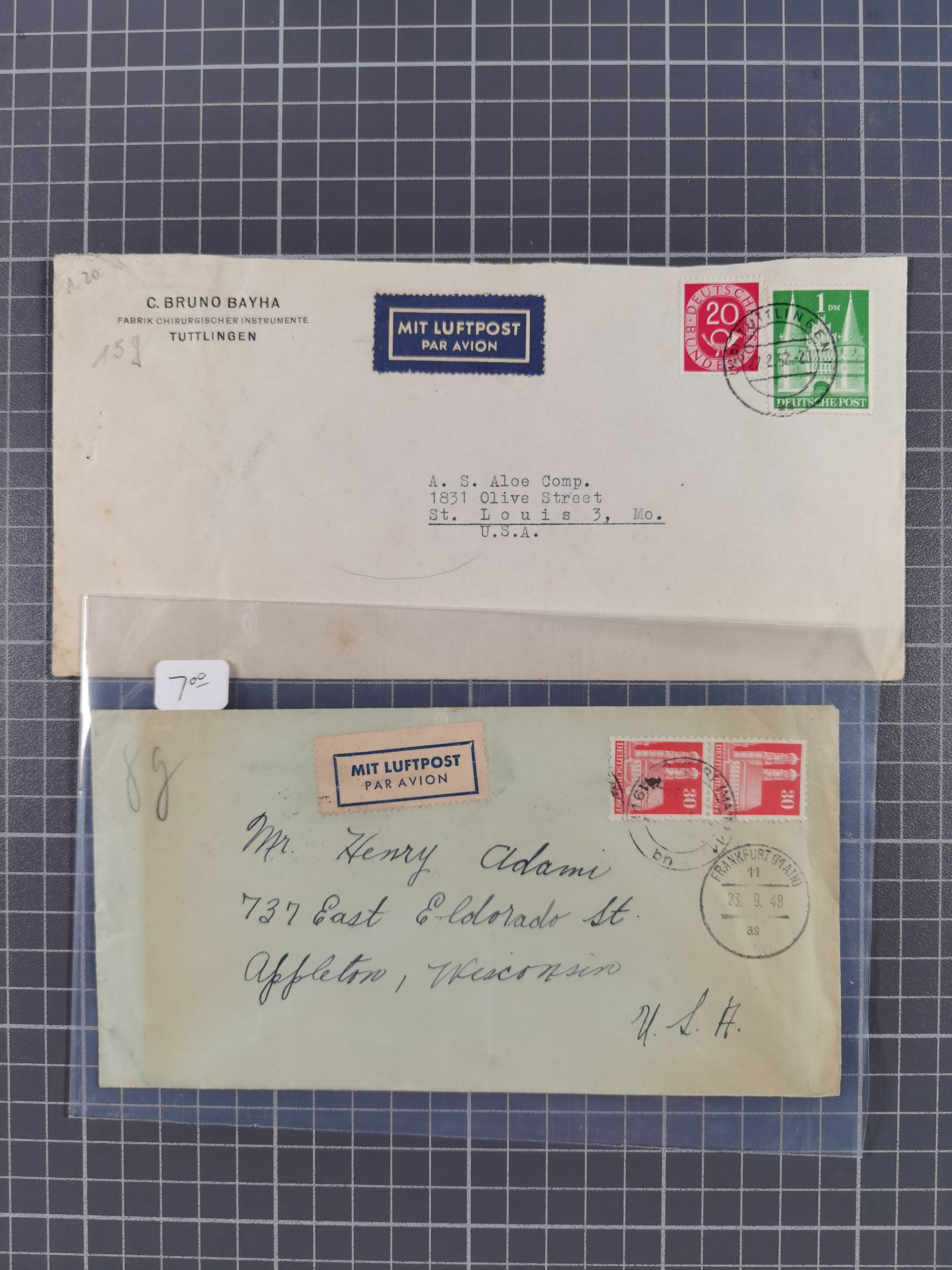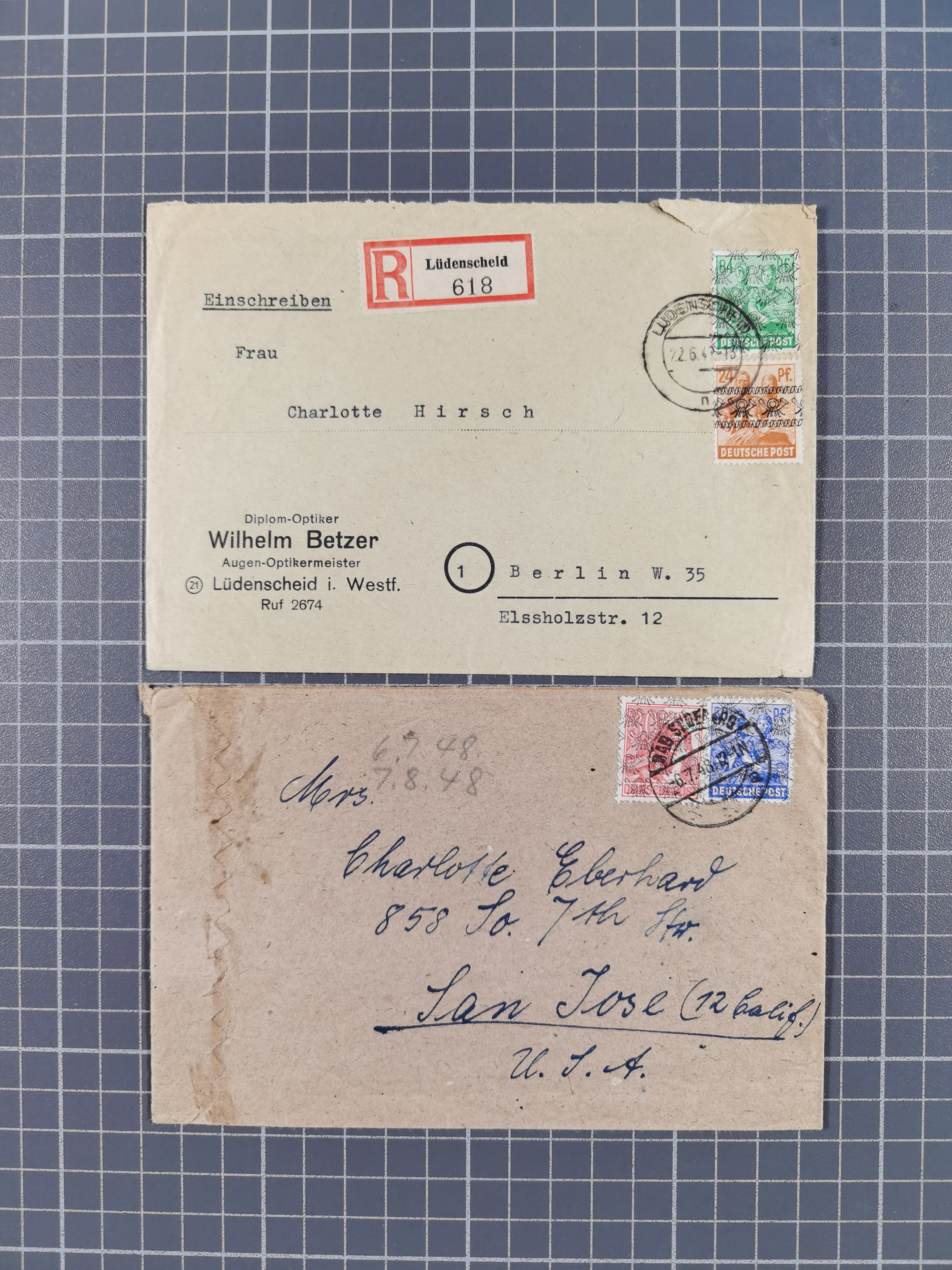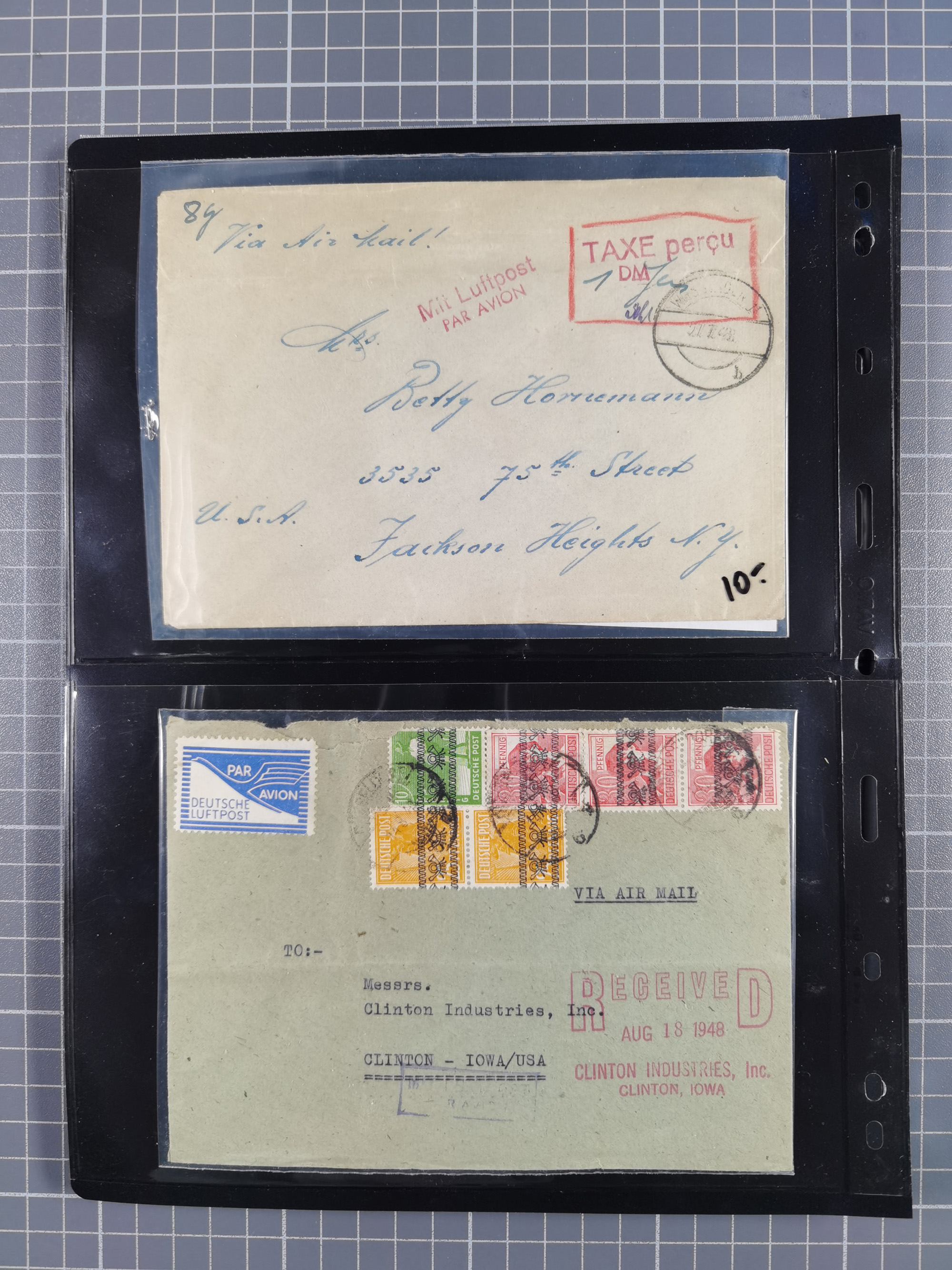 1948, fast 30 Briefe und Karten mit Band/Netz-Frankaturen, dabei meist Briefe in die USA mit u.a. sieben Luftpost-Ersatz-Aerogrammen und ein JEIA-Brief