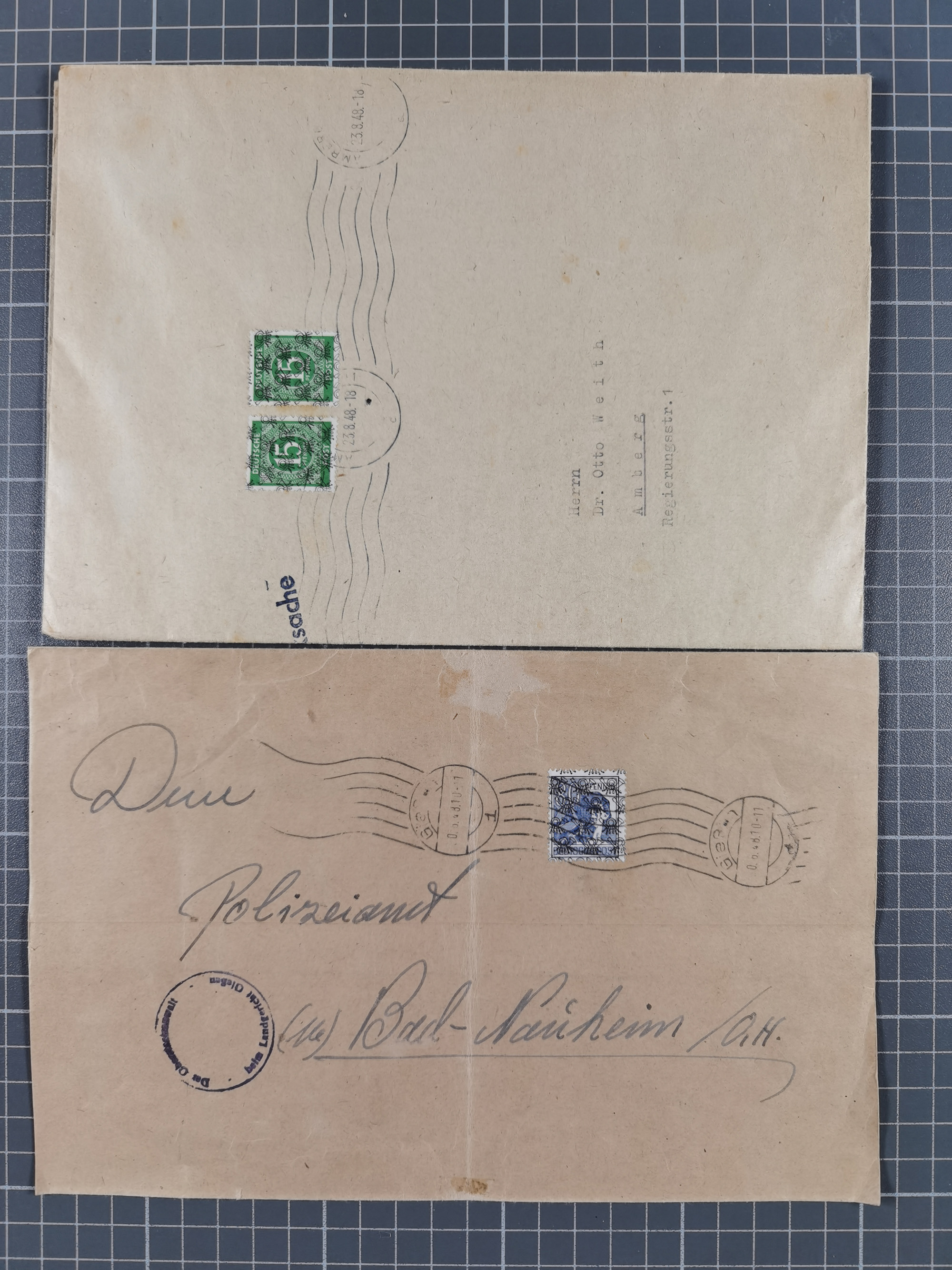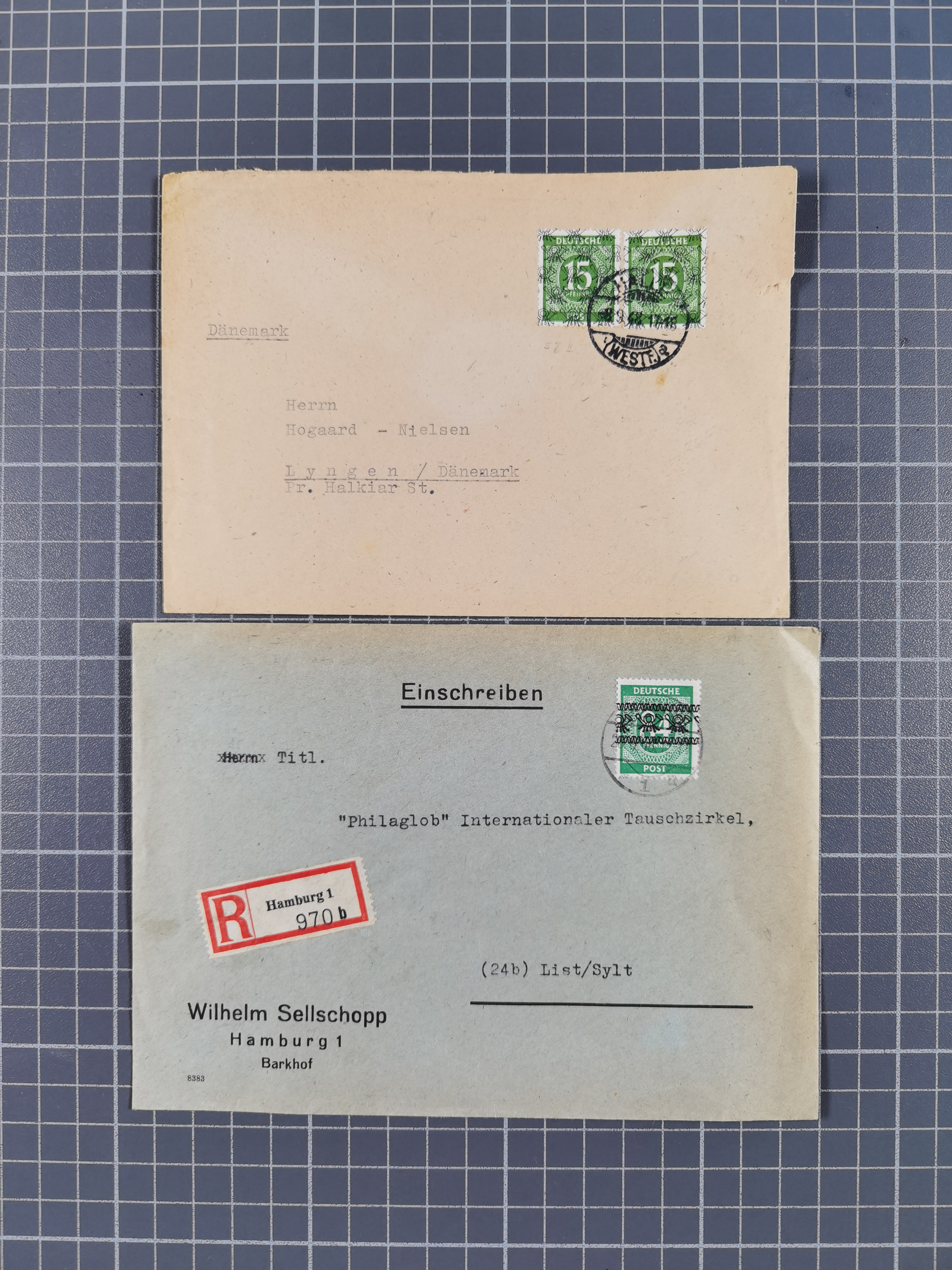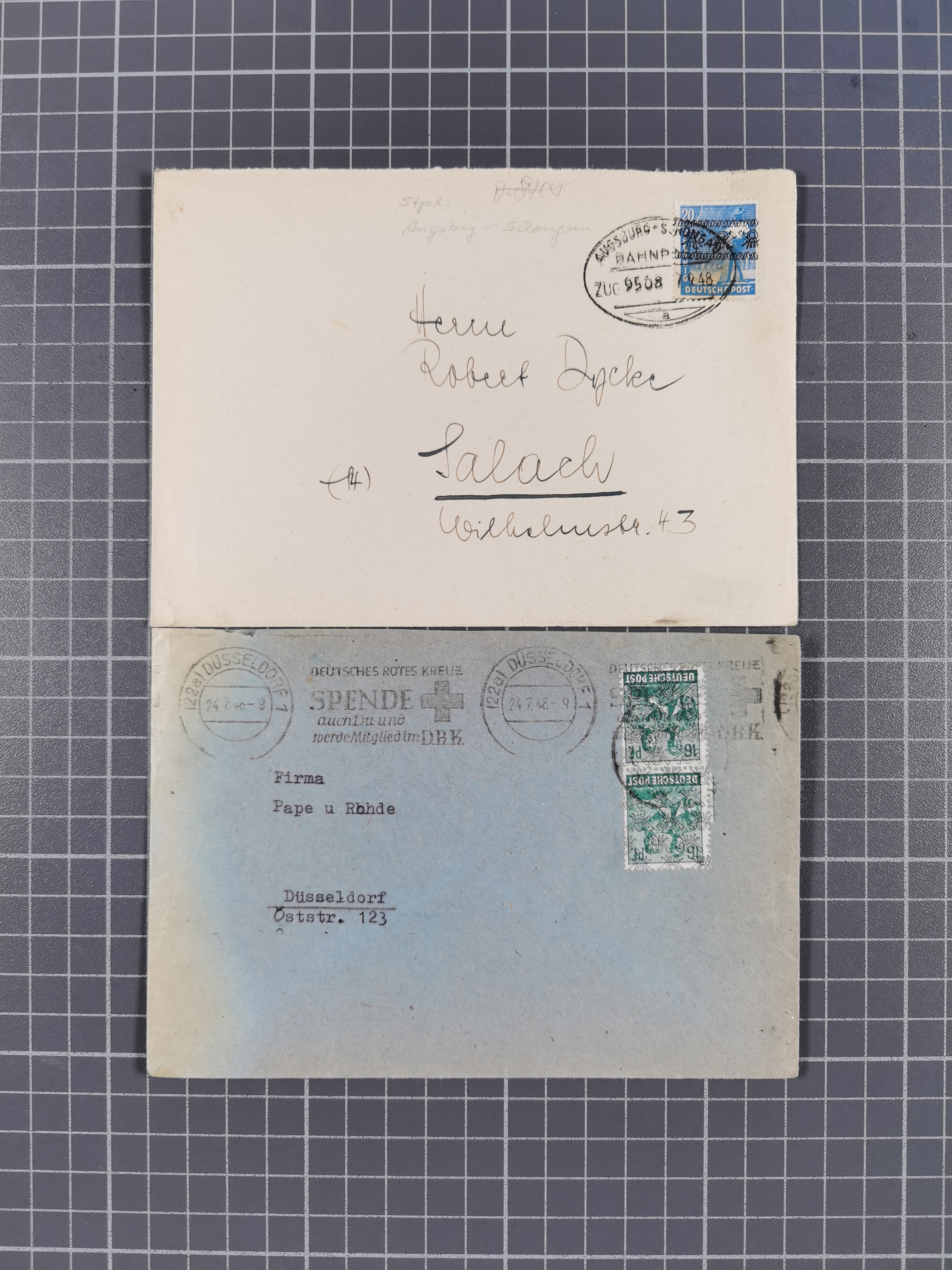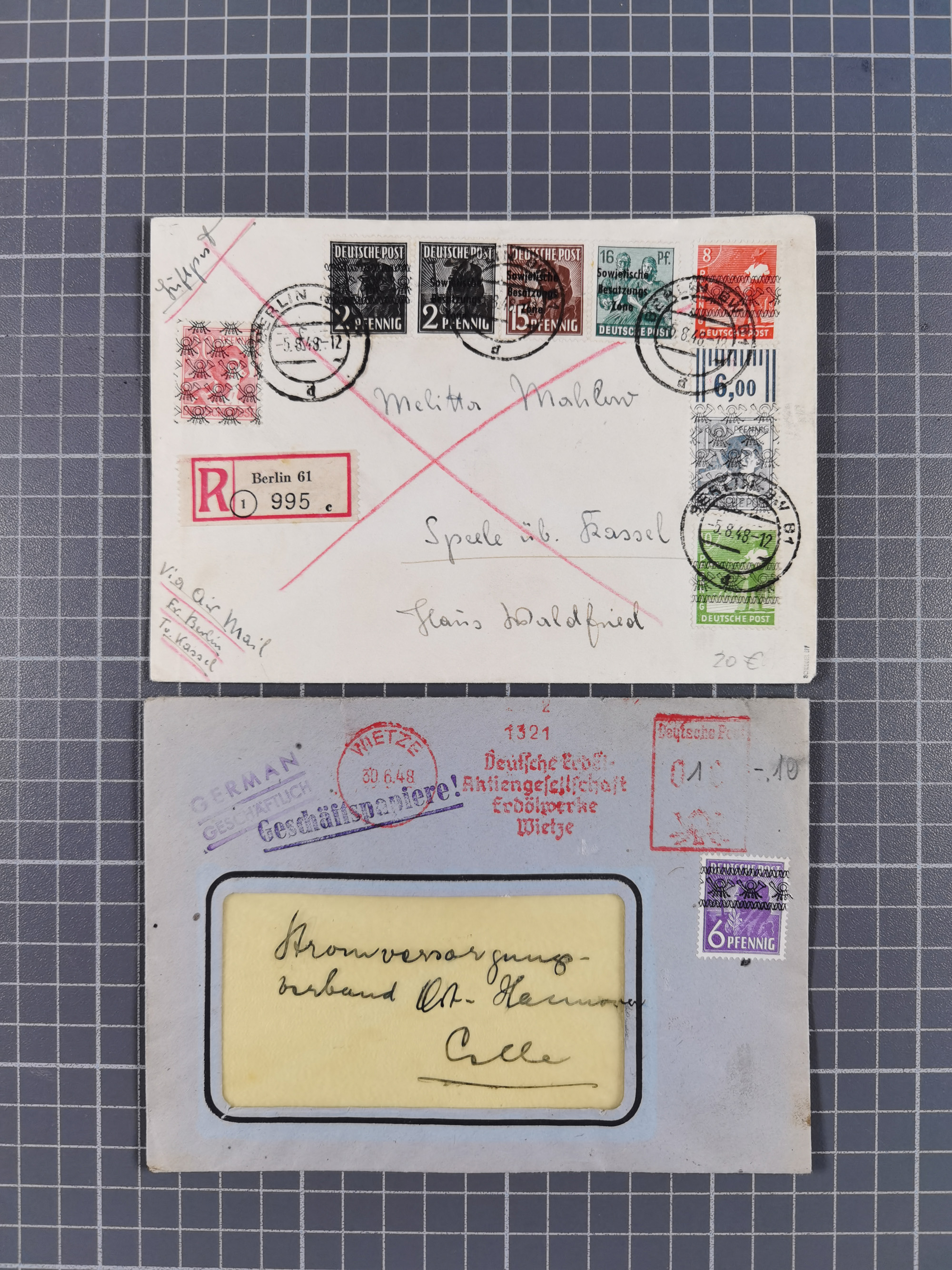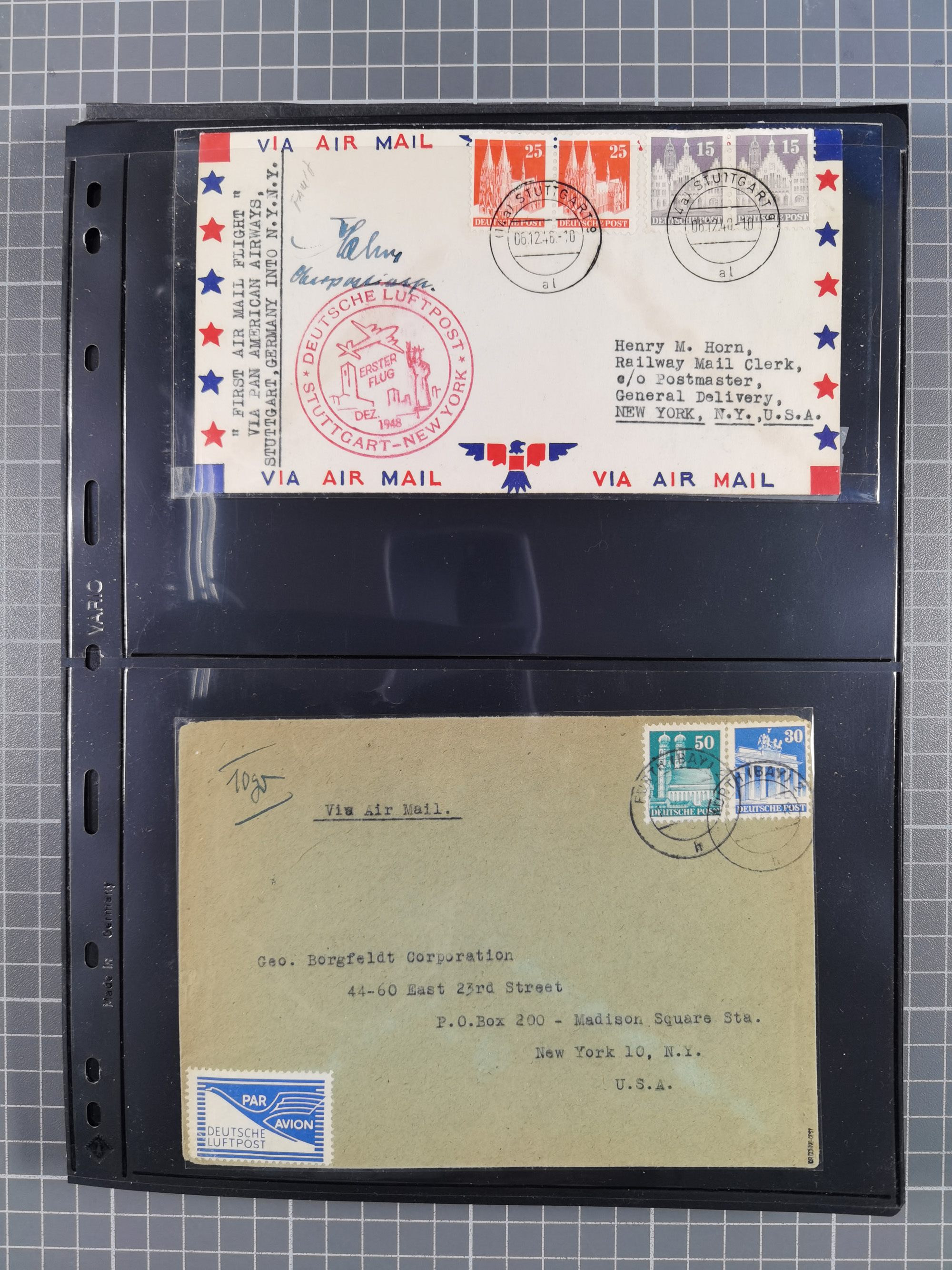 1948, fast 30 Briefe und Karten mit Band/Netz-Frankaturen, dabei meist Briefe in die USA mit u.a. sieben Luftpost-Ersatz-Aerogrammen und ein JEIA-Brief