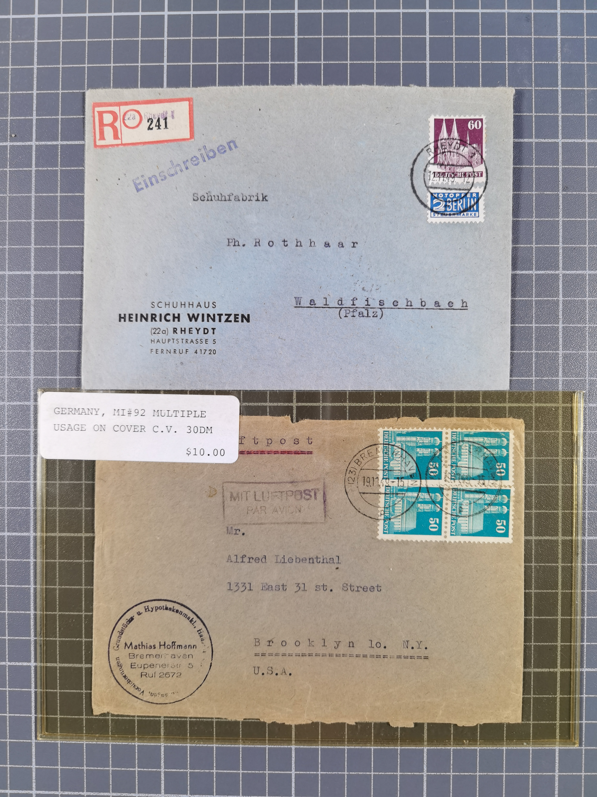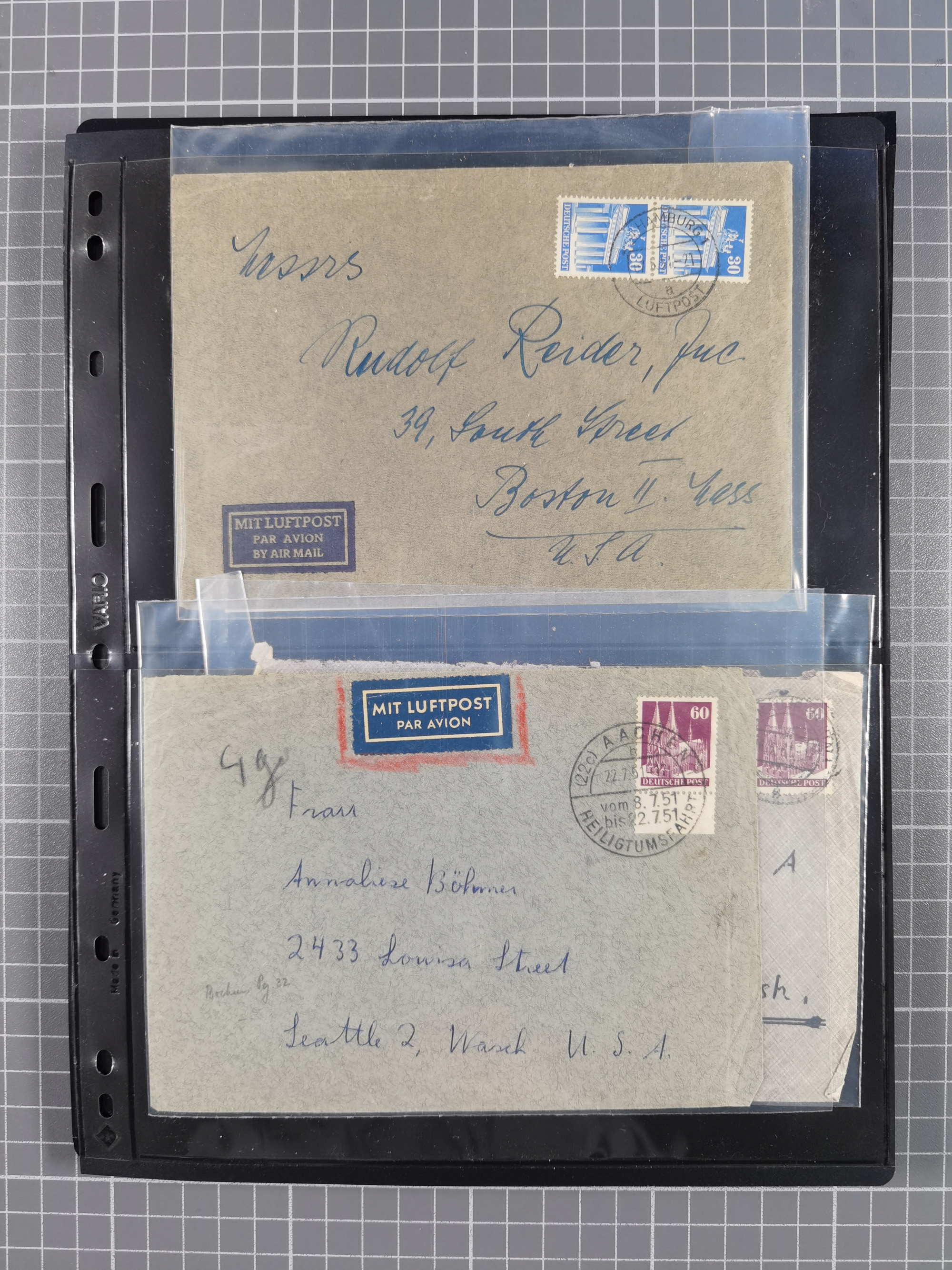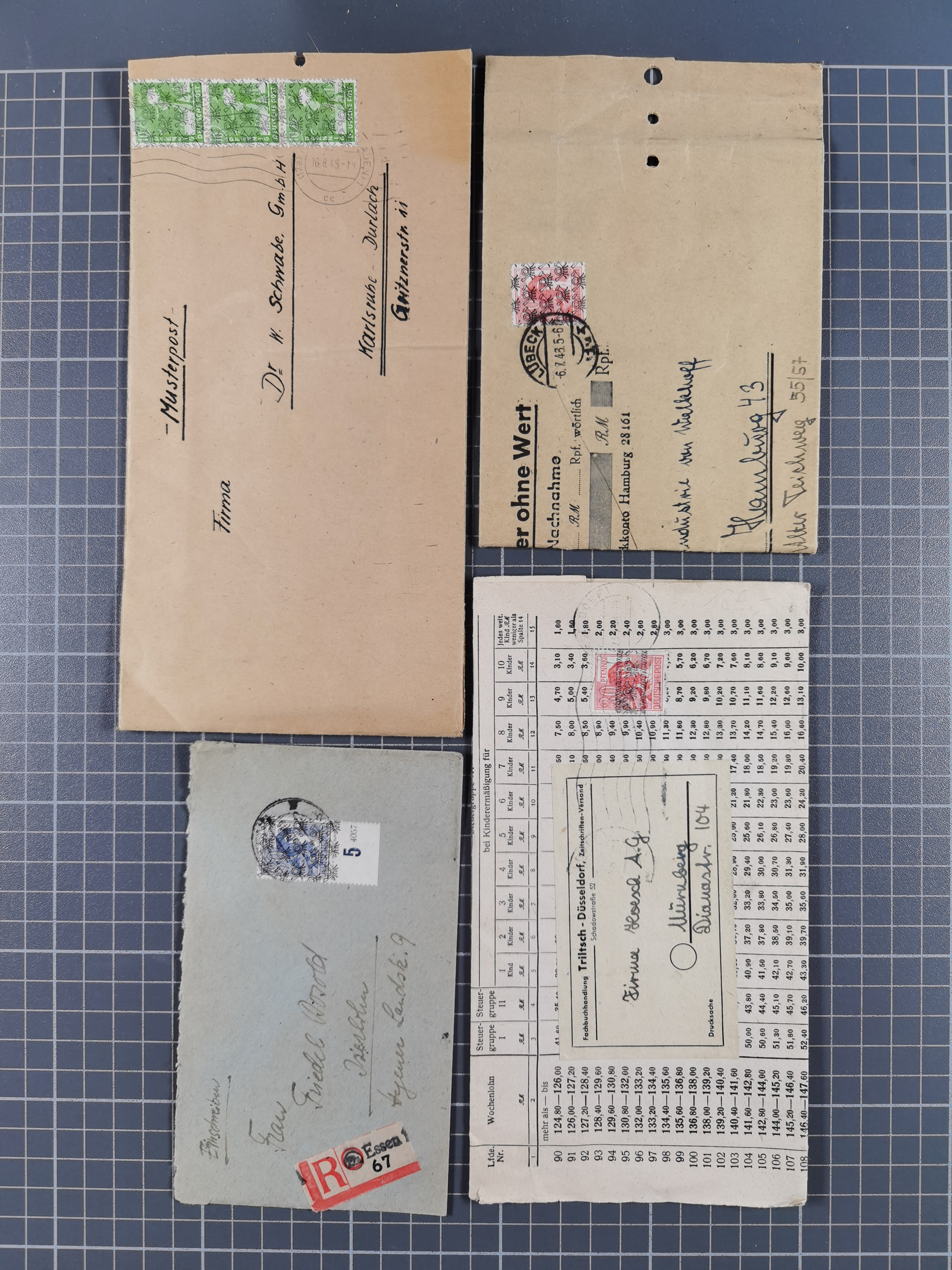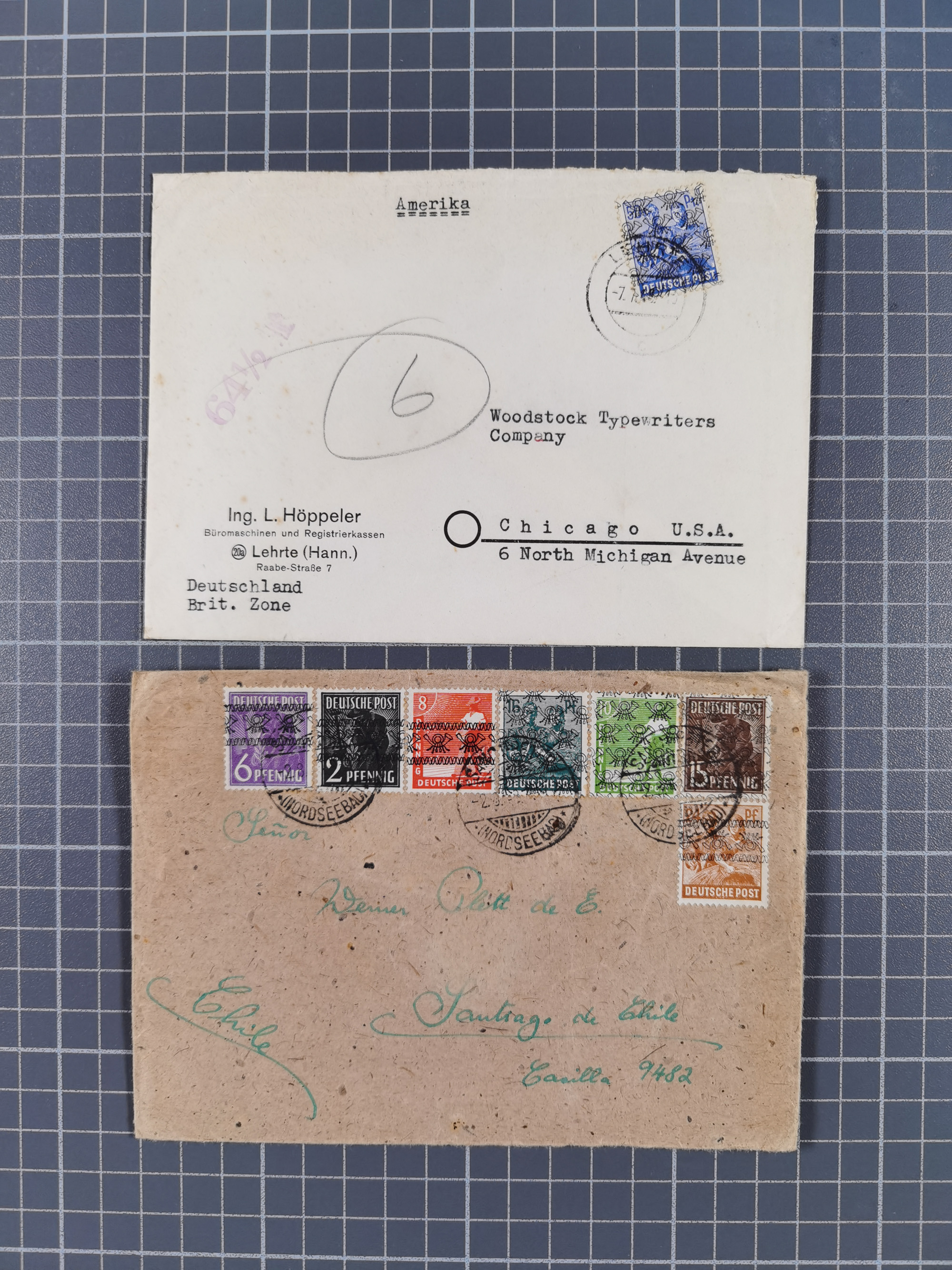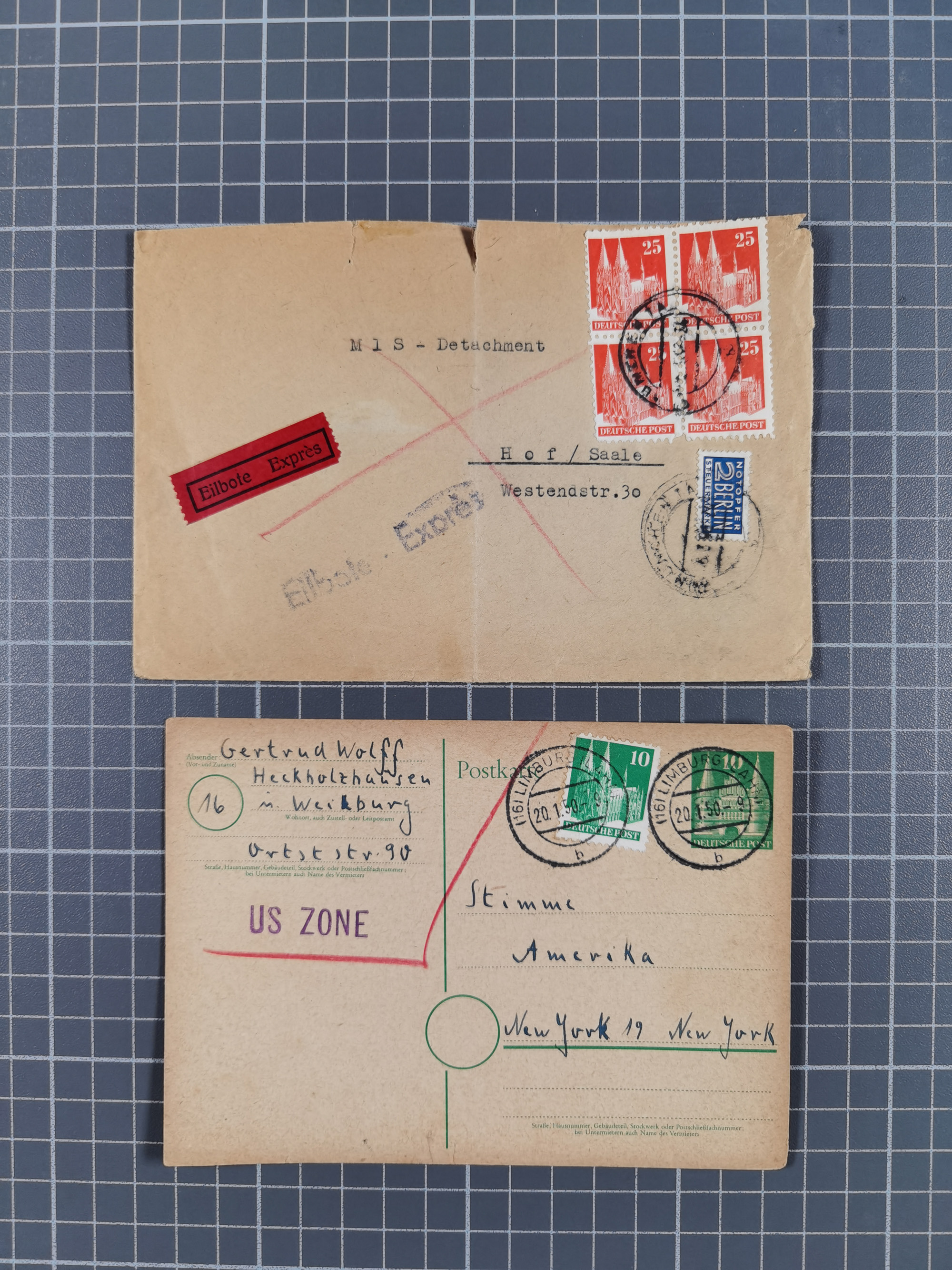 1948, fast 30 Briefe und Karten mit Band/Netz-Frankaturen, dabei meist Briefe in die USA mit u.a. sieben Luftpost-Ersatz-Aerogrammen und ein JEIA-Brief
