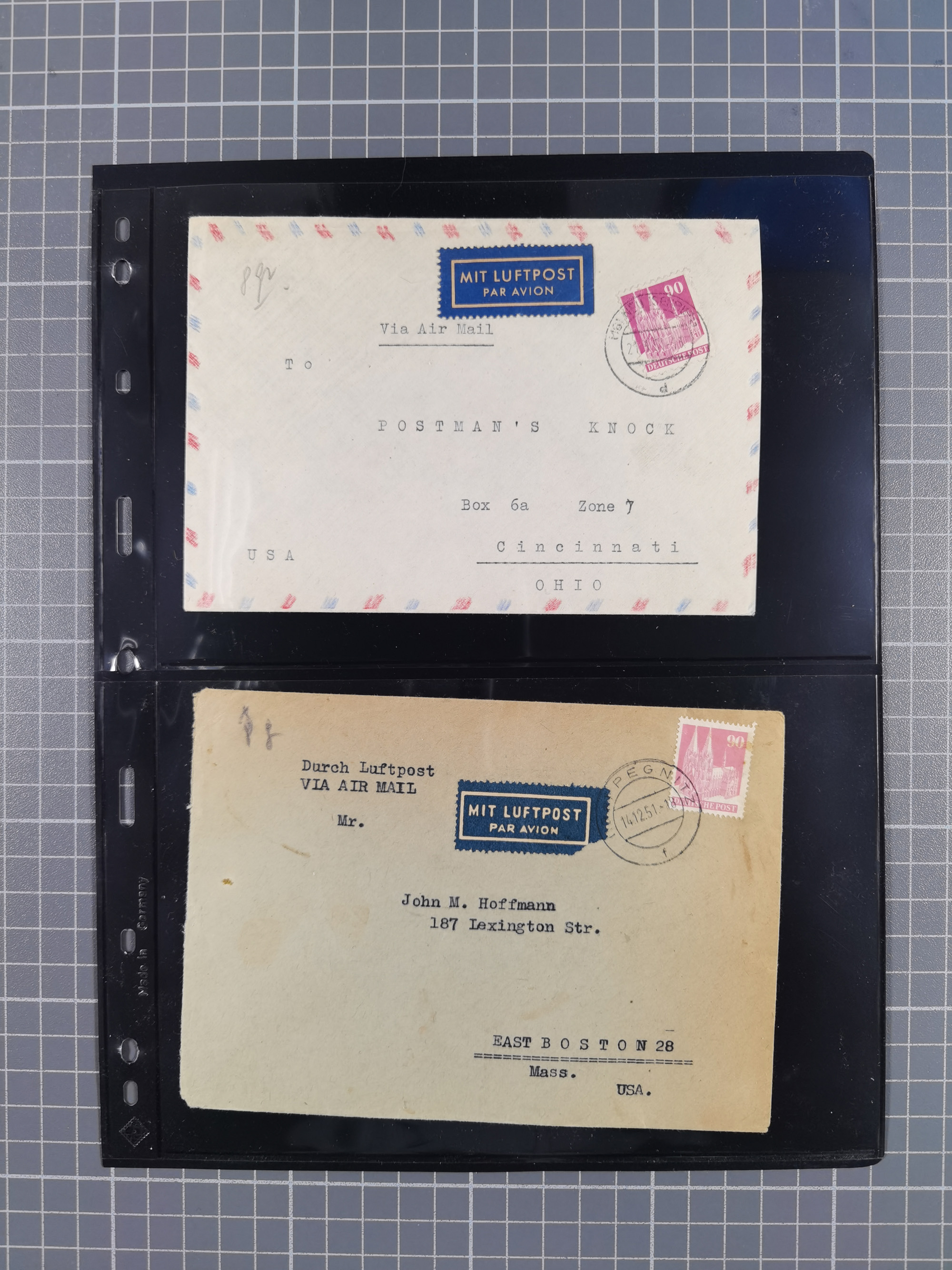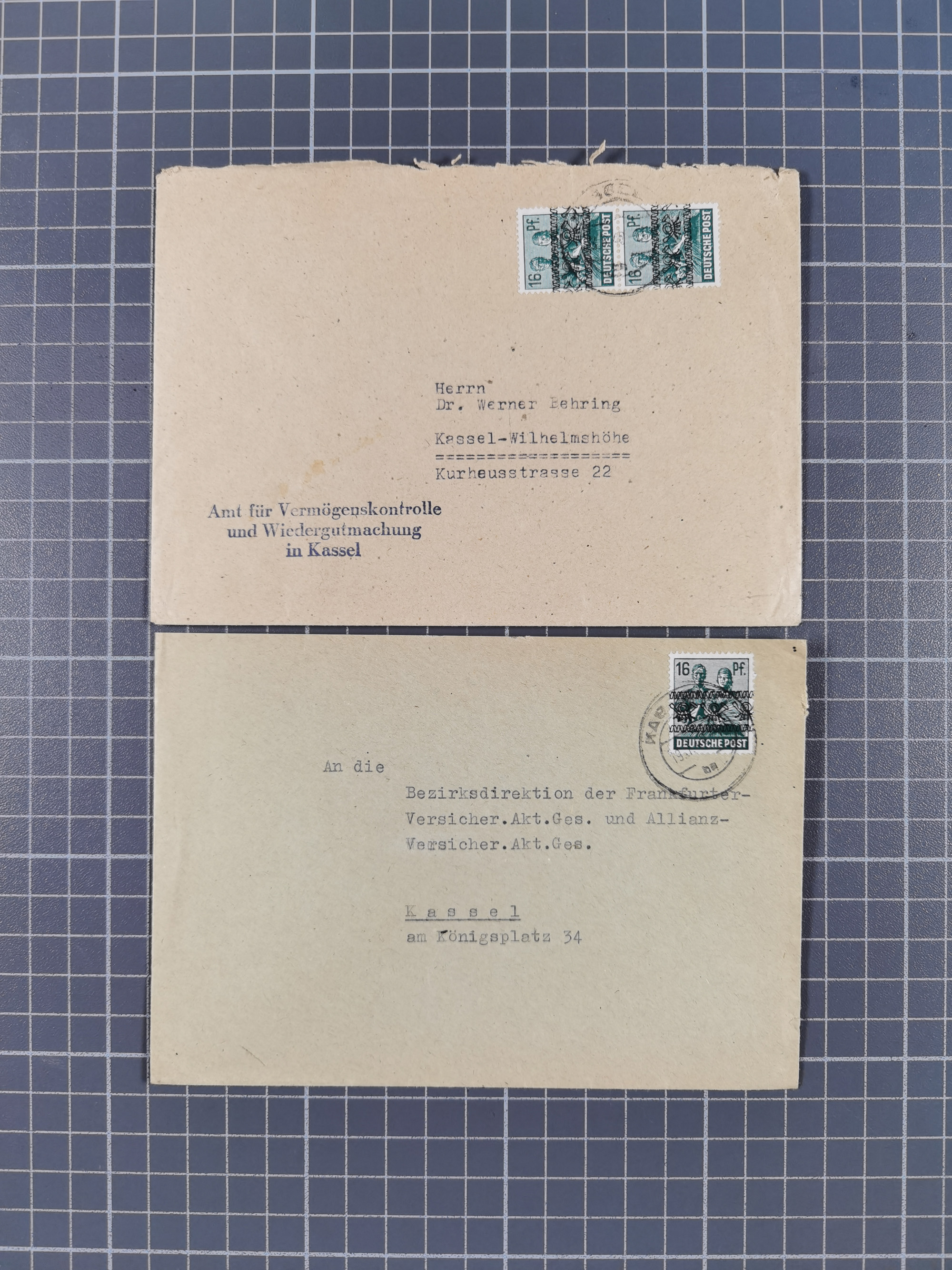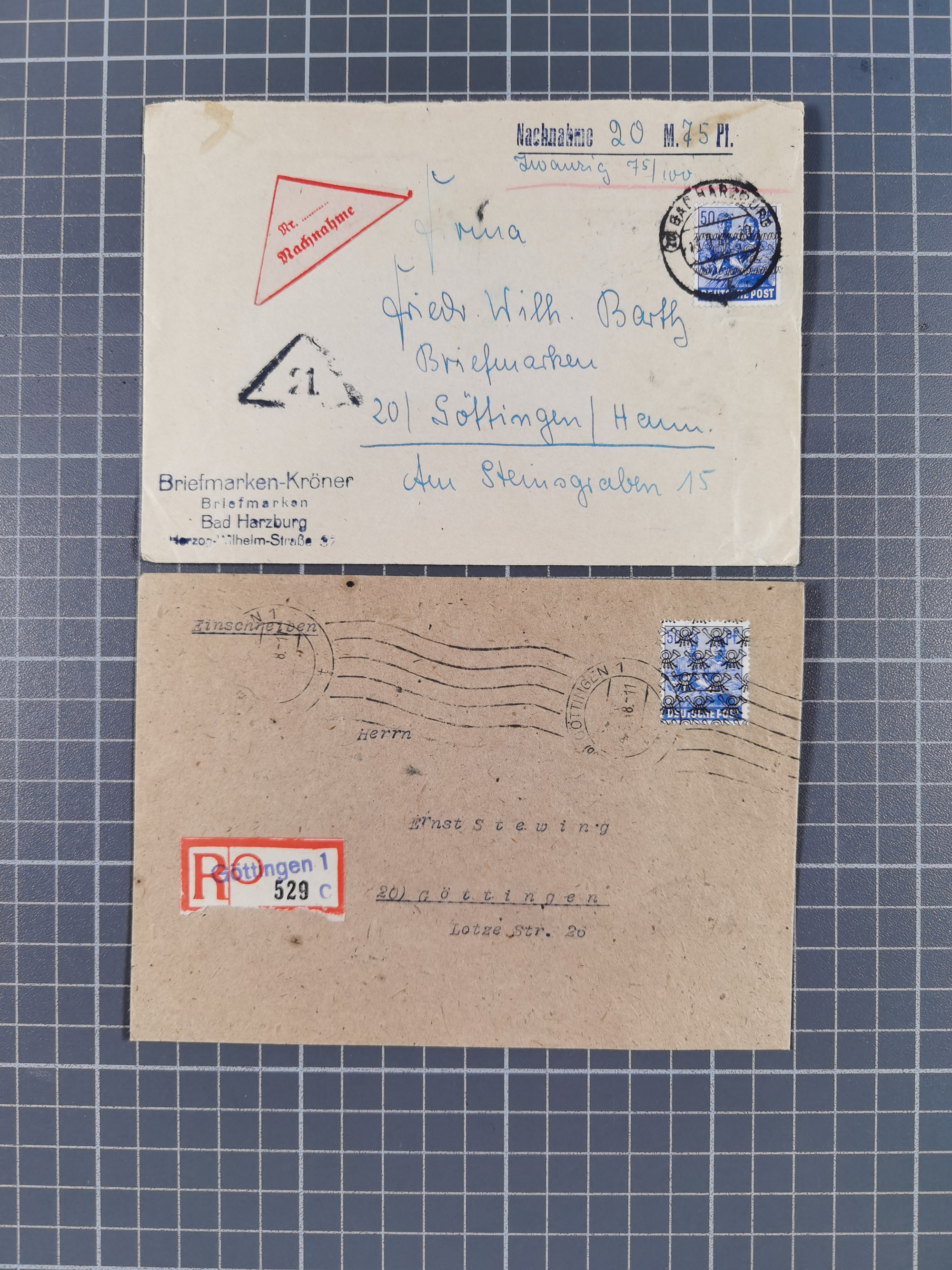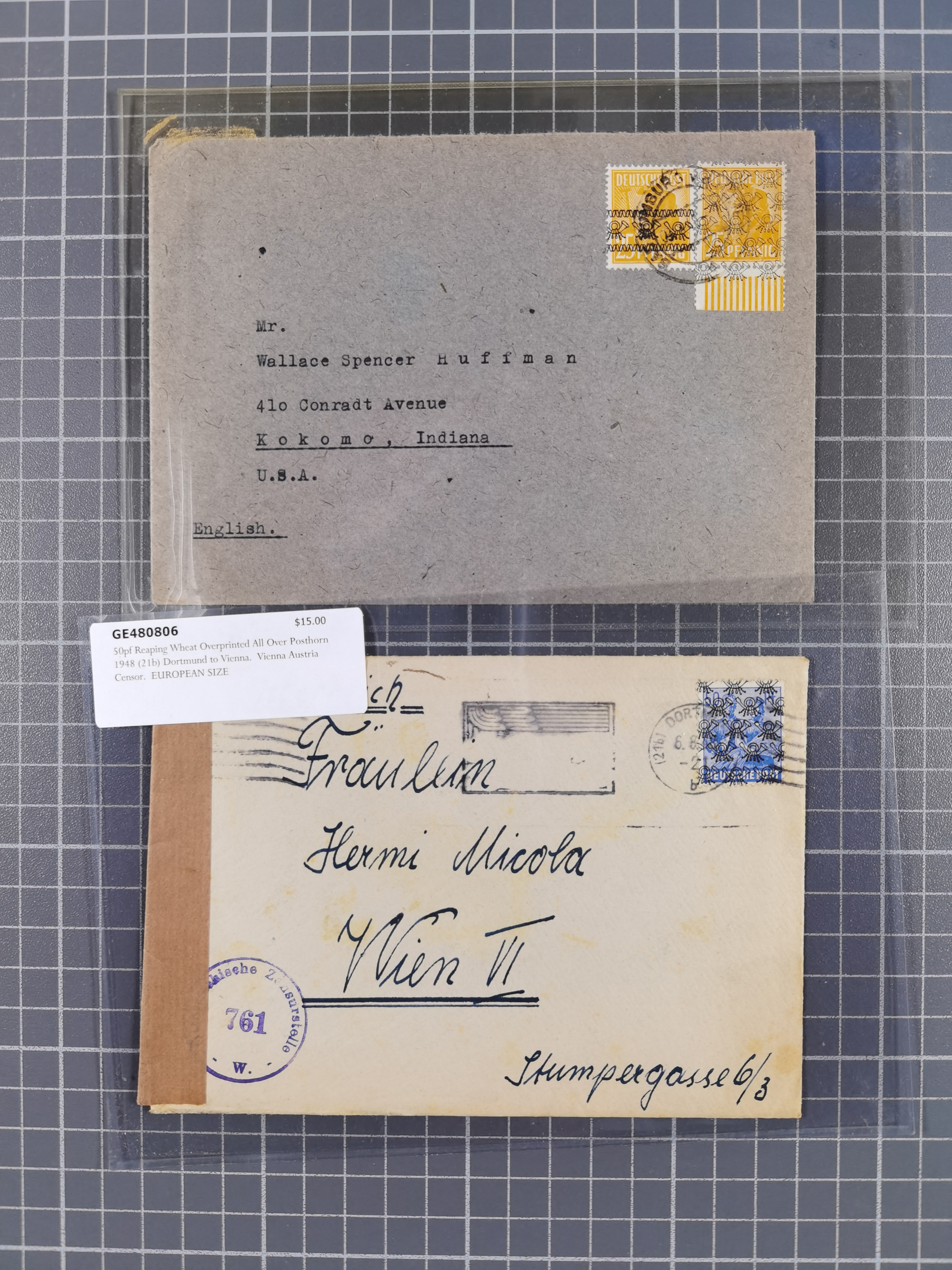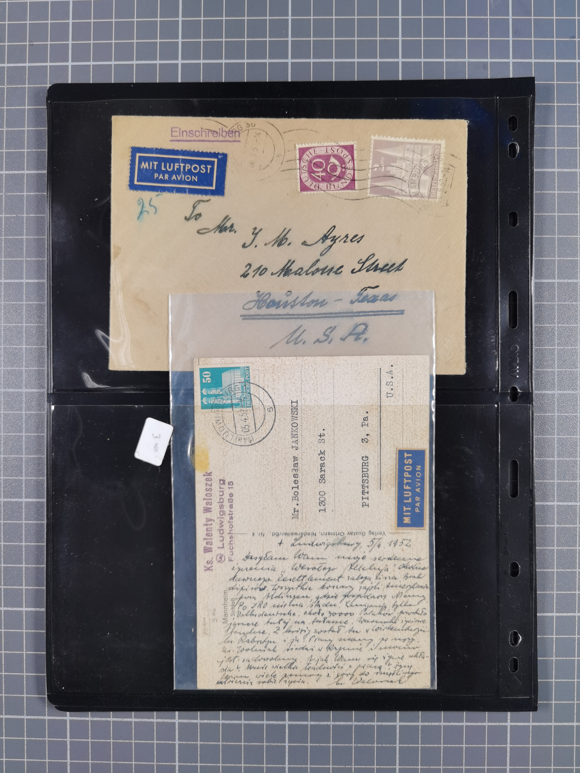 1948, fast 30 Briefe und Karten mit Band/Netz-Frankaturen, dabei meist Briefe in die USA mit u.a. sieben Luftpost-Ersatz-Aerogrammen und ein JEIA-Brief
