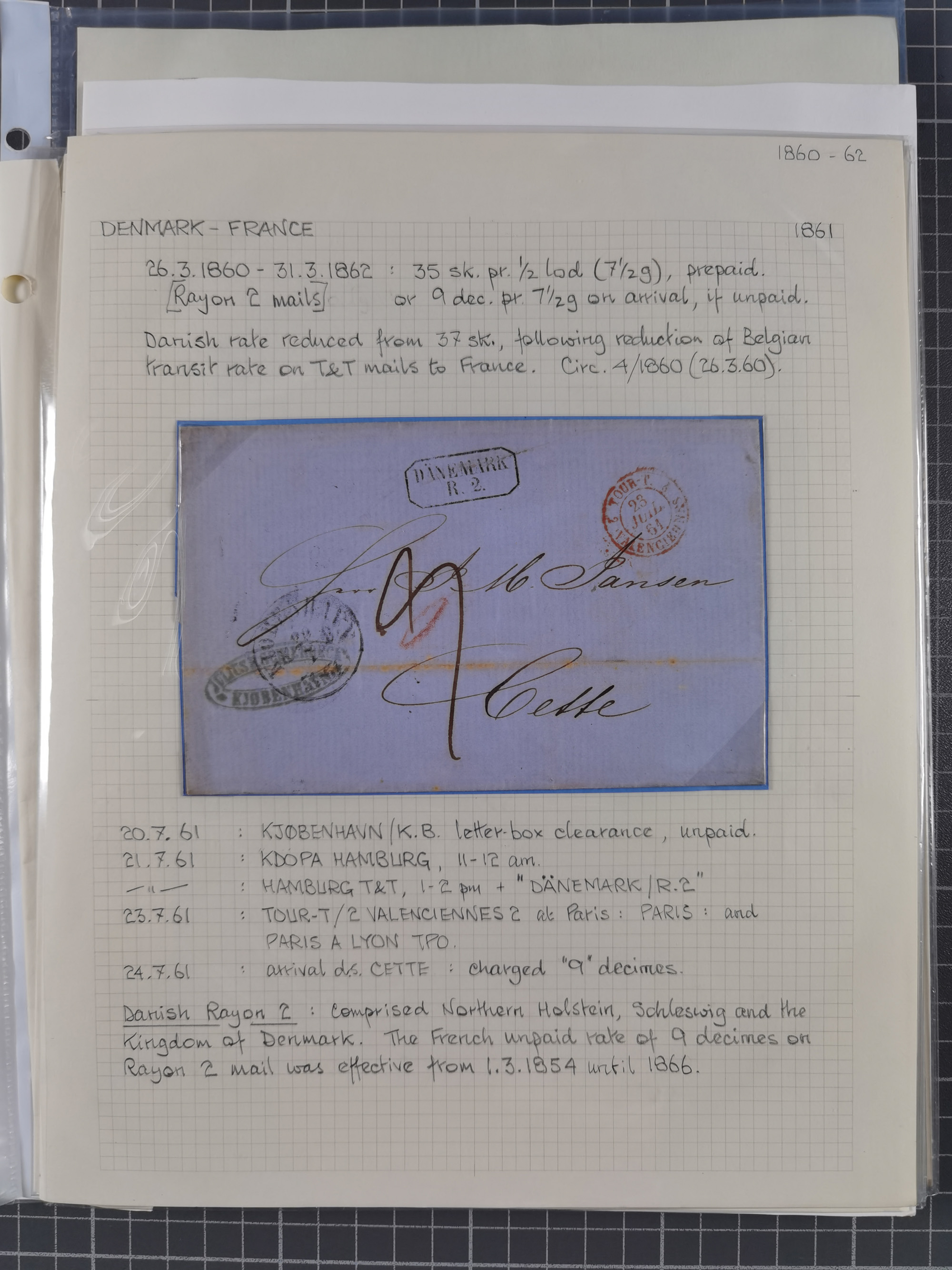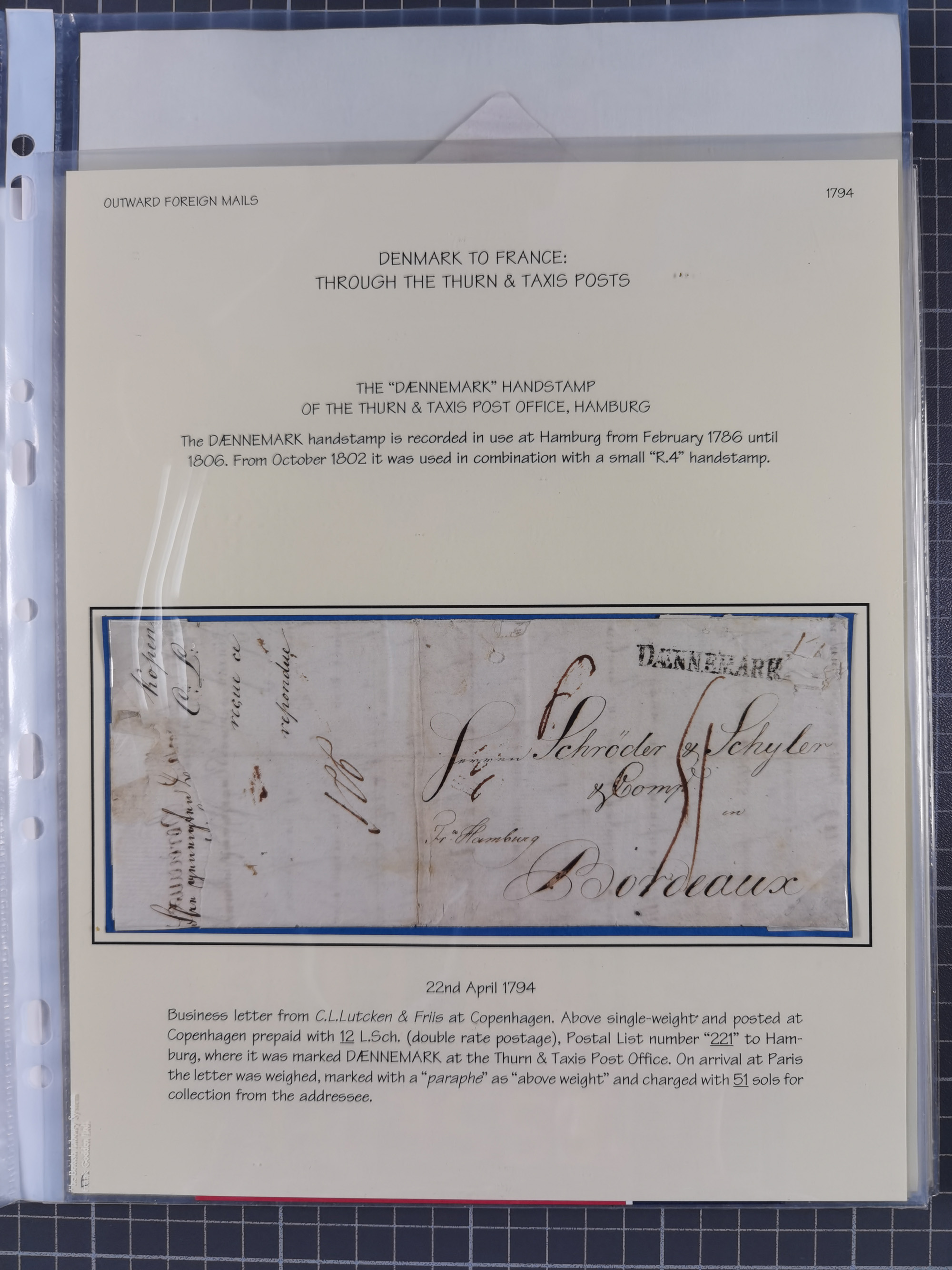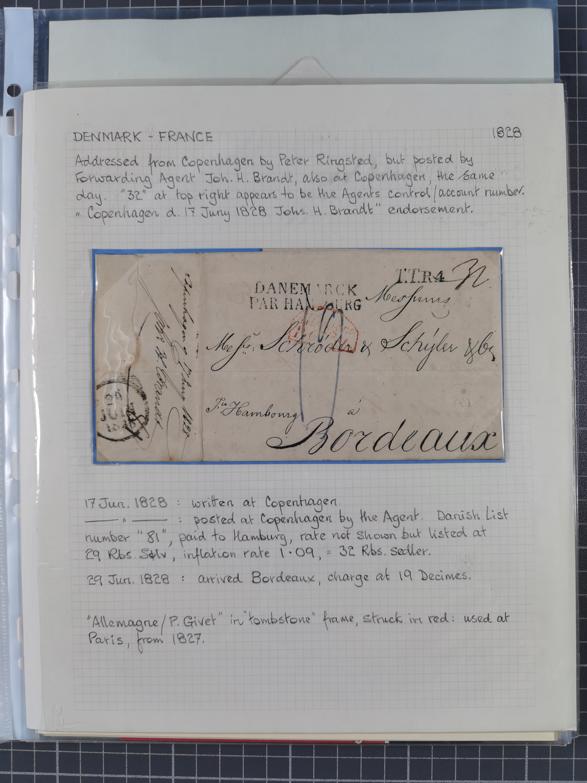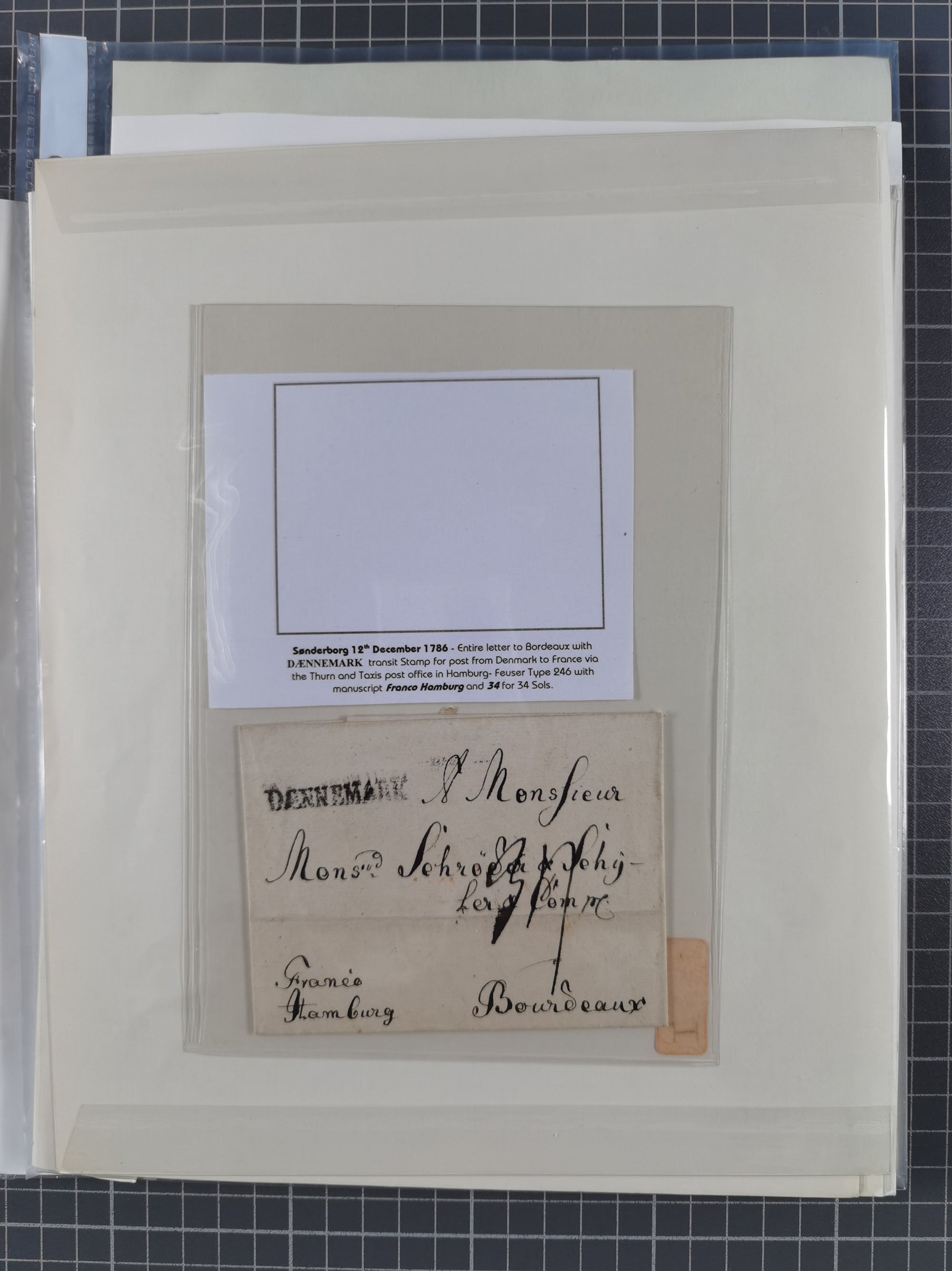 1736/1938, 18 entires, almost all mailed abroad, mostly to France, but also two 10 skilling frankings to London and 3 parcel cards to Denmark with handstamps of the danish PO at Flensburg.