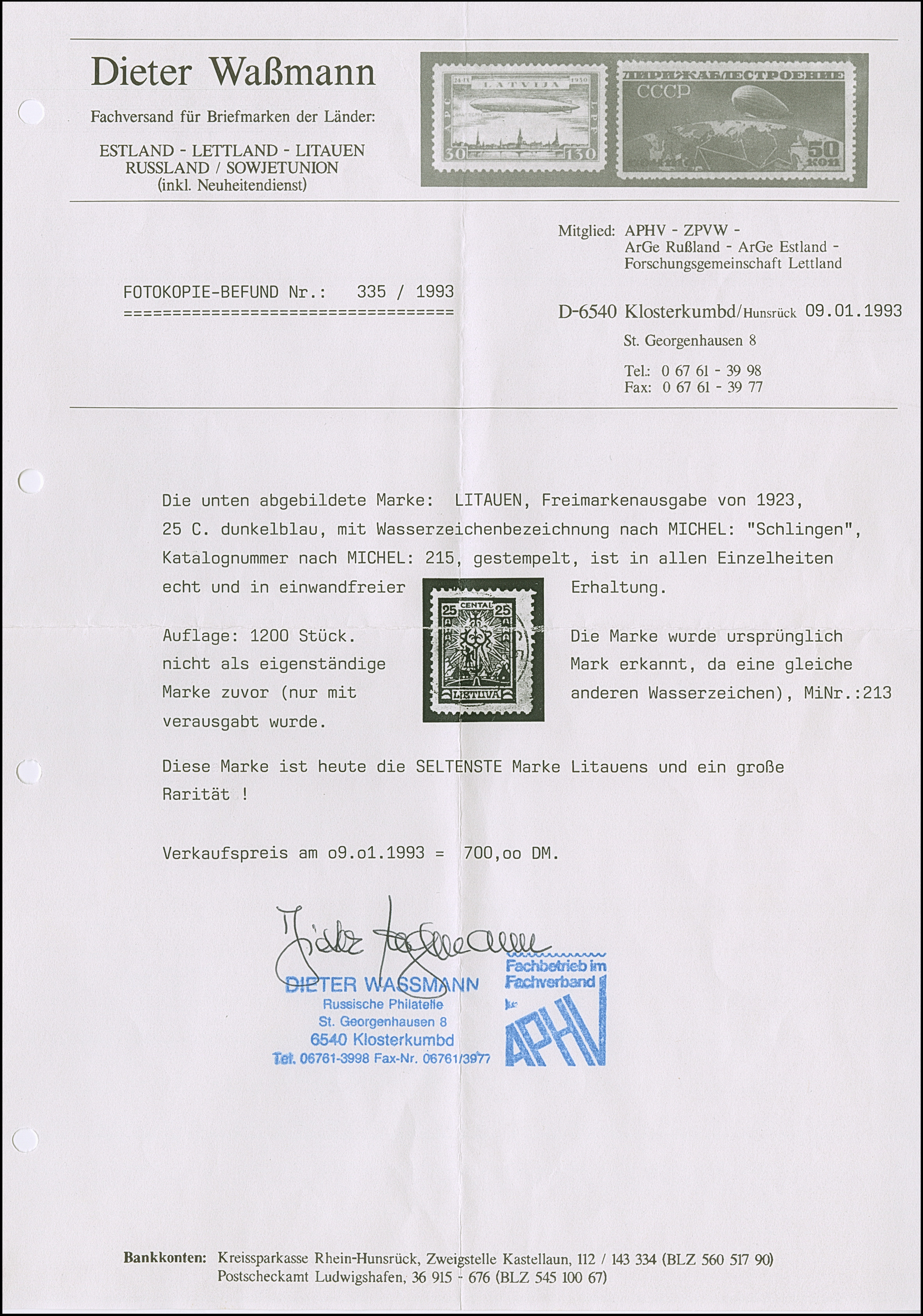 Provenance: Dr. Hubert Schrödinger - BALTICA (361. Heinrich Köhler-Auction, 2015)
