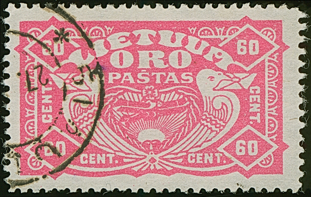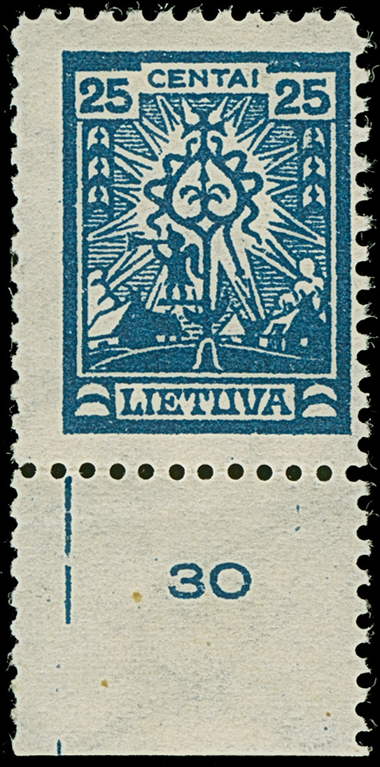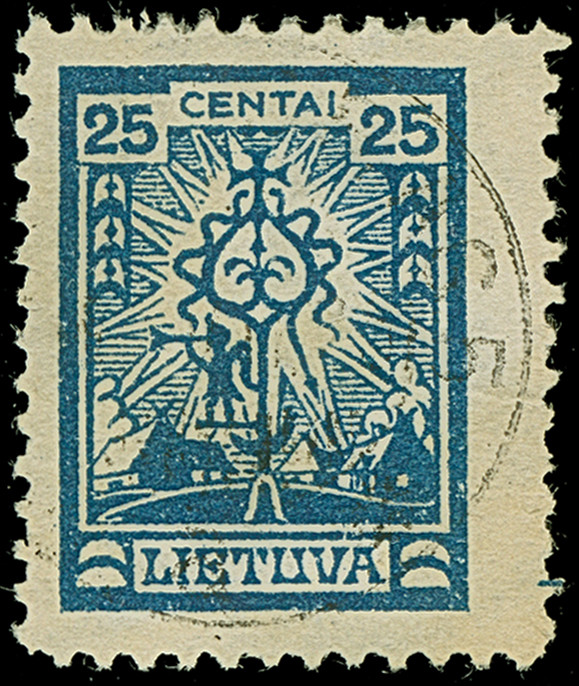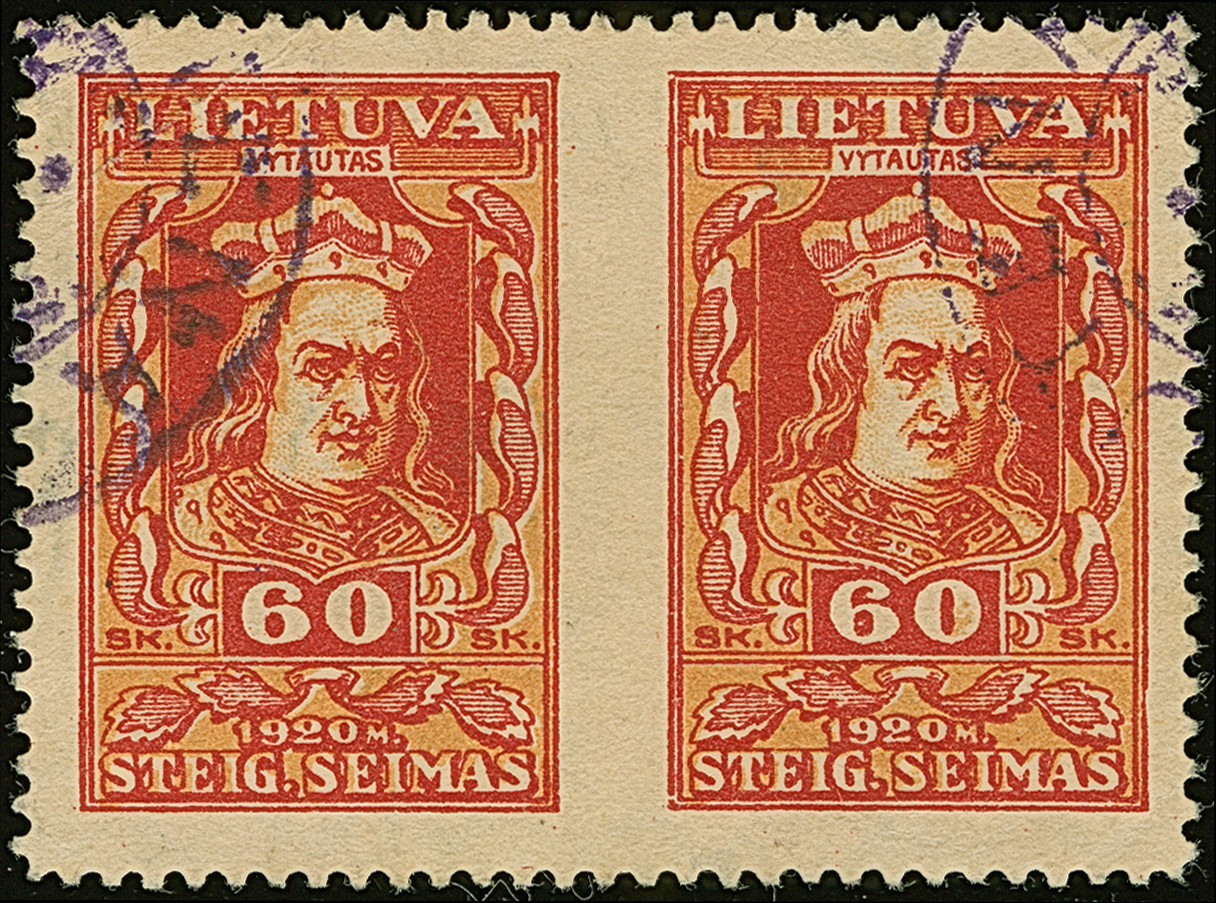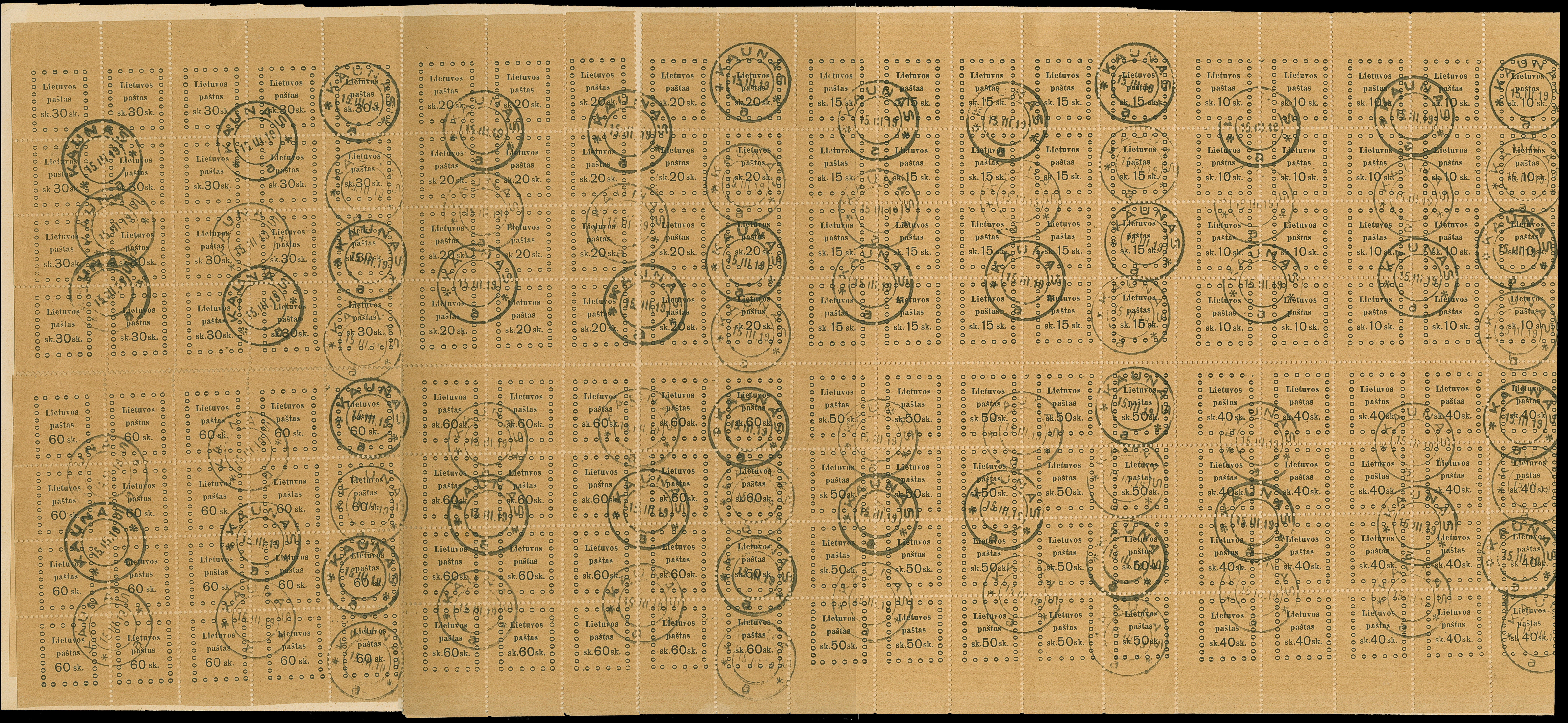 1919, 2nd and 3rd. Kaunas Issue, complete se-tenant sheet, used with cds. “KAUNAS 15.III.19”, lower left sheet detached, otherwise fine