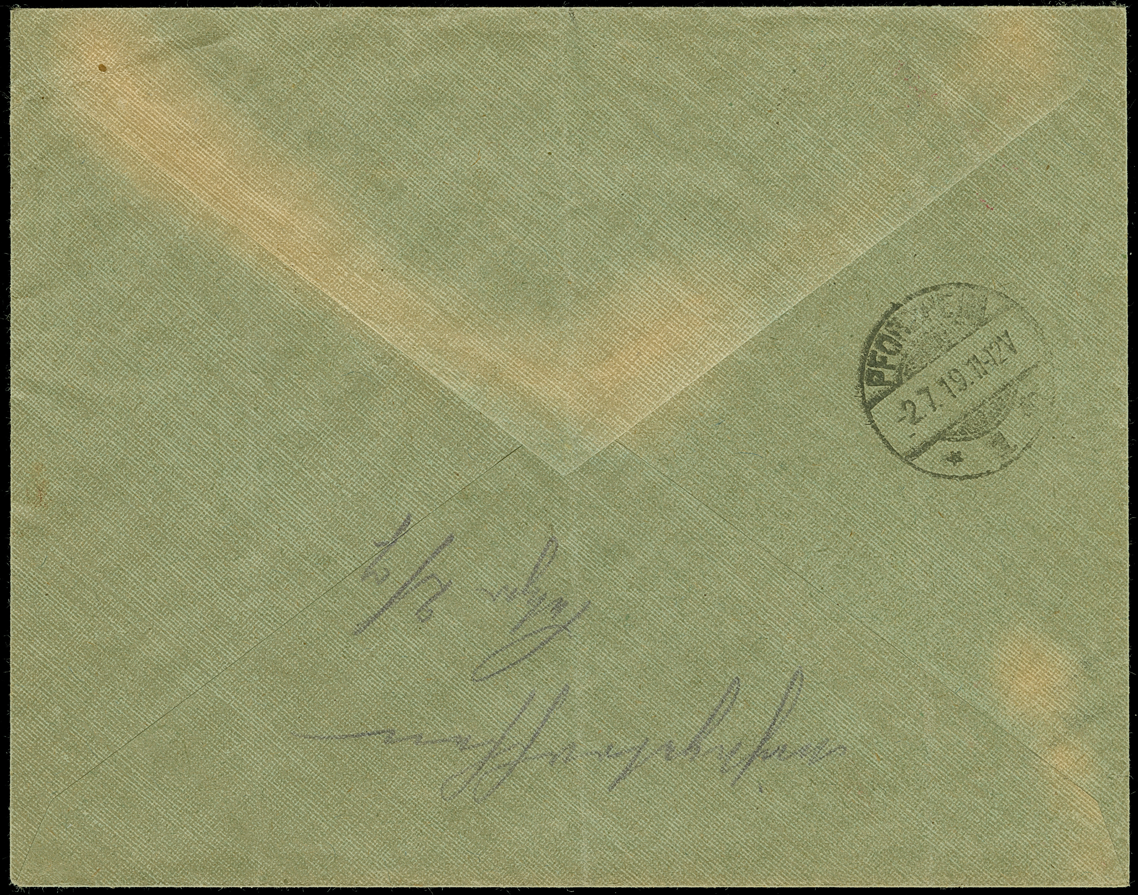 1918, First Vilnius issue 10-15 skatiku and second Vilnius Issue 20-30 skatiku, tied by provisional straight-line "GRODNO" to cover to Wimpfen, as the provisional cancel is hardly visible additionally stamped with German cds. "Feldpost -2.1.19", cover shortened at left, otherwise fine, a very rare and atrractive entire
