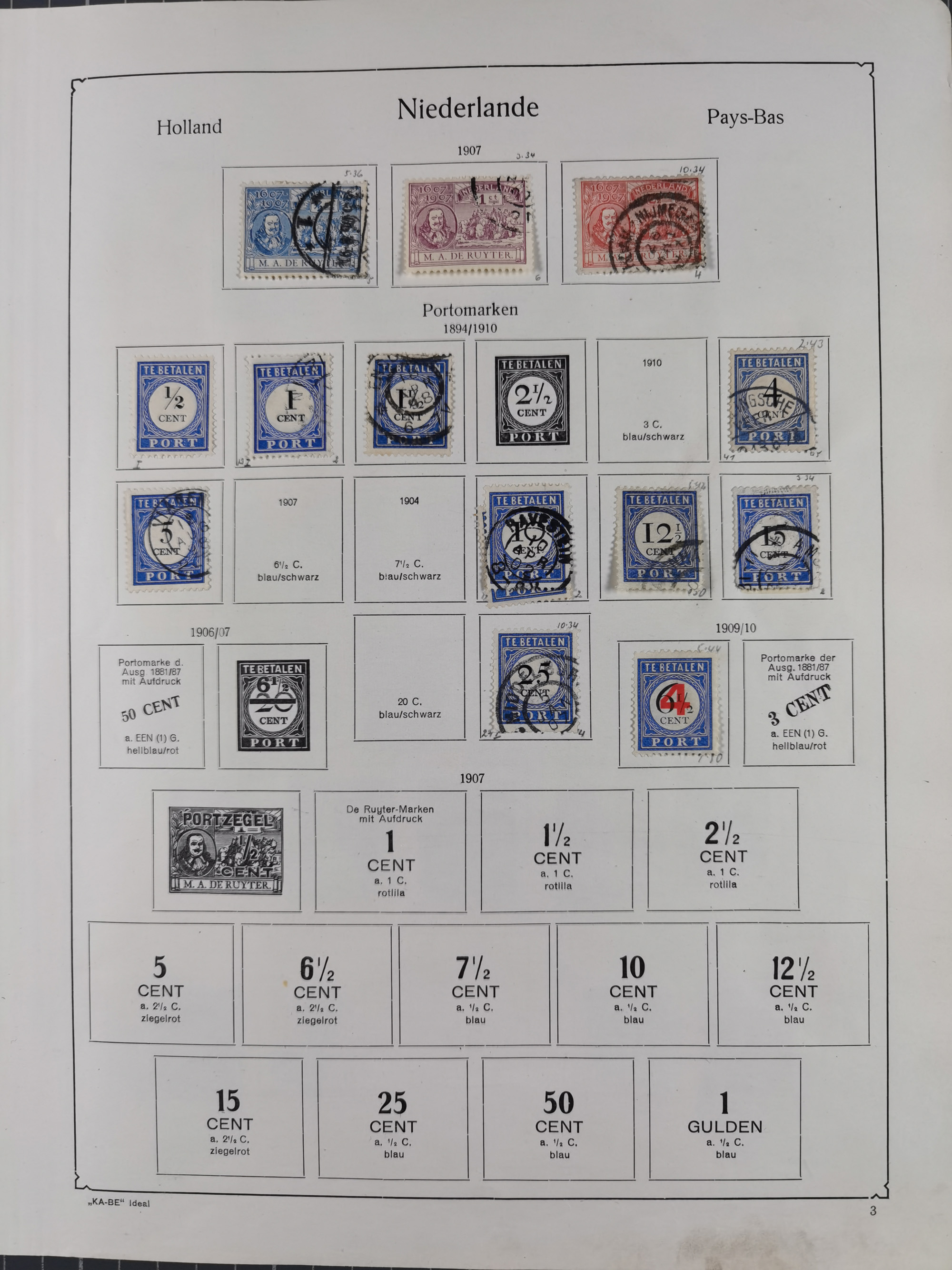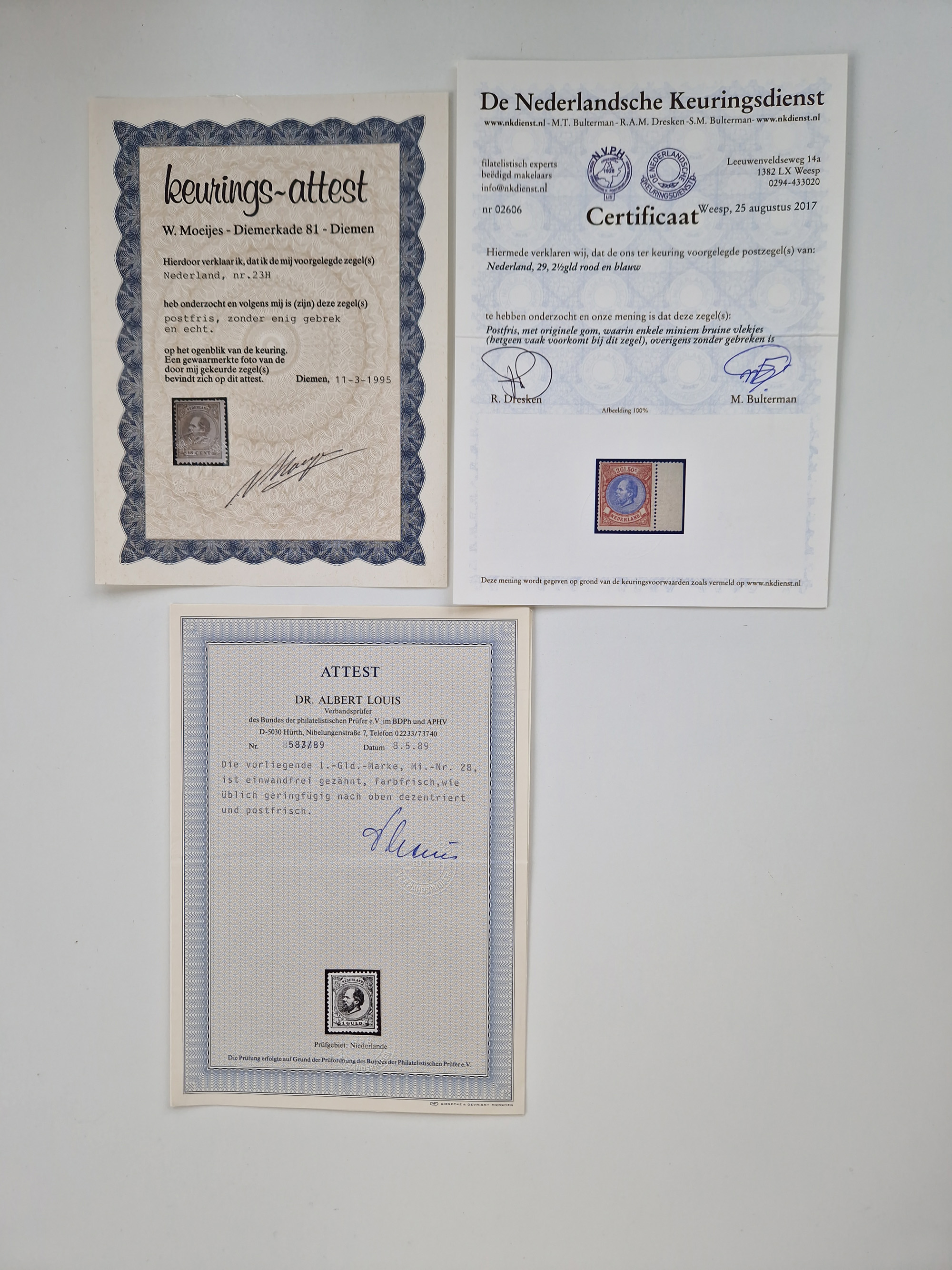 1852/1995, mostly unused and mint never hinged collection incl. official and postage due stamps with a lot of better and complete issues with a.o. Mi.-Nr. 2x (certificate Moeijes), Mi.-Nr. 3 mint never hinged, Mi.-Nr. 12 unused with full original gum (certificate Muis), Mi.-Nr. 28 mint never hinged (certificate Moejis), Mi.-Nr. 29 mint never hinged (Certificate De Nederlandsche Keuringsdinst), Mi.-Nr. 45 mint never hinged (certificate Muis), Mi.-Nr. 66 mint never hinged (certificate Moeijs). Mi.-Nr. 92 mint never hinged (corticate Muis), Mi.-Nr. 132-133 mint never hinged, Mi.-Nr. 151-163B mint never hinged, Mi.-Nr. 453-56 mint never hinged, fire proof stamp Mi.-Nr. 1-7 mint never hinged (signed), post parcel tax stamp Mi-Nr. 1 mint never hinged (certificate N.V.P.H) and 13 telegraph stamps unused/mint never hinged incl. Mi.-Nr. T7 mint never hinged (certificate Muis), mostly fine, a great collection