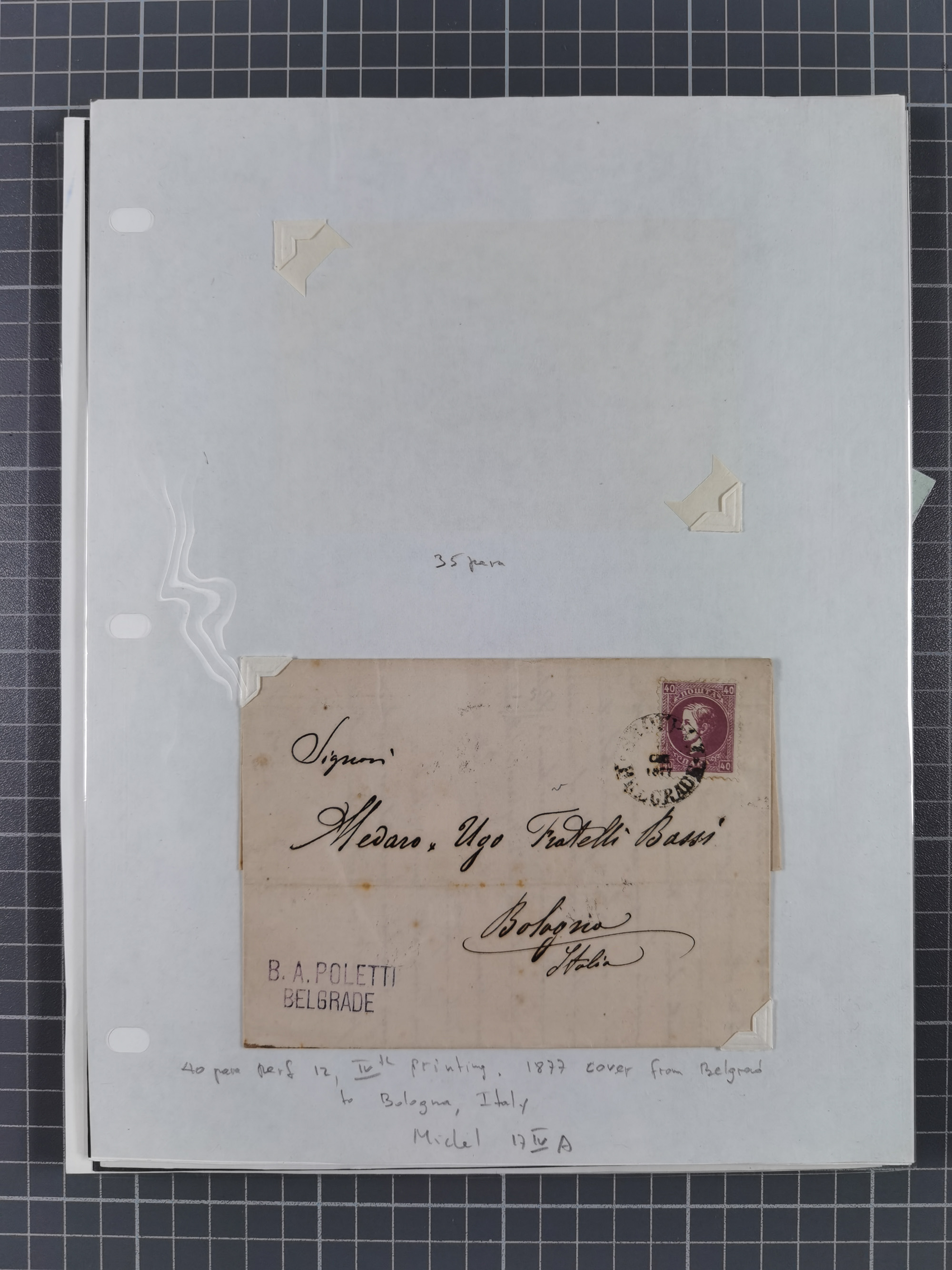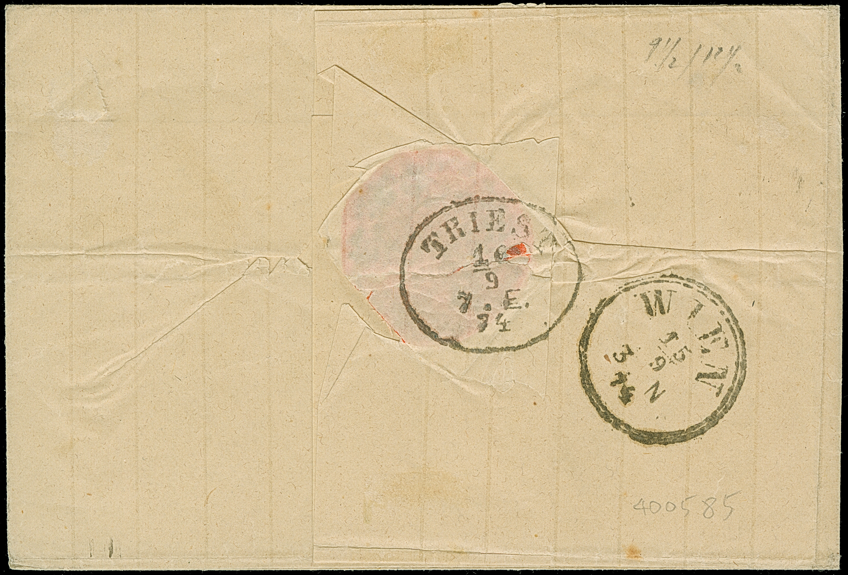 1869/71, Prince Milan IV. 35 pa. green tied by cds. “BEORGRAD 31.12.(75)” to letter sheet with black hand stamp “PD” via Wien to Triest with the arrival mark, fine
