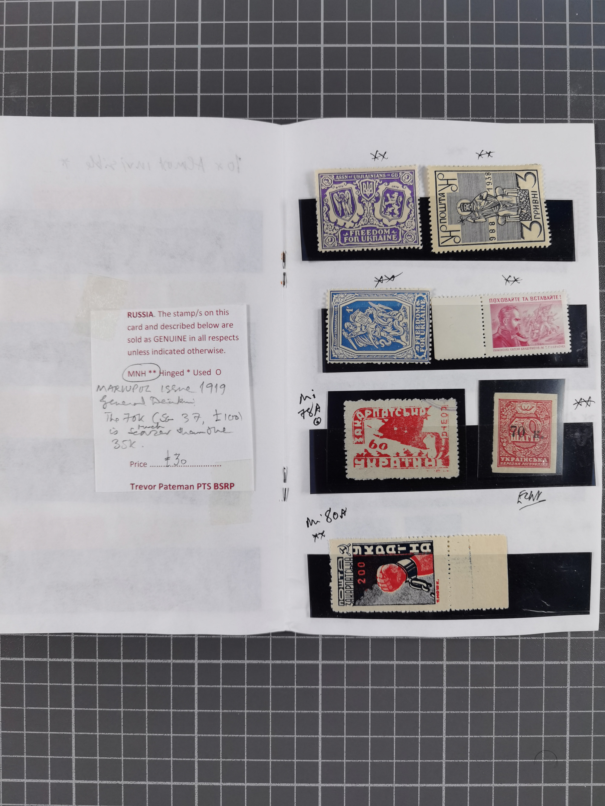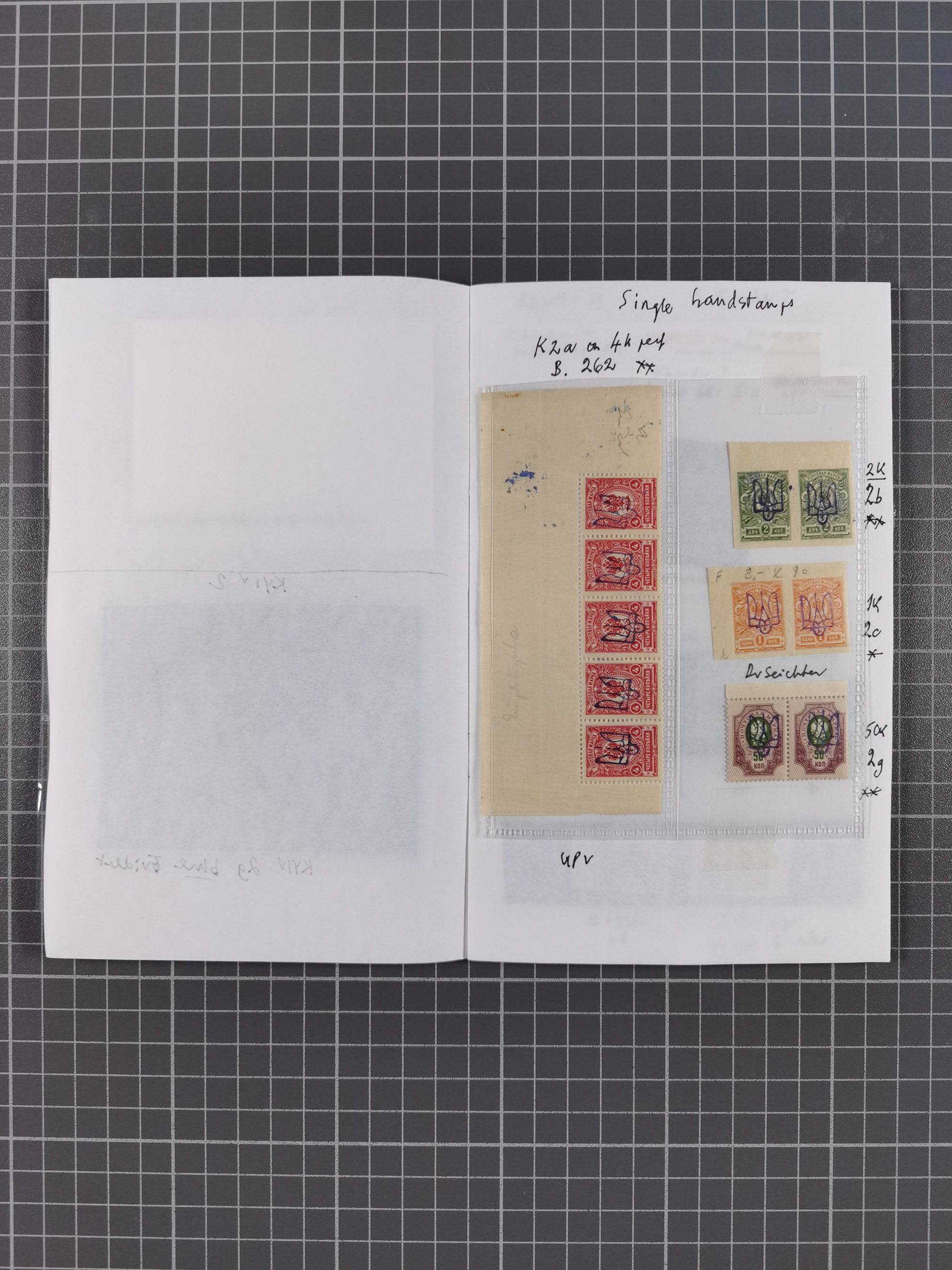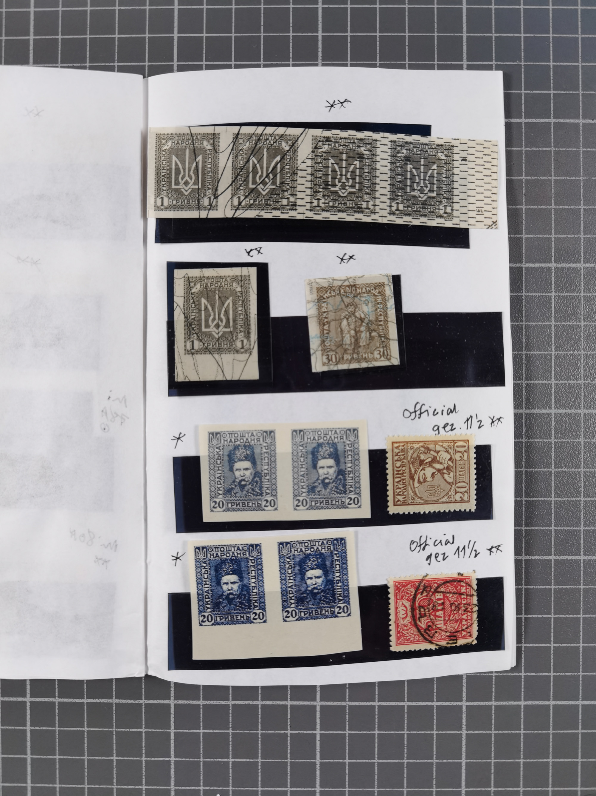 1918/20, Ukraine Tridents, over 100 unused and used stamps, including some multiples, with a fine choice of local overprints including the Romanov issue, noted Kiev, Kharkov, Poltava, etc., small part of postmarks with usages from Olgopol, Sarnovskoe and Murafa, a few values signed, neatly housed in one booklet and expertly attributed to Bulat numbers. Except for the occasional fault in overall fine condition