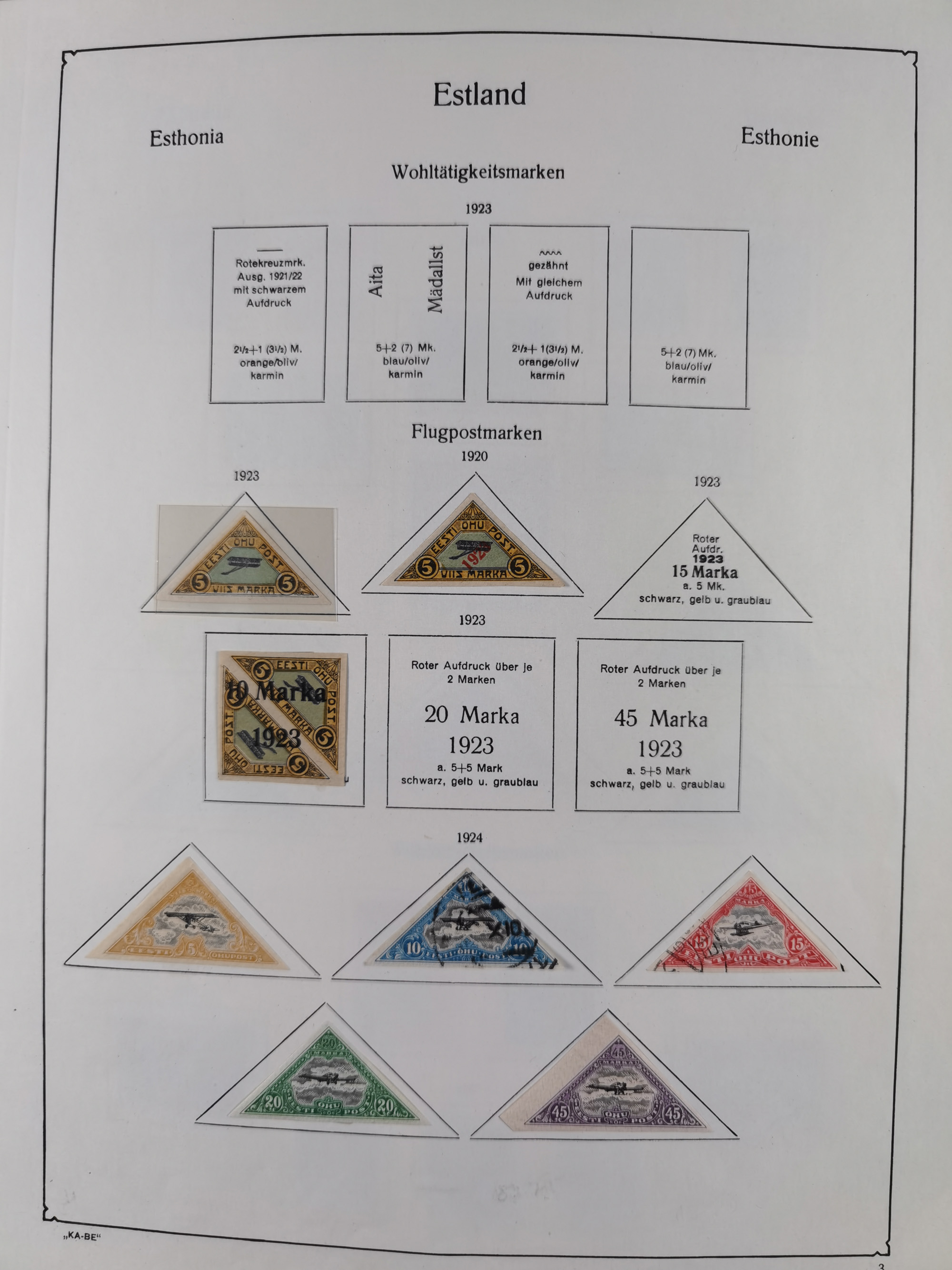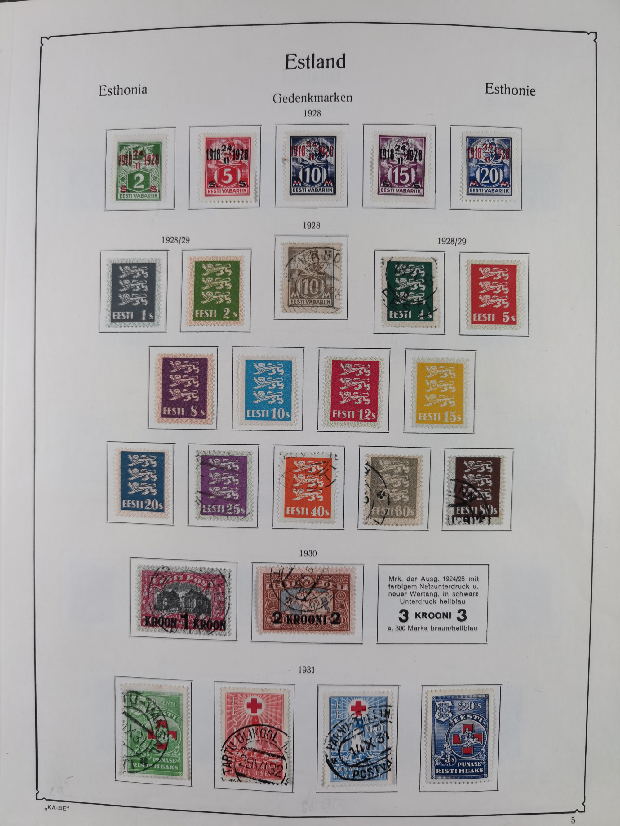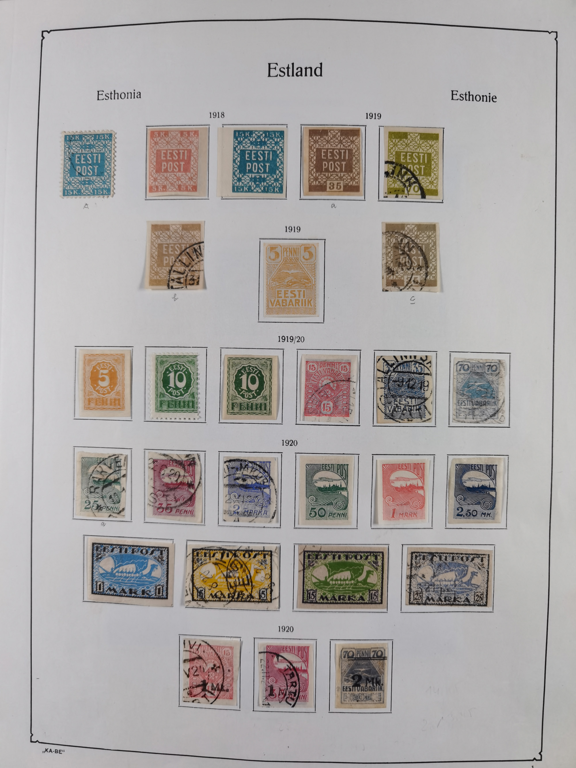 1918/1954, used and unused collections Estonia incl. e.g. Mi.-Nr. 29AUw (2), 164x MNH, Latvia, Lithuania incl. Mi.-Nr. 141F unused signed Richter, 246-56 and 257-67 MNH, good condition
