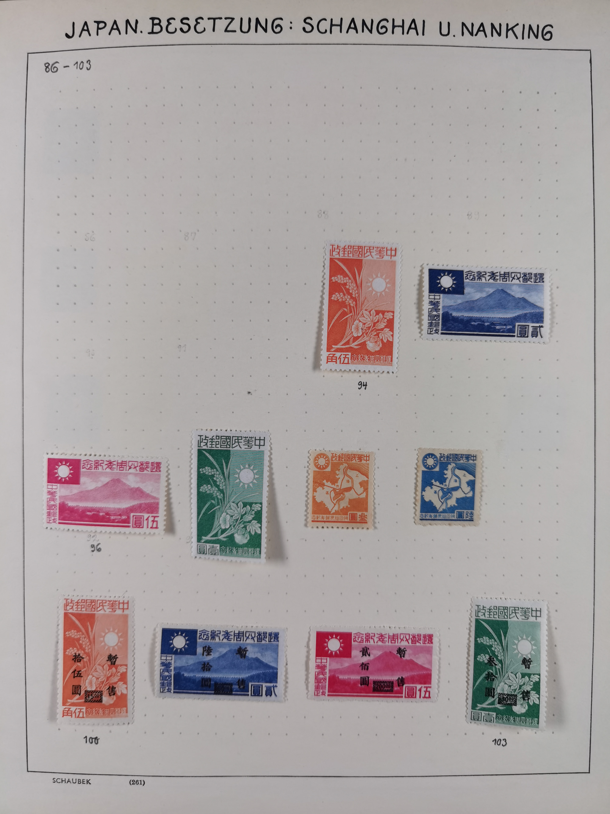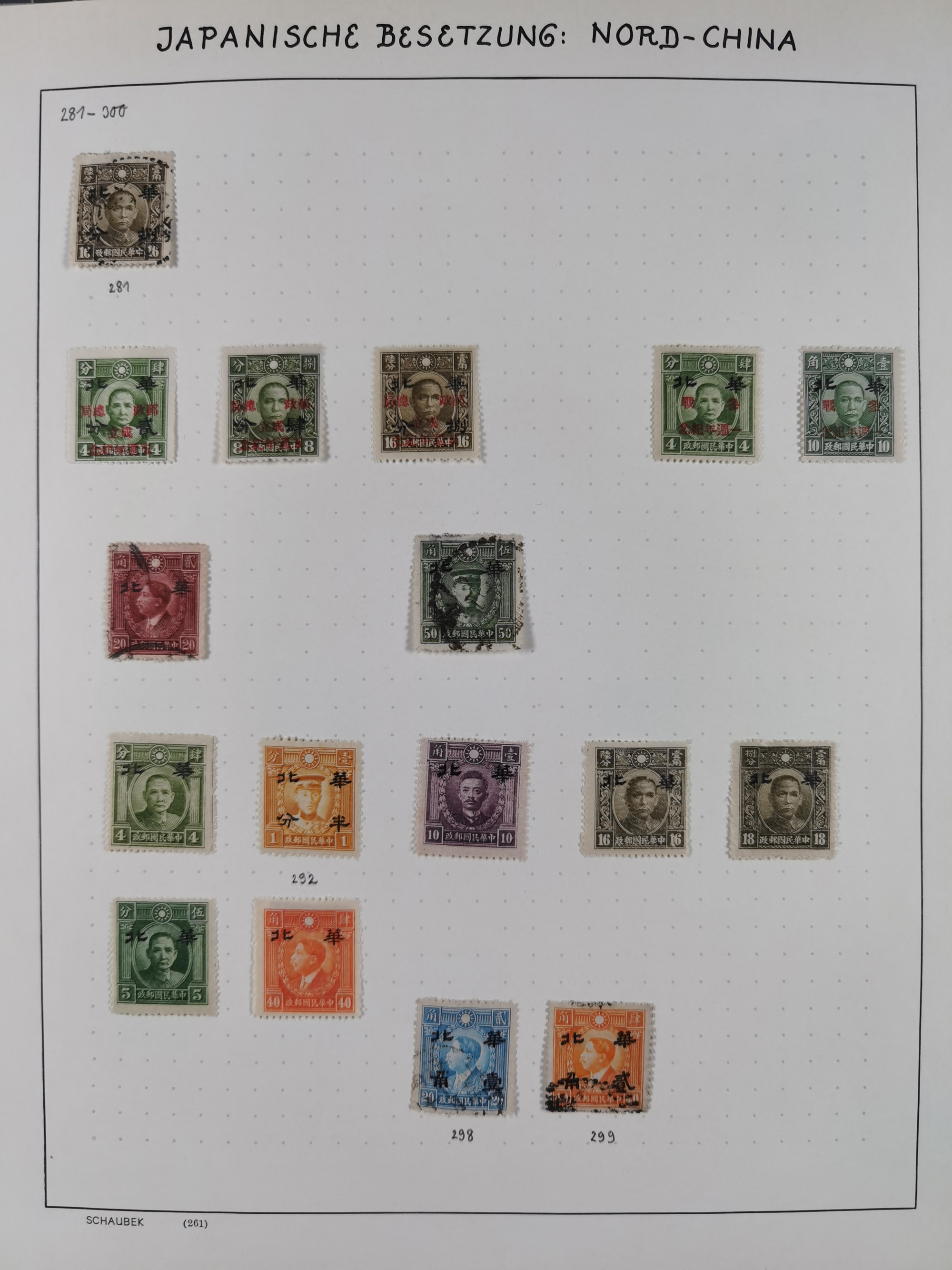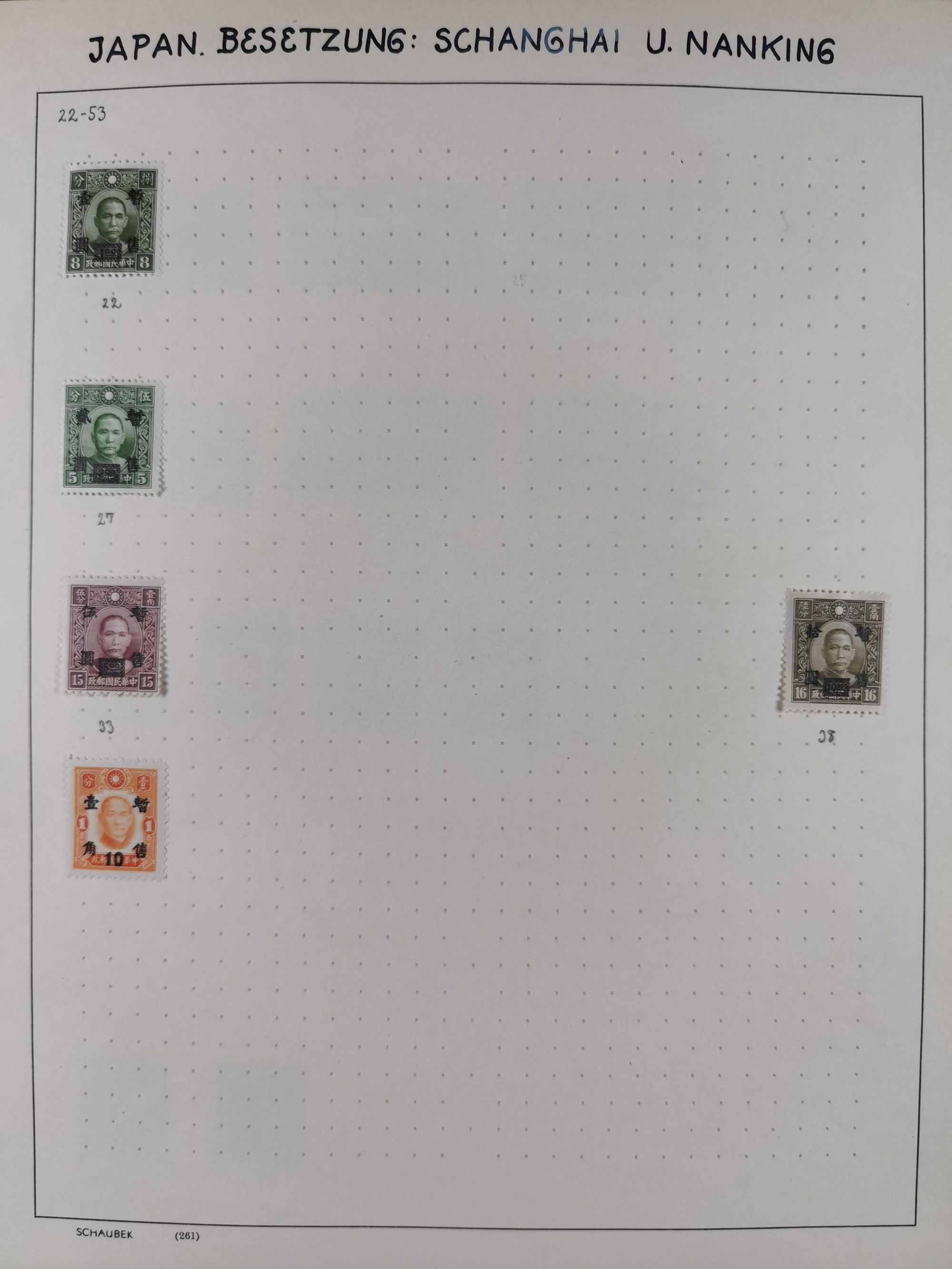 1941/45, collection in thick album, with focus on China, including northern China specified by various provincial imprints, southern China Mi.No. 1-56 apparently complete, various central China, etc., also Occupations of Malaya, Philippines and Burma, including some documents and units, mostly fine