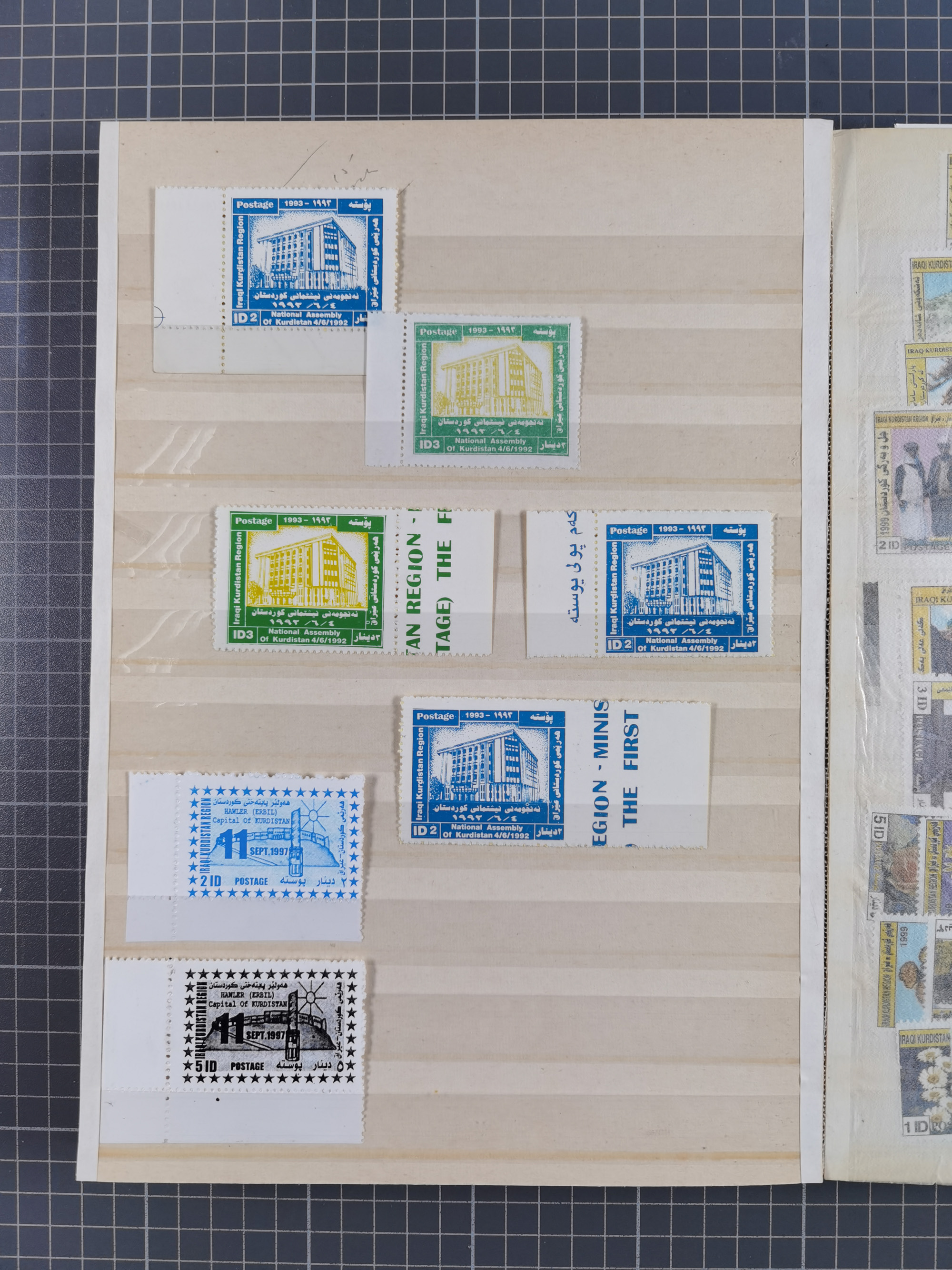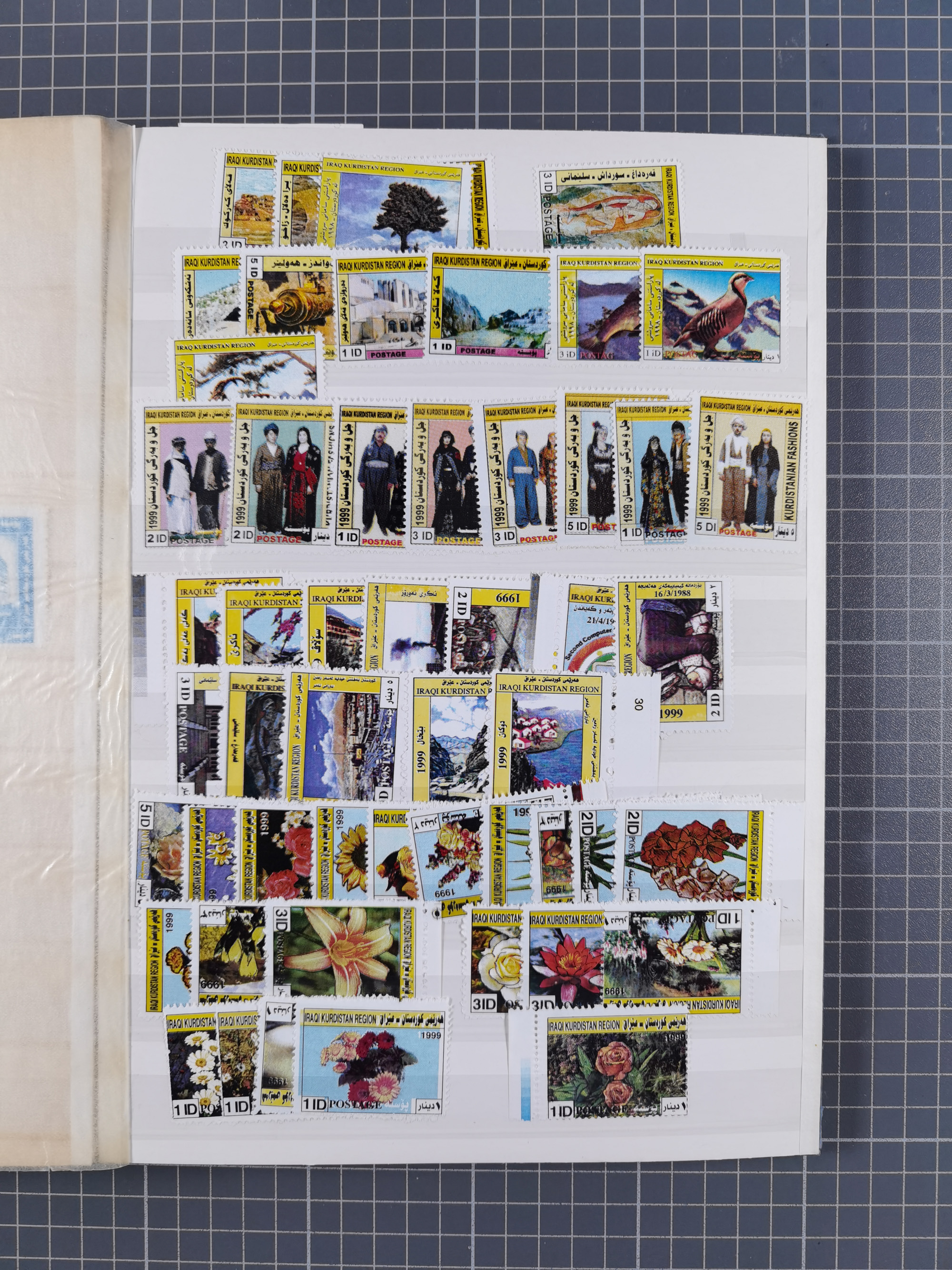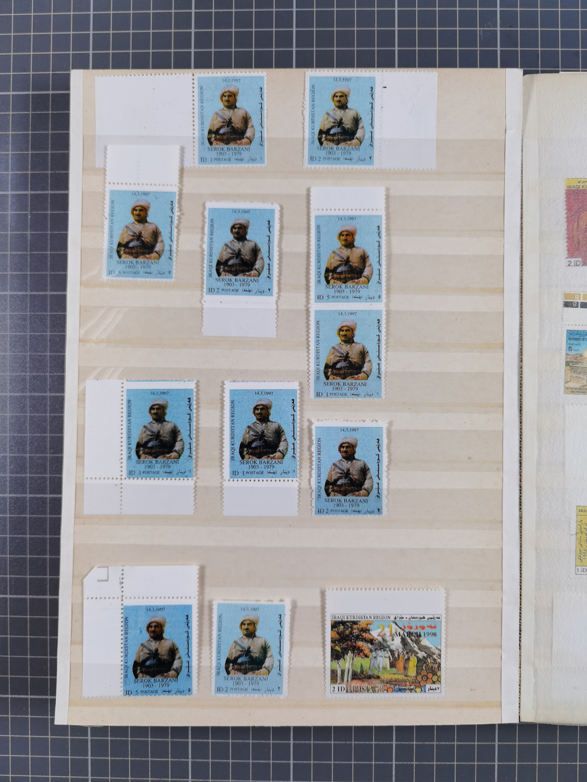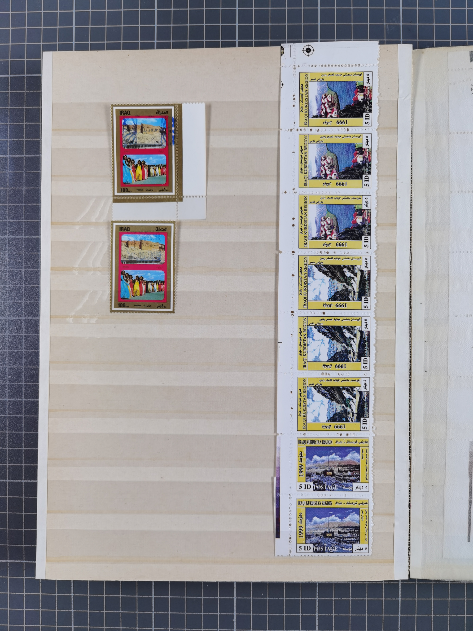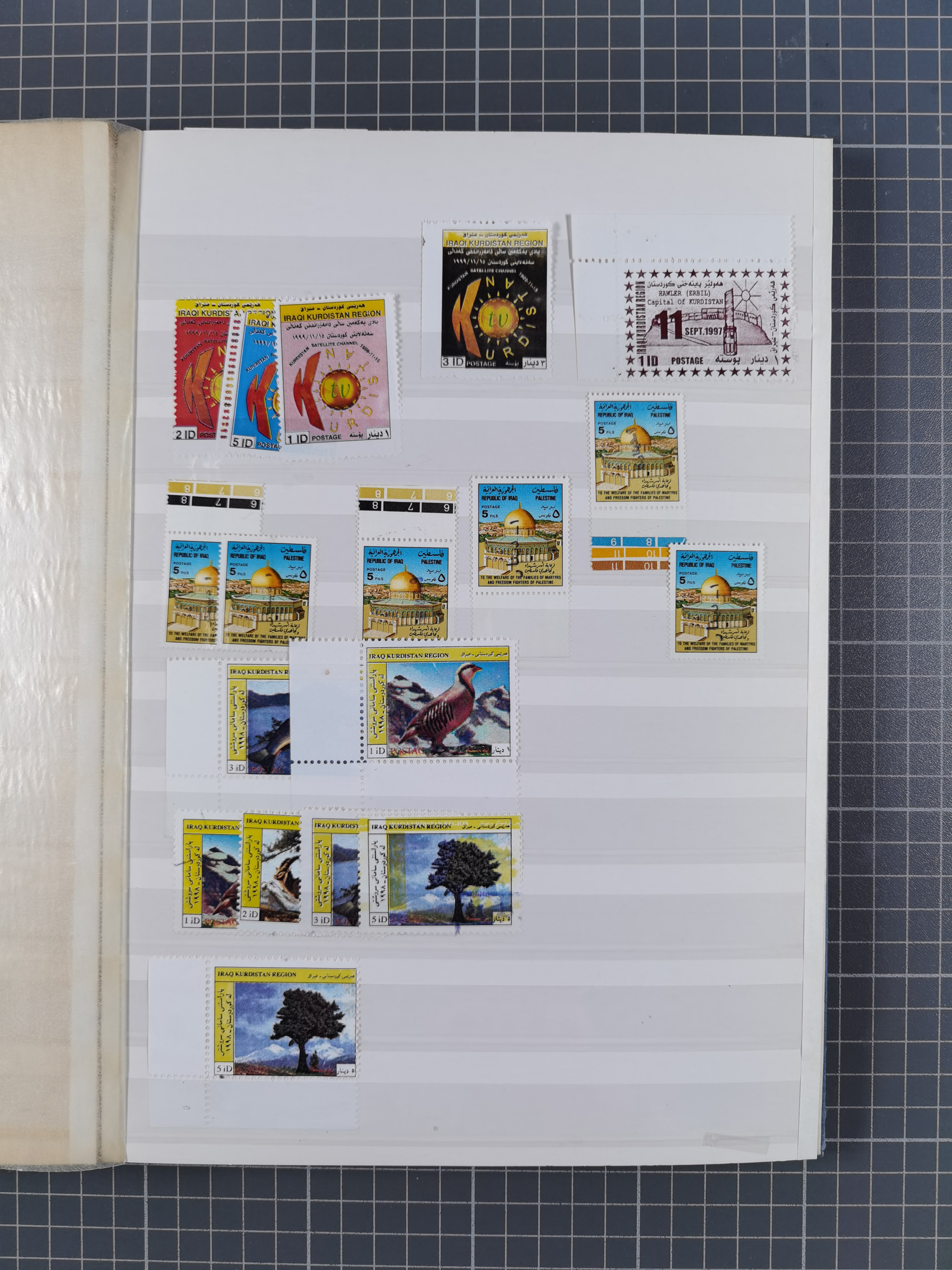 1919/99, Collection mainly unused/mint never hinged with blocks and margin imprit stamps of Mossul issue, from 1999 Iraqi Kurdistan Barzani 1 Id. & 5 Id. se-tenant pair, Palestine overprinted issue, generally fine, a scarce assembly.
