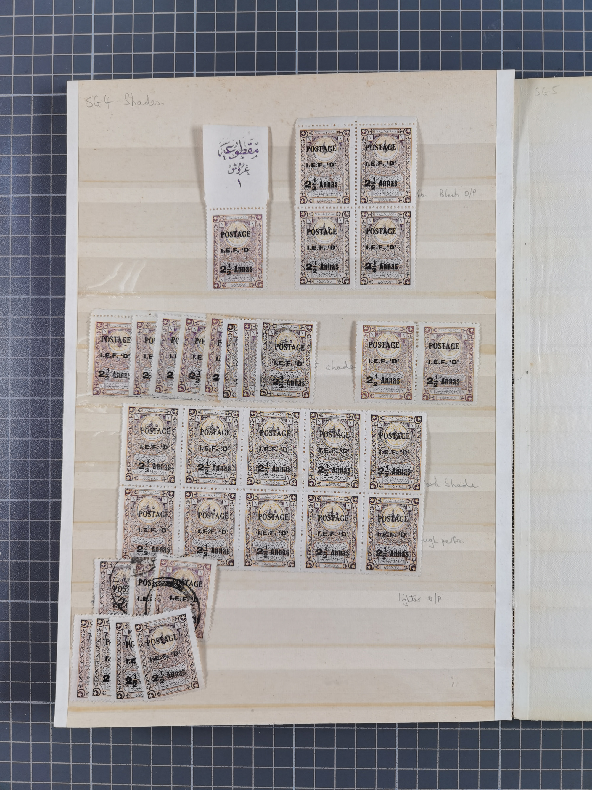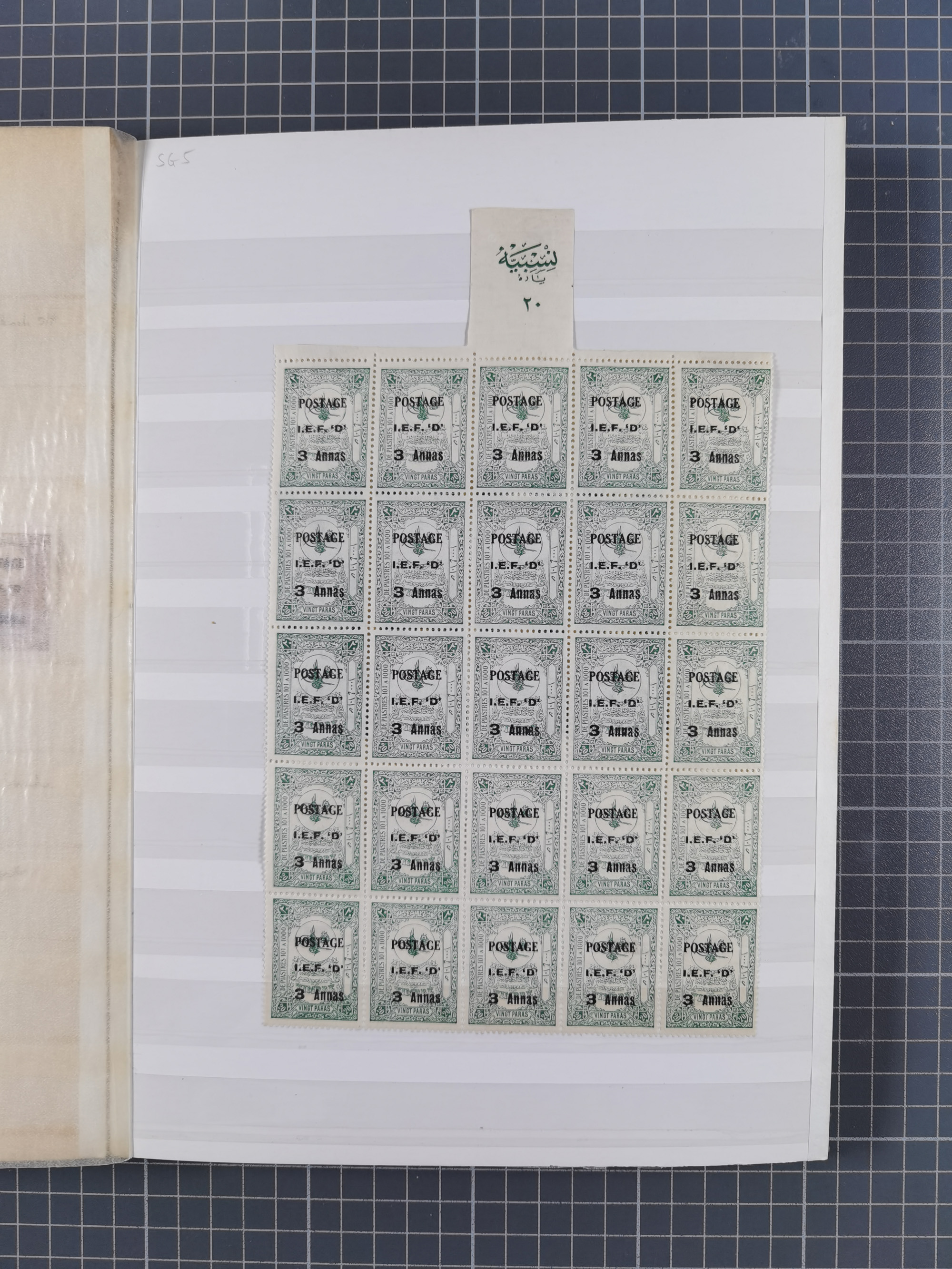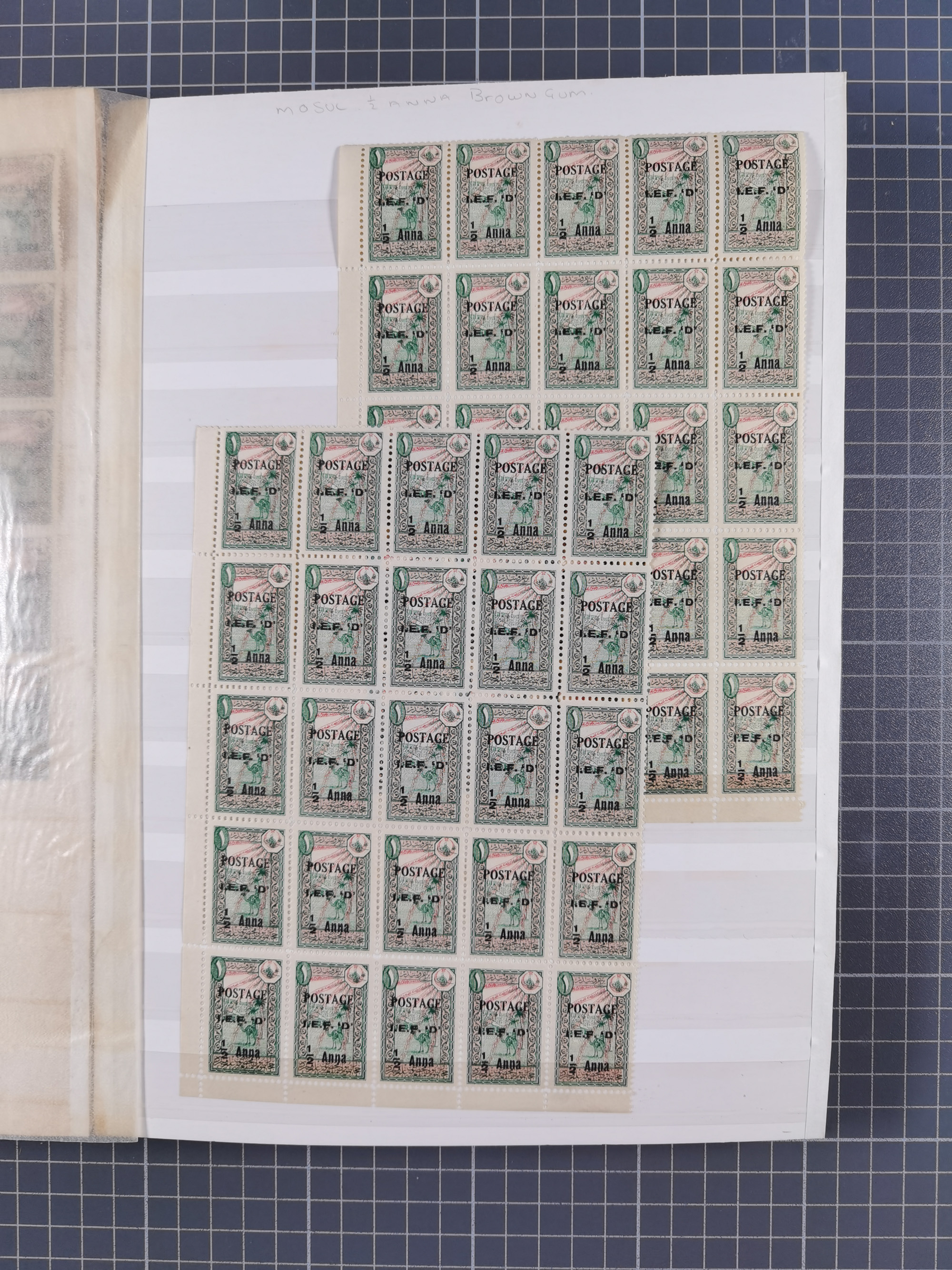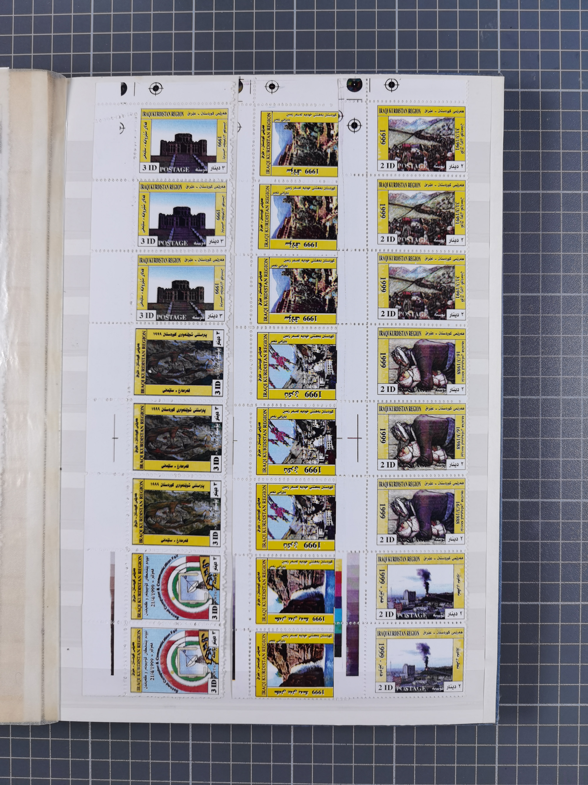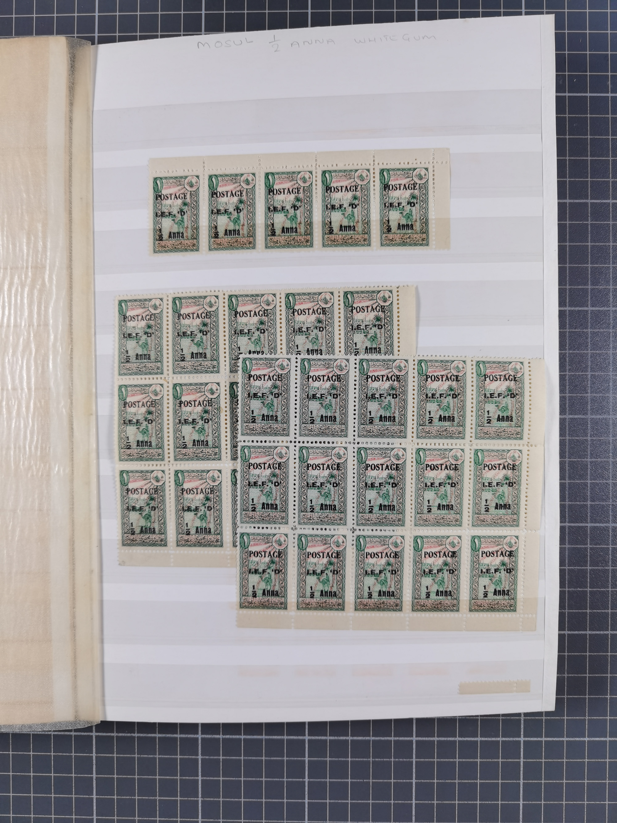 1919/99, Collection mainly unused/mint never hinged with blocks and margin imprit stamps of Mossul issue, from 1999 Iraqi Kurdistan Barzani 1 Id. & 5 Id. se-tenant pair, Palestine overprinted issue, generally fine, a scarce assembly.
