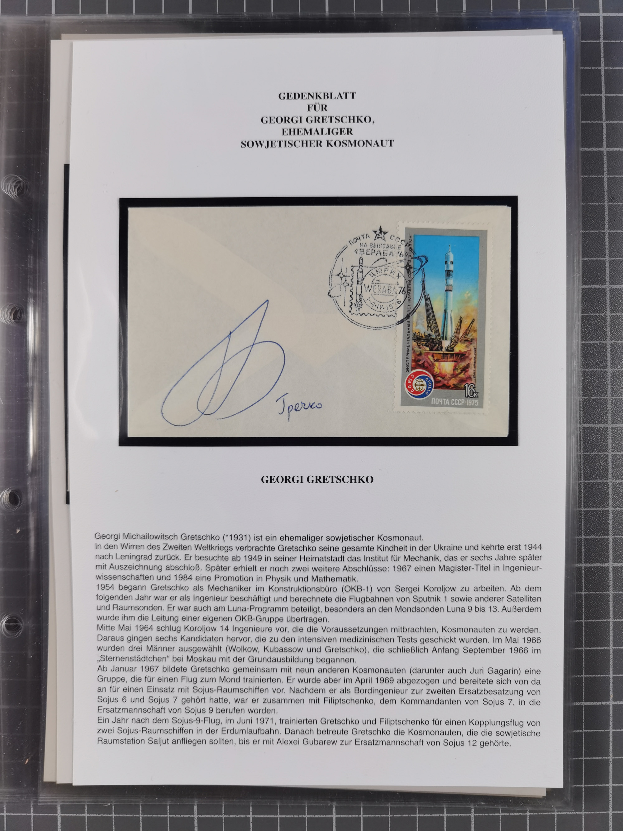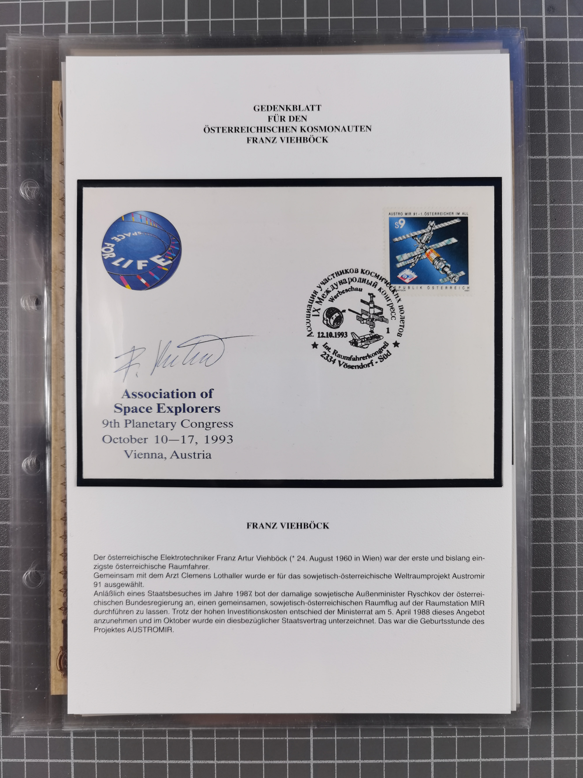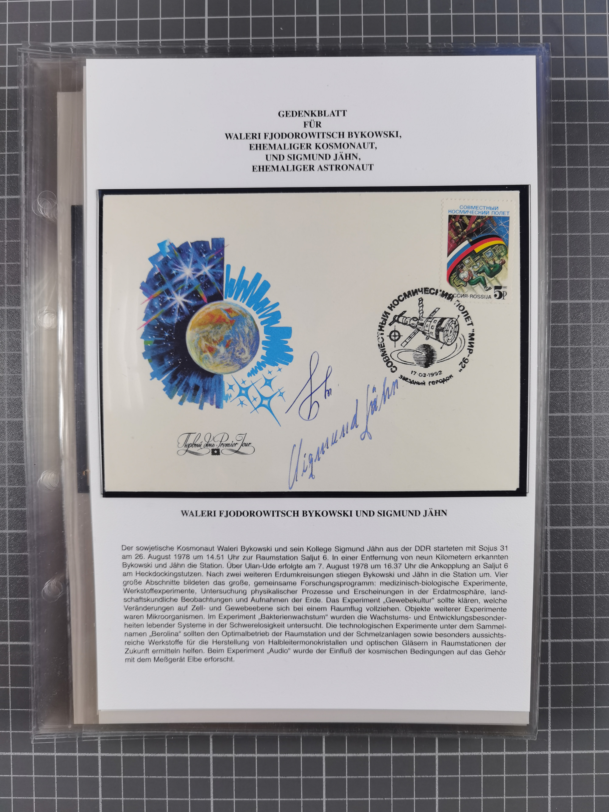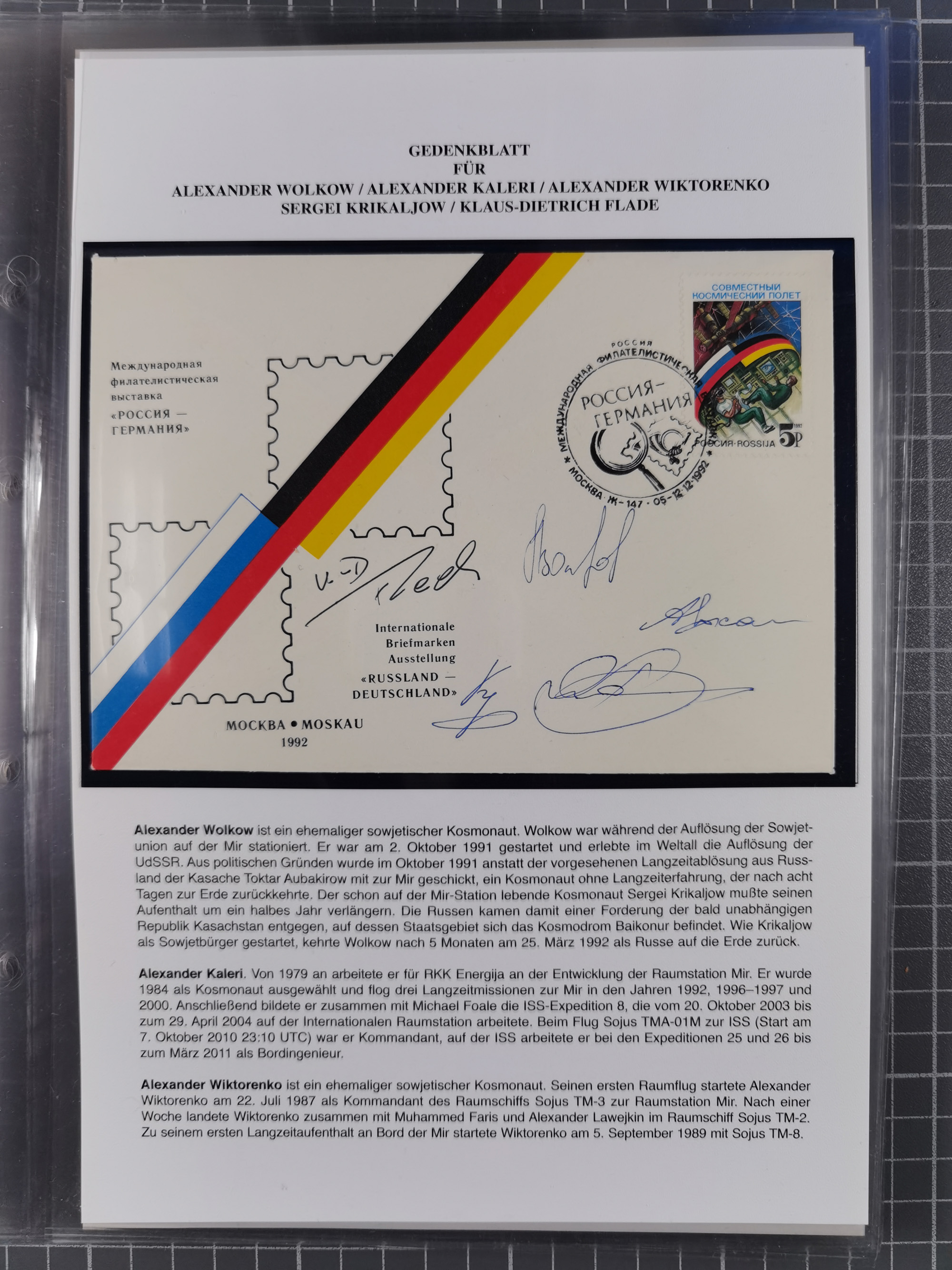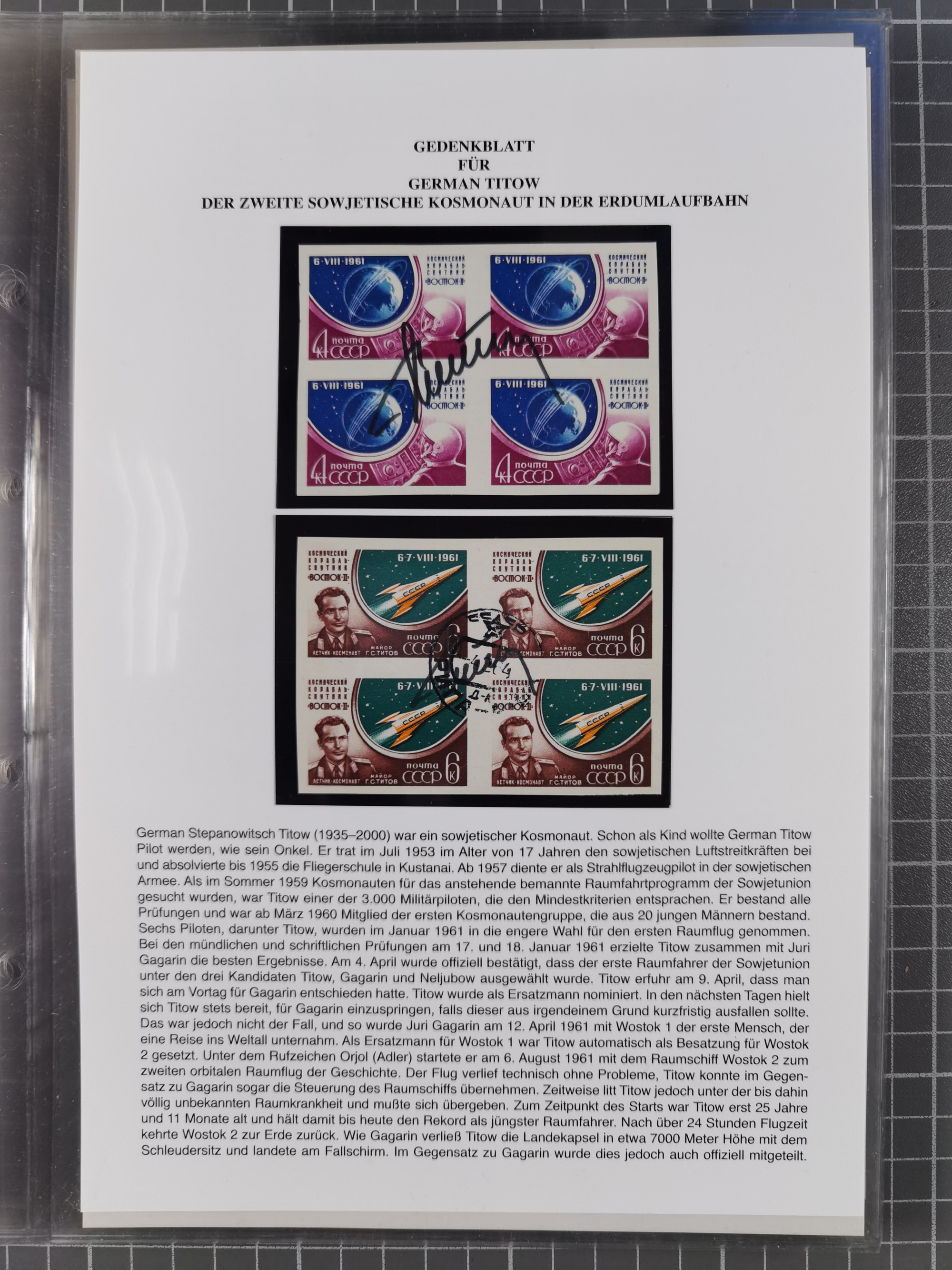 1927/92, AUTOGRAPHEN: Sammlung mit über 70 thematischen Briefen/Karten und Blocks mit insgesamt ca. 130 Unterschriften von Kosmonauten/Astronauten, gute Erhaltung, aus Sieger-Abo