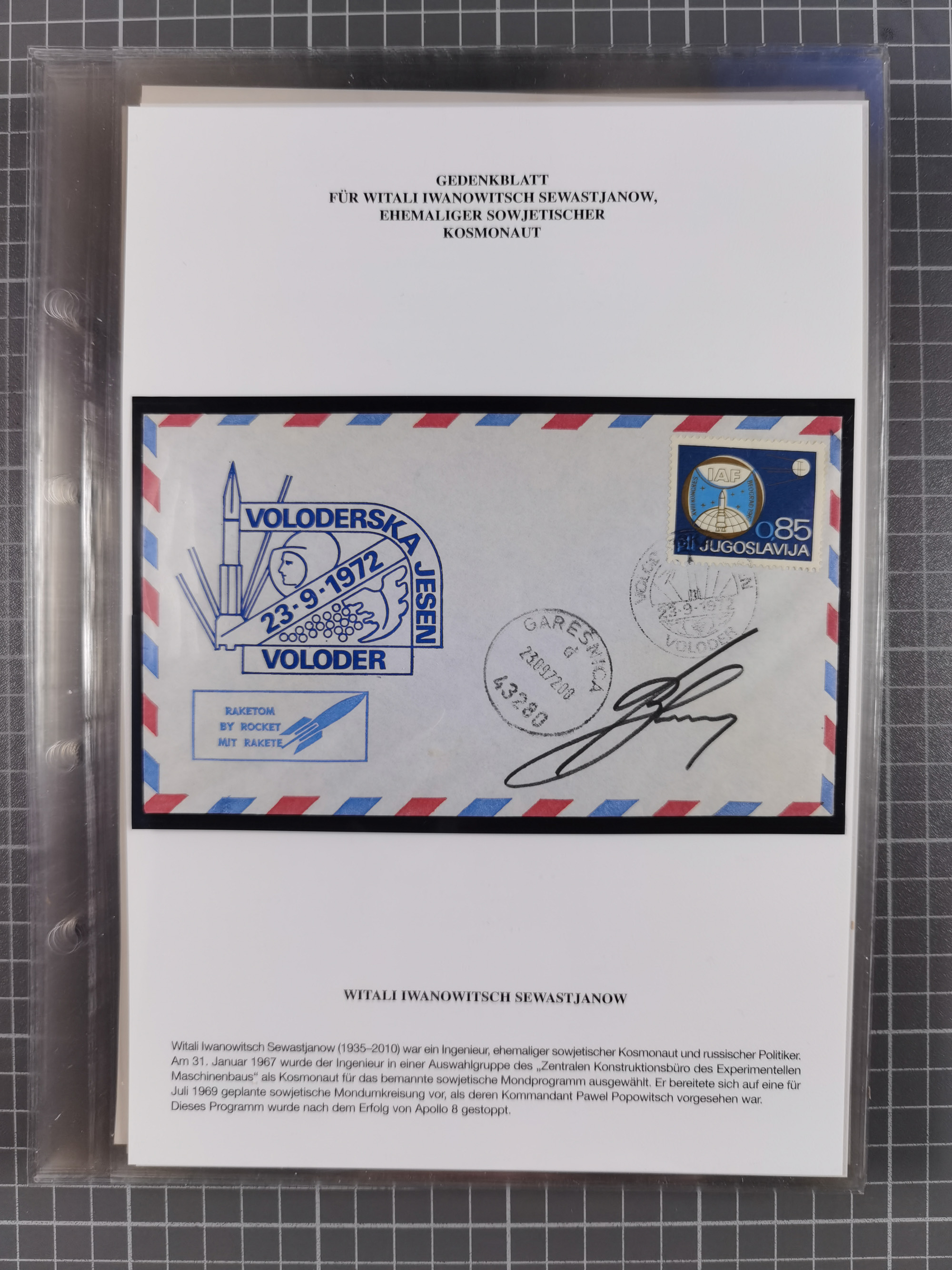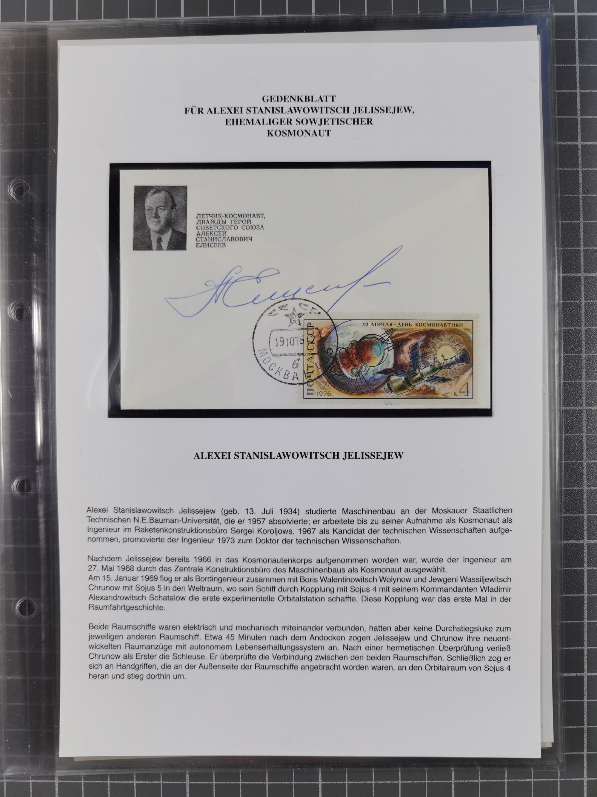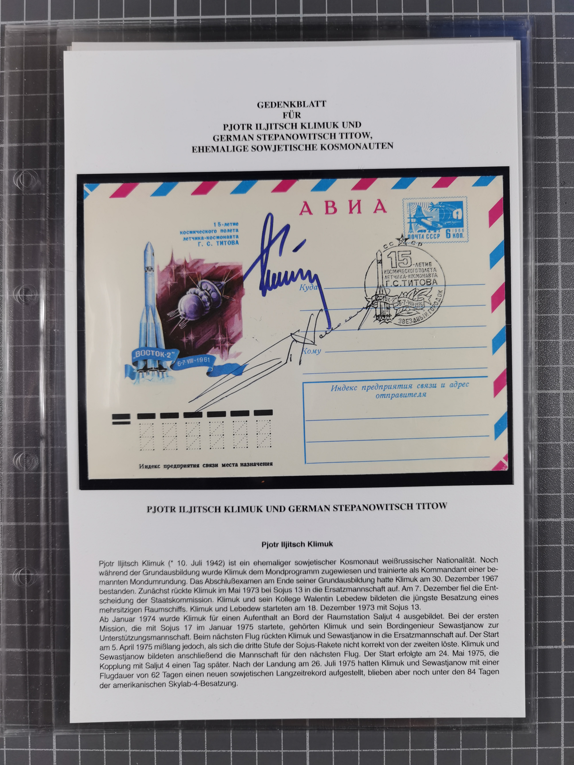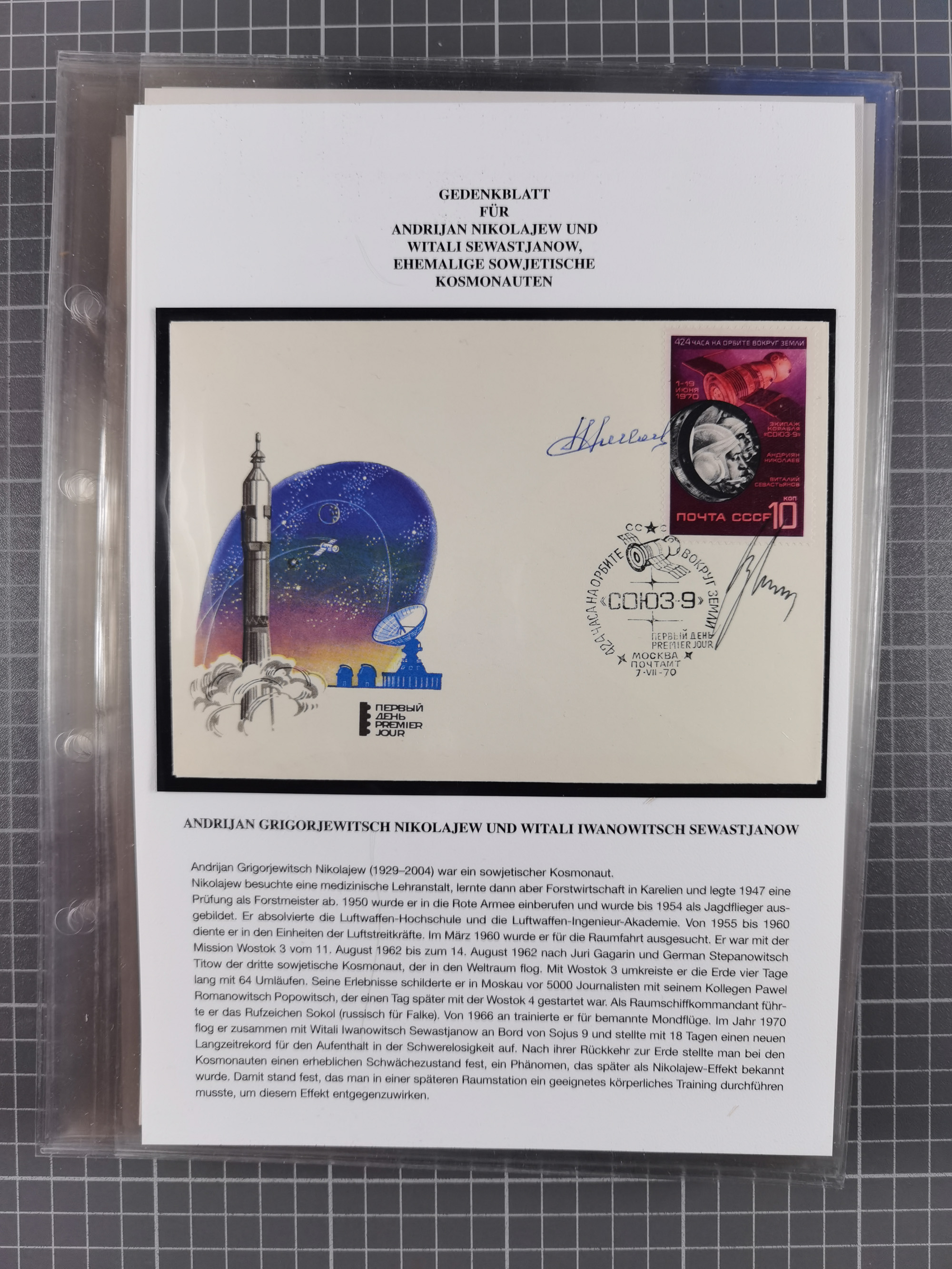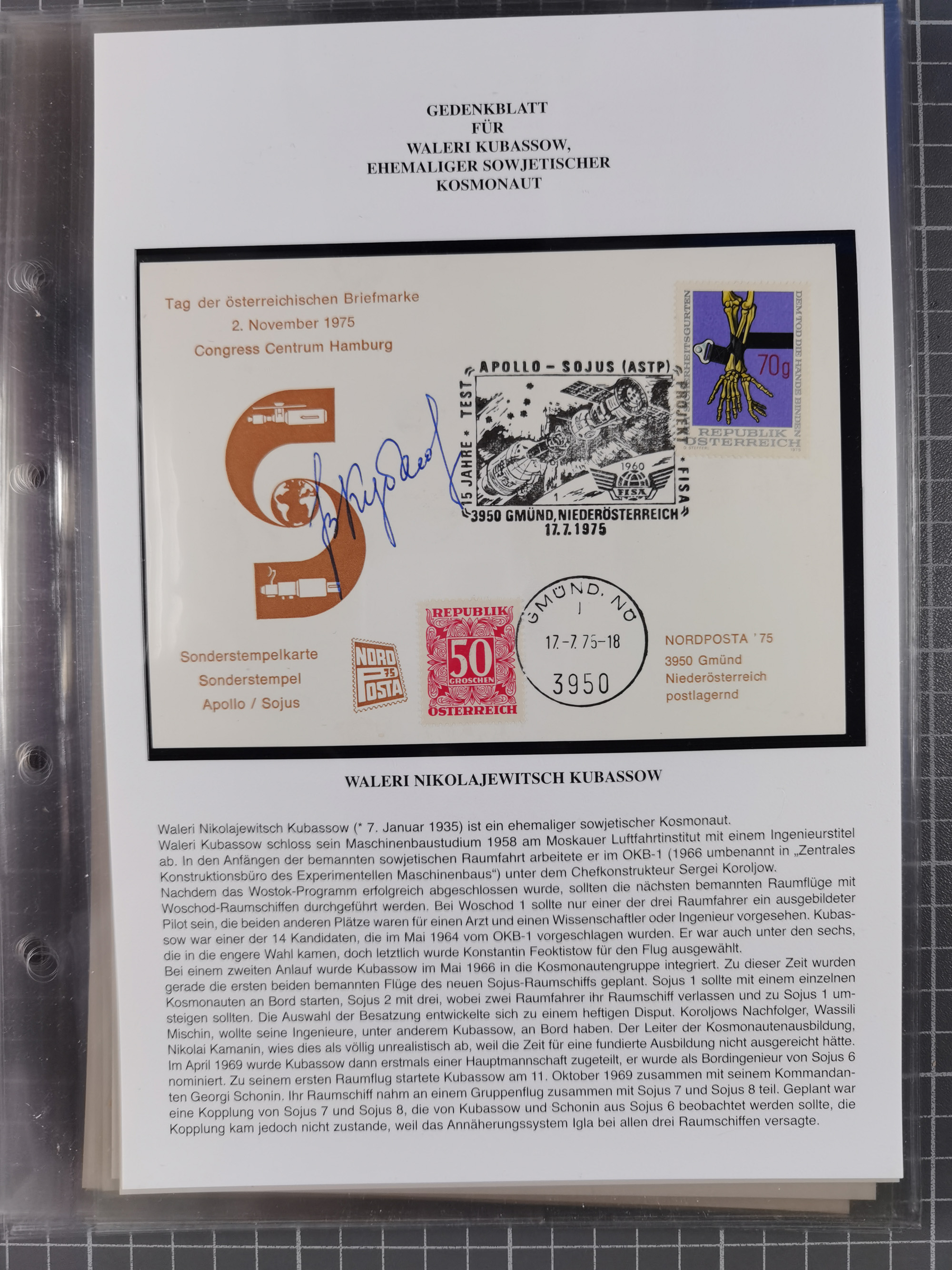 1927/92, AUTOGRAPHEN: Sammlung mit über 70 thematischen Briefen/Karten und Blocks mit insgesamt ca. 130 Unterschriften von Kosmonauten/Astronauten, gute Erhaltung, aus Sieger-Abo