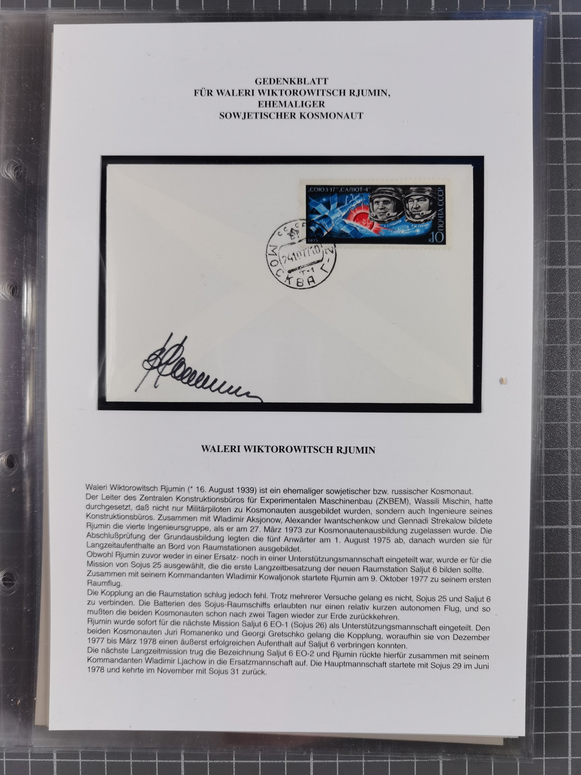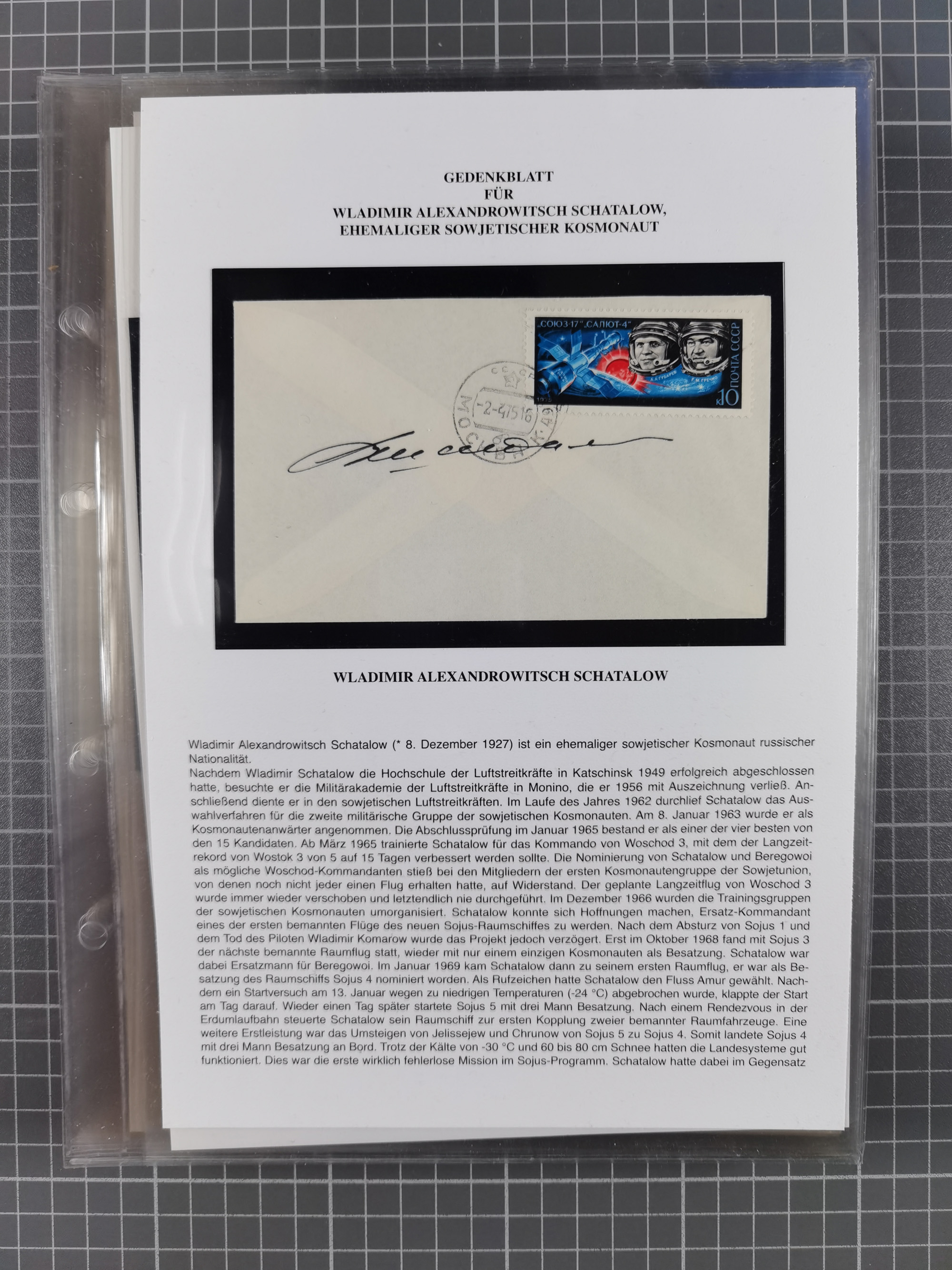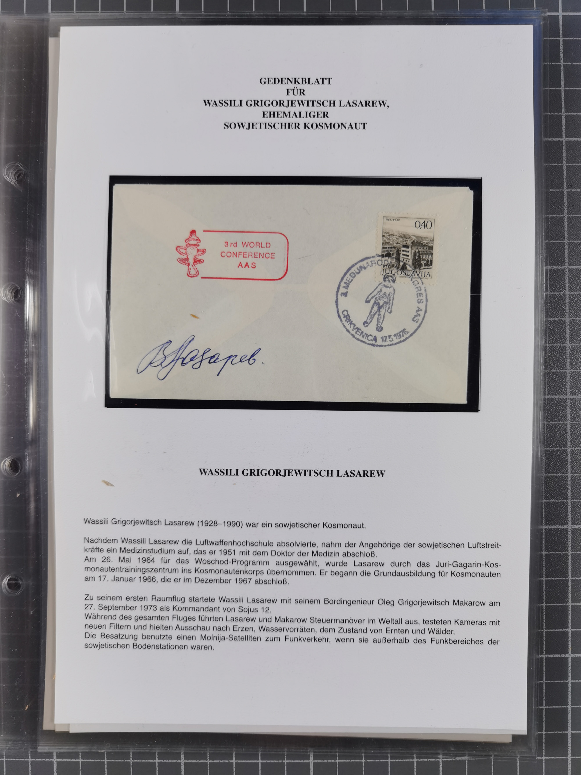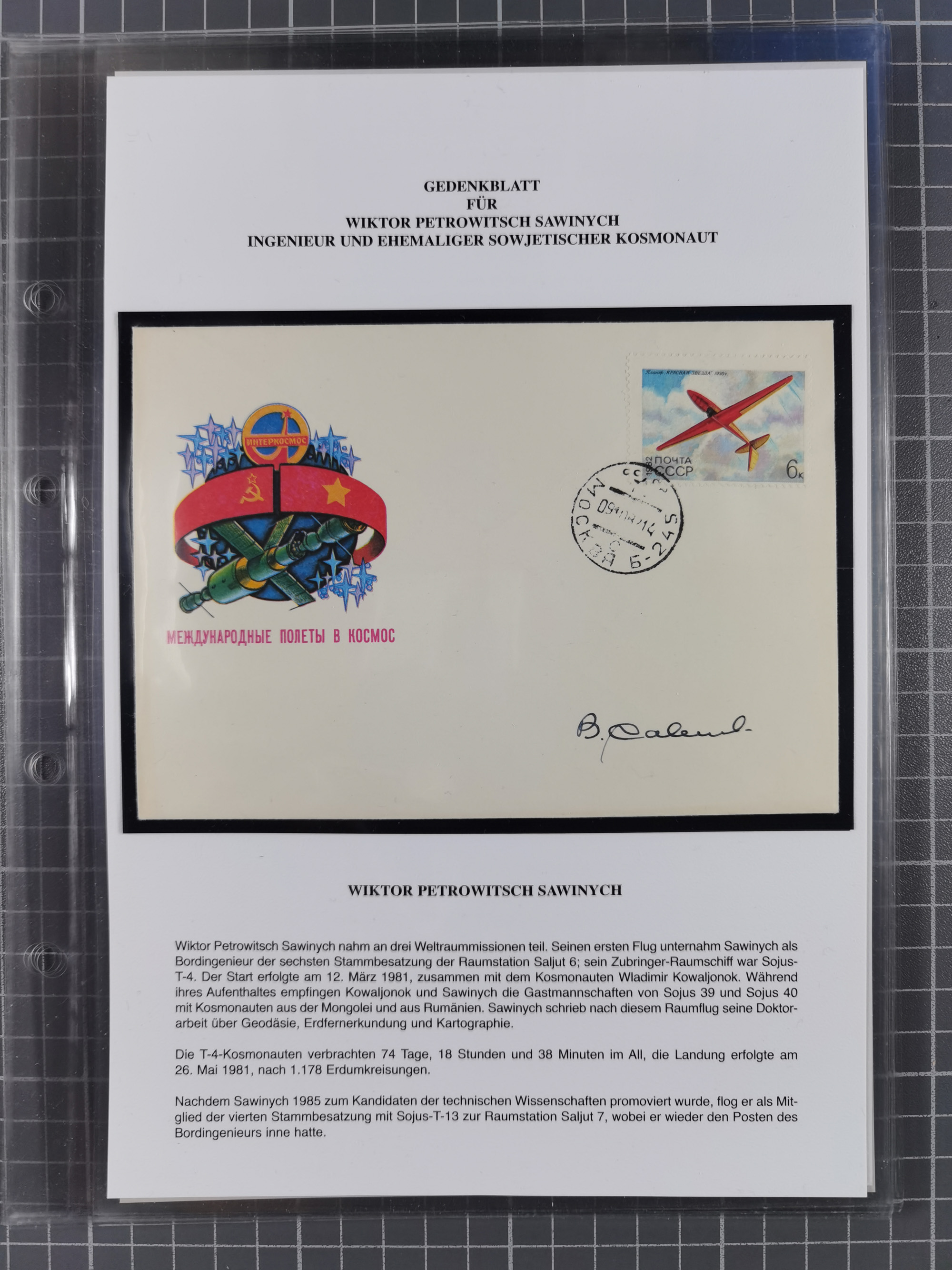 1927/92, AUTOGRAPHEN: Sammlung mit über 70 thematischen Briefen/Karten und Blocks mit insgesamt ca. 130 Unterschriften von Kosmonauten/Astronauten, gute Erhaltung, aus Sieger-Abo