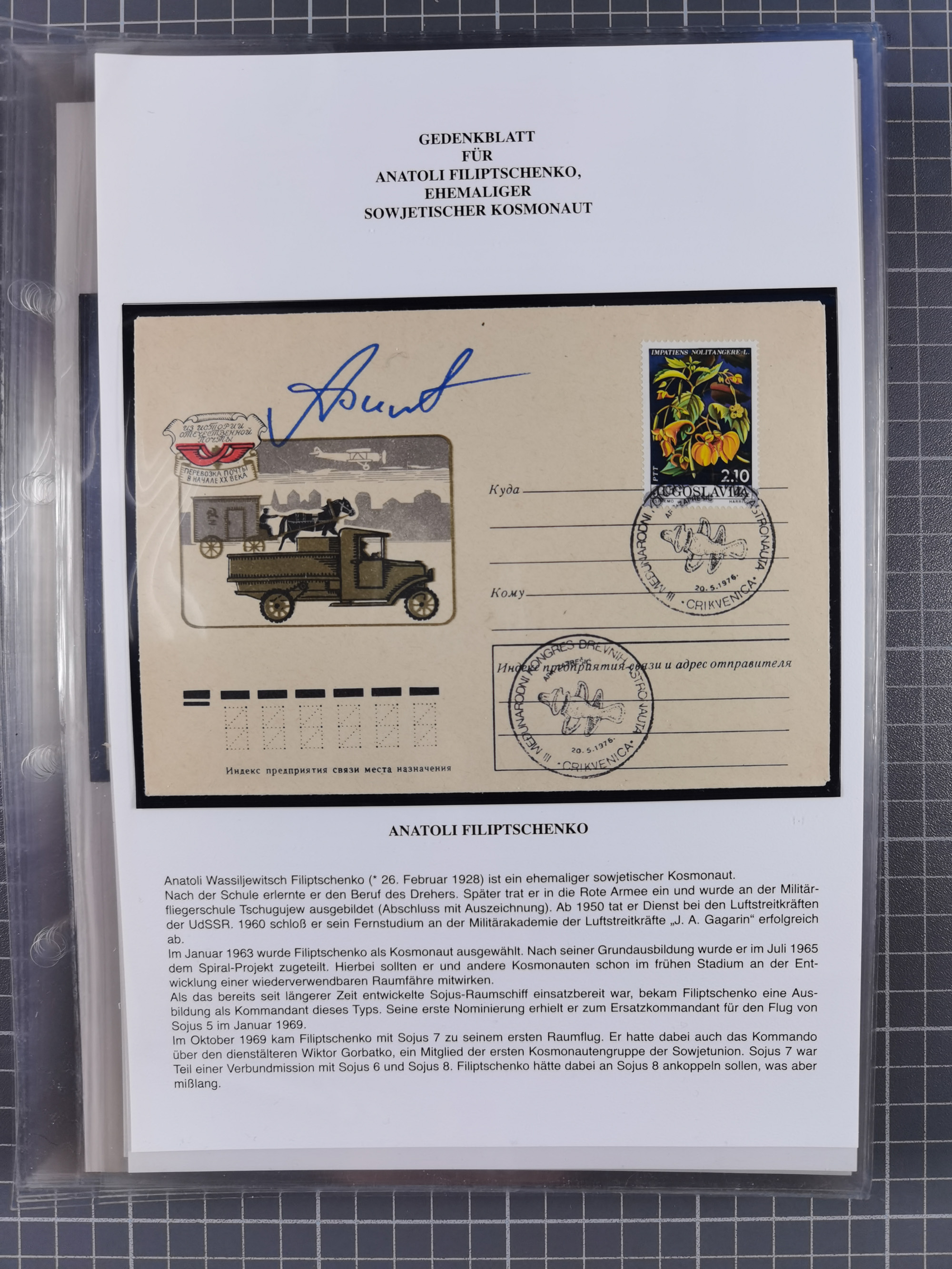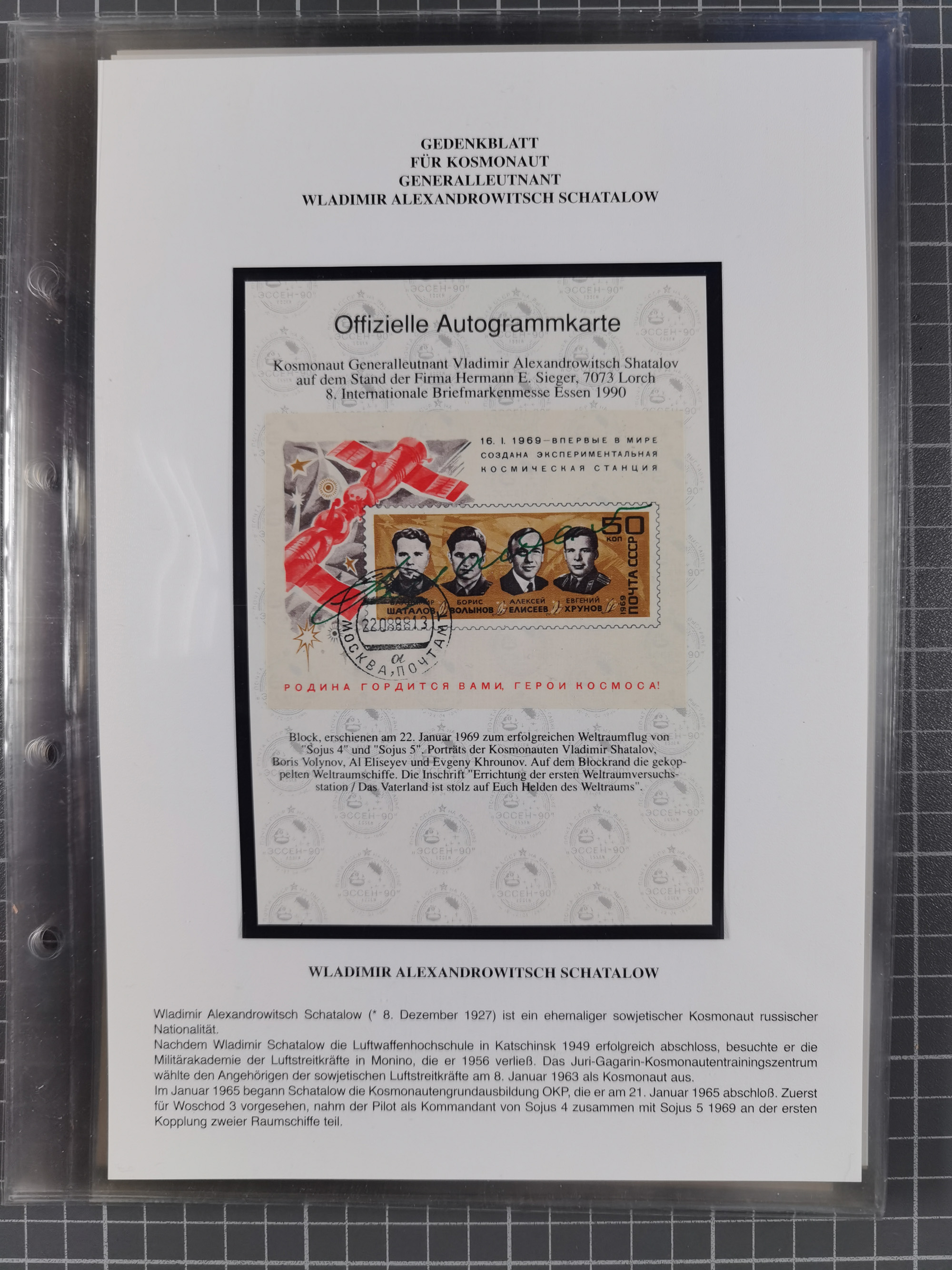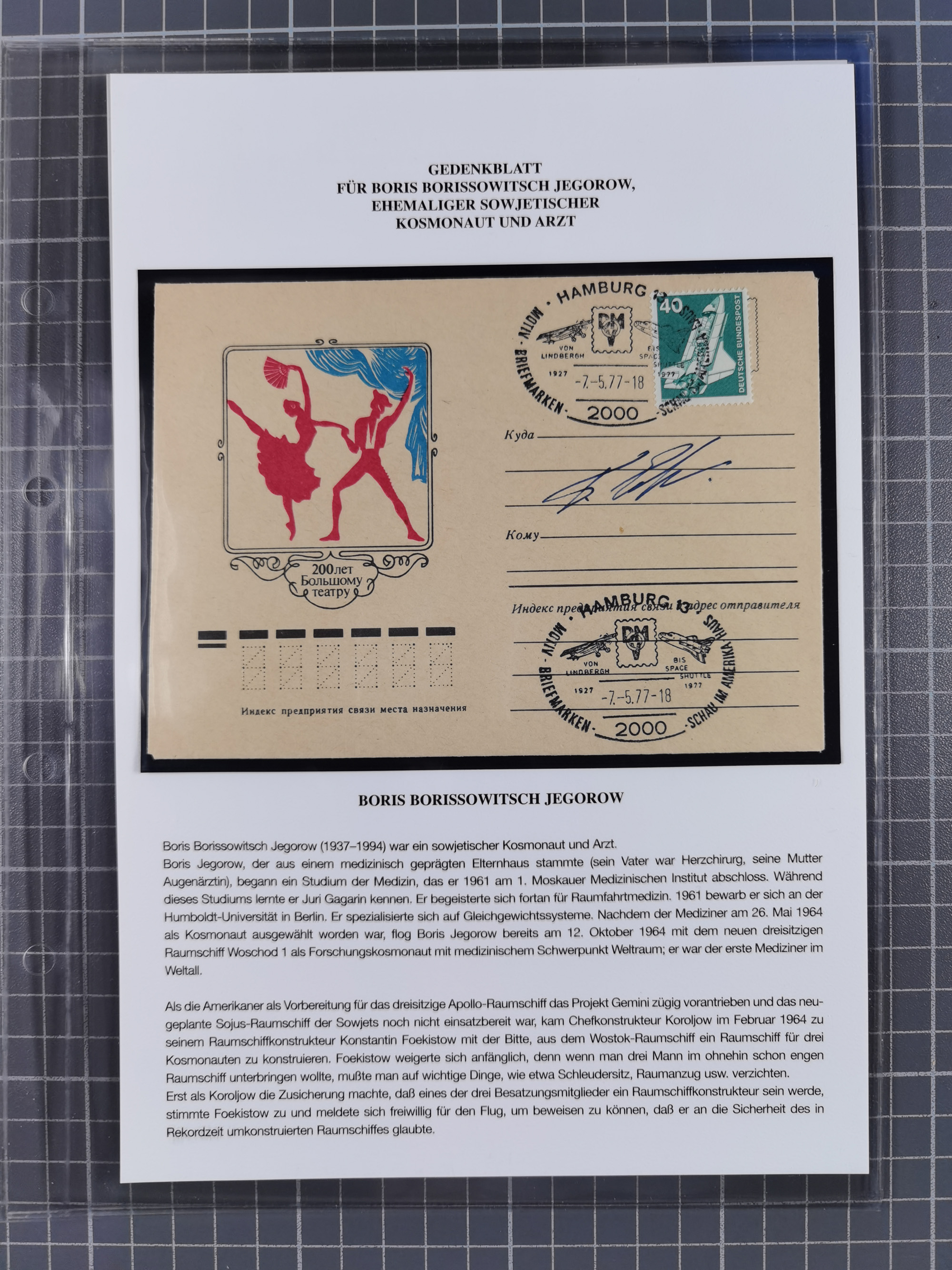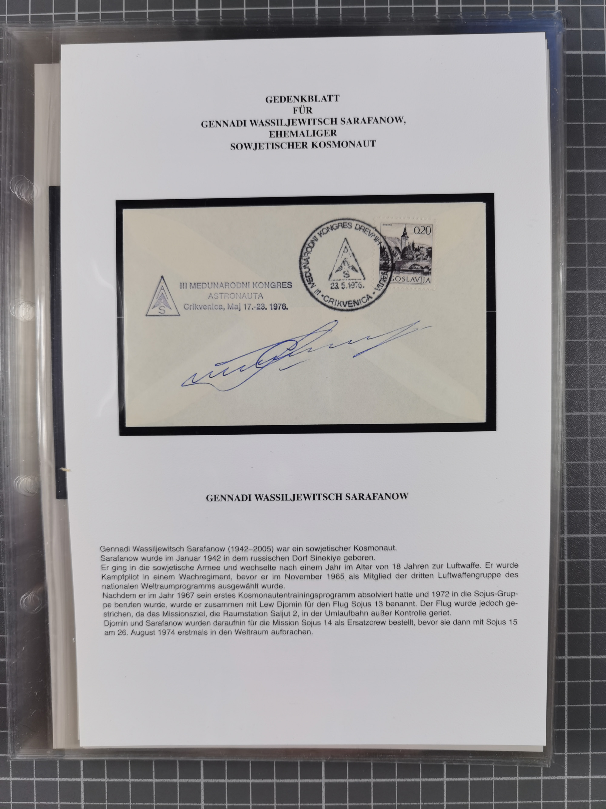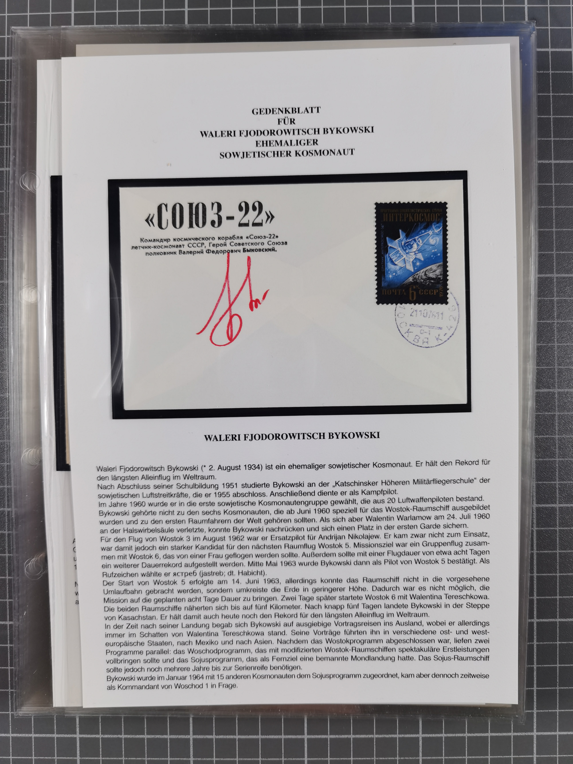 1927/92, AUTOGRAPHEN: Sammlung mit über 70 thematischen Briefen/Karten und Blocks mit insgesamt ca. 130 Unterschriften von Kosmonauten/Astronauten, gute Erhaltung, aus Sieger-Abo