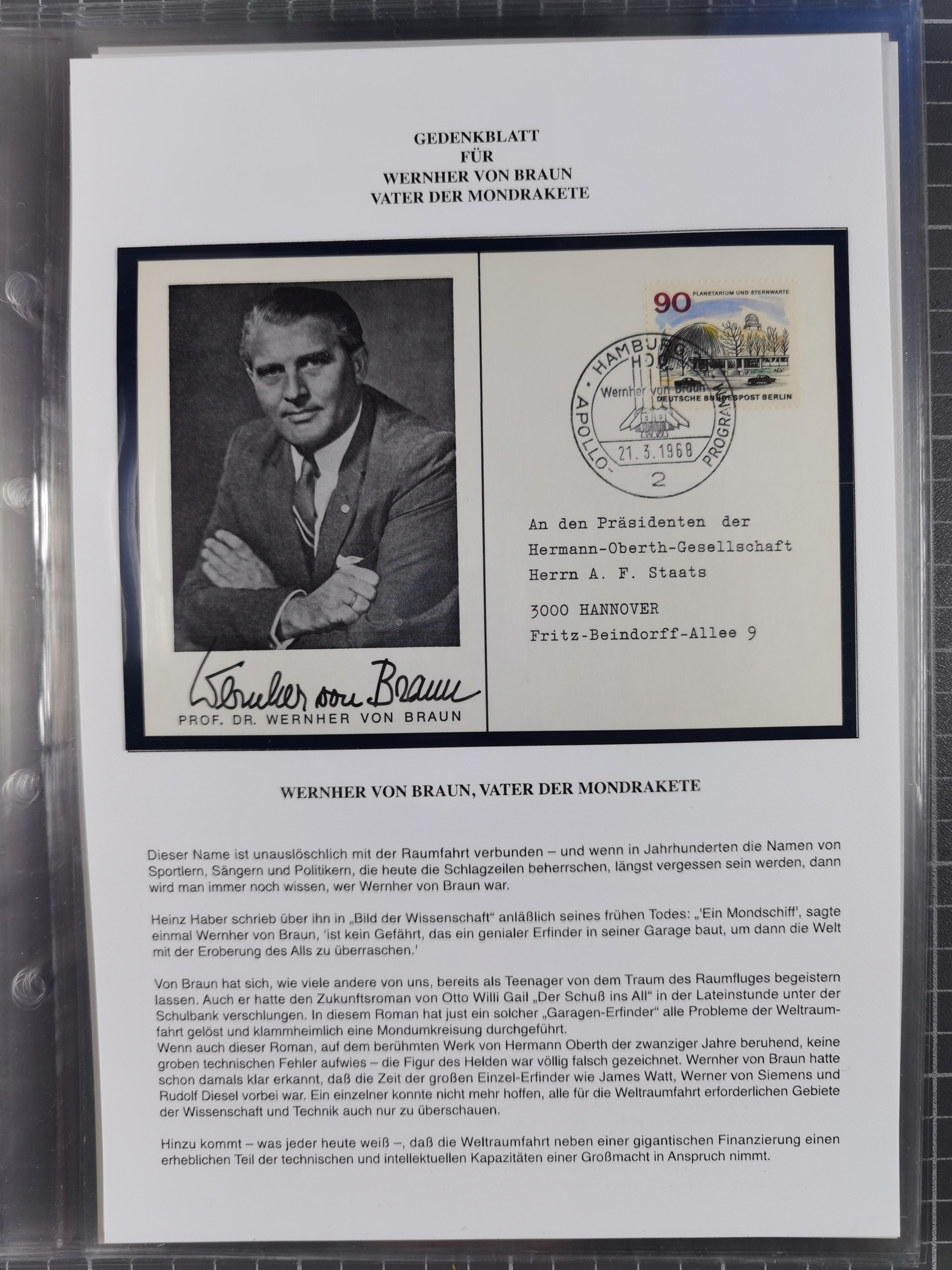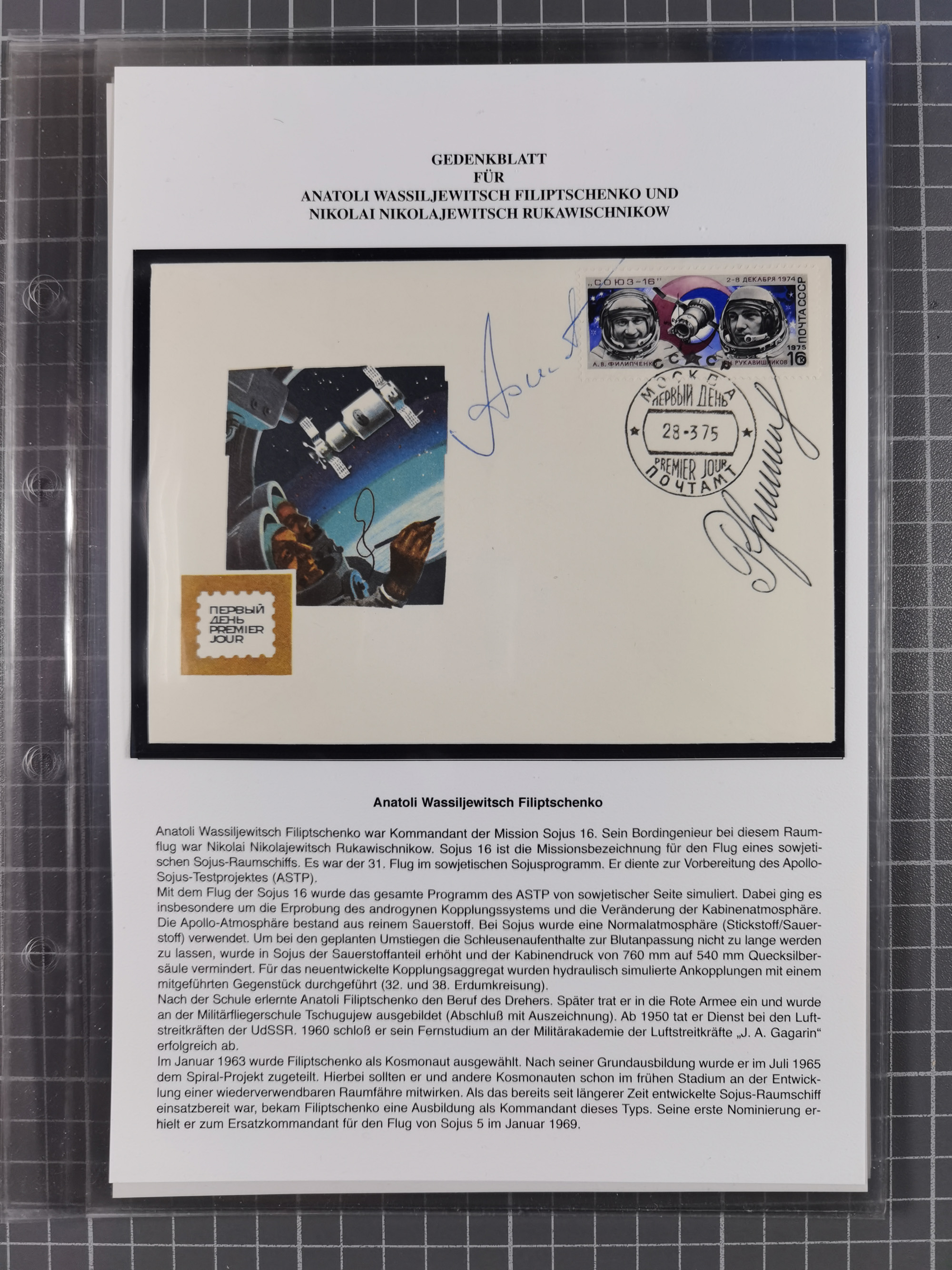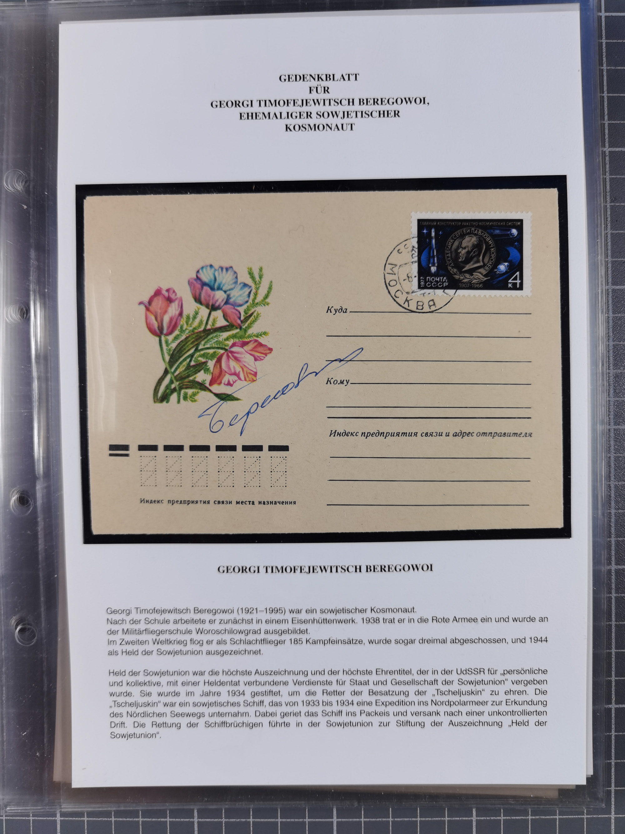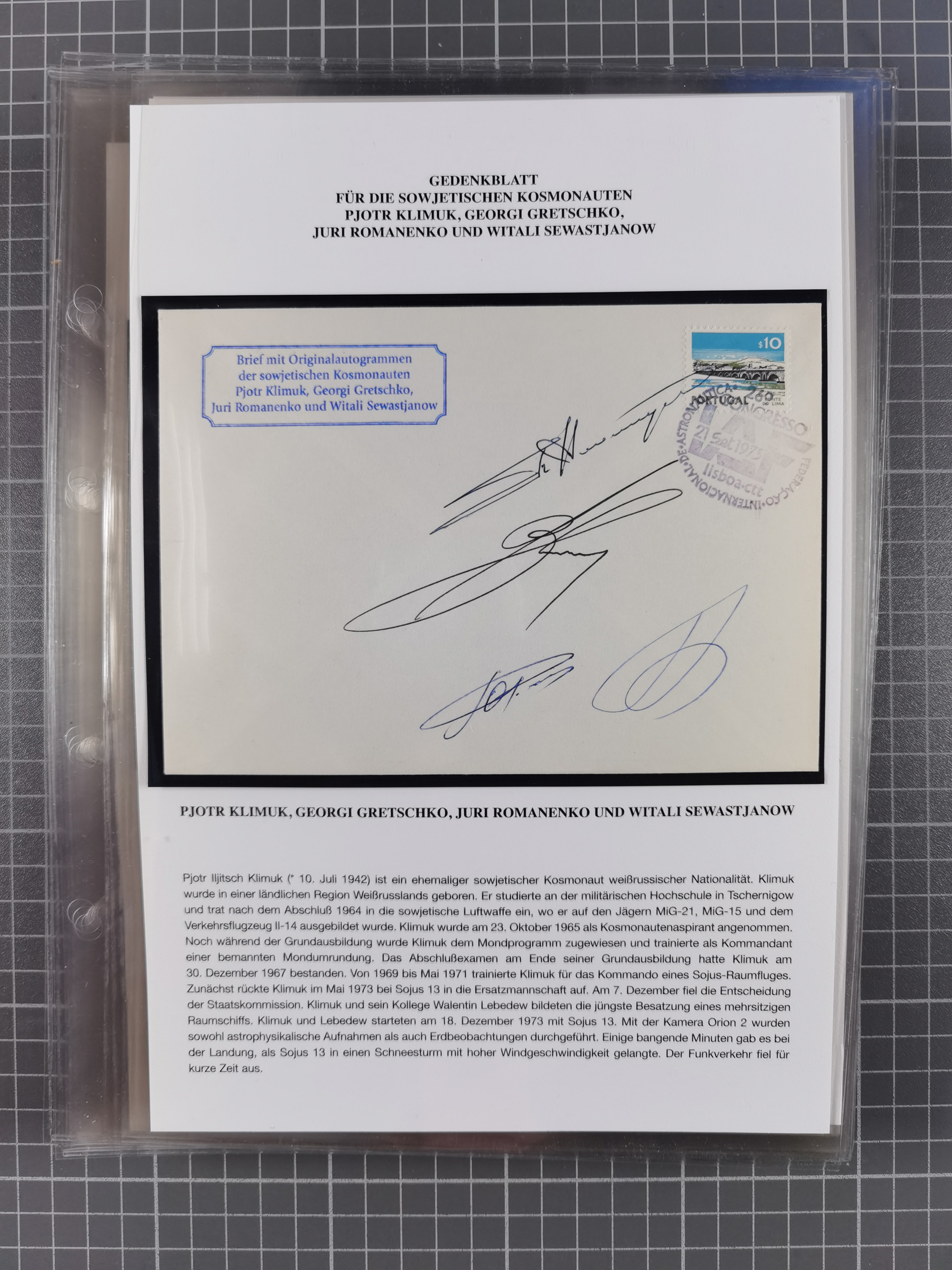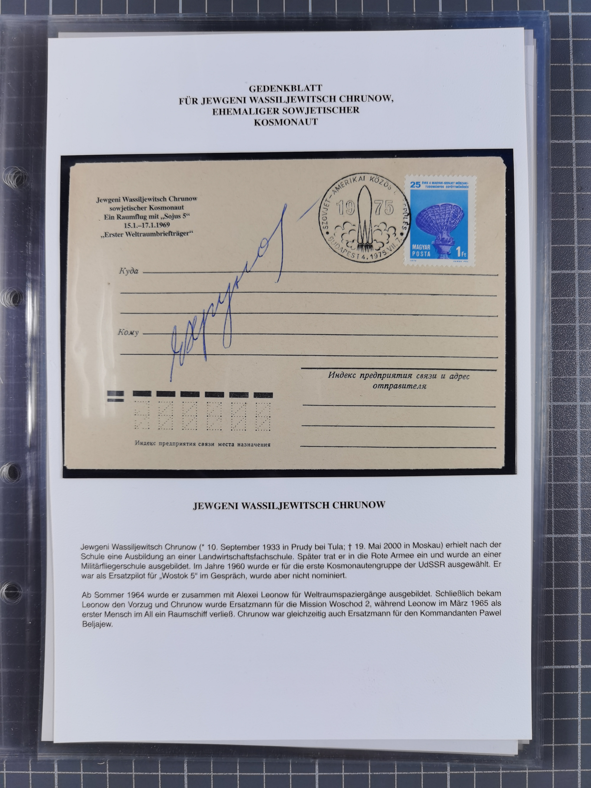 1927/92, AUTOGRAPHEN: Sammlung mit über 70 thematischen Briefen/Karten und Blocks mit insgesamt ca. 130 Unterschriften von Kosmonauten/Astronauten, gute Erhaltung, aus Sieger-Abo