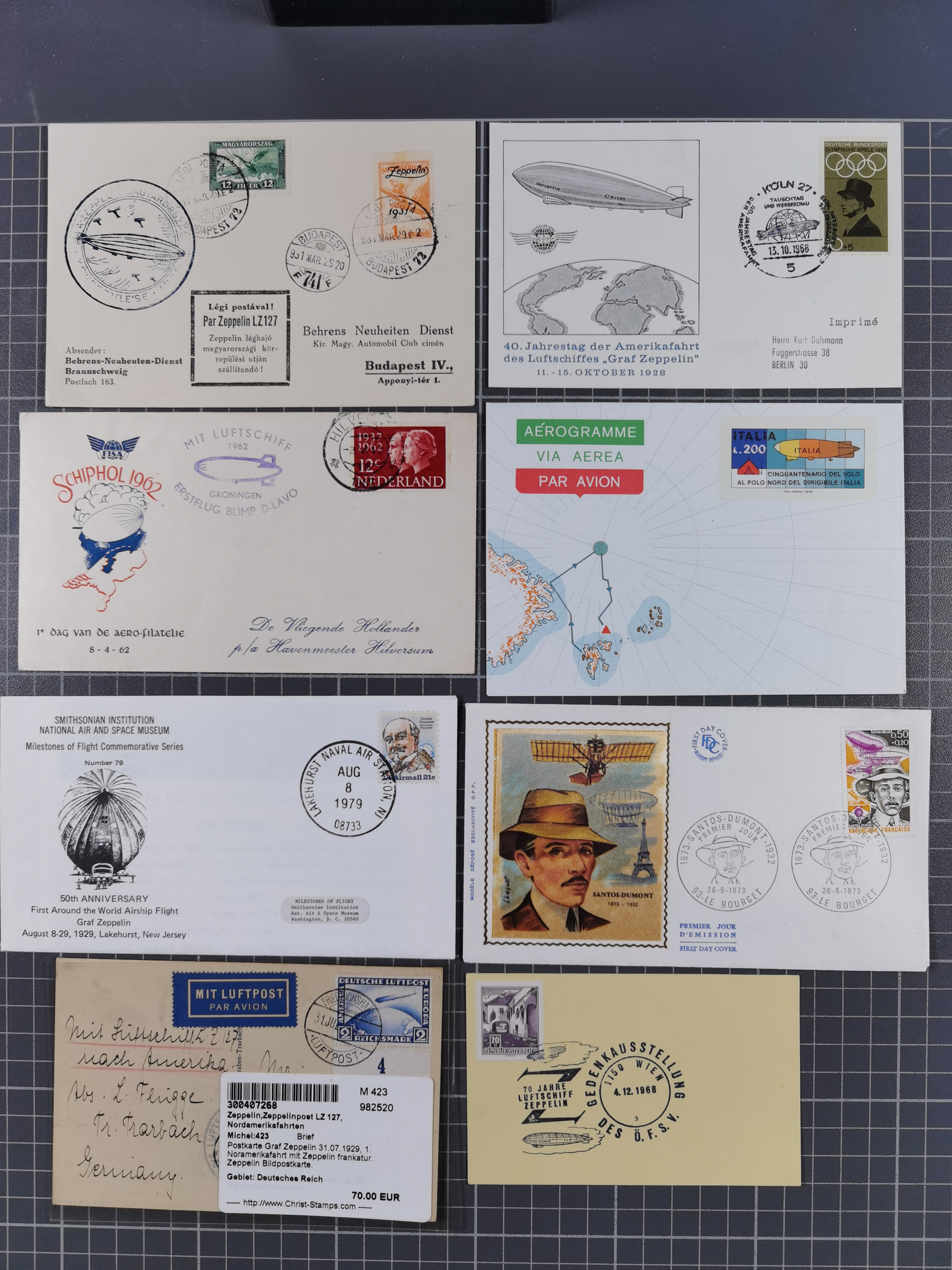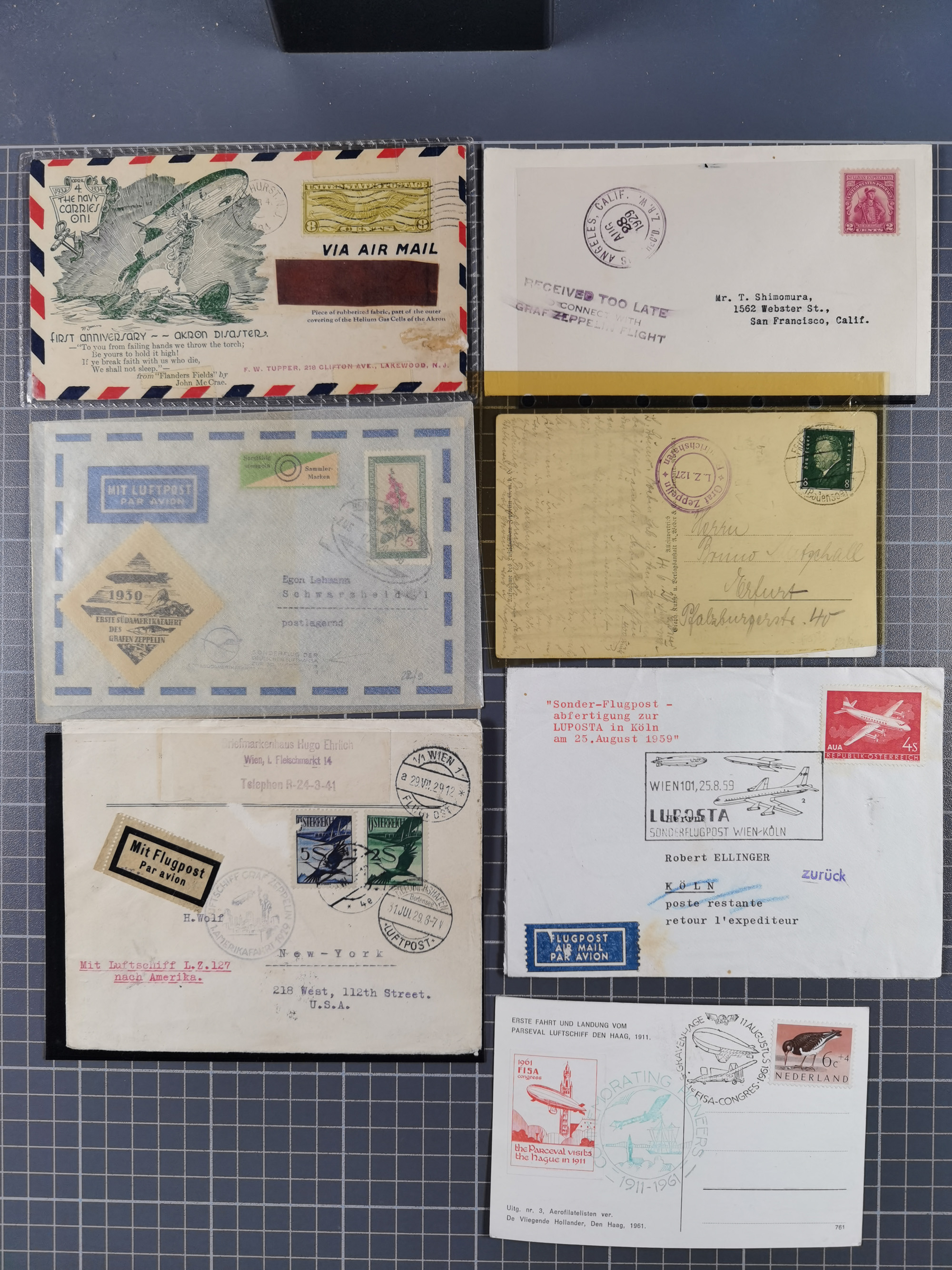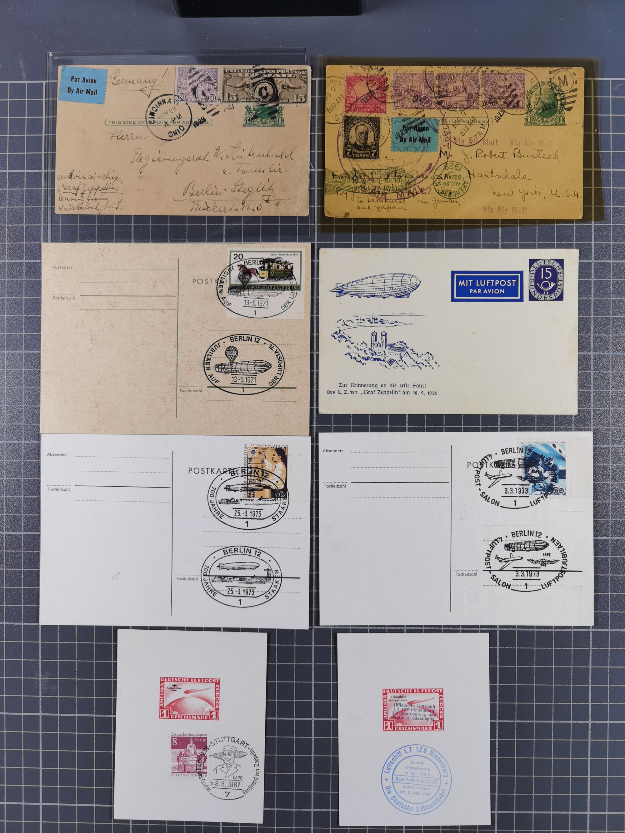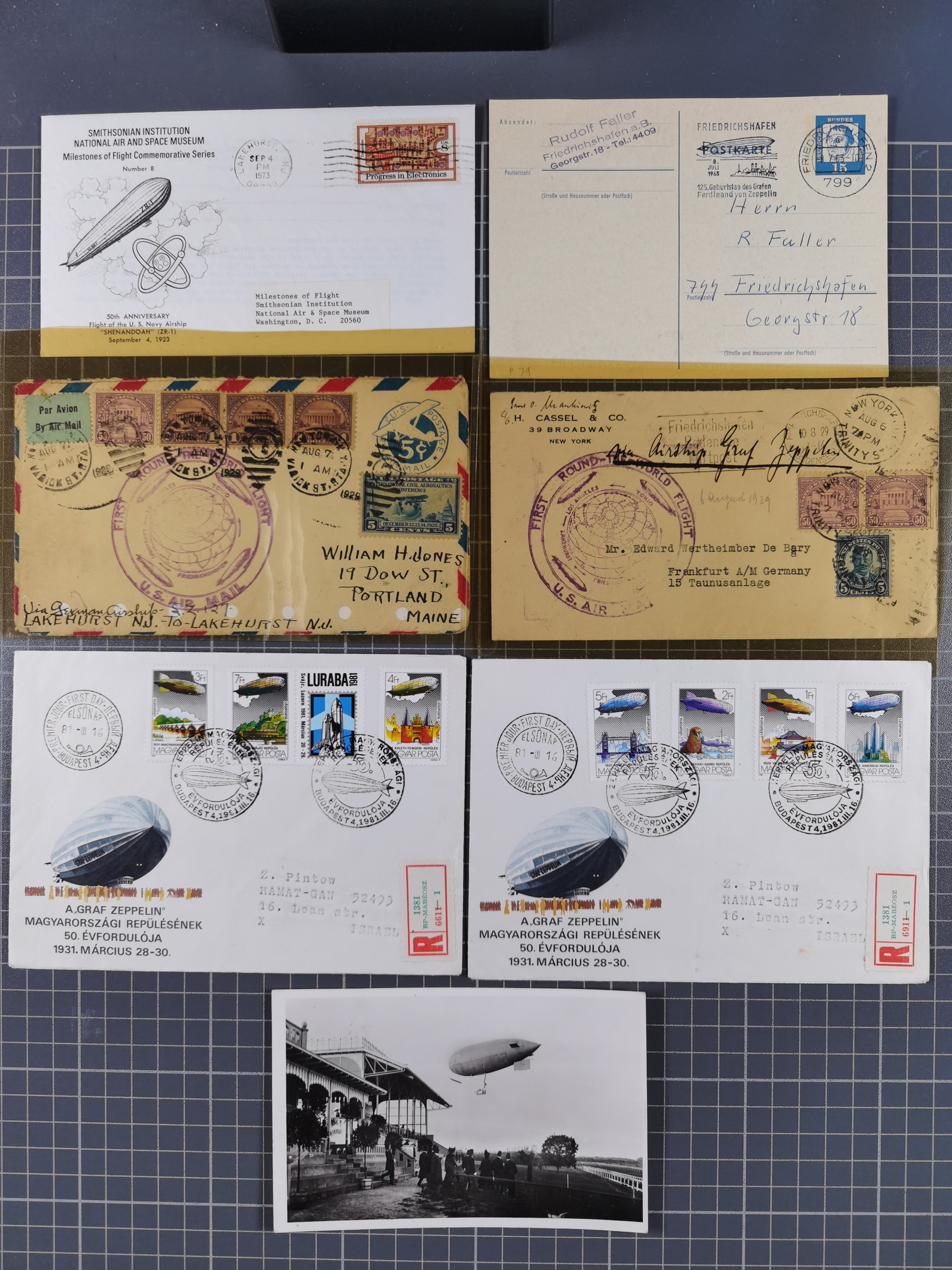 Zeppelin: 1928/81, Partie Stempel-Belege mit Schwerpunkt bei den modernen Stempeln und Sonderumschlägen ab ca. 1960, dazu neun Zeppelin-Belege mit u.a. Karte mit 2 M. Zeppelin zur Nordamerikafahrt 1928, Ungarn 1928 mit Brief mit Zeppelin-Marke 2 P. und Brief der Ägyptenfahrt mit bunter Frankatur und SST Alexandria, meist in guter Erhaltung