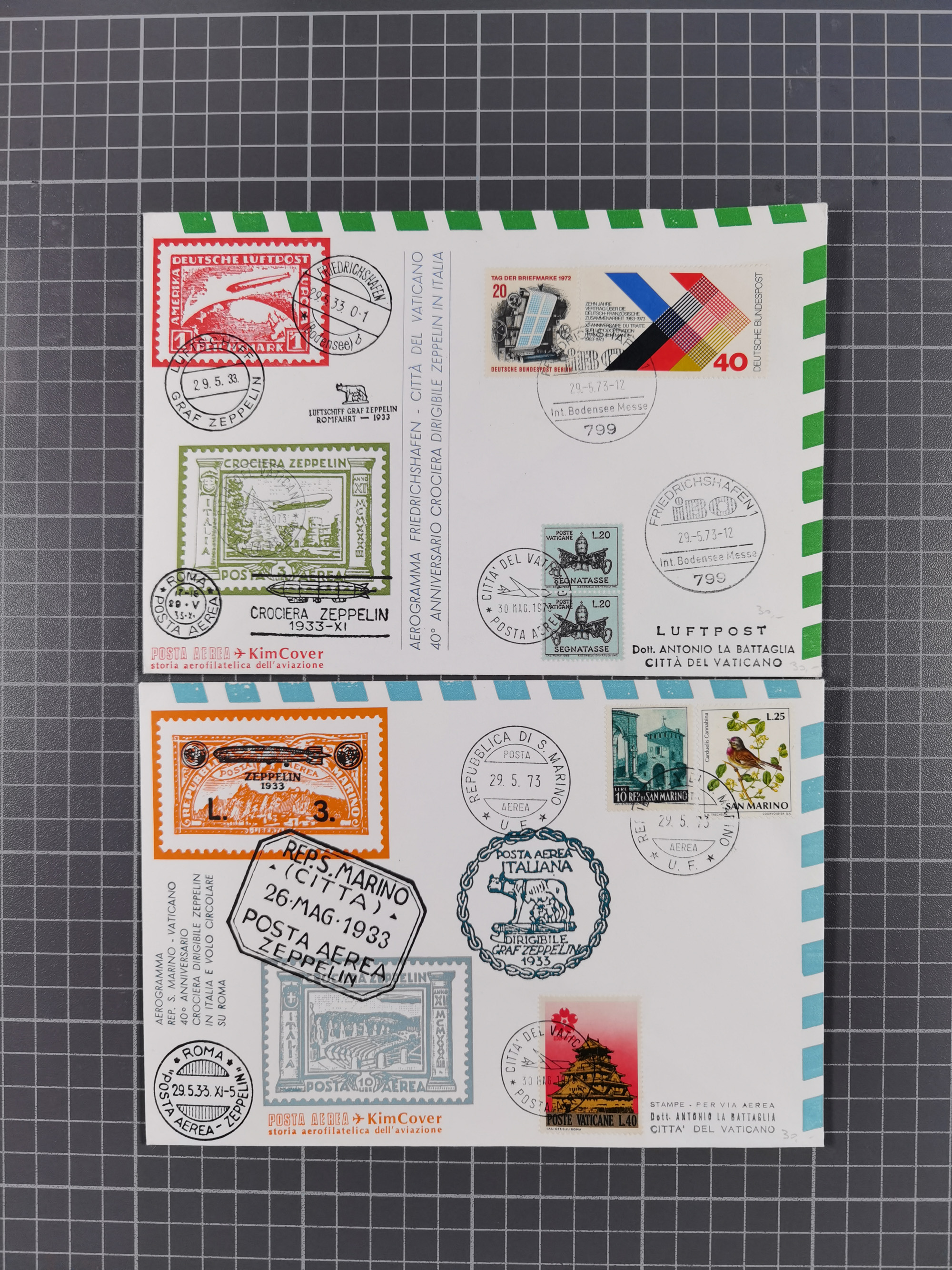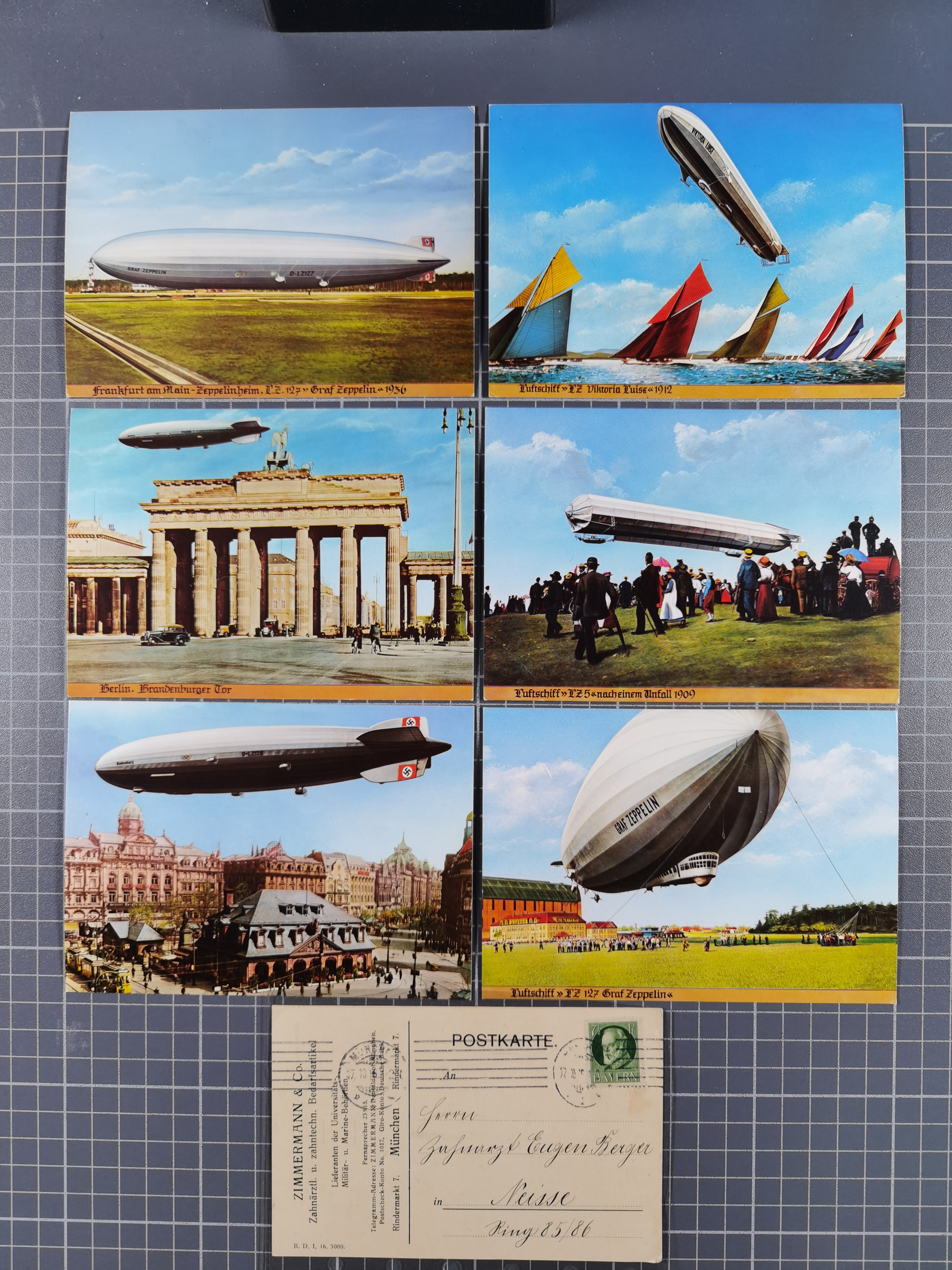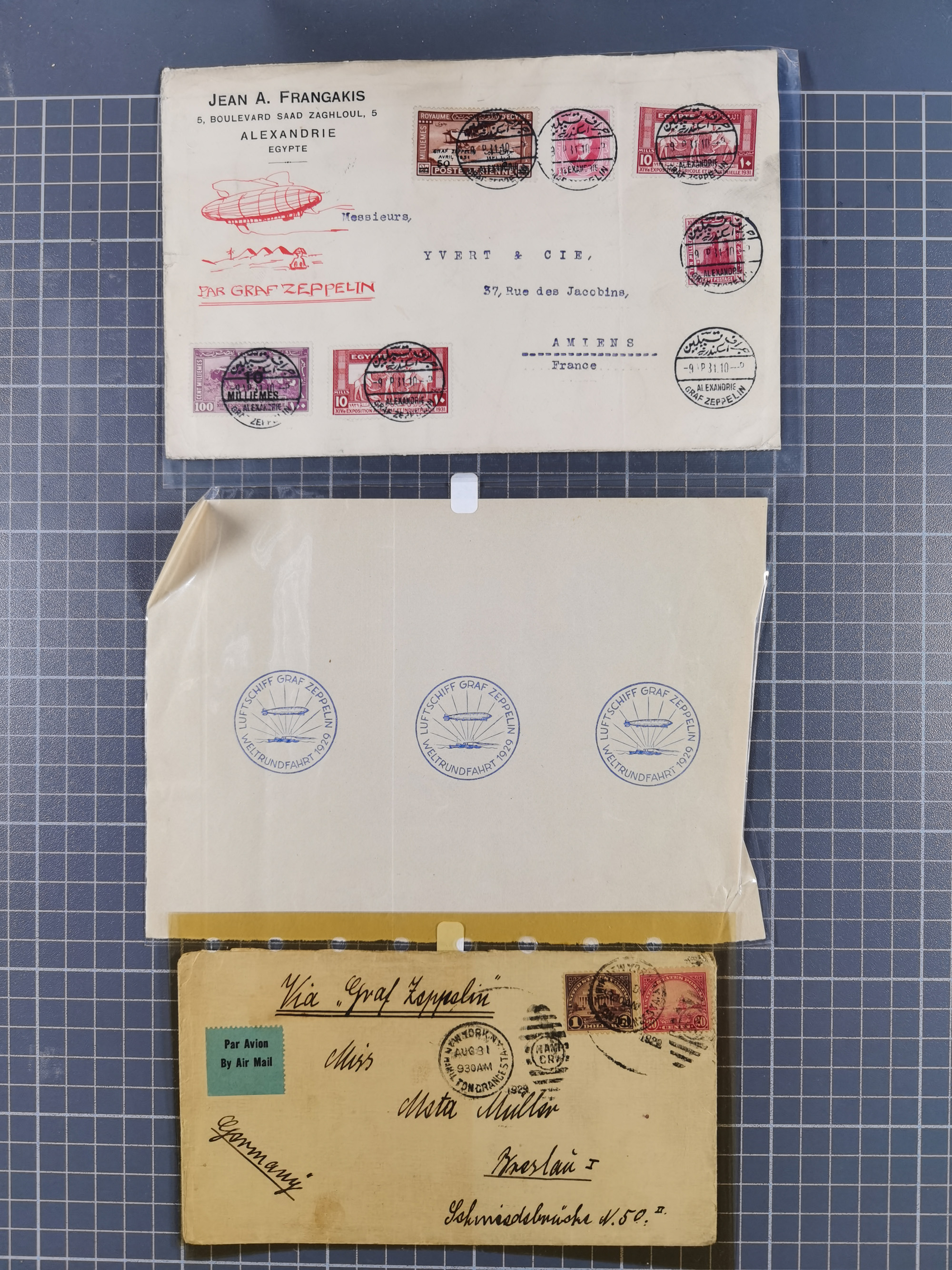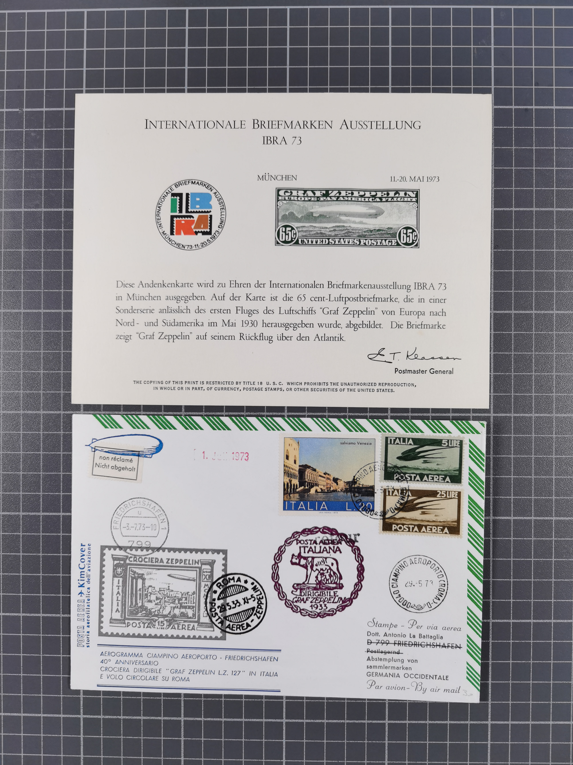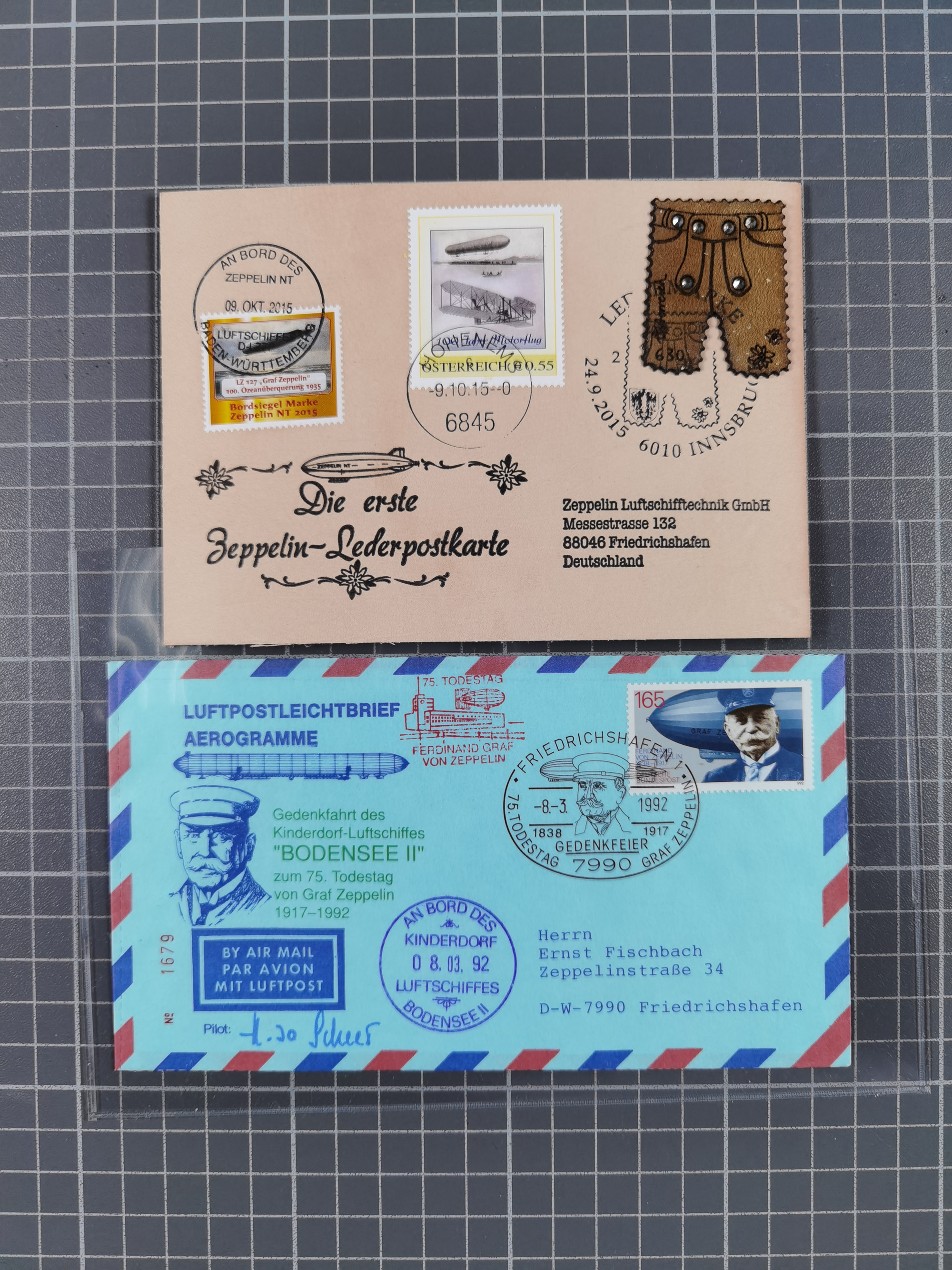 Zeppelin: 1928/81, Partie Stempel-Belege mit Schwerpunkt bei den modernen Stempeln und Sonderumschlägen ab ca. 1960, dazu neun Zeppelin-Belege mit u.a. Karte mit 2 M. Zeppelin zur Nordamerikafahrt 1928, Ungarn 1928 mit Brief mit Zeppelin-Marke 2 P. und Brief der Ägyptenfahrt mit bunter Frankatur und SST Alexandria, meist in guter Erhaltung