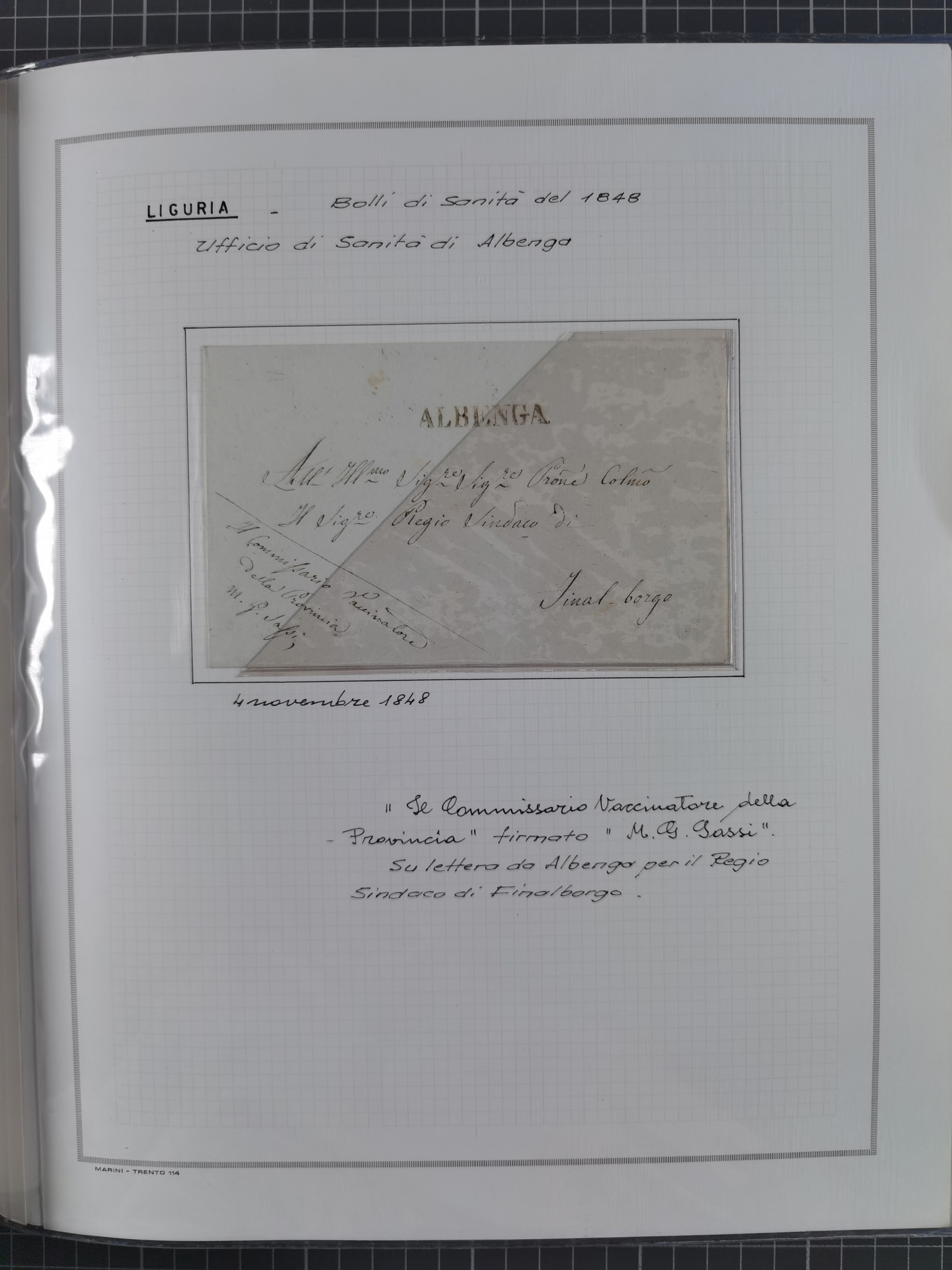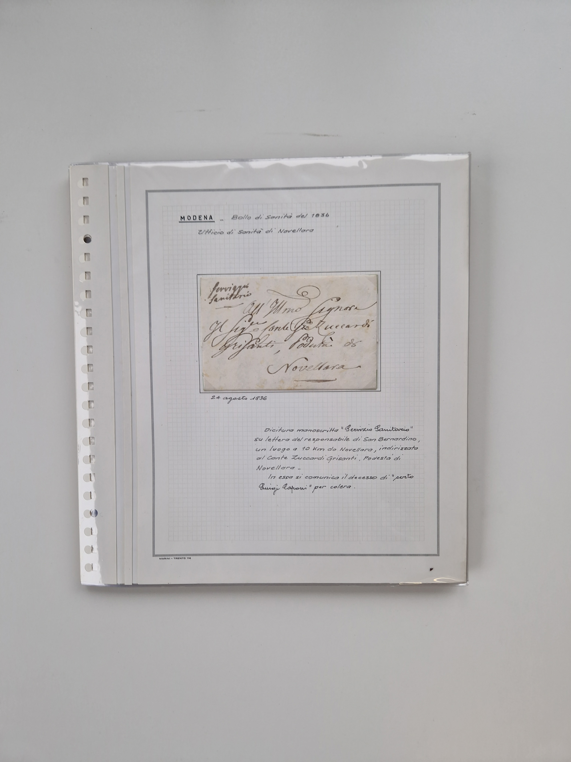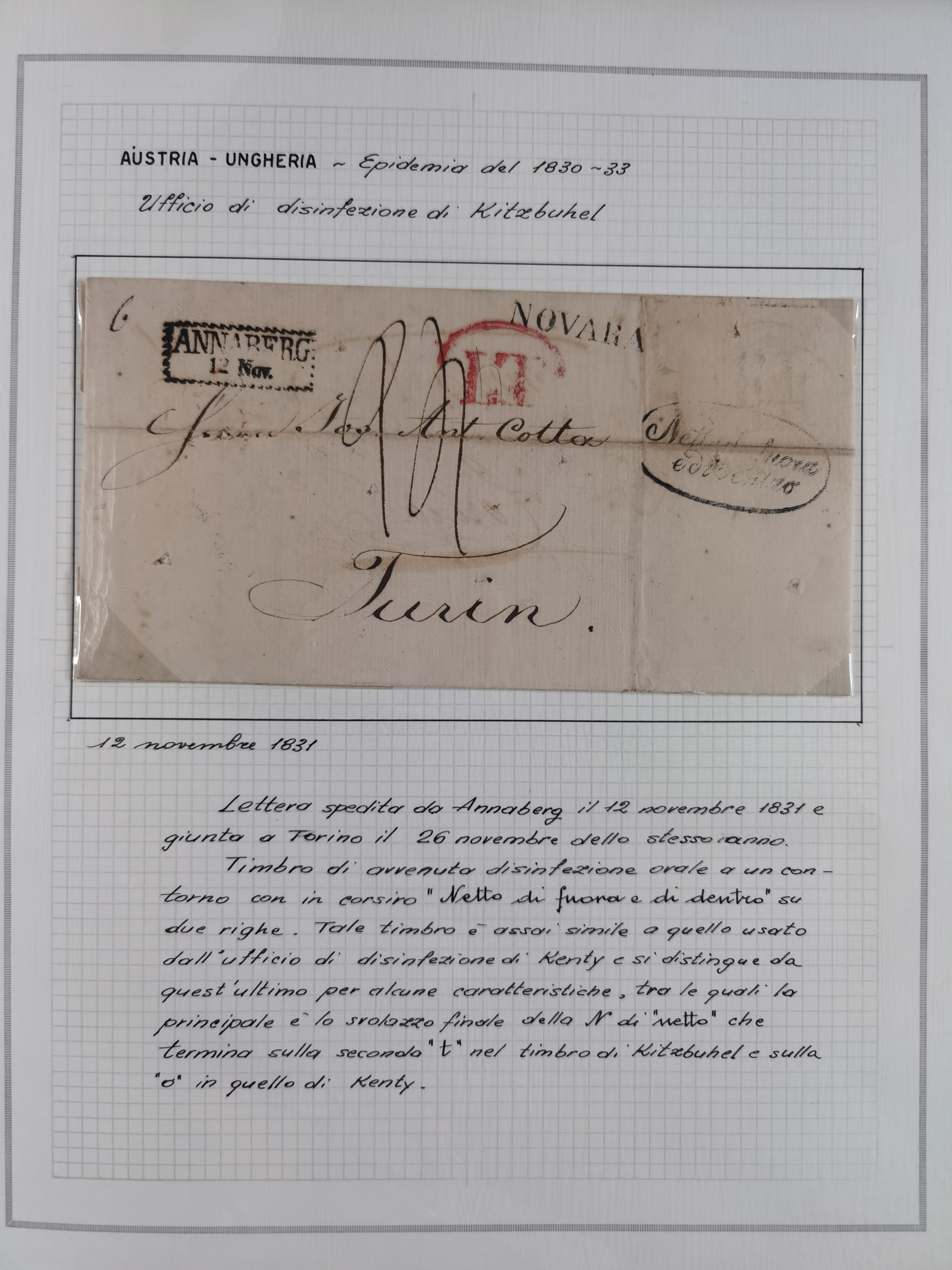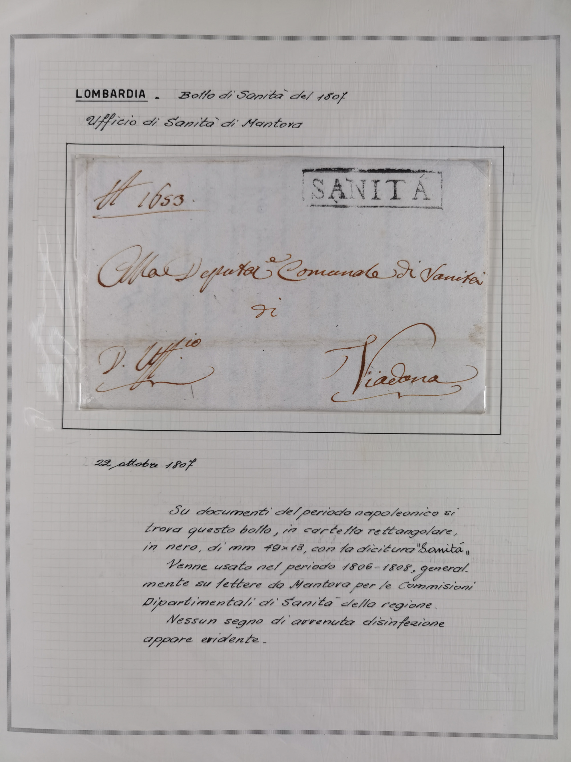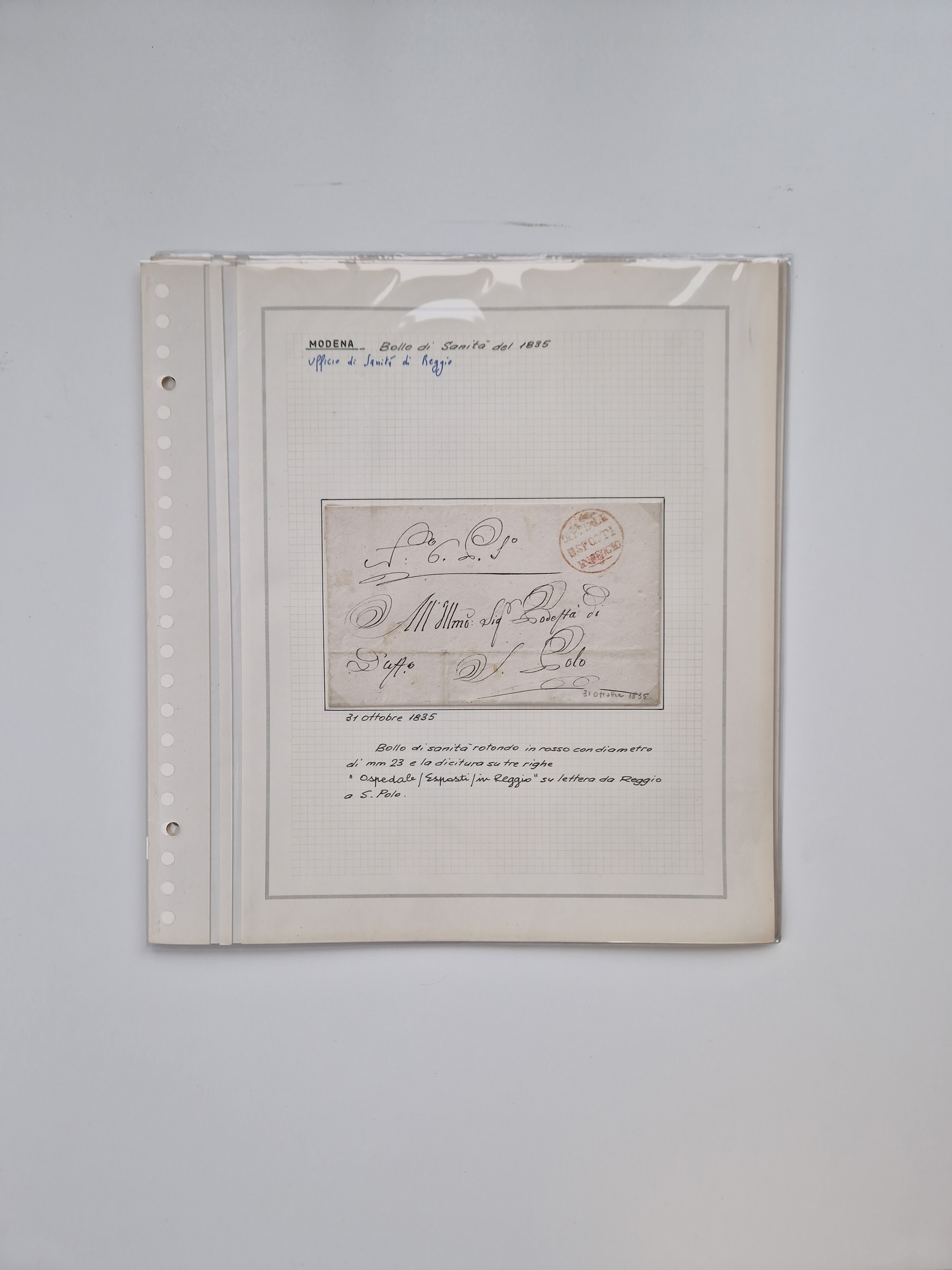 PIEMONT: 1585/1886, über 150 Briefe und Dokumente (wenige Dokumente als Kopie), ab einem sehr frühen Dokument aus 1585, einigen Briefen ab 1797 mit vielen seltenen Stempeln, Brief von Prof. Michele Buniva (von Napoleon ernannter Professor für öffentliche und private Hygiene), Brief von 1830 aus Odessa nach Genua, Mitteilung des 1. Staatssekretärs über die Notwendigkeit der Desinfizierung von Auslandspostsendungen, viele Zirkulare der Gesundheitsmagistrate, etc., sehr reichhaltig, sauber beschrieben in sechs Alben