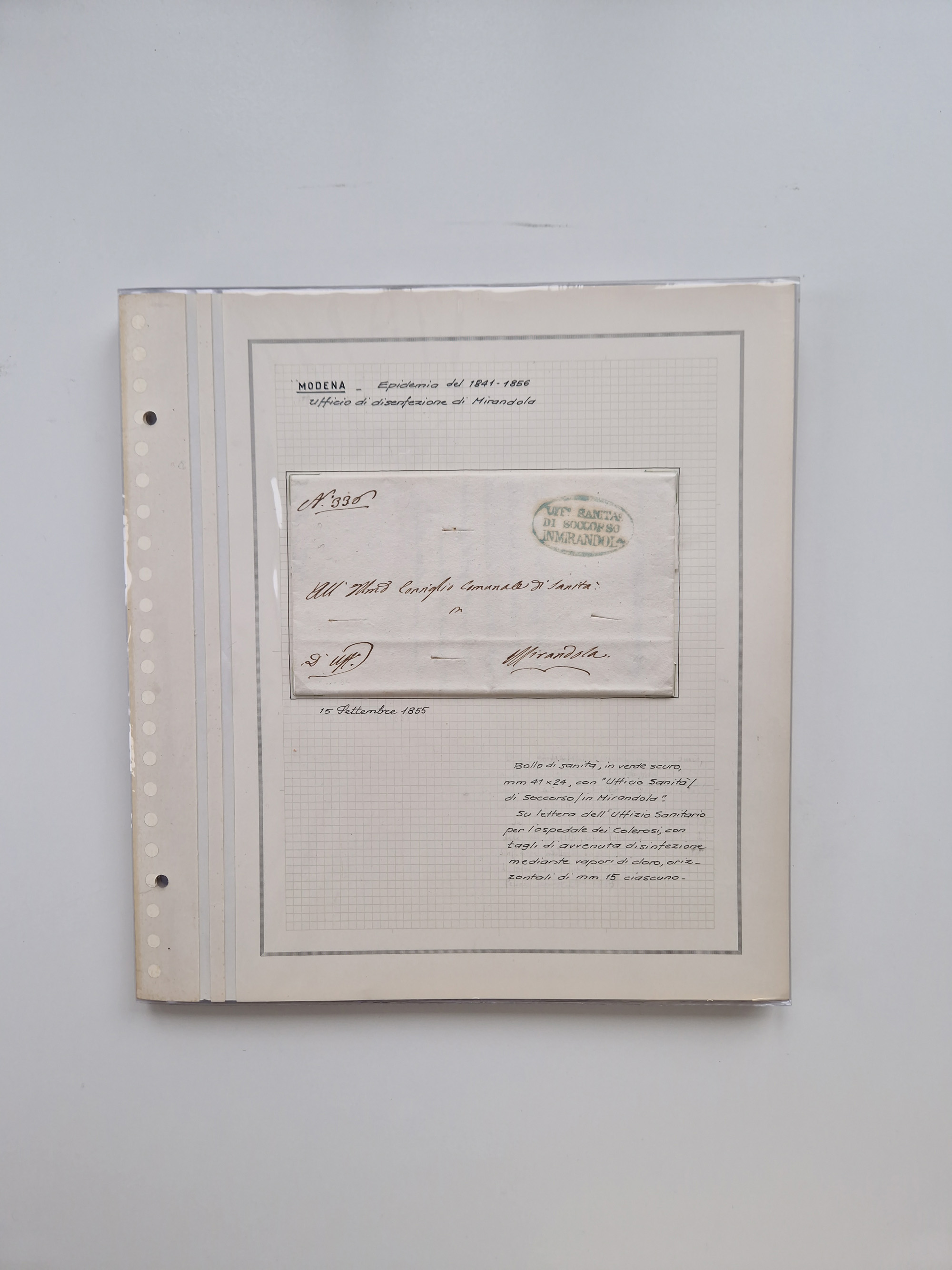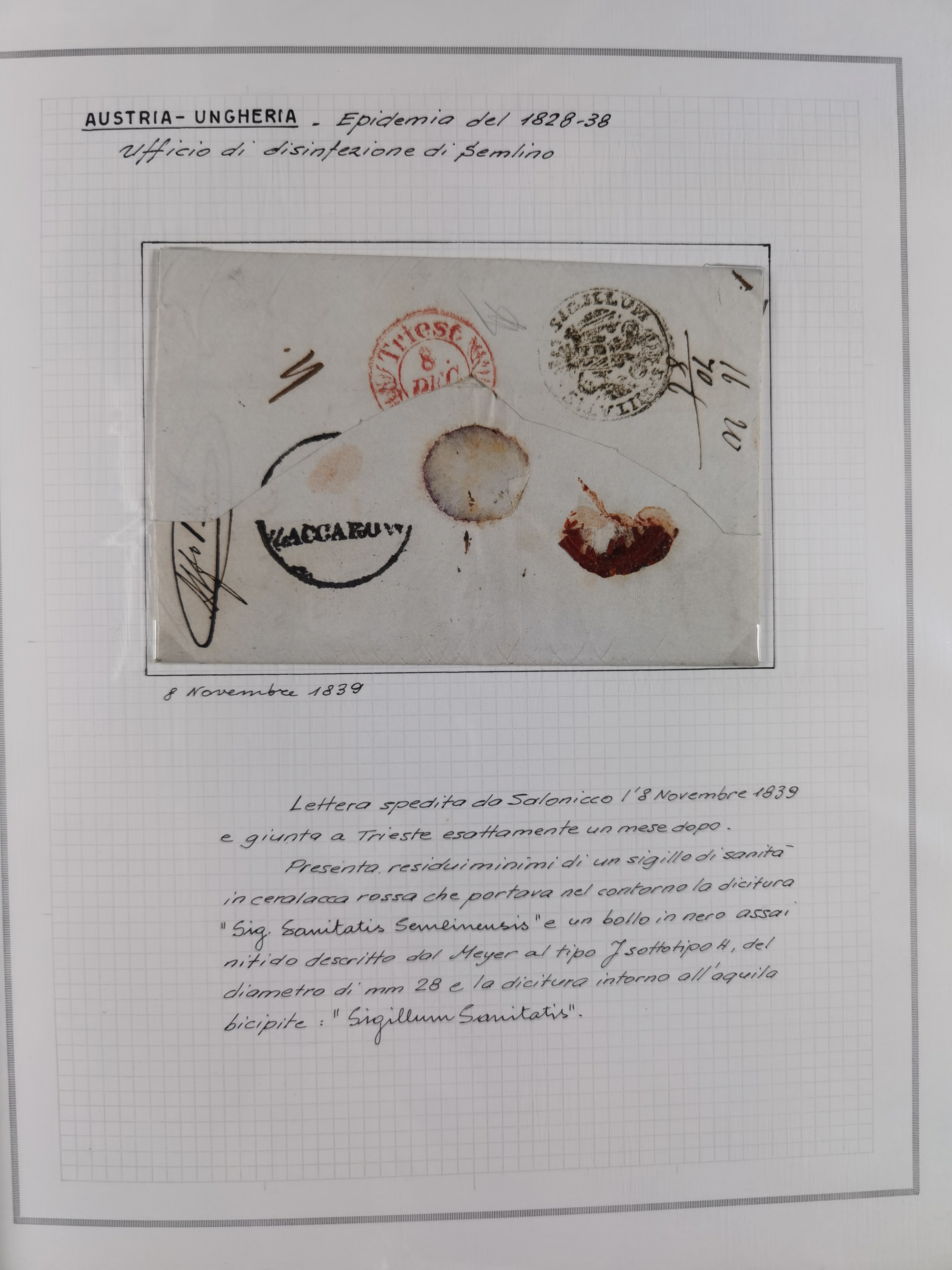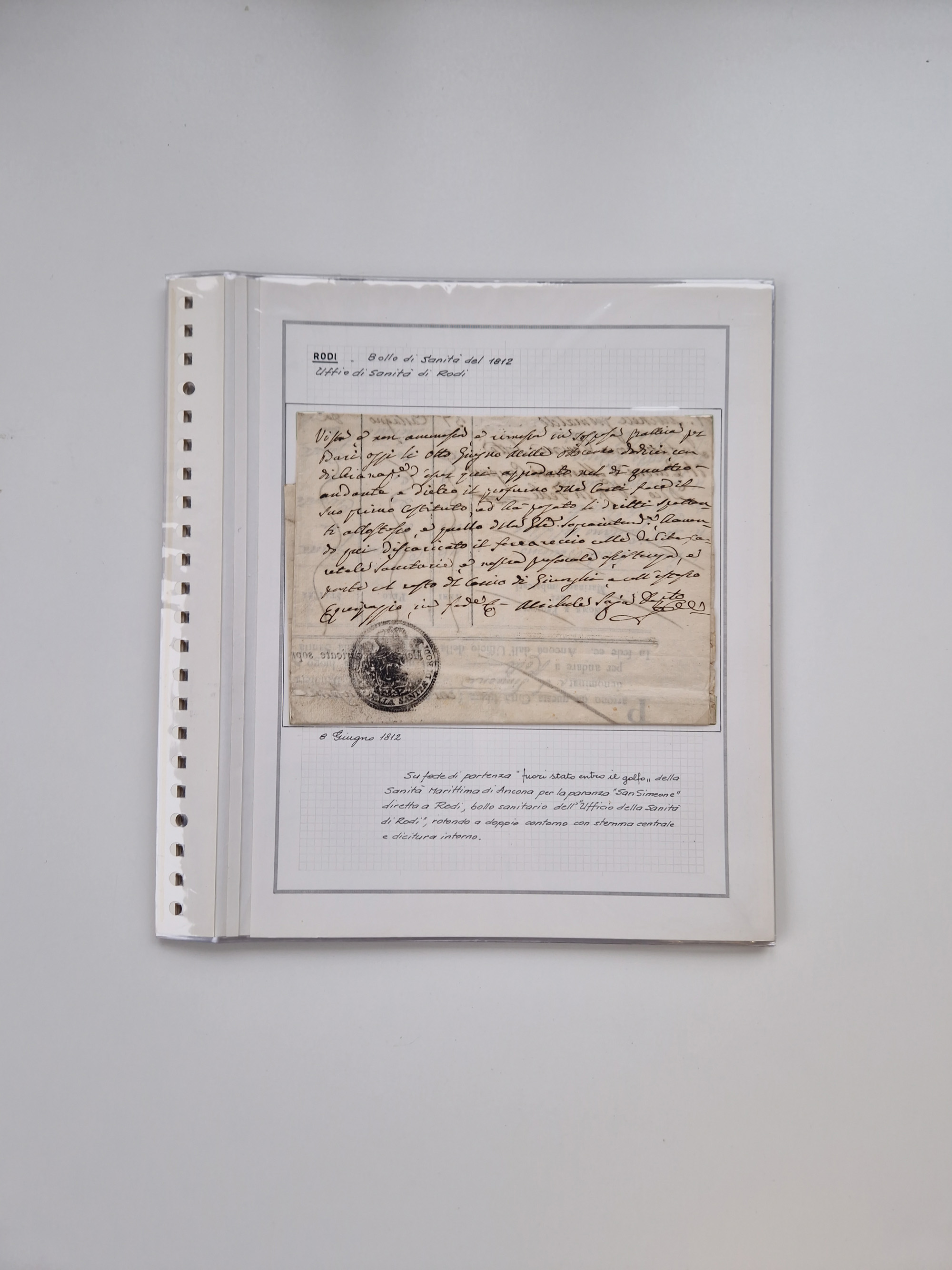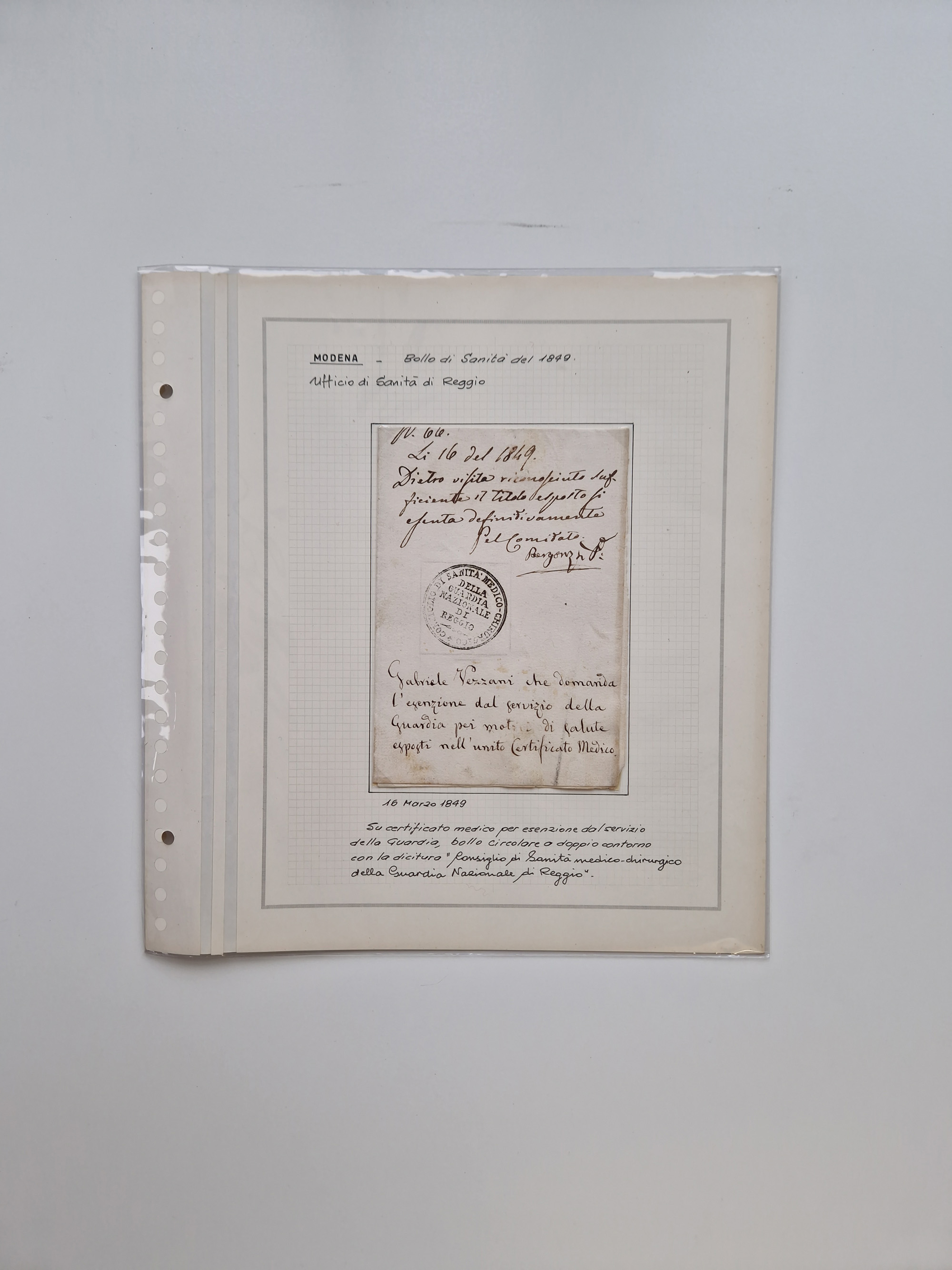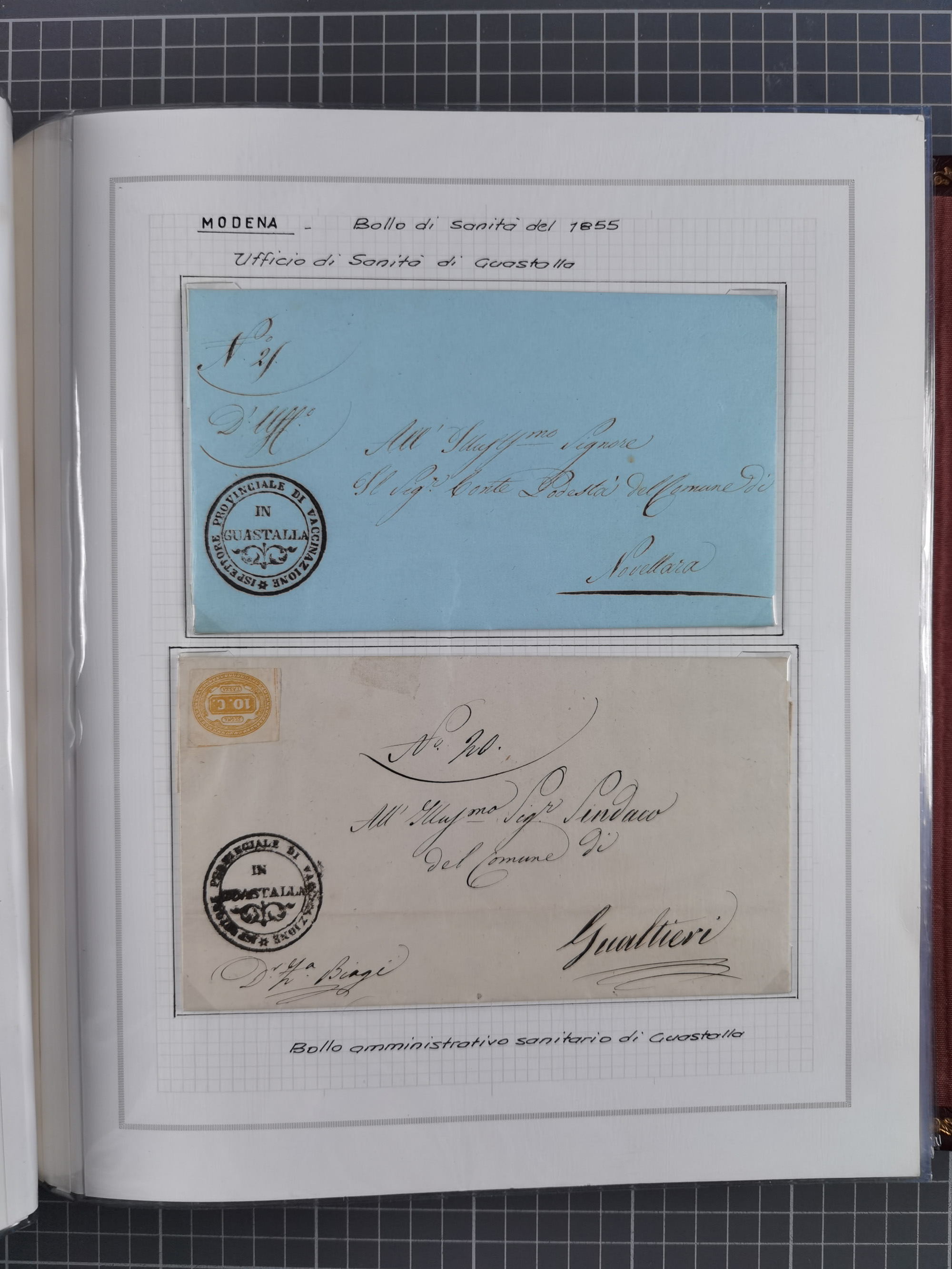 PIEMONT: 1585/1886, über 150 Briefe und Dokumente (wenige Dokumente als Kopie), ab einem sehr frühen Dokument aus 1585, einigen Briefen ab 1797 mit vielen seltenen Stempeln, Brief von Prof. Michele Buniva (von Napoleon ernannter Professor für öffentliche und private Hygiene), Brief von 1830 aus Odessa nach Genua, Mitteilung des 1. Staatssekretärs über die Notwendigkeit der Desinfizierung von Auslandspostsendungen, viele Zirkulare der Gesundheitsmagistrate, etc., sehr reichhaltig, sauber beschrieben in sechs Alben