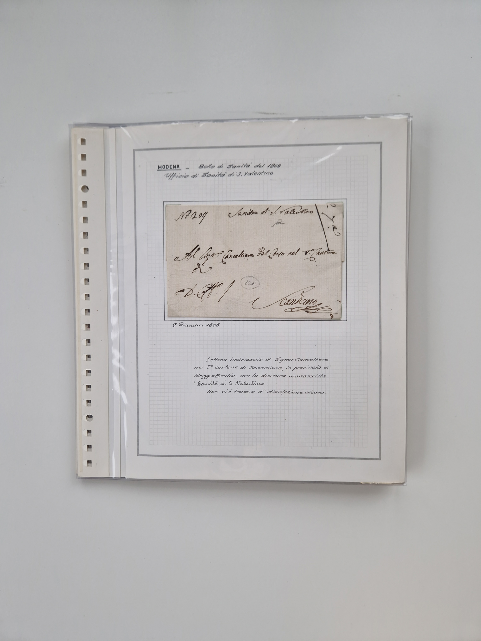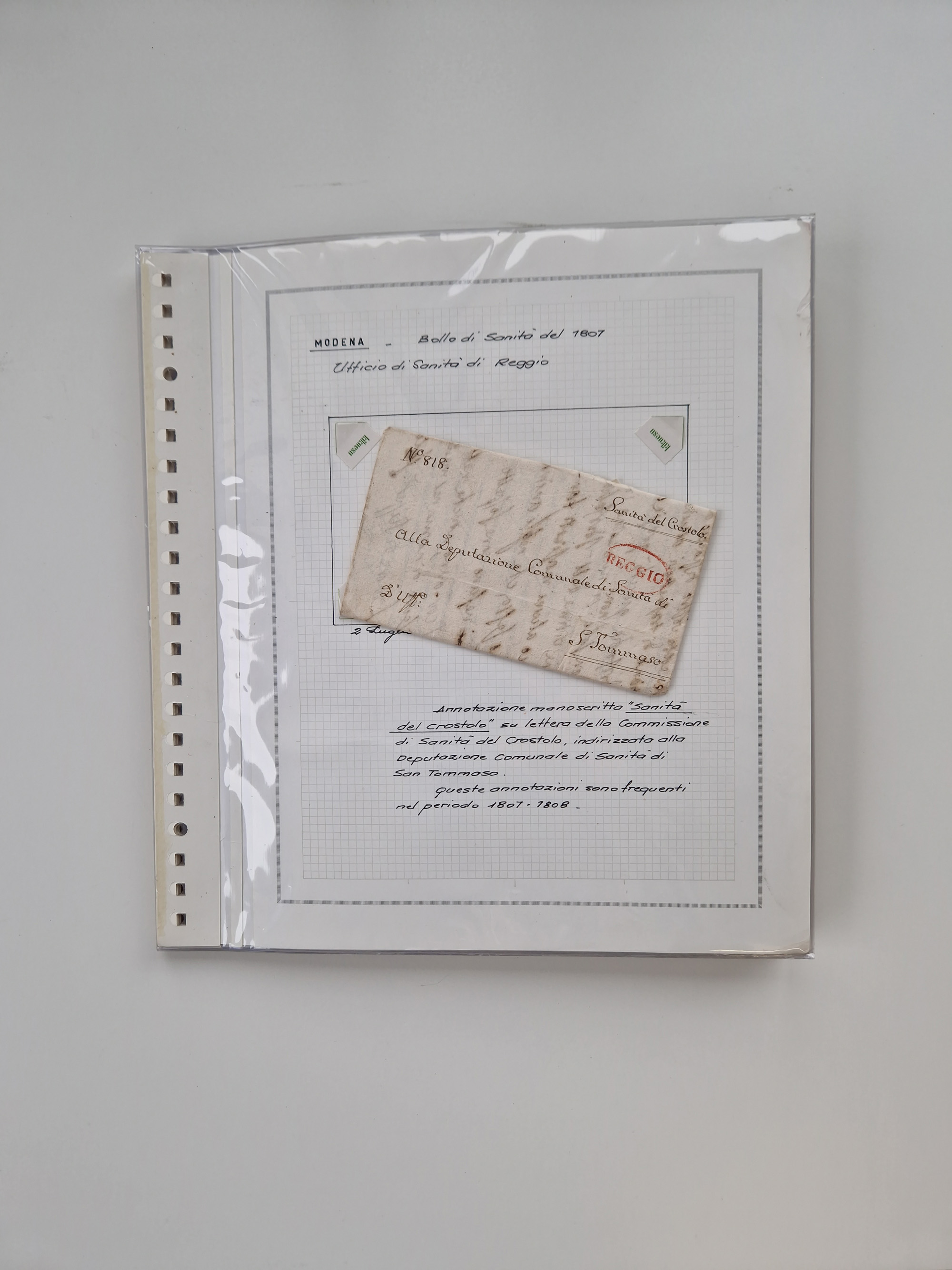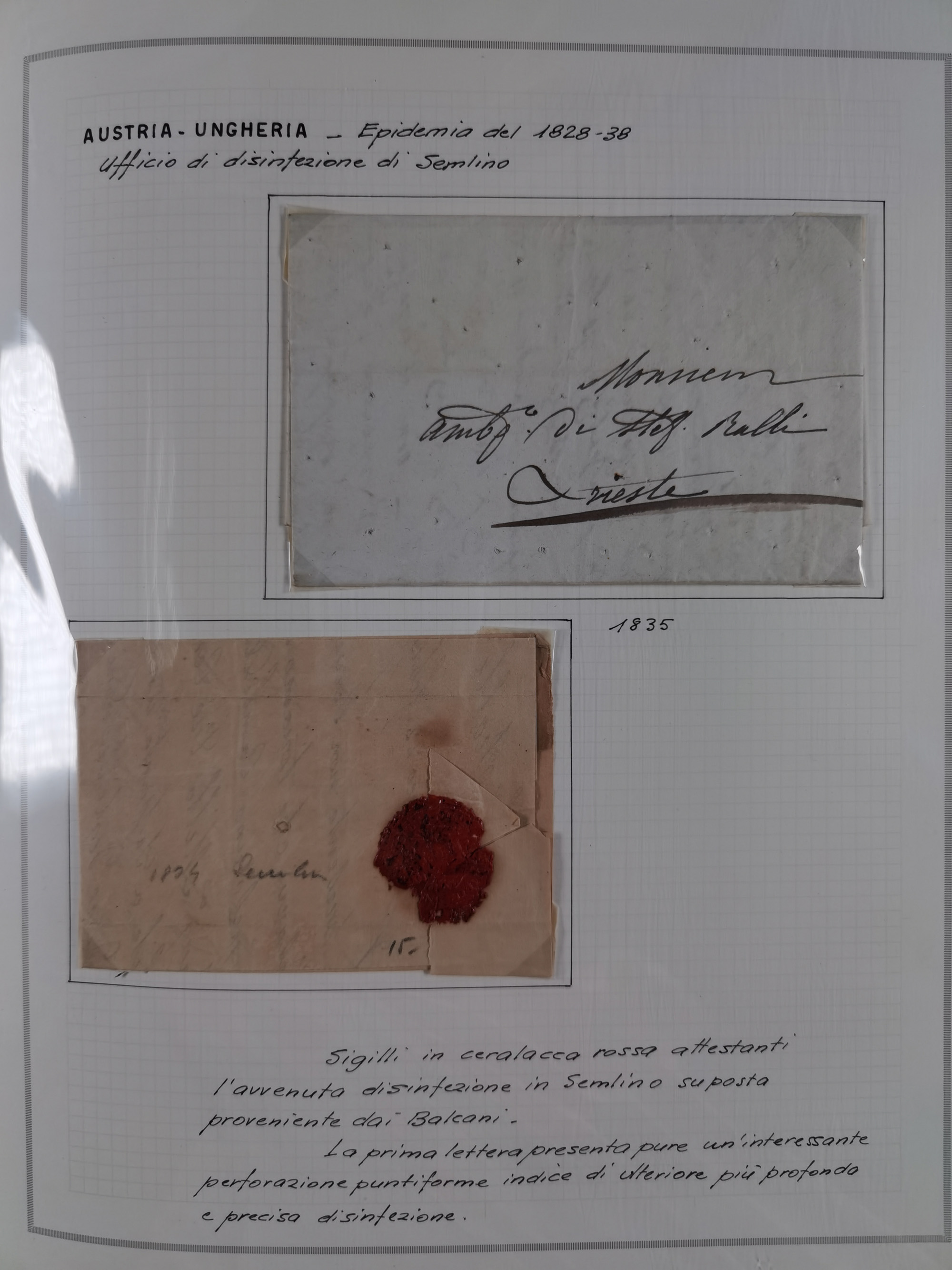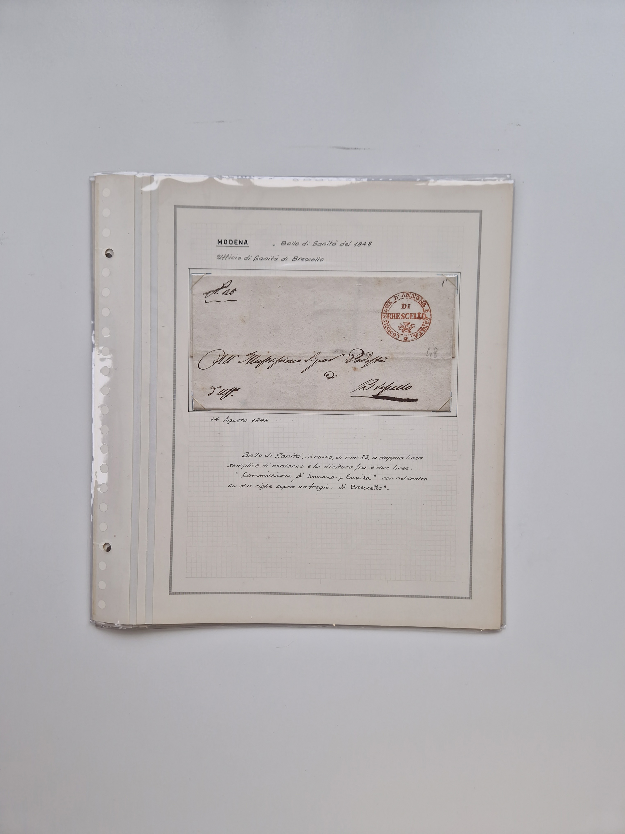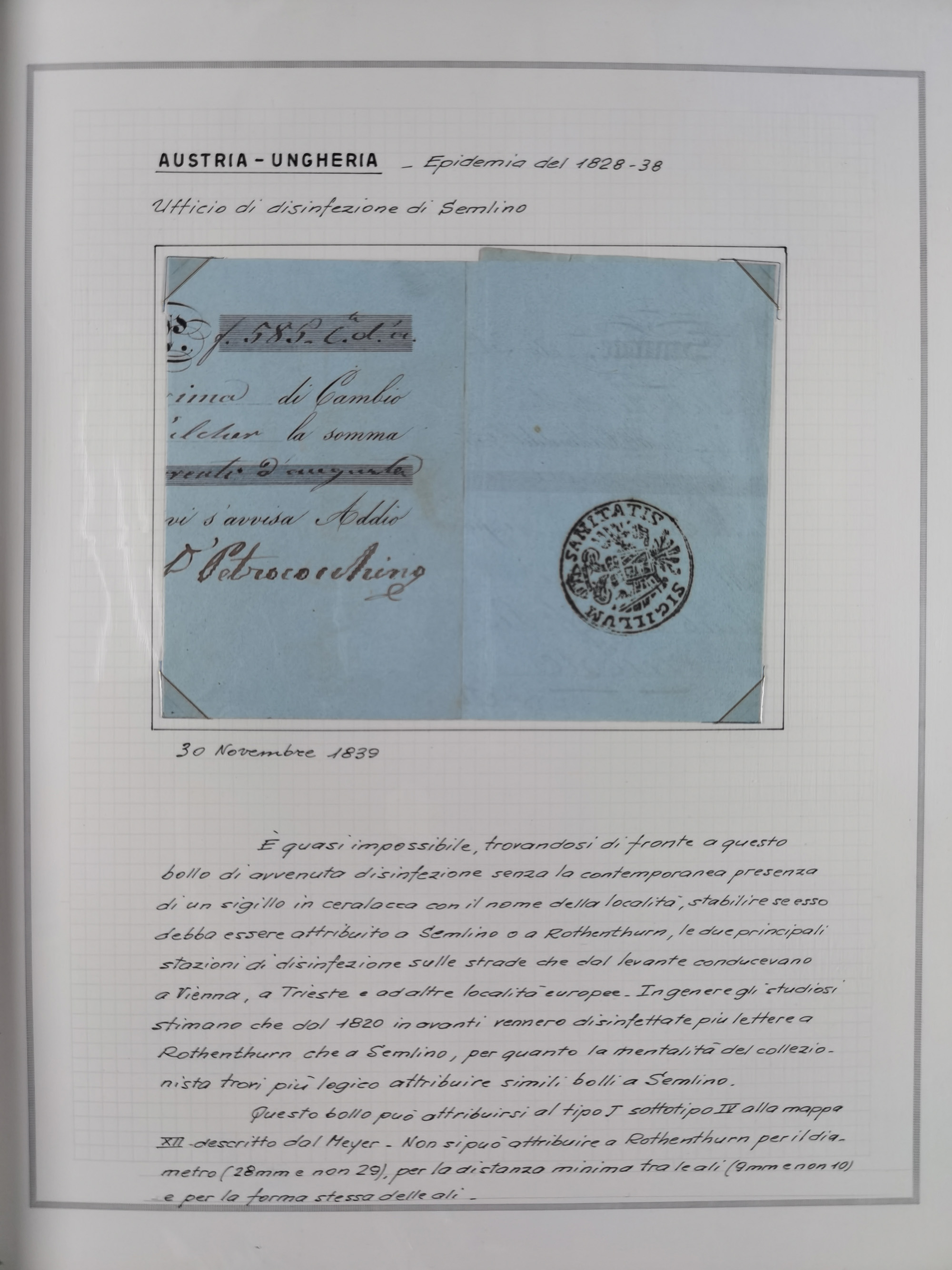 PIEMONT: 1585/1886, über 150 Briefe und Dokumente (wenige Dokumente als Kopie), ab einem sehr frühen Dokument aus 1585, einigen Briefen ab 1797 mit vielen seltenen Stempeln, Brief von Prof. Michele Buniva (von Napoleon ernannter Professor für öffentliche und private Hygiene), Brief von 1830 aus Odessa nach Genua, Mitteilung des 1. Staatssekretärs über die Notwendigkeit der Desinfizierung von Auslandspostsendungen, viele Zirkulare der Gesundheitsmagistrate, etc., sehr reichhaltig, sauber beschrieben in sechs Alben