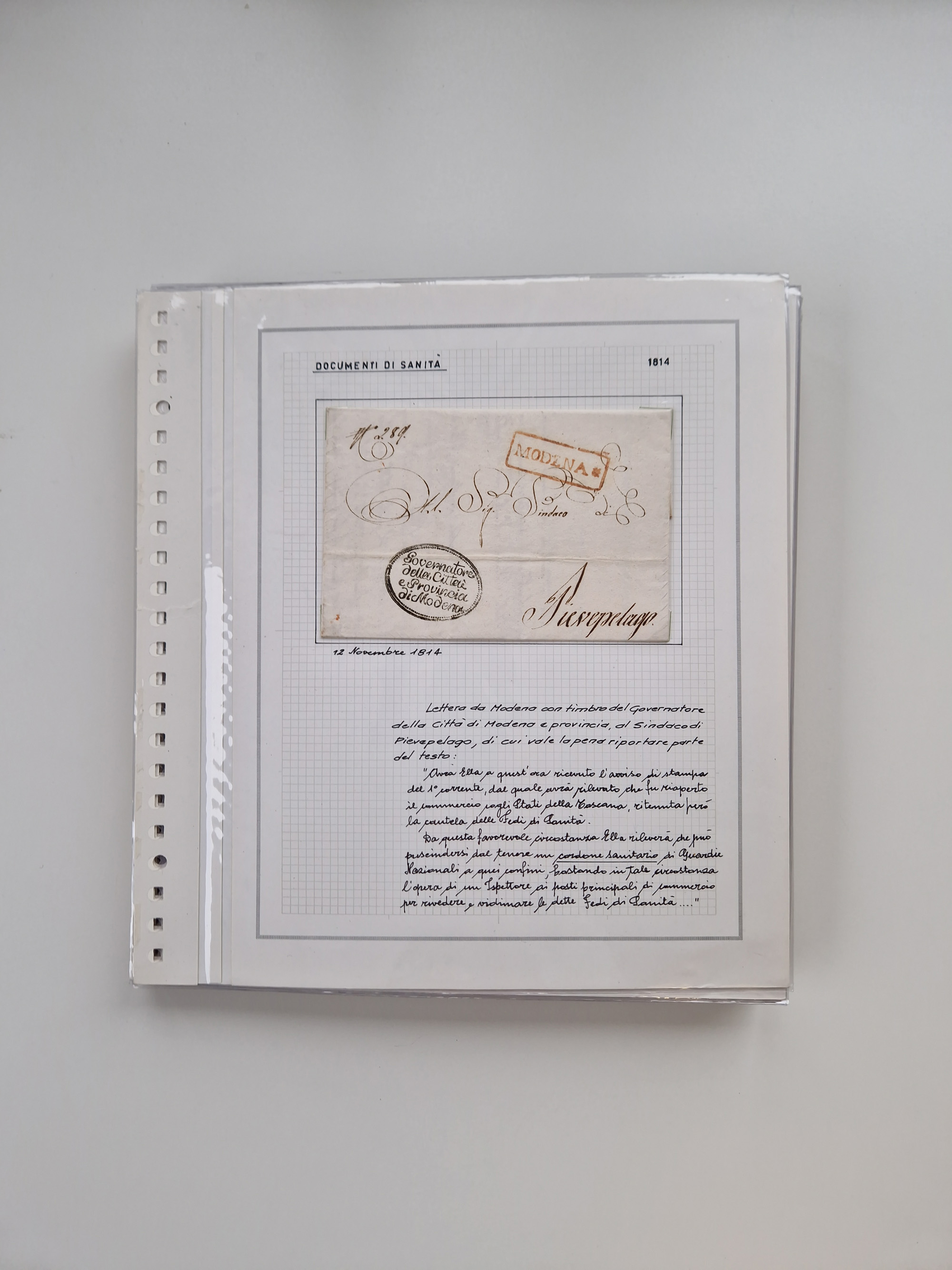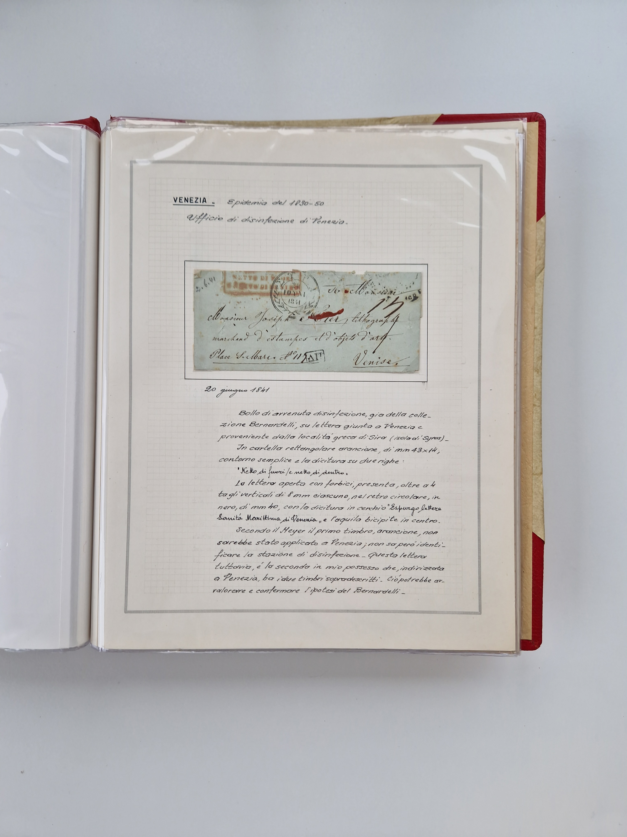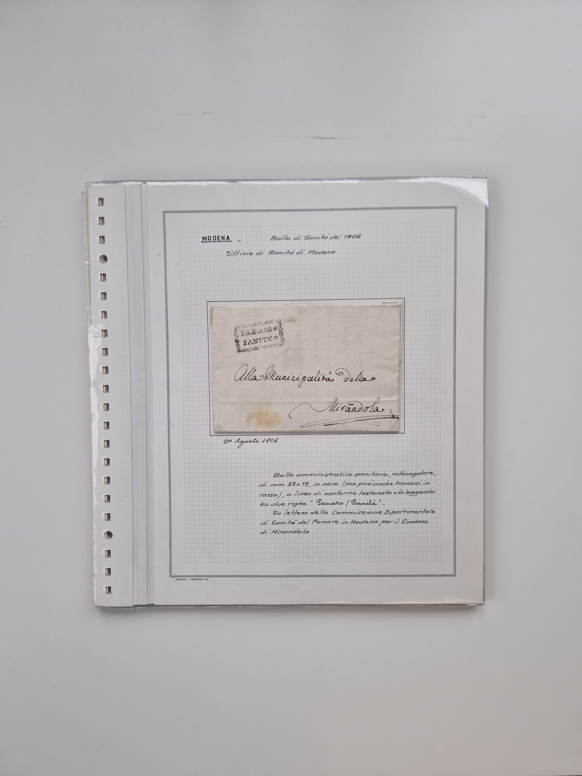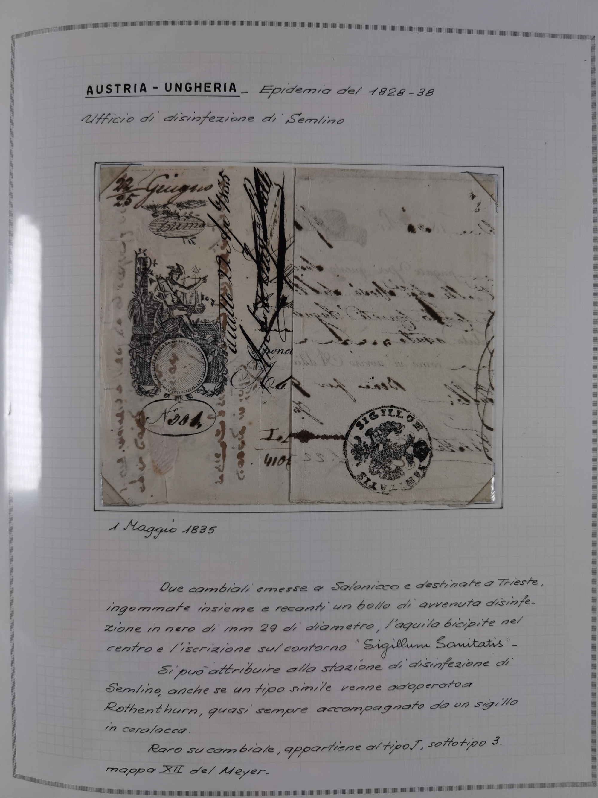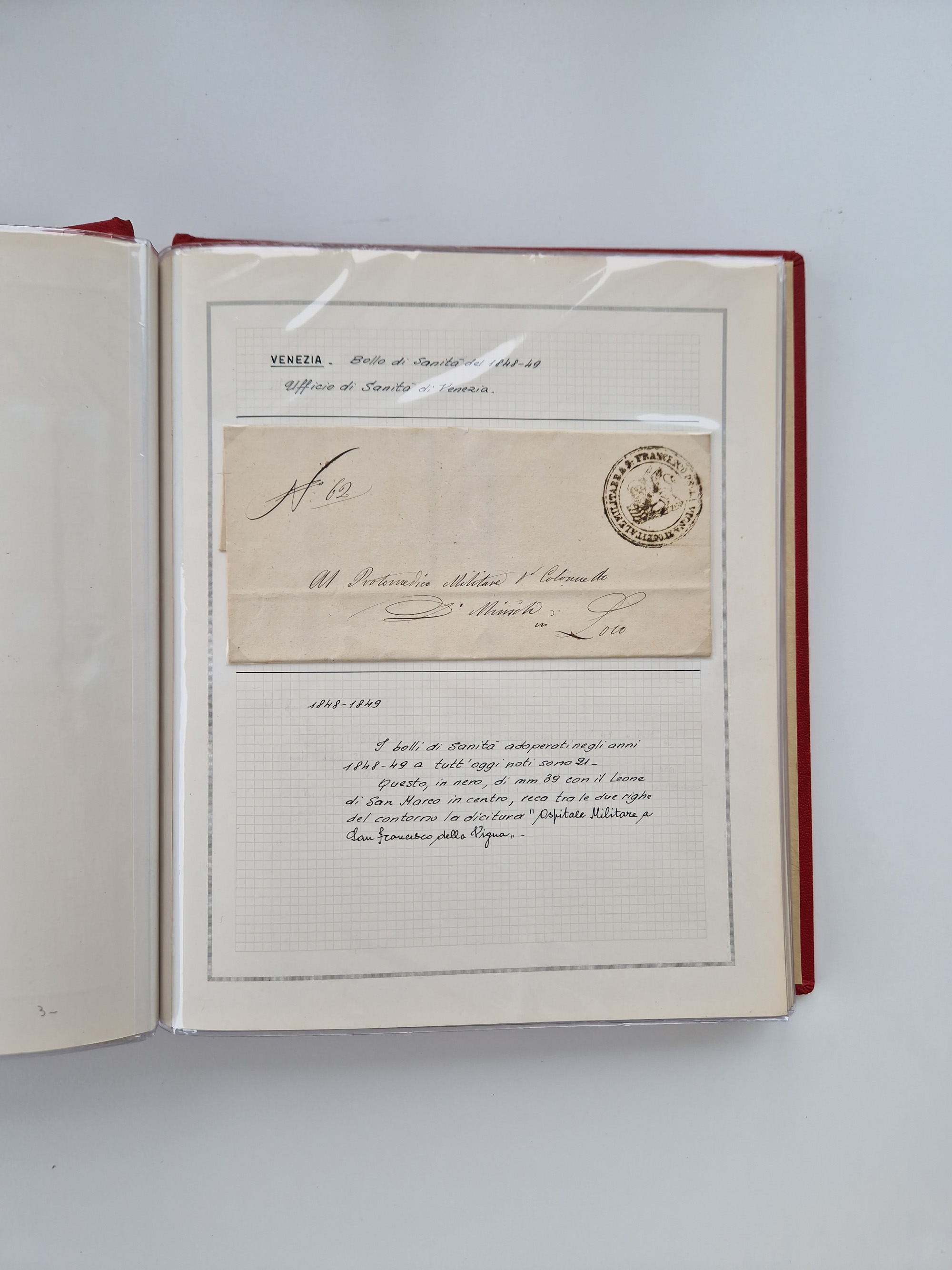 PIEMONT: 1585/1886, über 150 Briefe und Dokumente (wenige Dokumente als Kopie), ab einem sehr frühen Dokument aus 1585, einigen Briefen ab 1797 mit vielen seltenen Stempeln, Brief von Prof. Michele Buniva (von Napoleon ernannter Professor für öffentliche und private Hygiene), Brief von 1830 aus Odessa nach Genua, Mitteilung des 1. Staatssekretärs über die Notwendigkeit der Desinfizierung von Auslandspostsendungen, viele Zirkulare der Gesundheitsmagistrate, etc., sehr reichhaltig, sauber beschrieben in sechs Alben