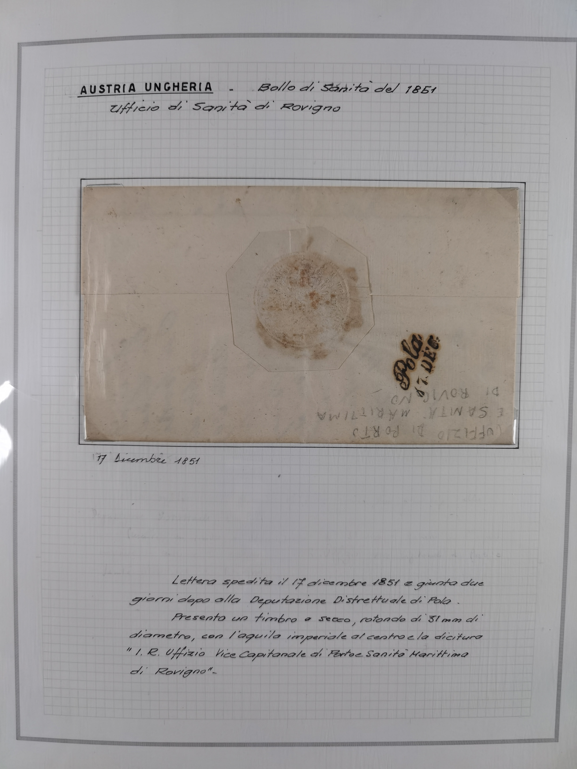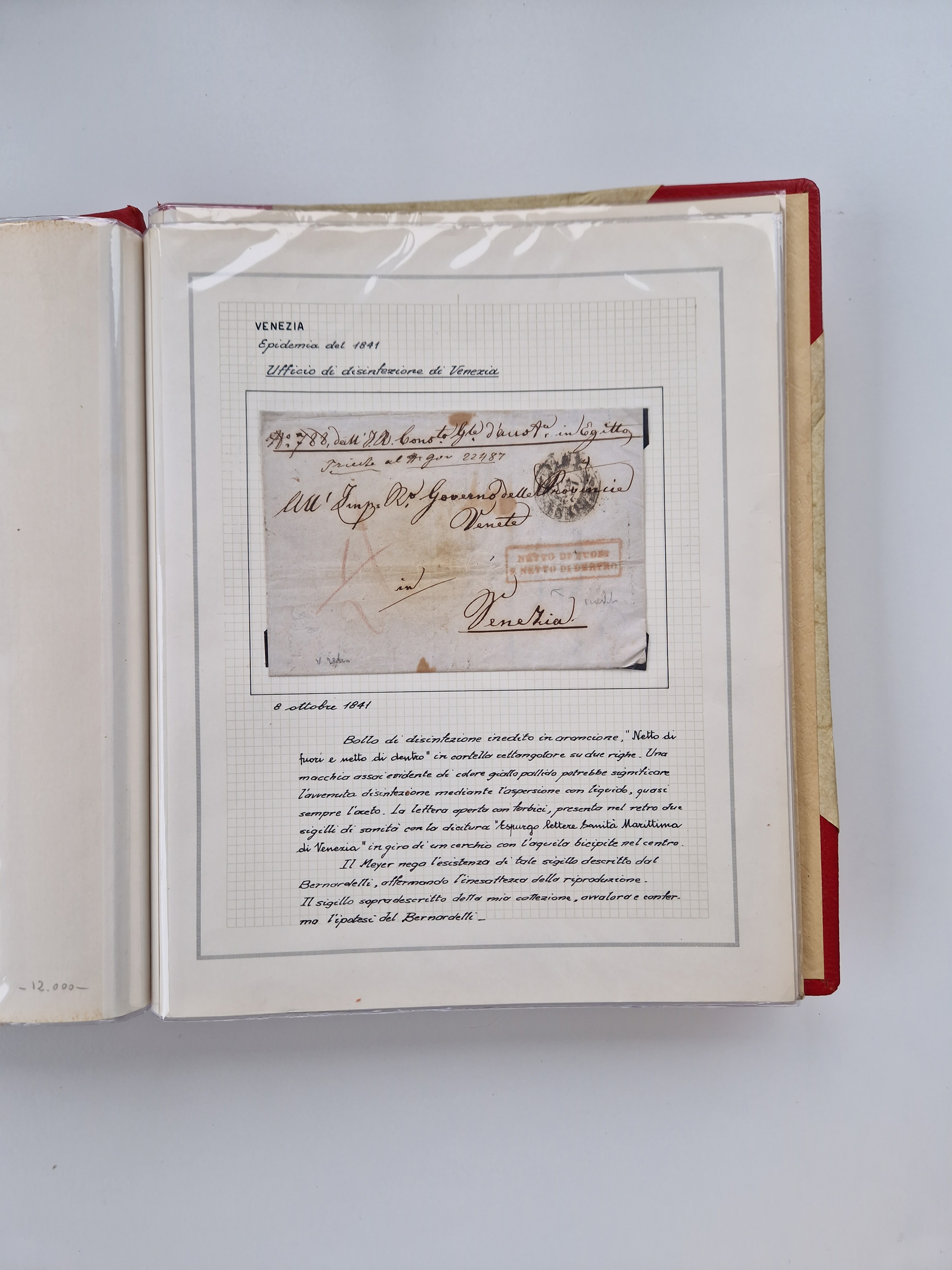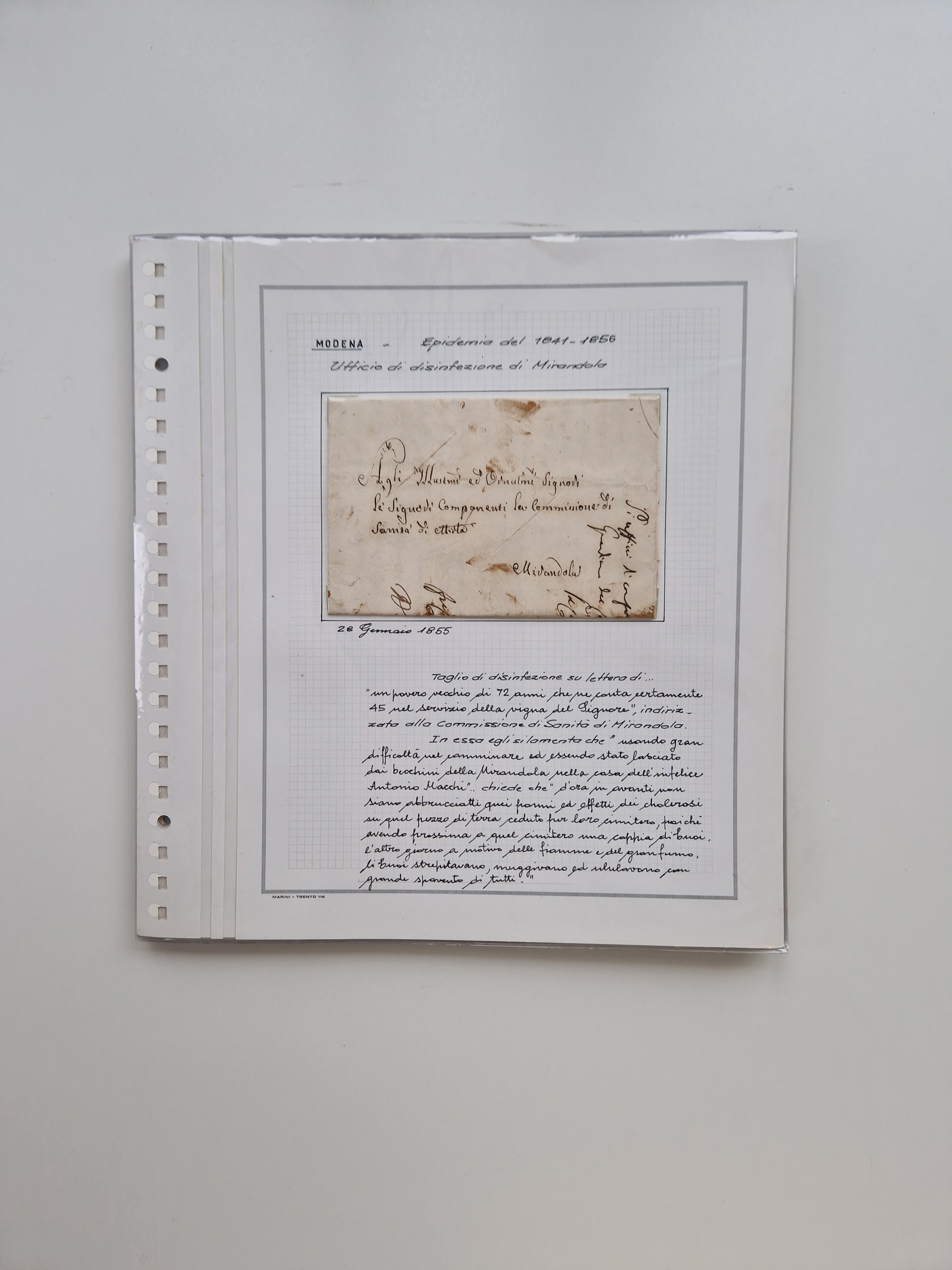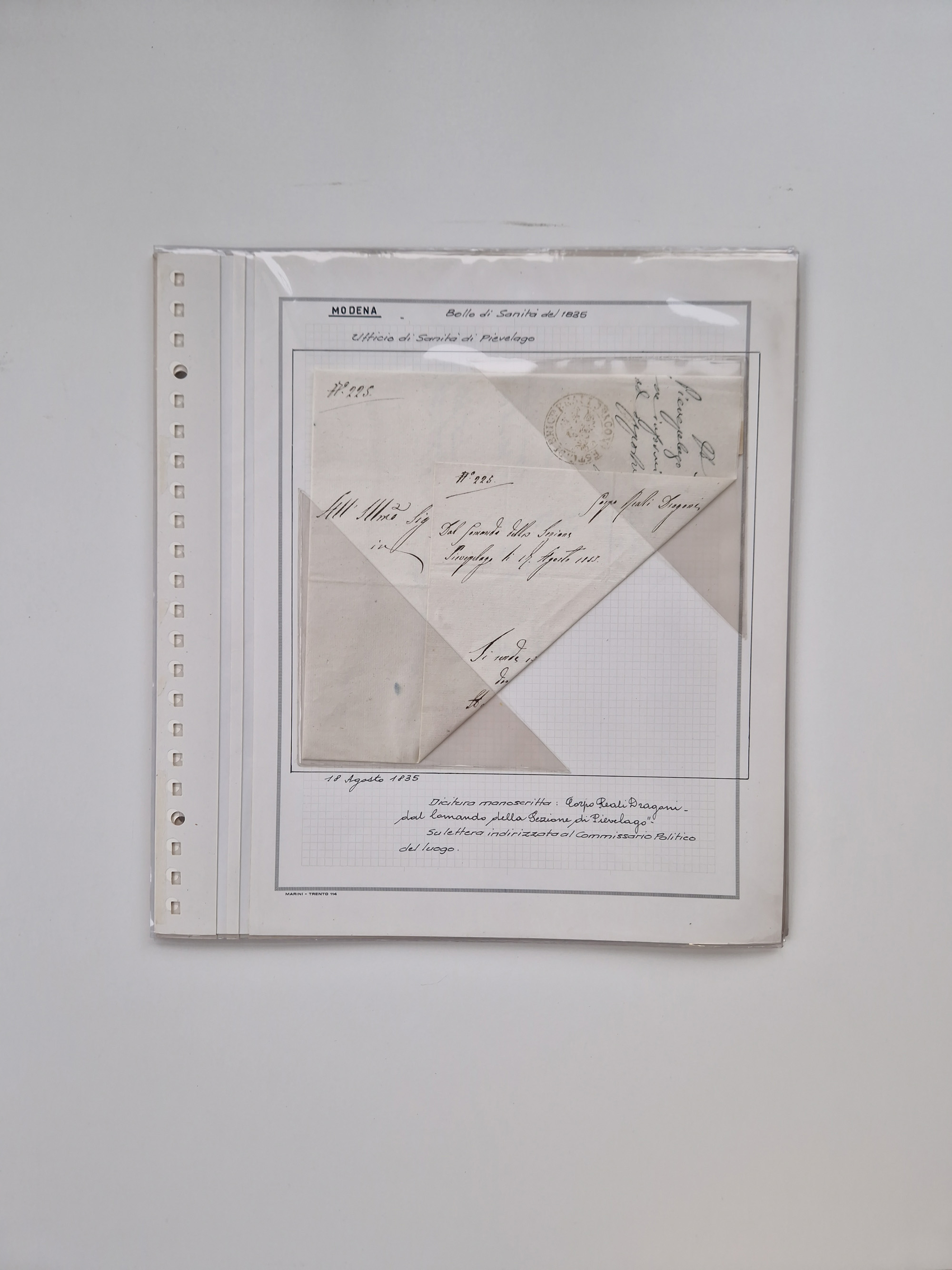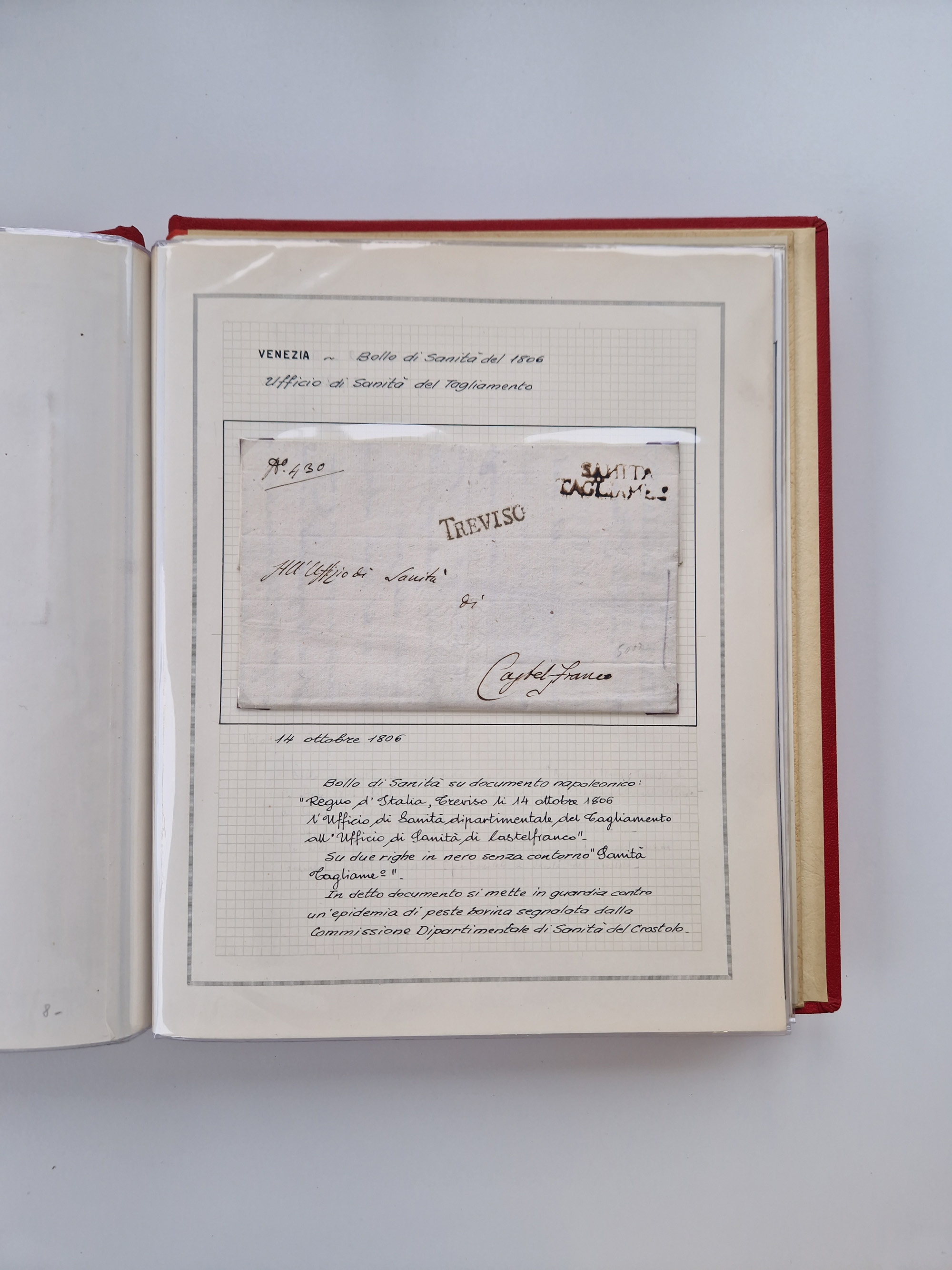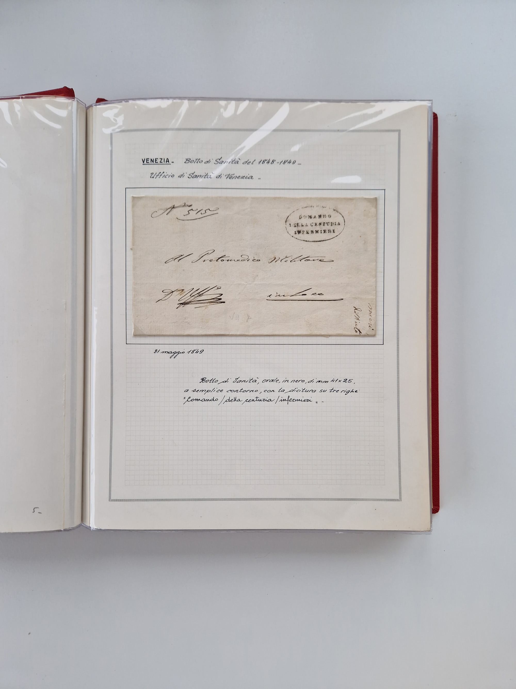 PIEMONT: 1585/1886, über 150 Briefe und Dokumente (wenige Dokumente als Kopie), ab einem sehr frühen Dokument aus 1585, einigen Briefen ab 1797 mit vielen seltenen Stempeln, Brief von Prof. Michele Buniva (von Napoleon ernannter Professor für öffentliche und private Hygiene), Brief von 1830 aus Odessa nach Genua, Mitteilung des 1. Staatssekretärs über die Notwendigkeit der Desinfizierung von Auslandspostsendungen, viele Zirkulare der Gesundheitsmagistrate, etc., sehr reichhaltig, sauber beschrieben in sechs Alben