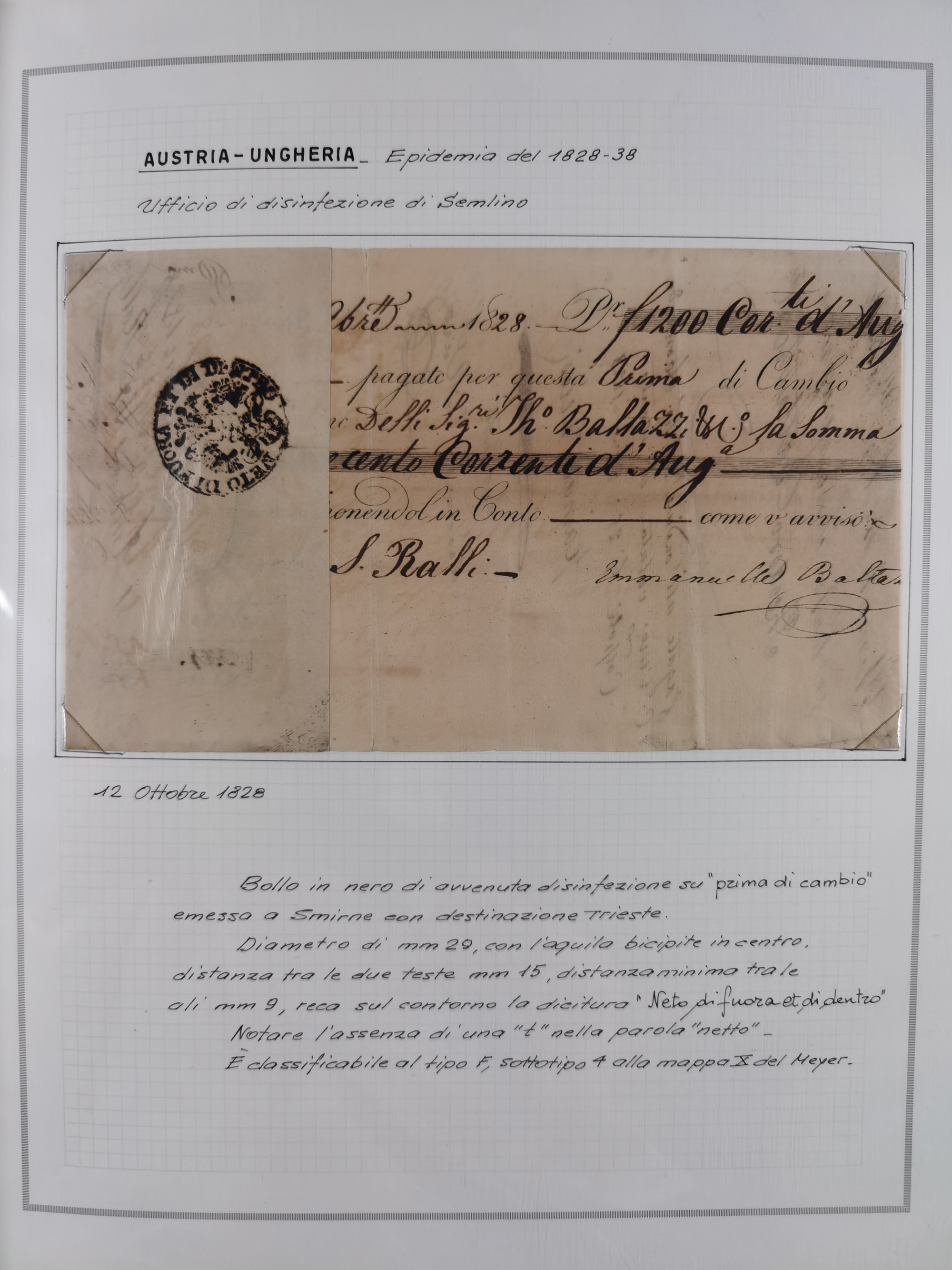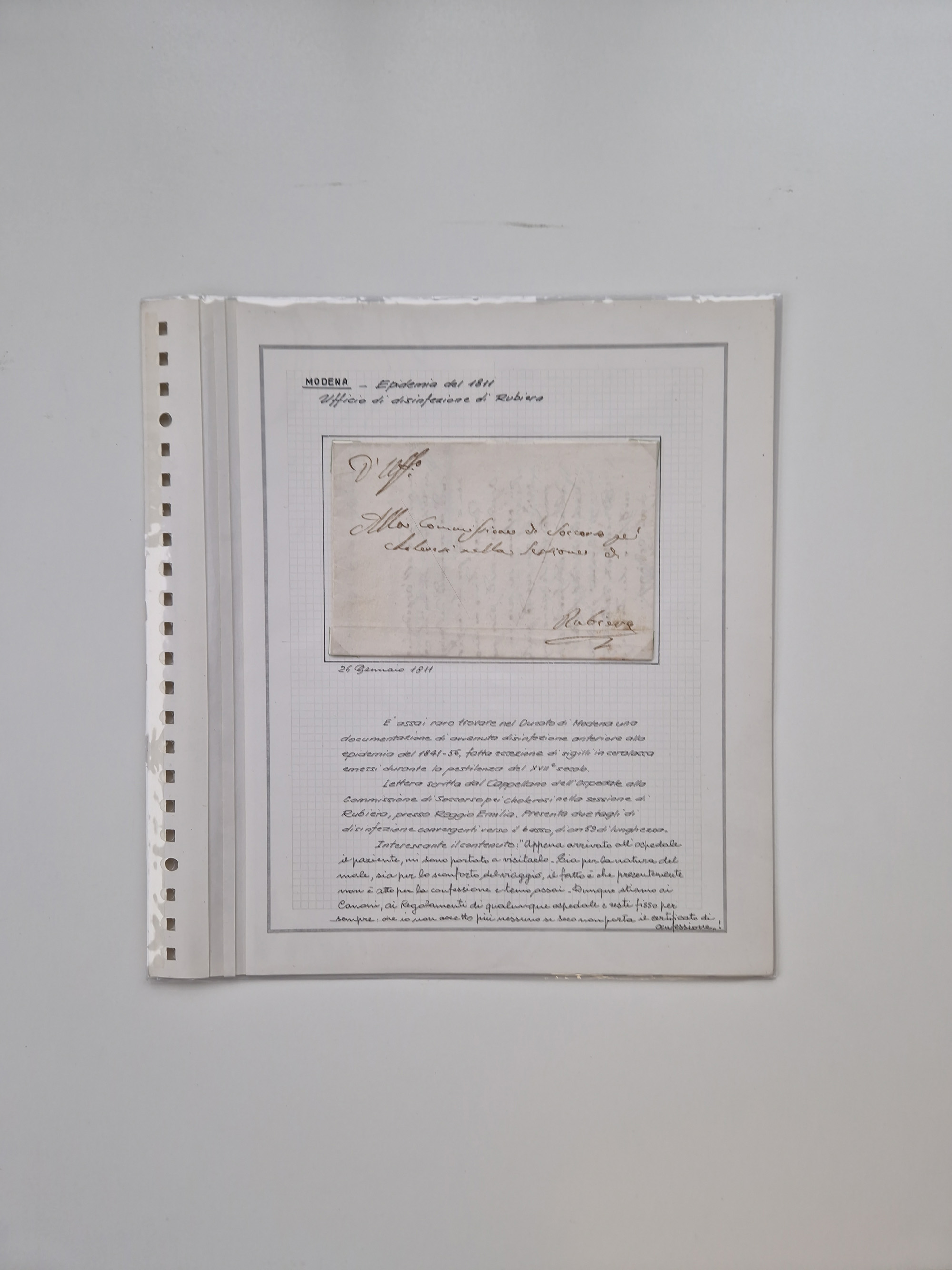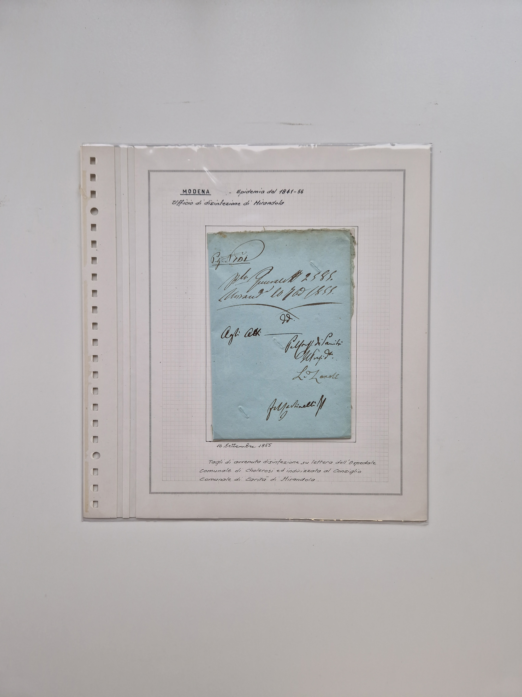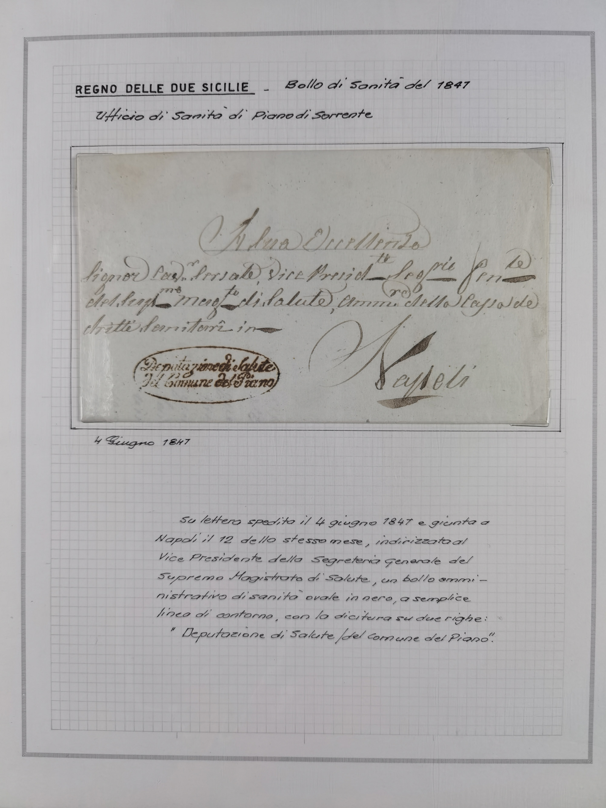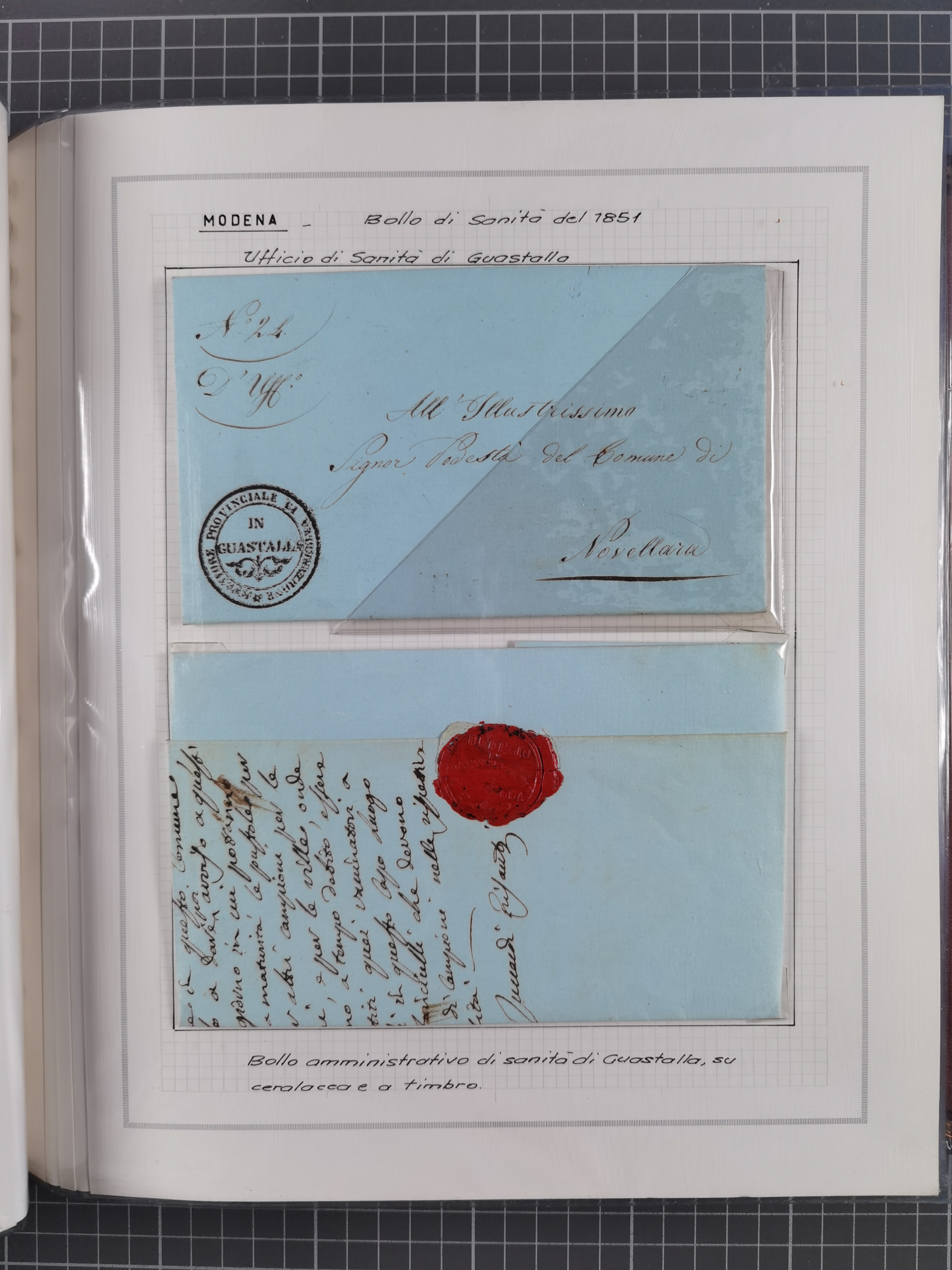 PIEMONT: 1585/1886, über 150 Briefe und Dokumente (wenige Dokumente als Kopie), ab einem sehr frühen Dokument aus 1585, einigen Briefen ab 1797 mit vielen seltenen Stempeln, Brief von Prof. Michele Buniva (von Napoleon ernannter Professor für öffentliche und private Hygiene), Brief von 1830 aus Odessa nach Genua, Mitteilung des 1. Staatssekretärs über die Notwendigkeit der Desinfizierung von Auslandspostsendungen, viele Zirkulare der Gesundheitsmagistrate, etc., sehr reichhaltig, sauber beschrieben in sechs Alben