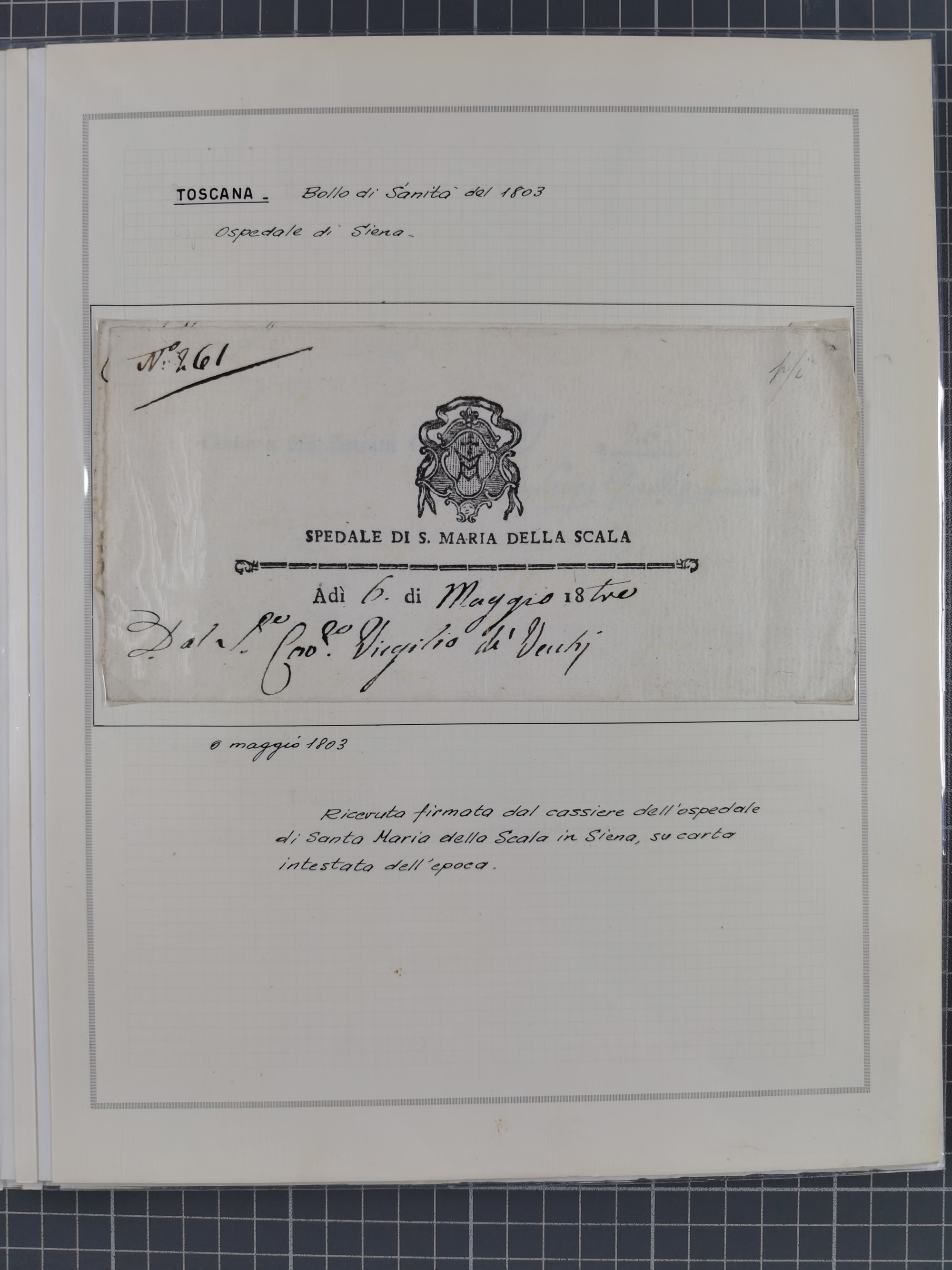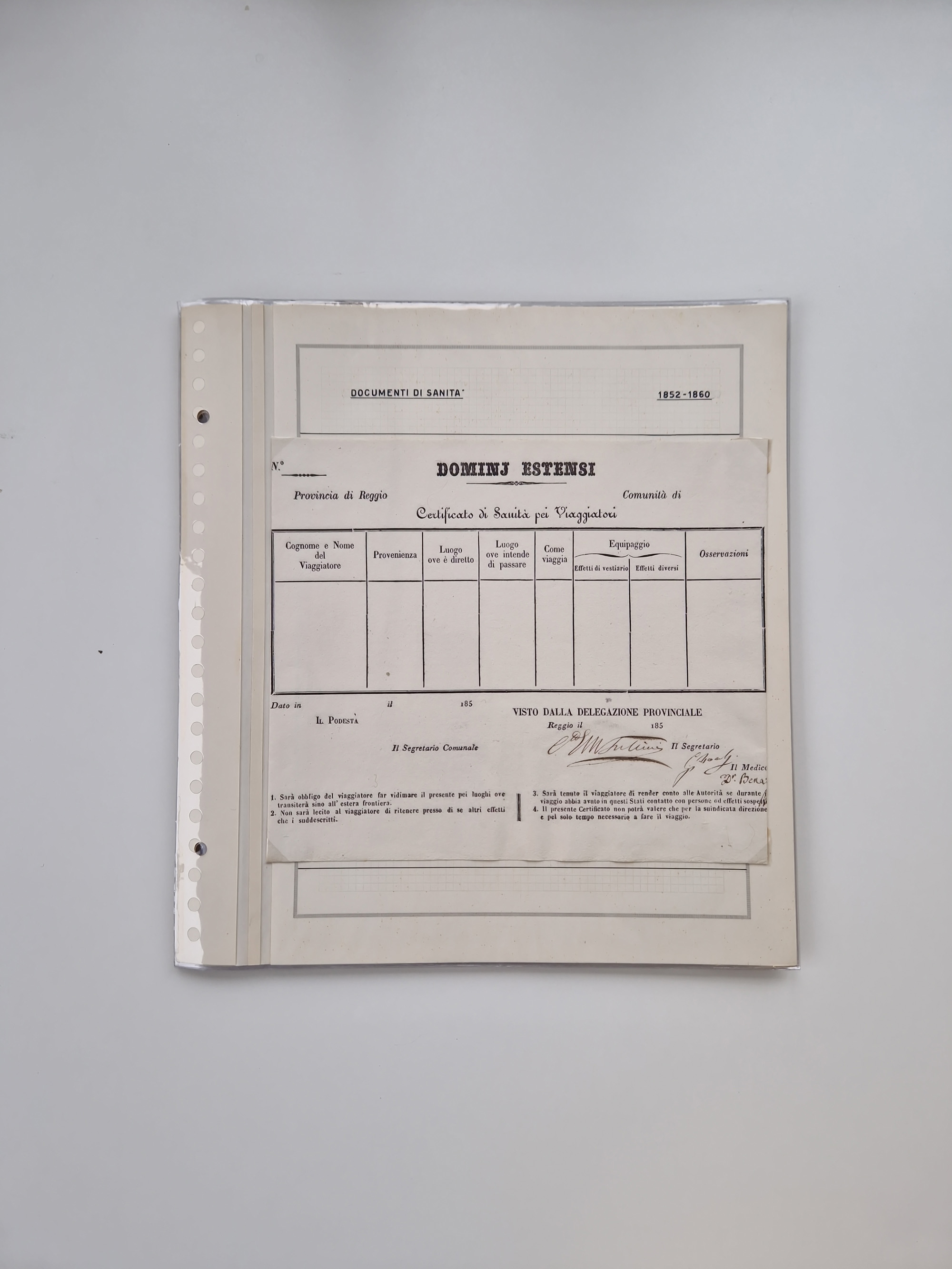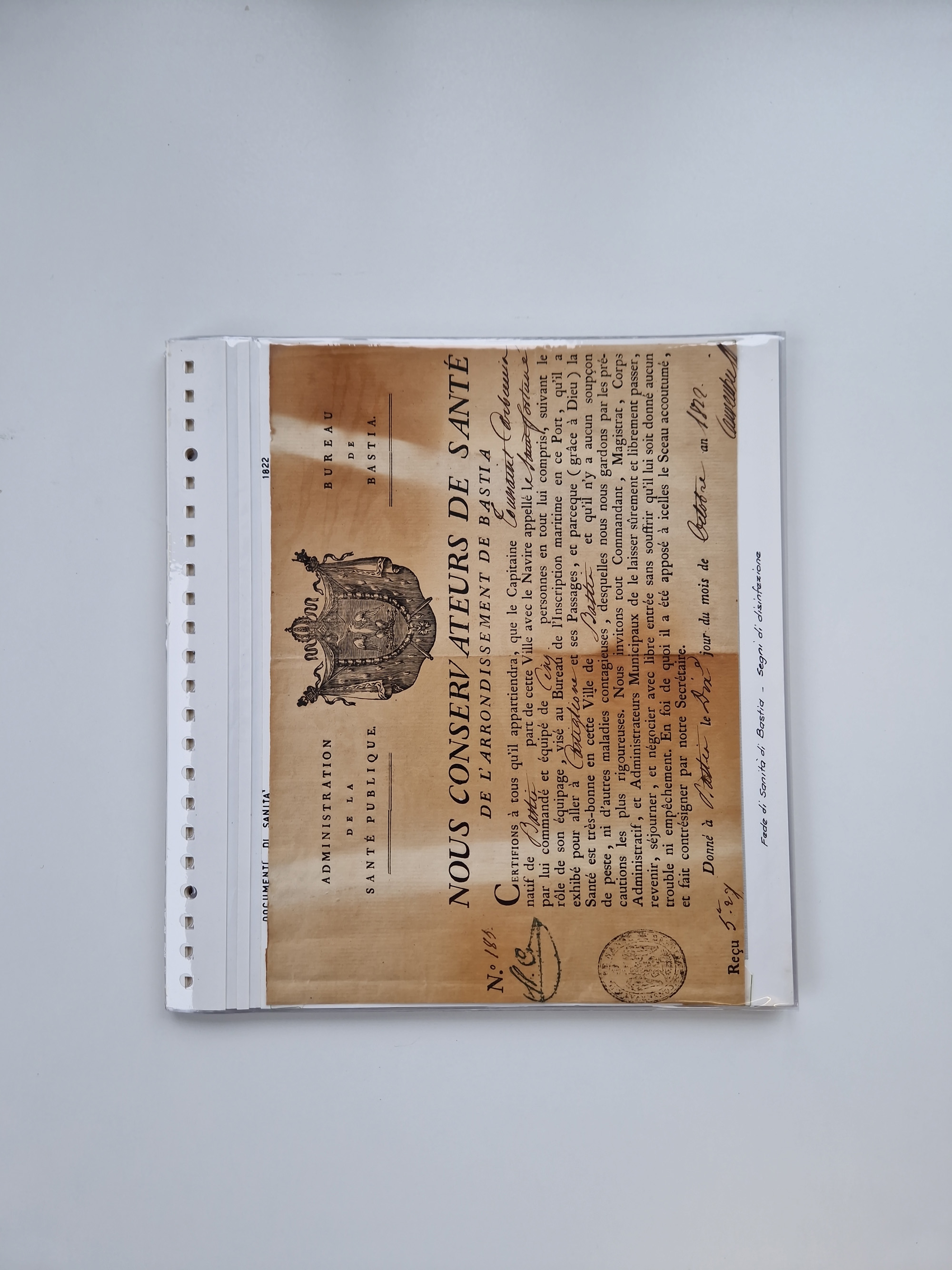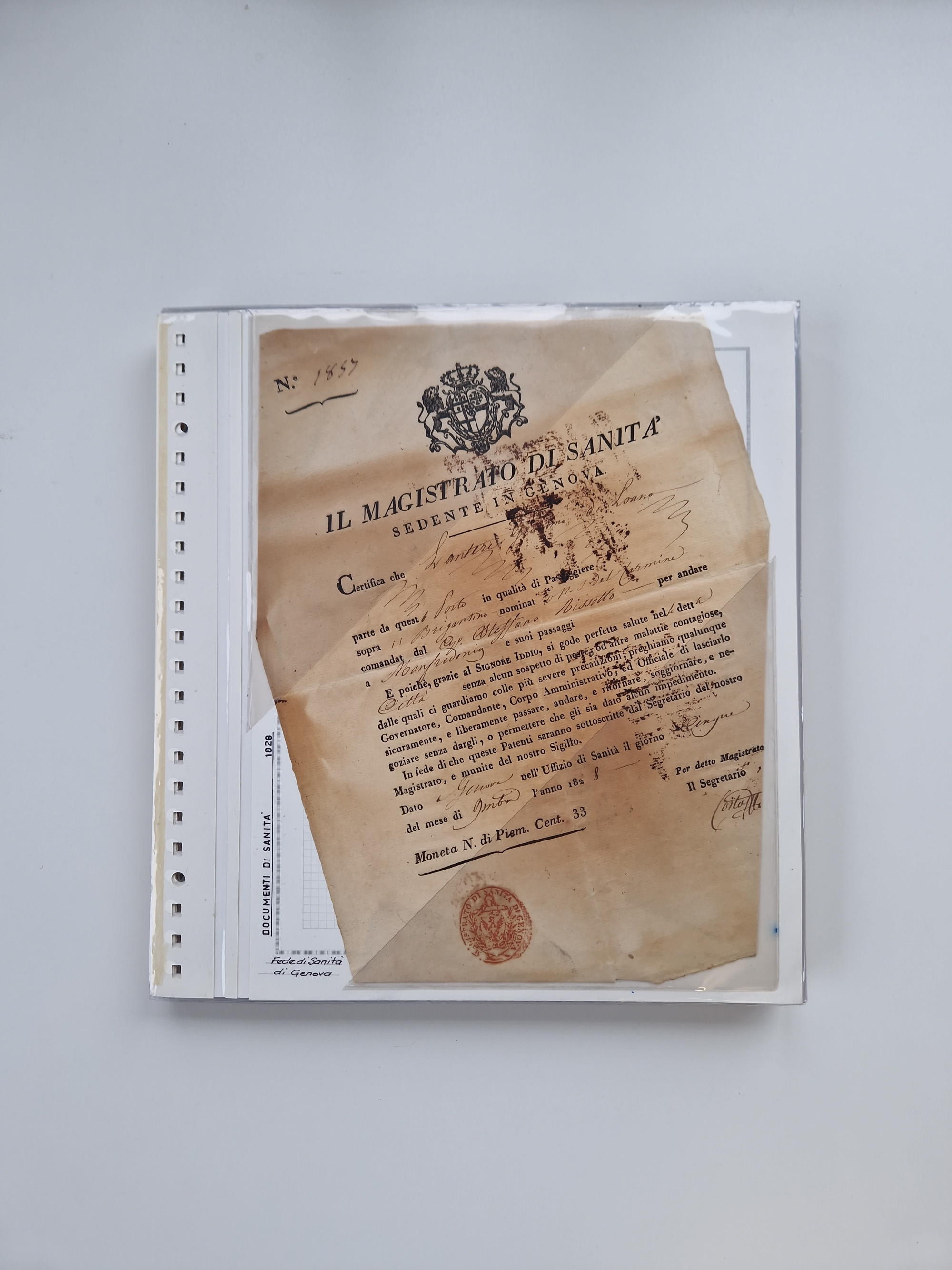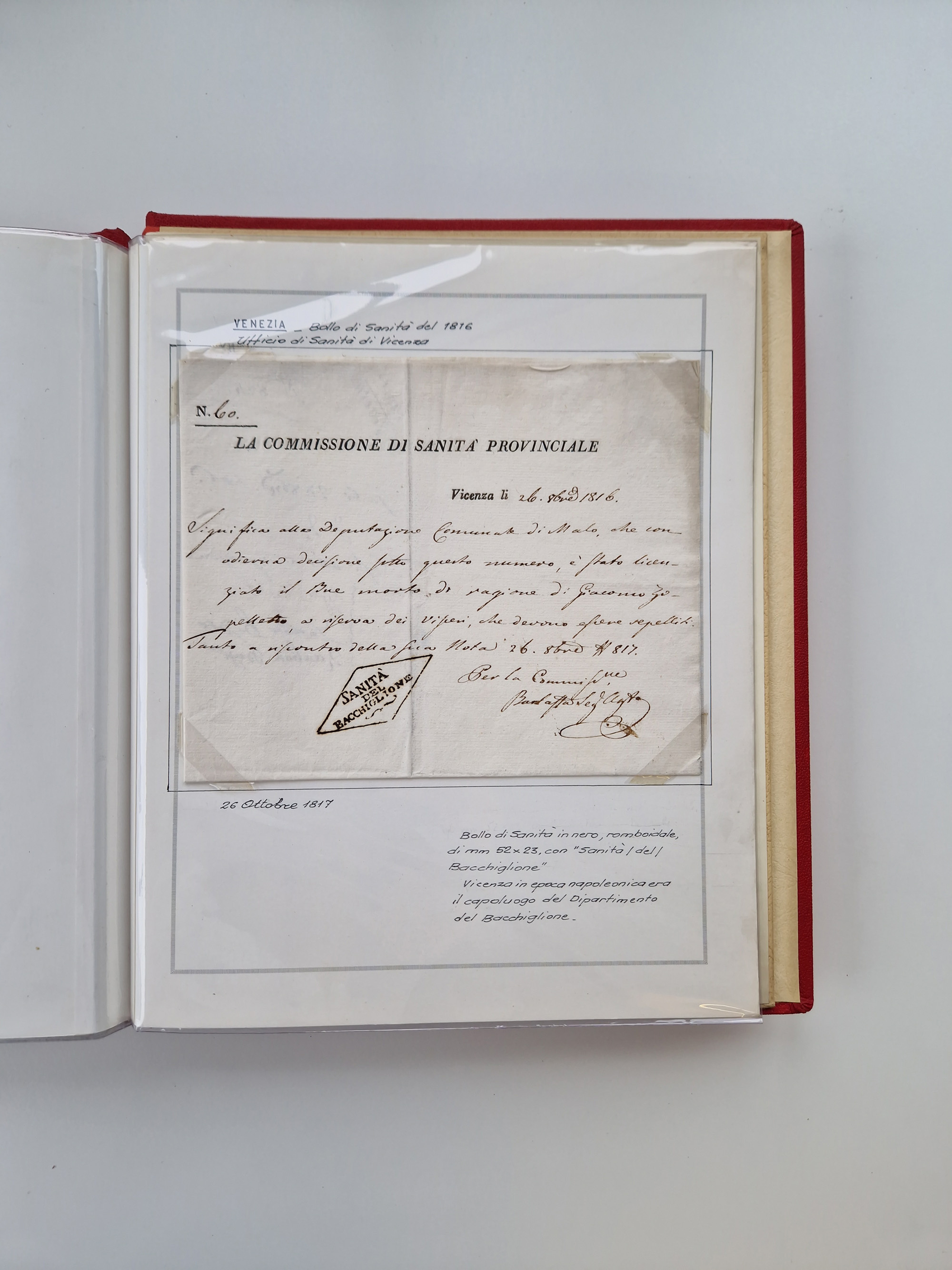 PIEMONT: 1585/1886, über 150 Briefe und Dokumente (wenige Dokumente als Kopie), ab einem sehr frühen Dokument aus 1585, einigen Briefen ab 1797 mit vielen seltenen Stempeln, Brief von Prof. Michele Buniva (von Napoleon ernannter Professor für öffentliche und private Hygiene), Brief von 1830 aus Odessa nach Genua, Mitteilung des 1. Staatssekretärs über die Notwendigkeit der Desinfizierung von Auslandspostsendungen, viele Zirkulare der Gesundheitsmagistrate, etc., sehr reichhaltig, sauber beschrieben in sechs Alben