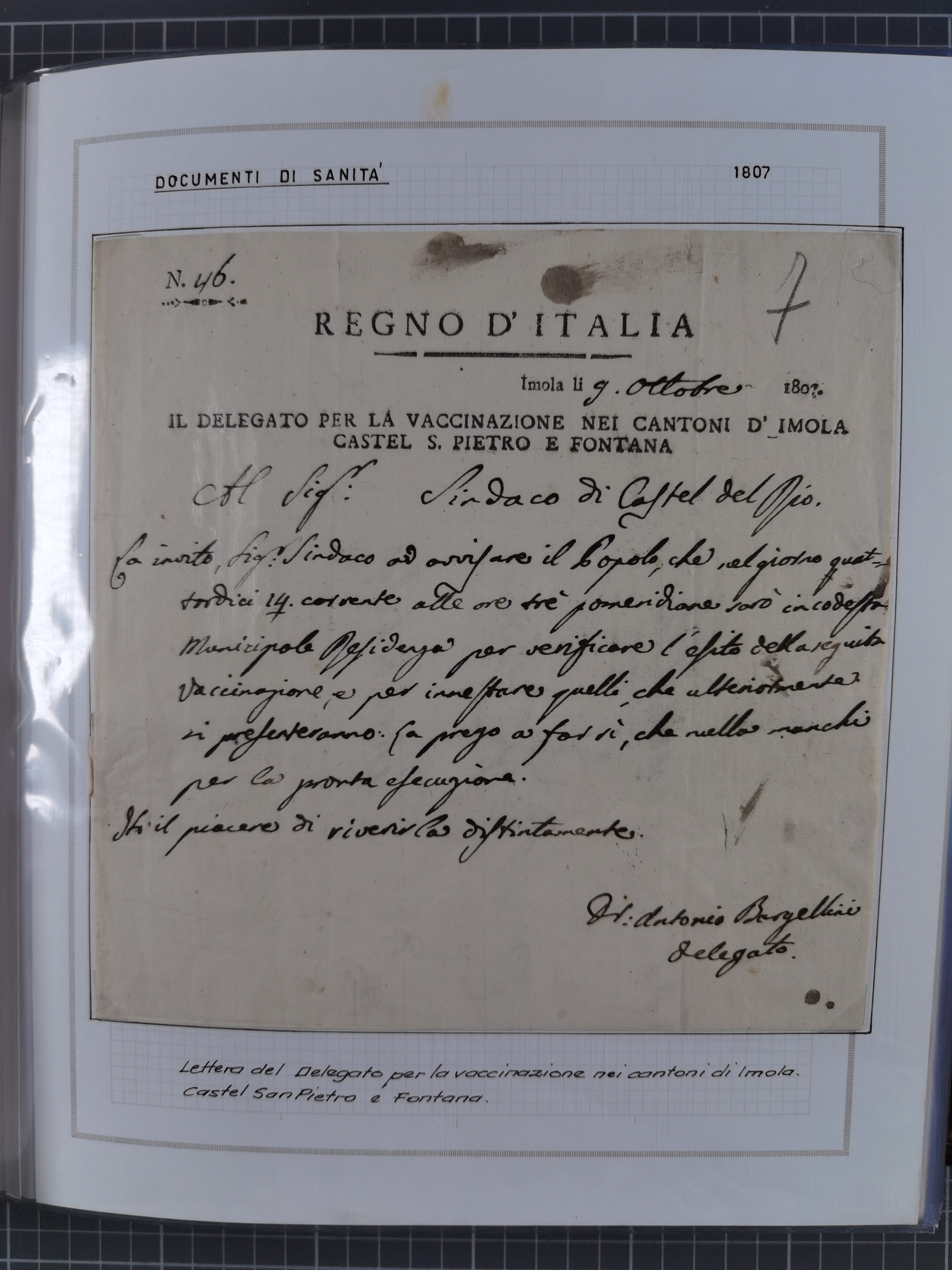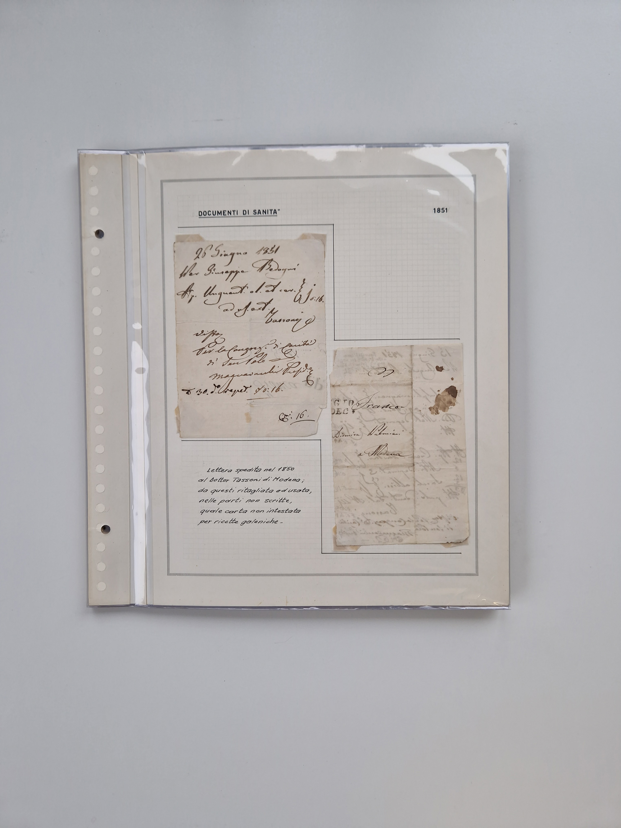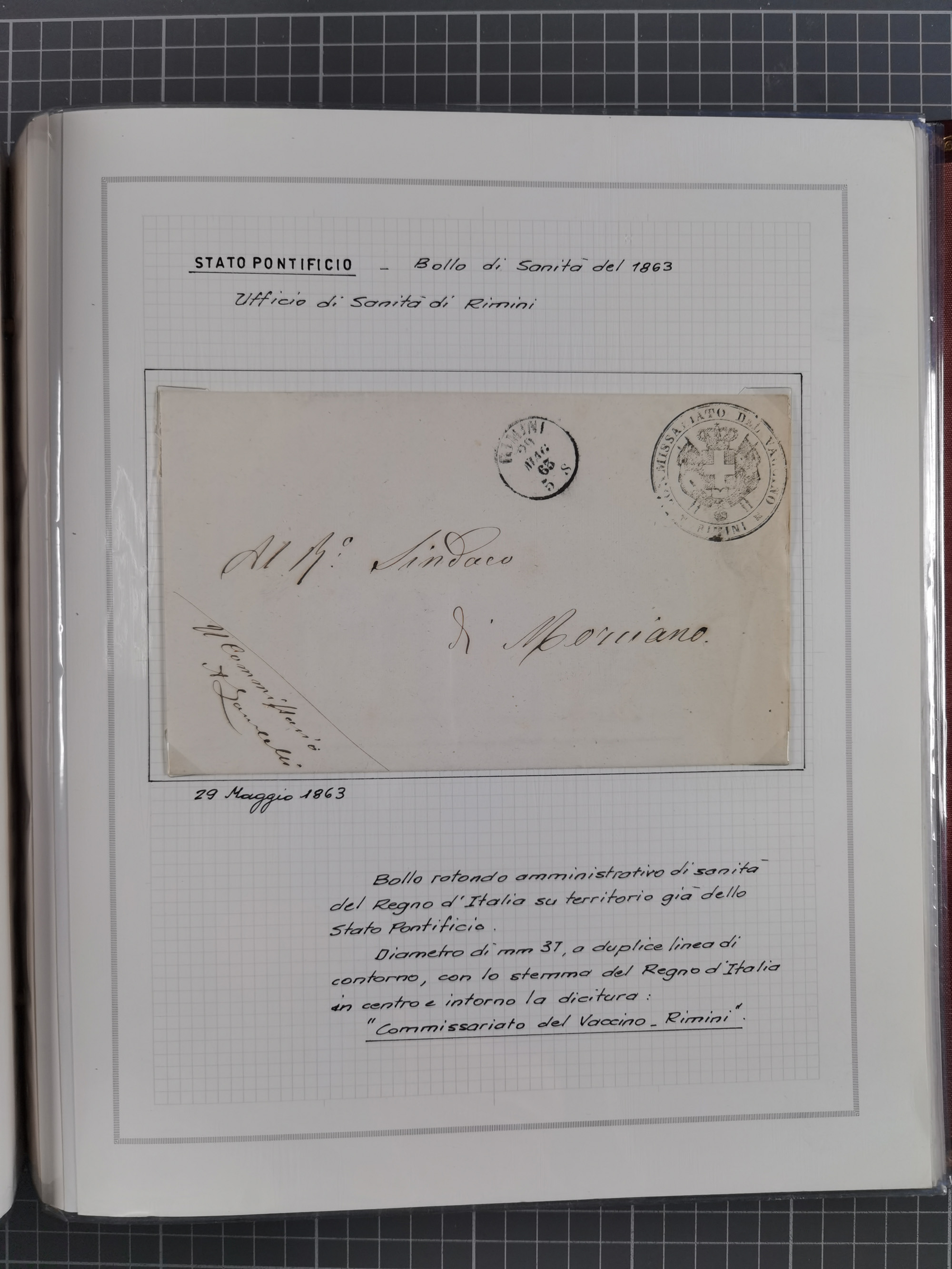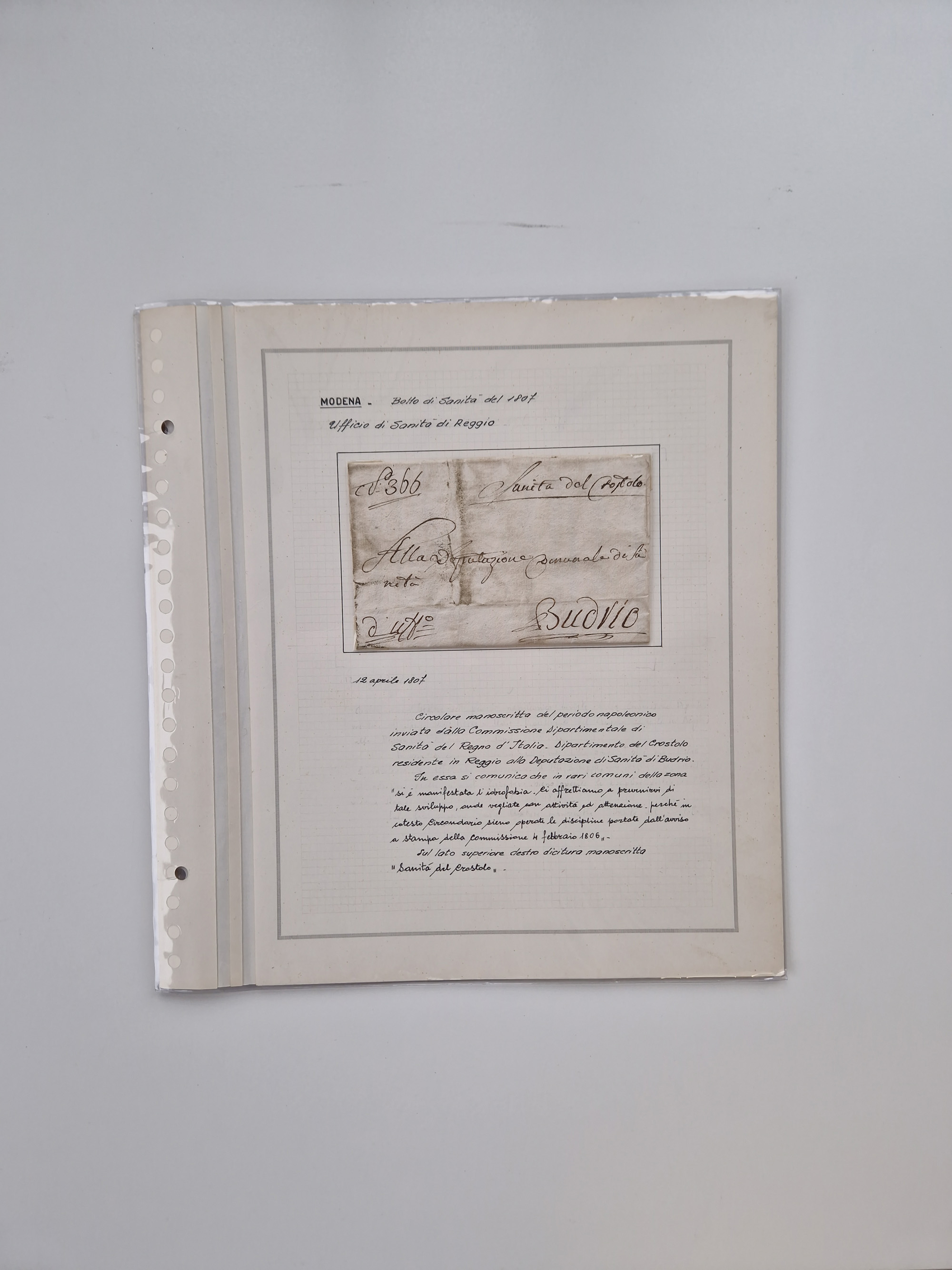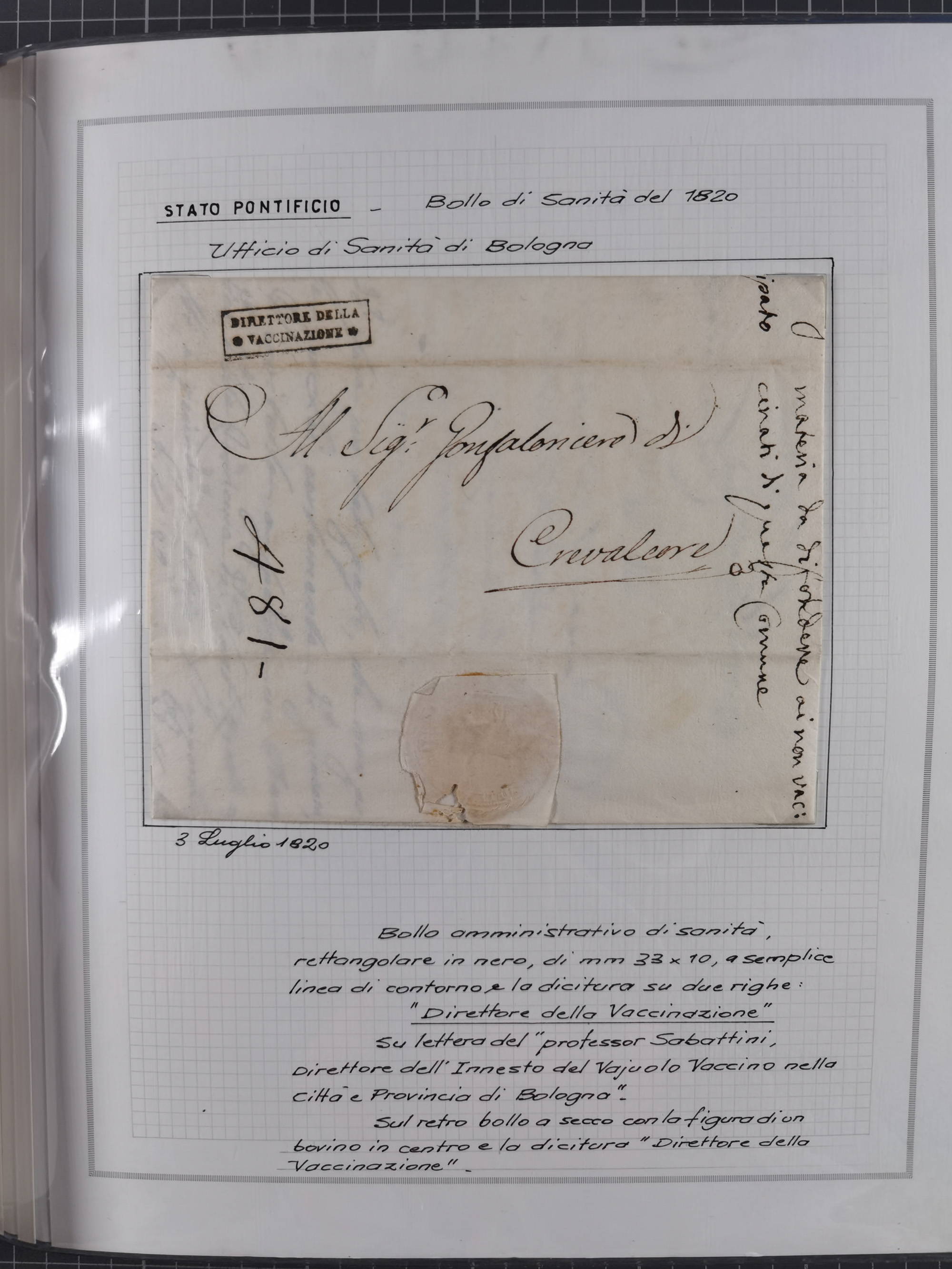 ITALIEN: 1807/1866, Sammlung mit 42 Briefen und Dokumenten, angefangen mit zwei Briefen aus 1807 mit “Il Delegato per la Vaccinazione”, später Italien Portomarke Mi.-Nr. P1 (unentwertet) auf Brief, sehr interessant, sauber beschrieben im Album