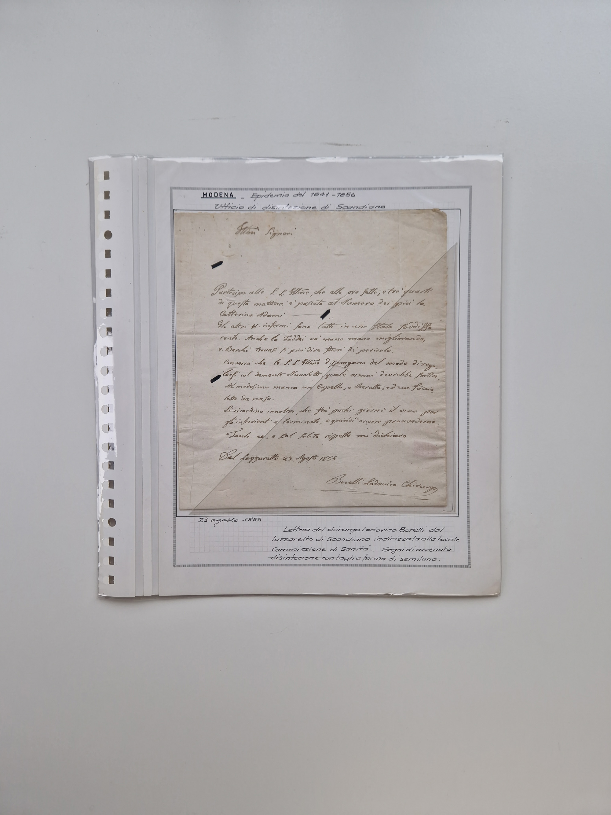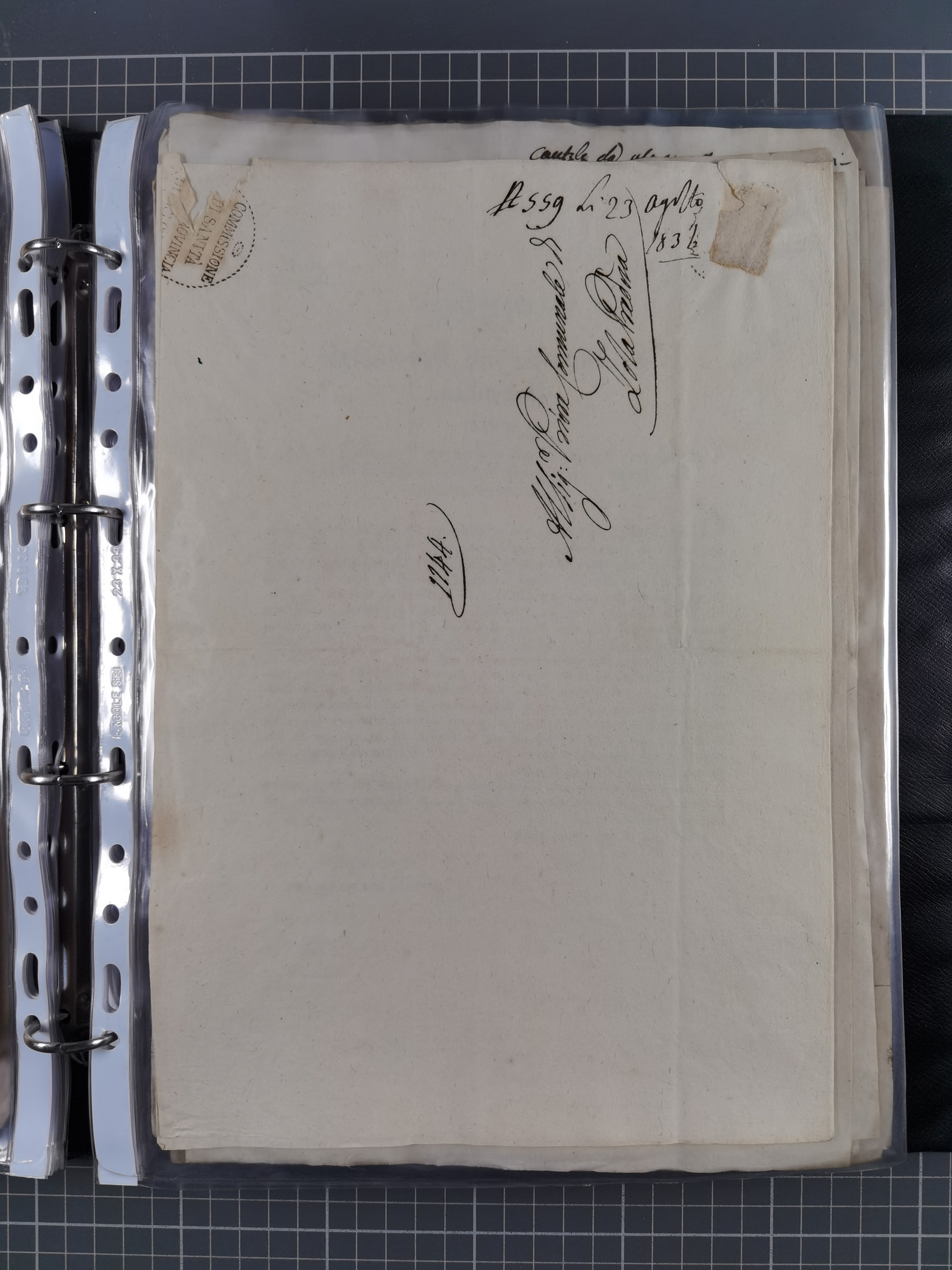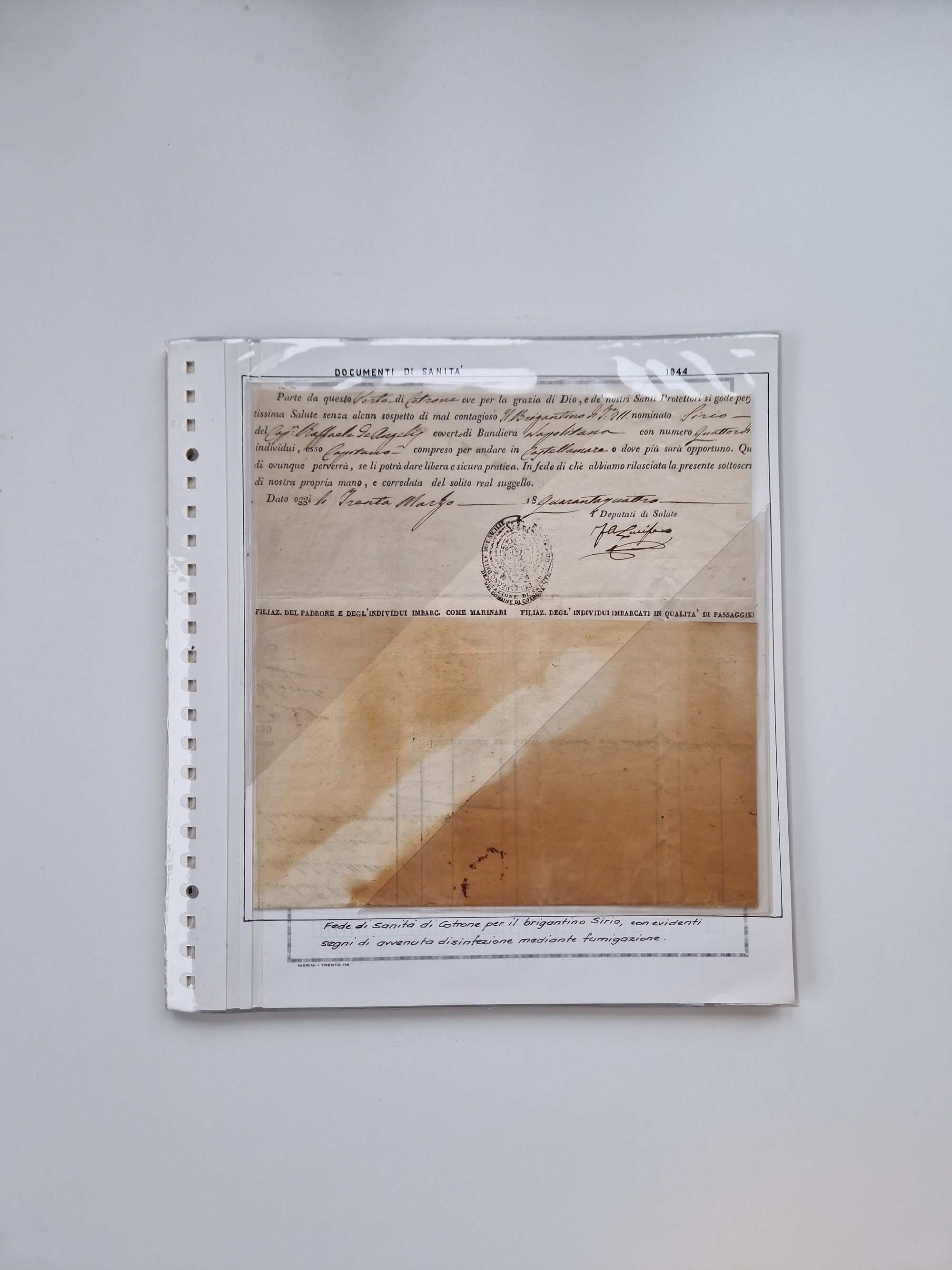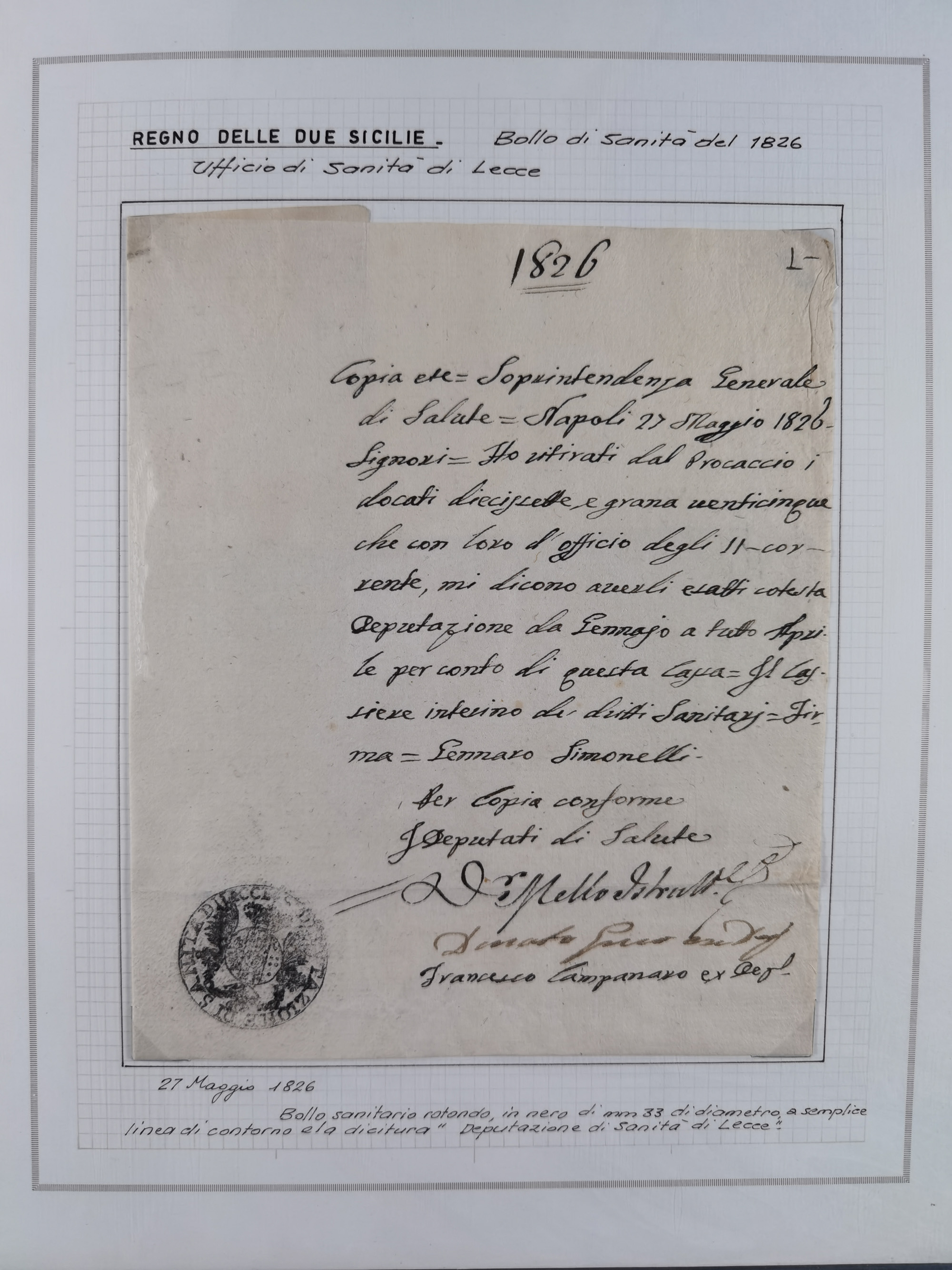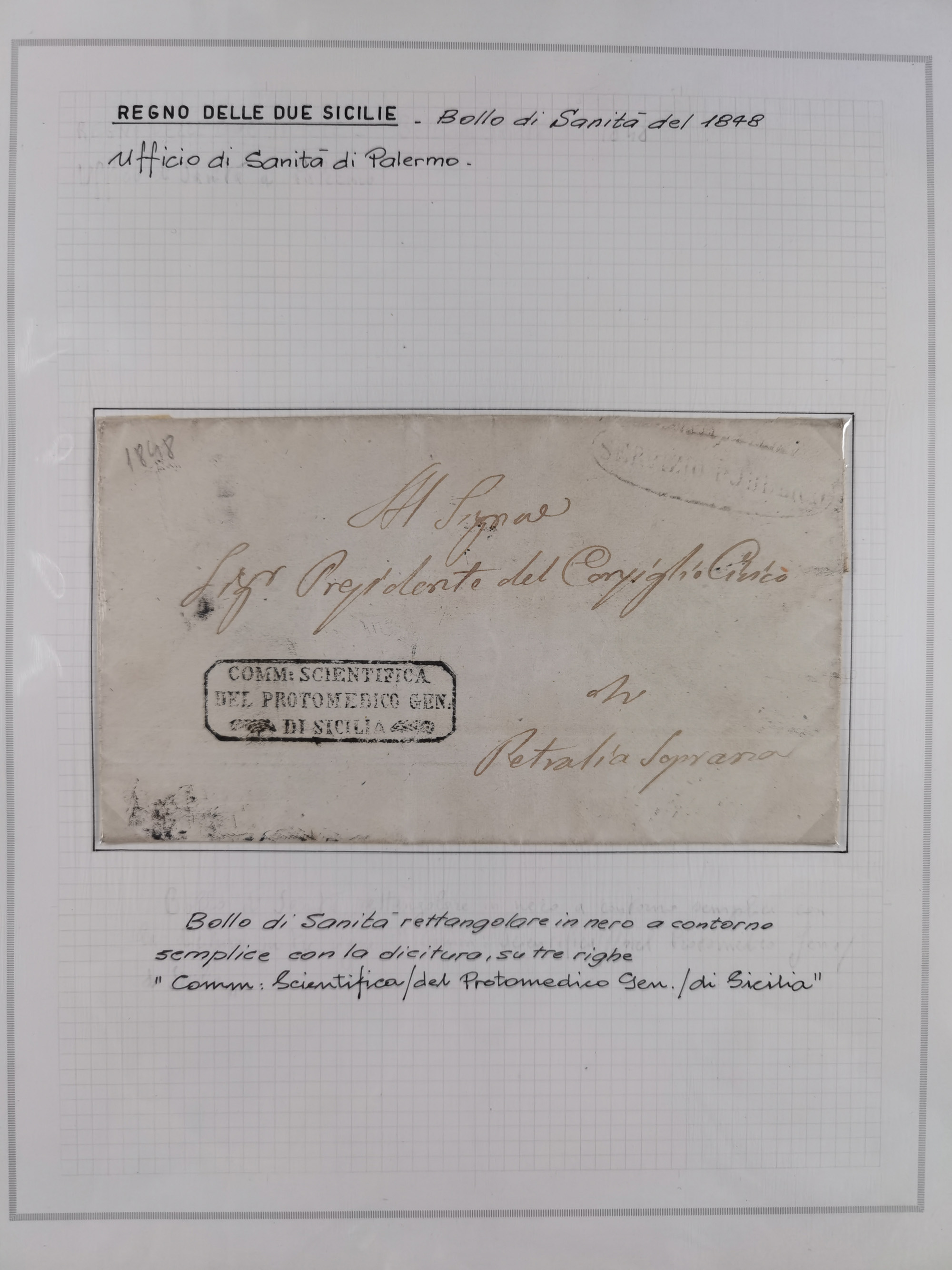 SIZILIEN: 1826/83, 26 Briefe und Dokumente beider Sizilien, dabei Liste illegaler Händler (Hebammen und Aderlassanbieter) im Bezirk Barletta, Briefe an und von Bürgermeistern und Gesundheitsbehörden und Ministern, verschiedene Stempel, etc., einige desinfiziert mit Räucherschlitzen, sauber beschrieben im Album