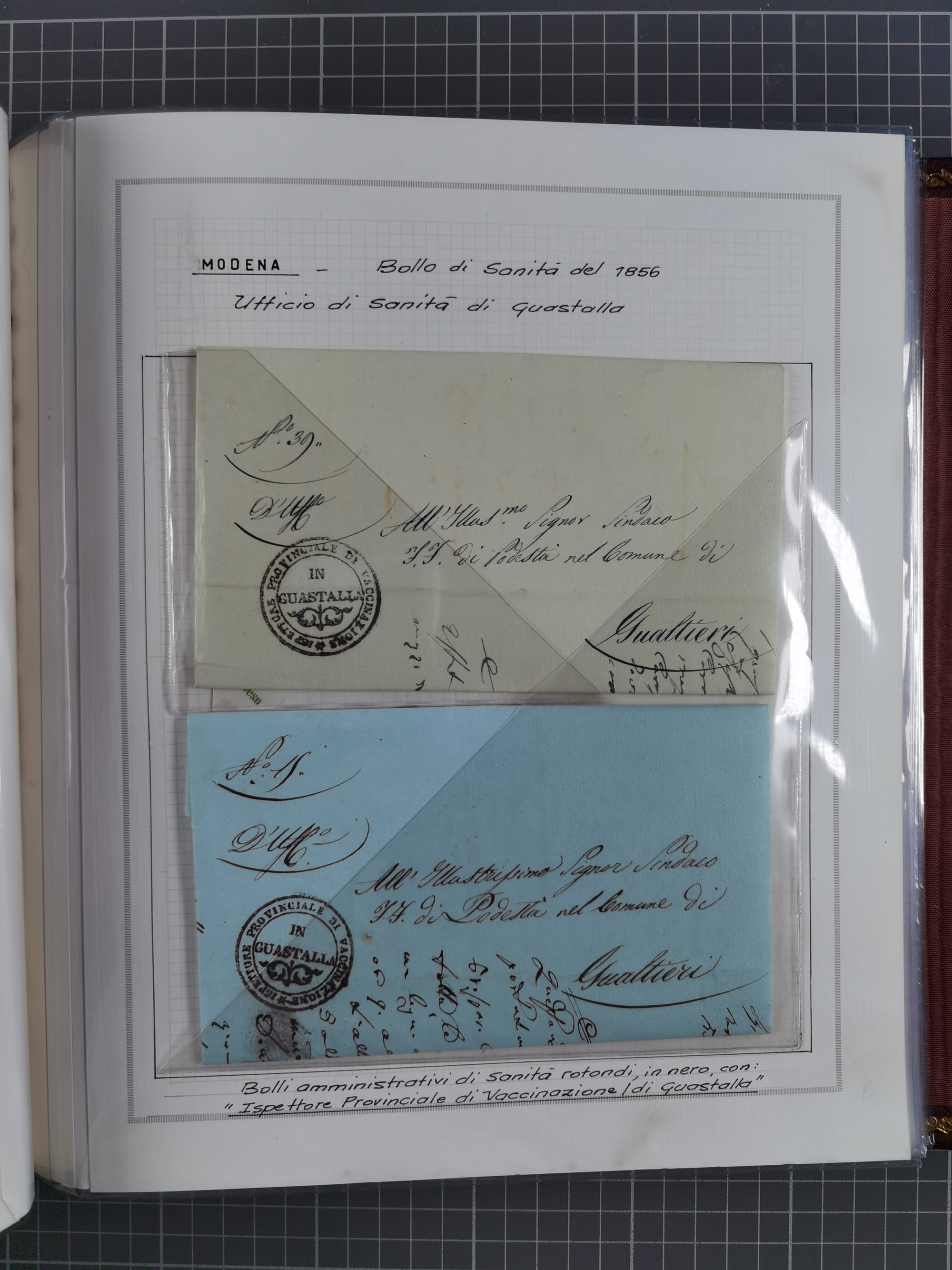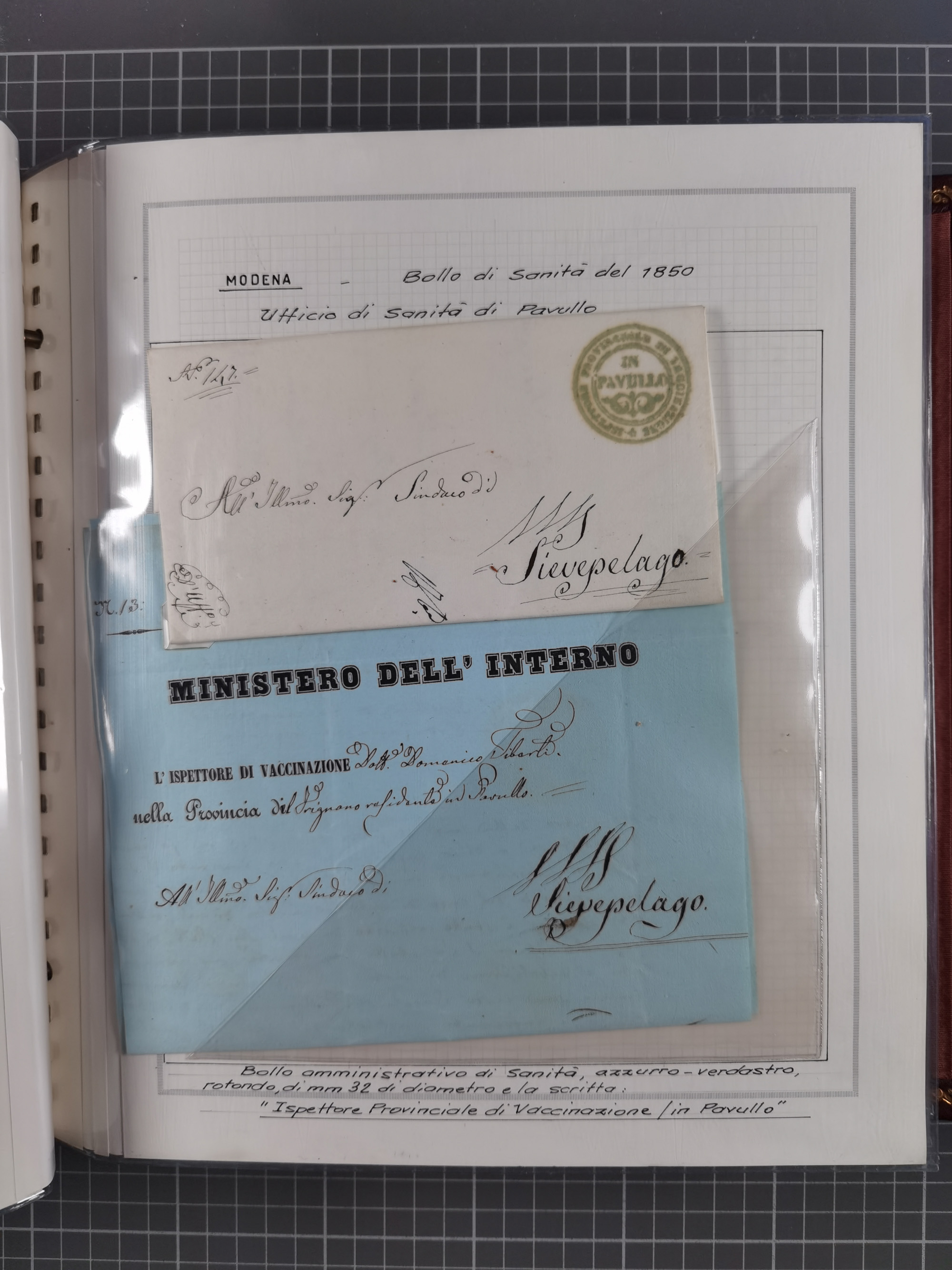 ITALIEN: 1631/1866, Sammlung mit 90 Briefen und Dokumenten mit Gesundheitsbescheinigungen und -ausweisen zu verschiedenen Epidemien, sehr interessant, sauber beschrieben in drei passenden Alben