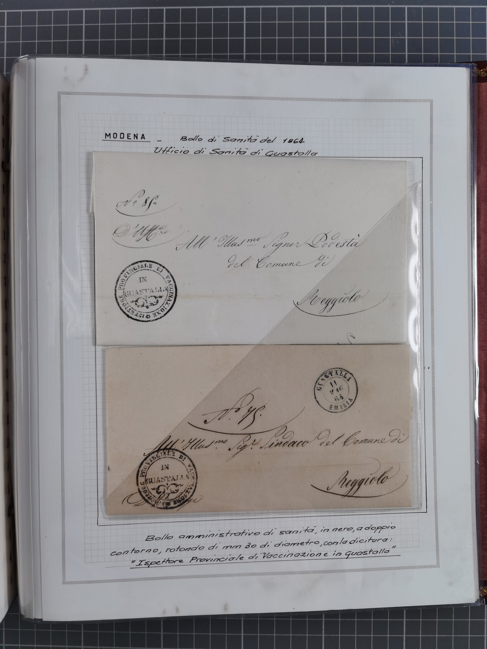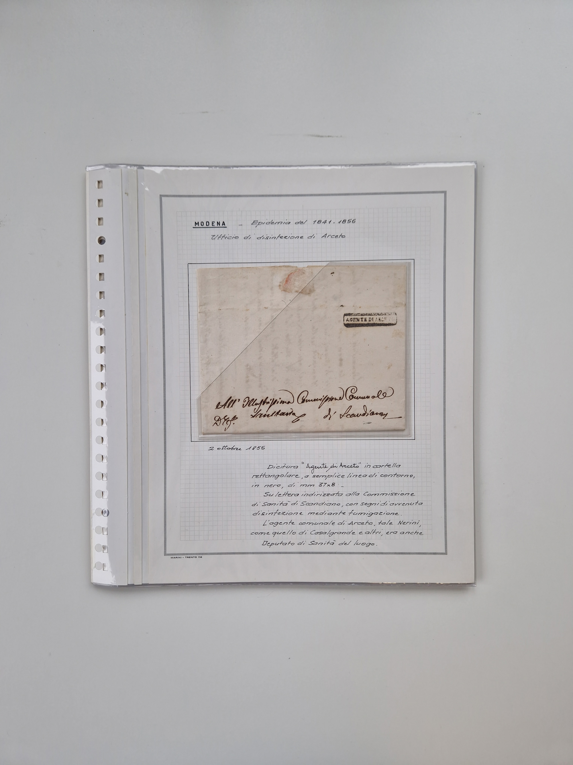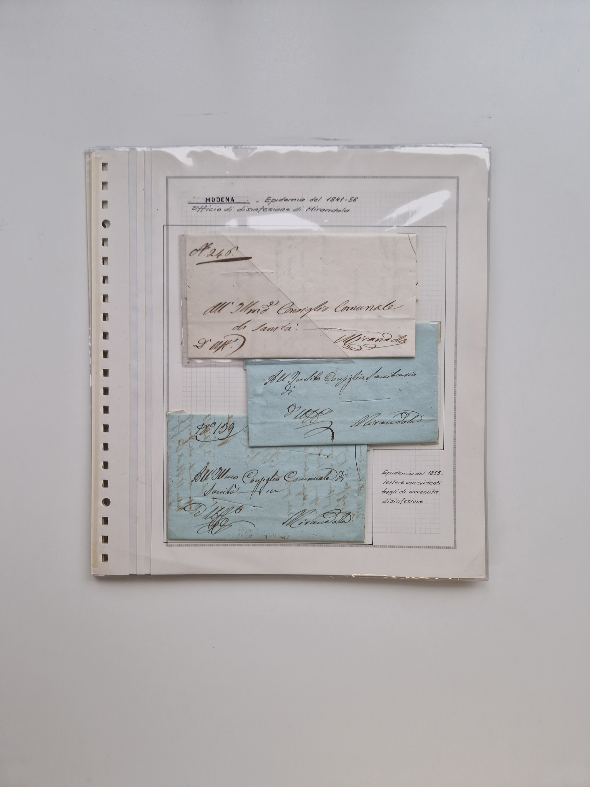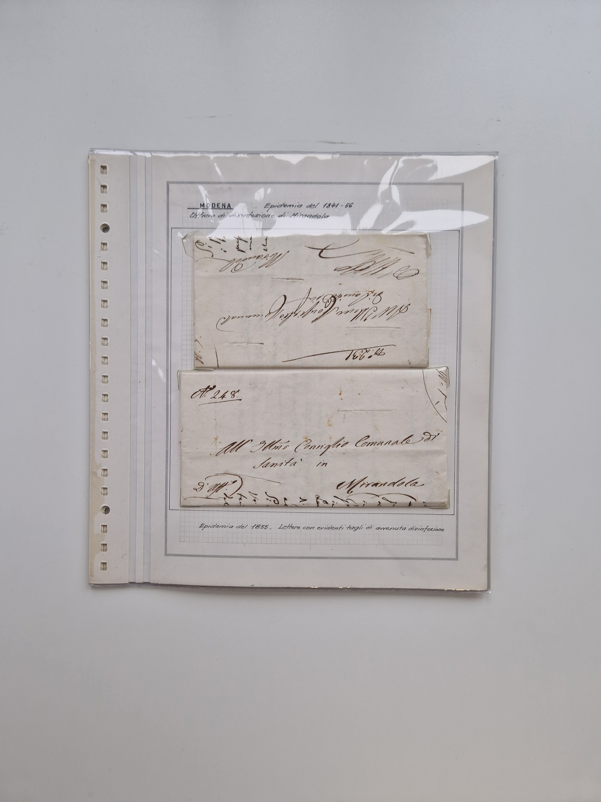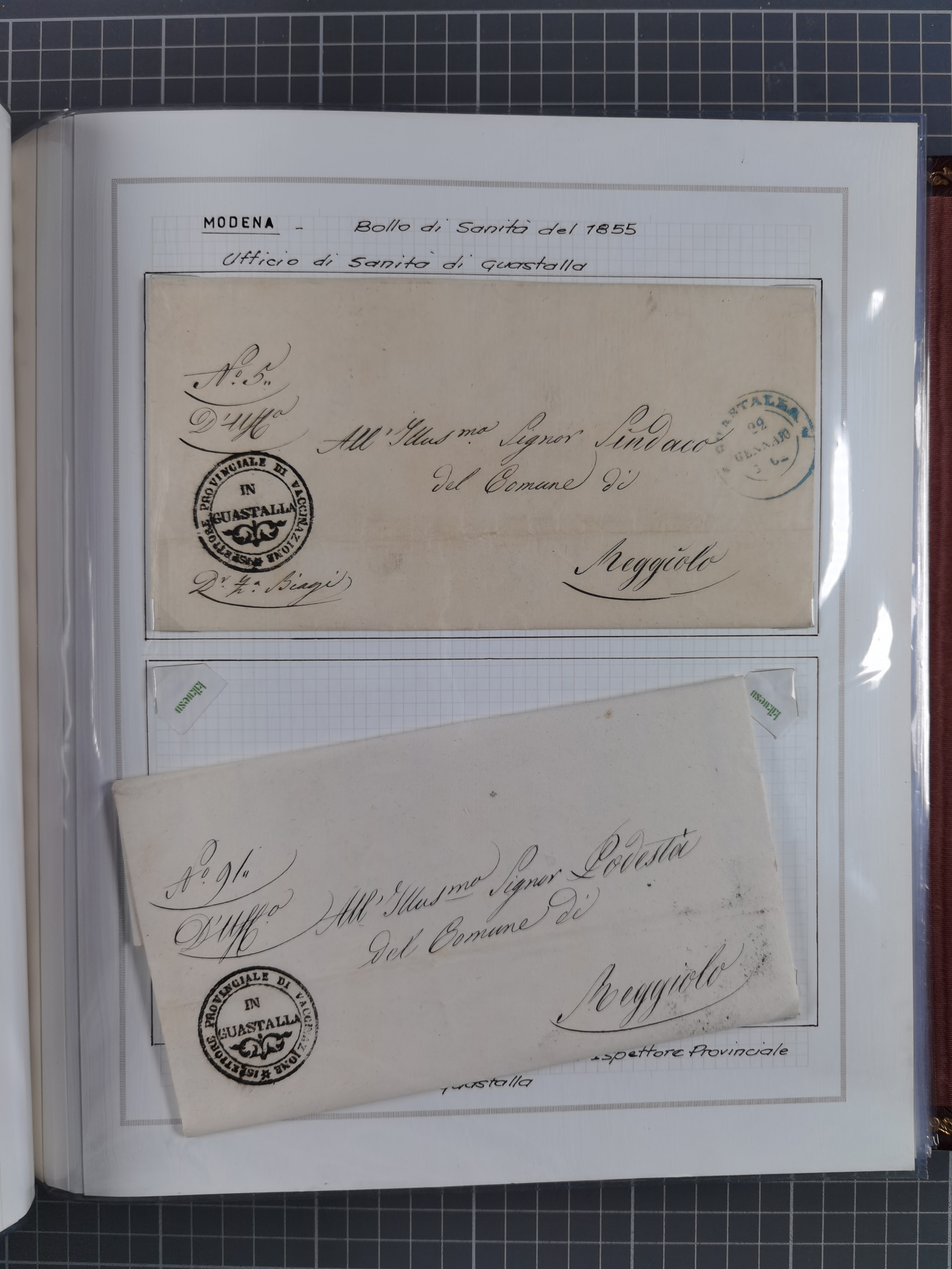MODENA: 1691/1865, über 140 Briefe und Dokumente, viele mit seltenen Stempeln ab ca. 1806, dabei u.a. Expressbrief an den Bürgermeister von Reggio mit seltenem Stempel “S unter Kreuz”, 4 Belege mit Desinfektions-Etikette von Reggio (Juli-Oktober 1855), etc., sauber beschrieben in vier passenden Alben