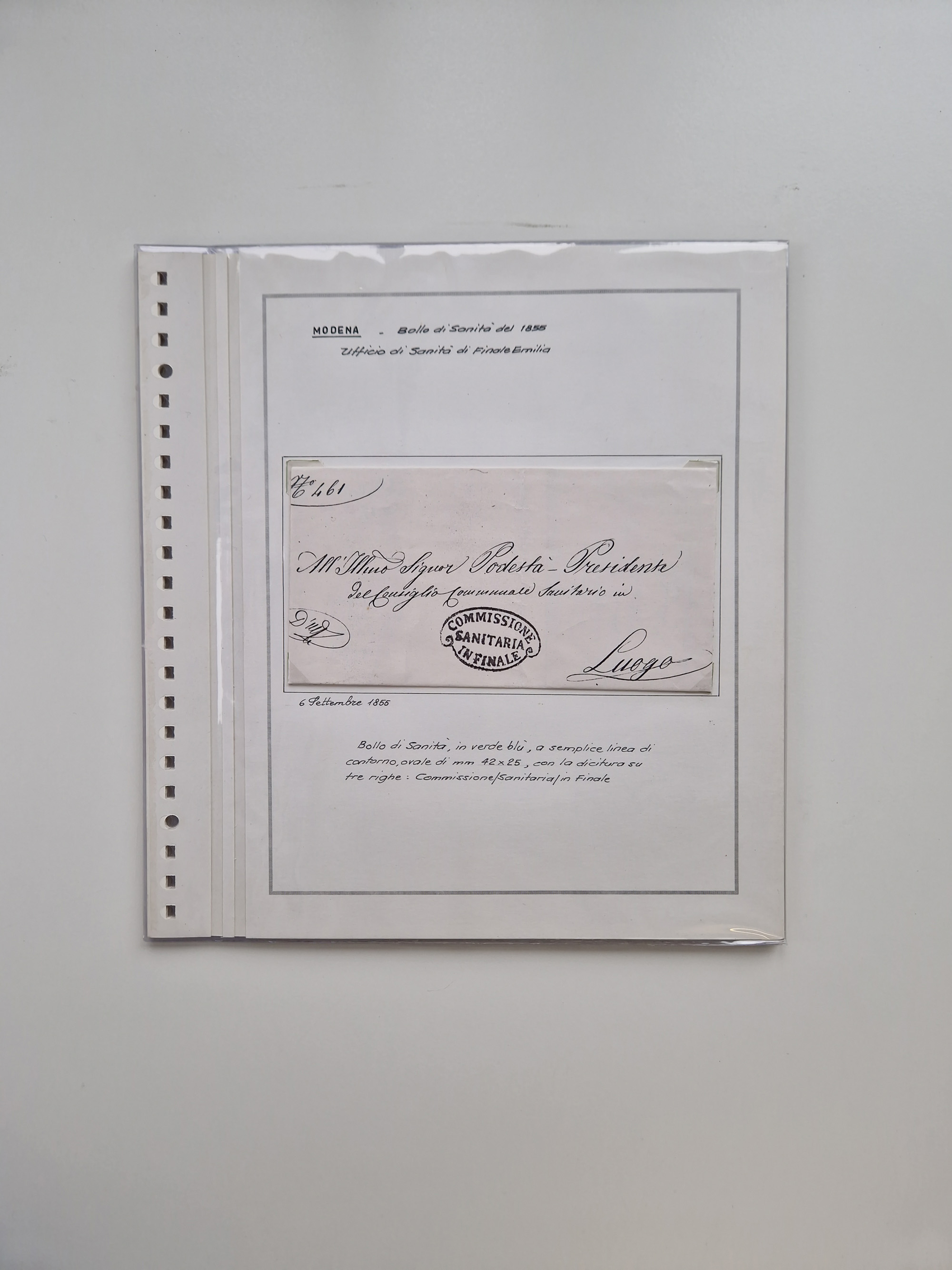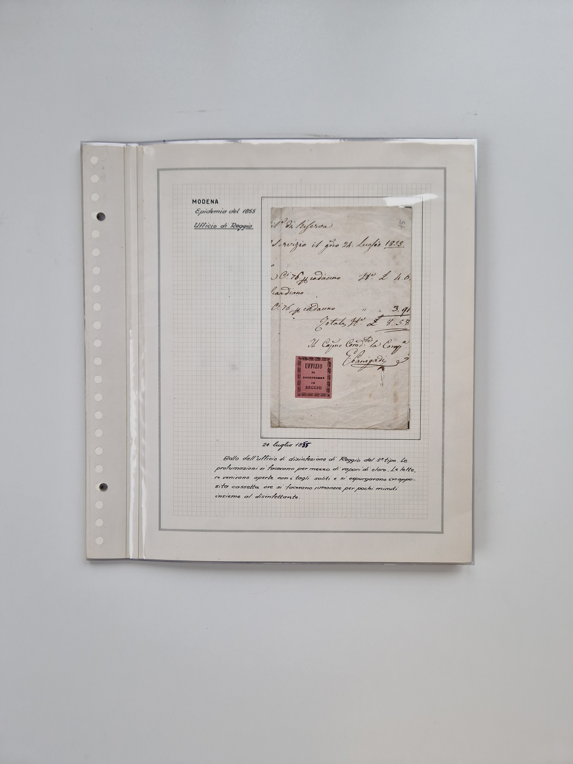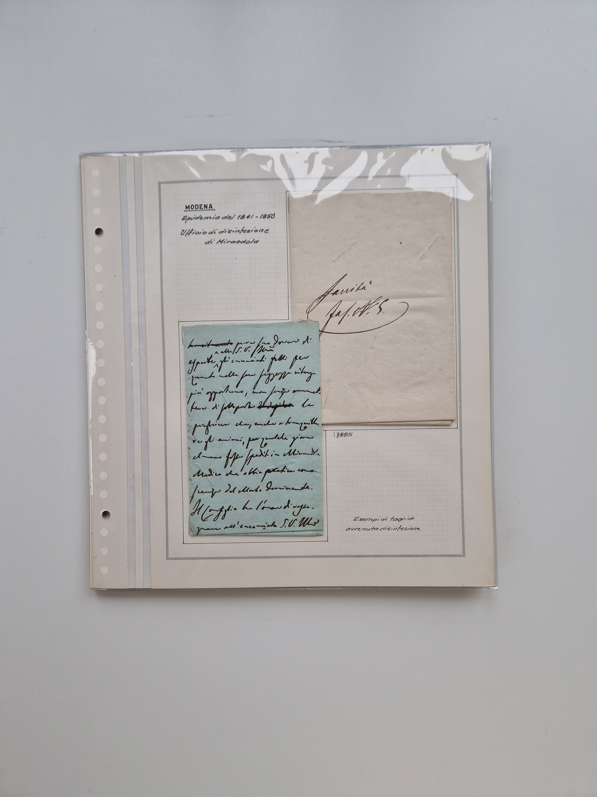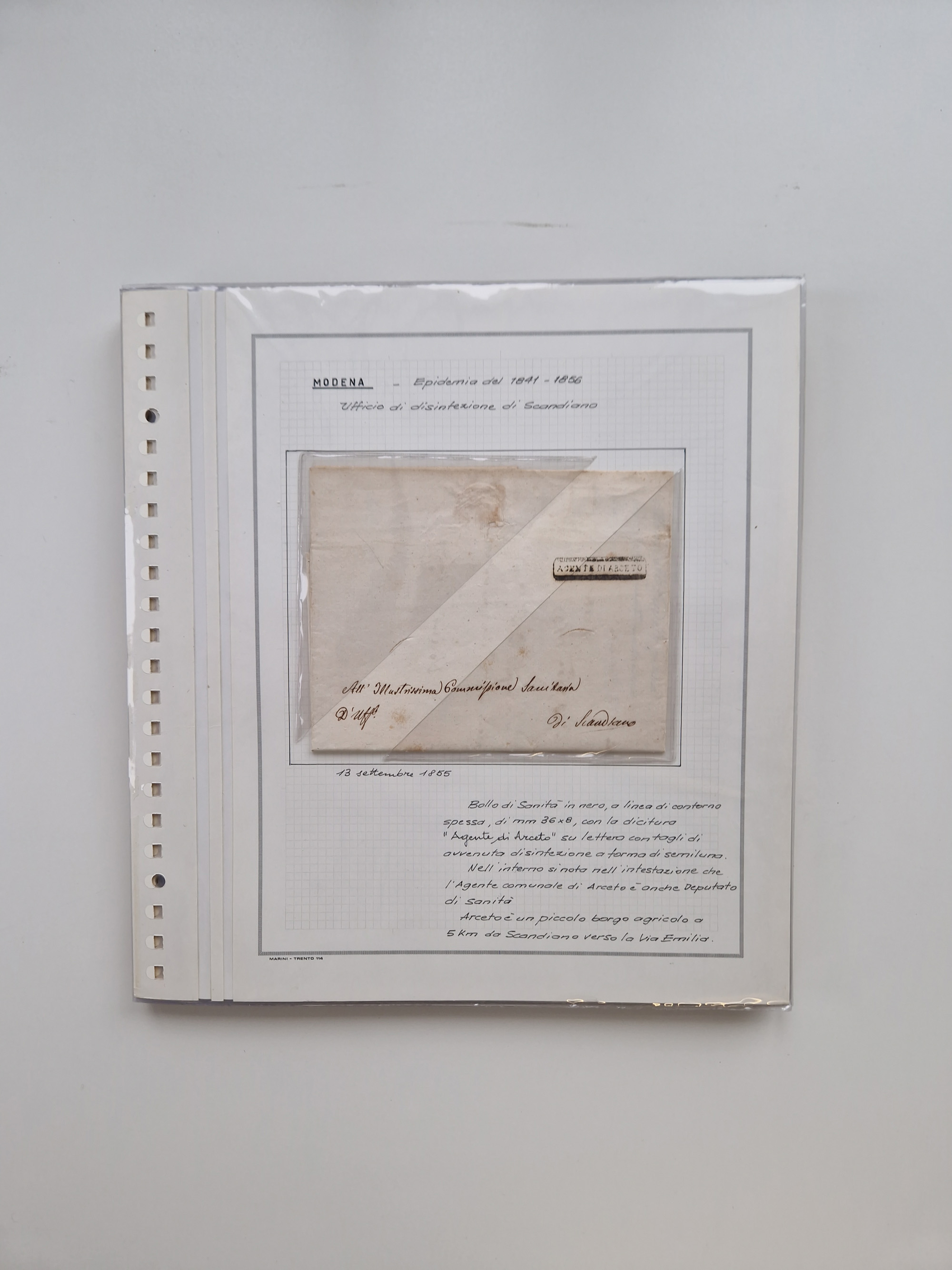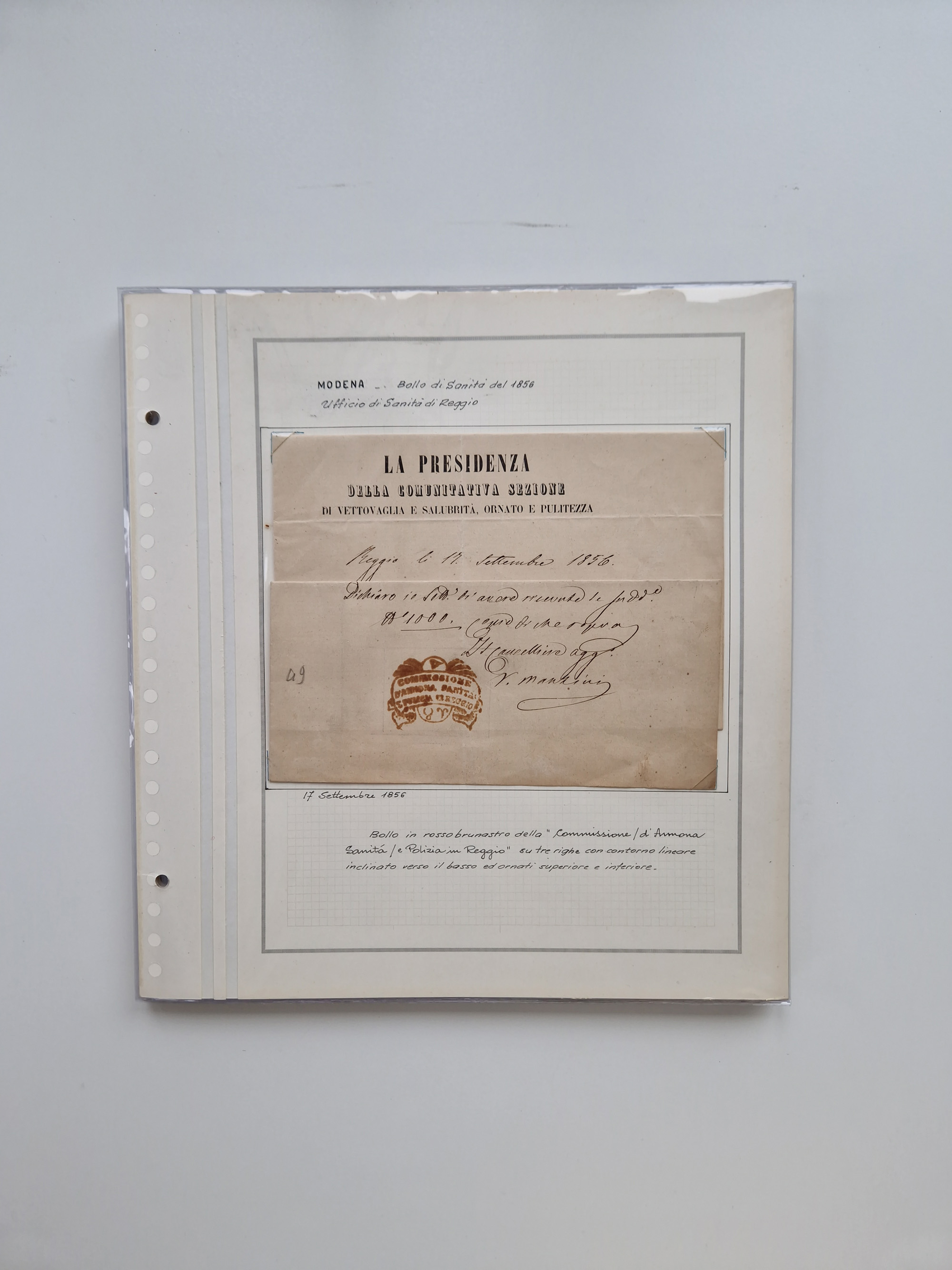 MODENA: 1691/1865, über 140 Briefe und Dokumente, viele mit seltenen Stempeln ab ca. 1806, dabei u.a. Expressbrief an den Bürgermeister von Reggio mit seltenem Stempel “S unter Kreuz”, 4 Belege mit Desinfektions-Etikette von Reggio (Juli-Oktober 1855), etc., sauber beschrieben in vier passenden Alben