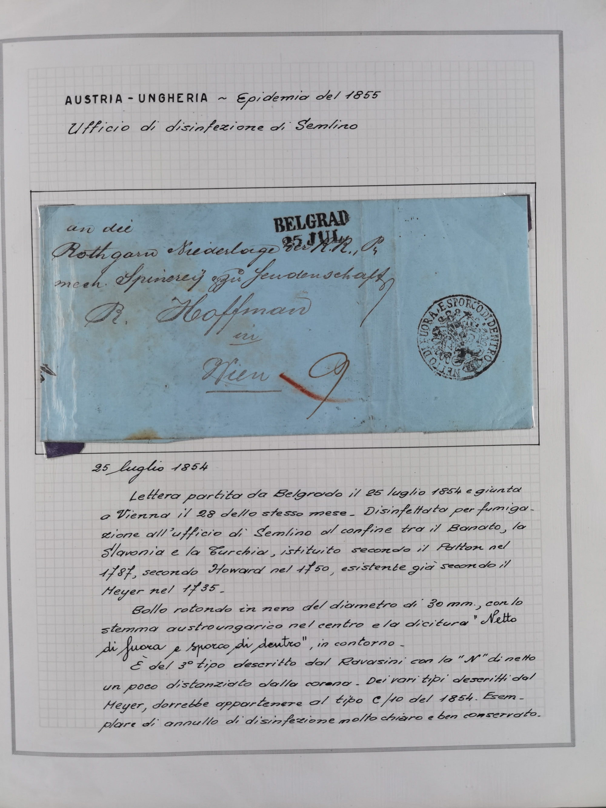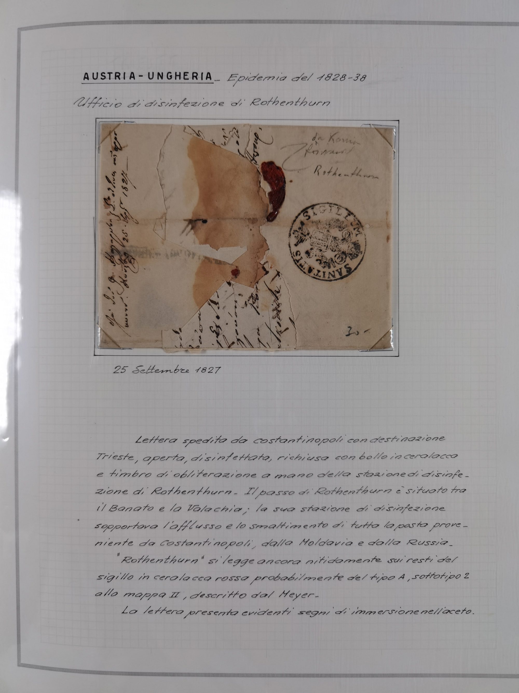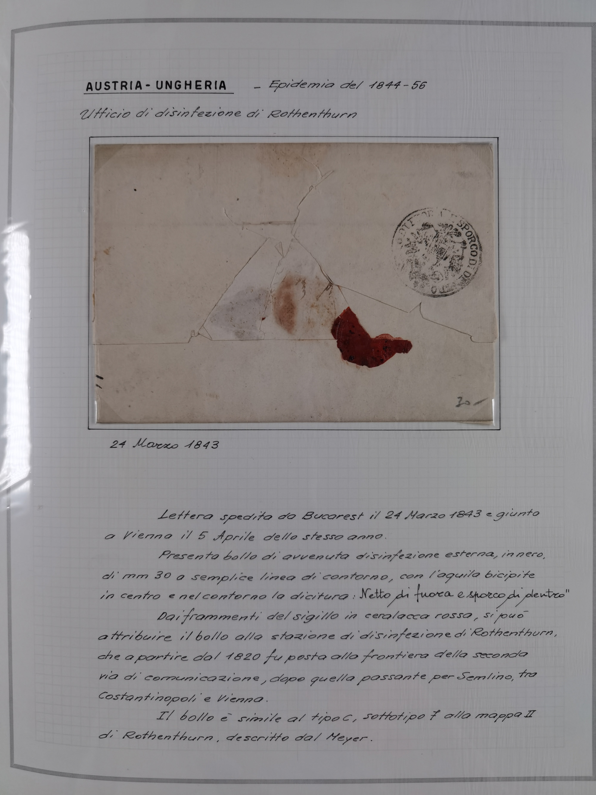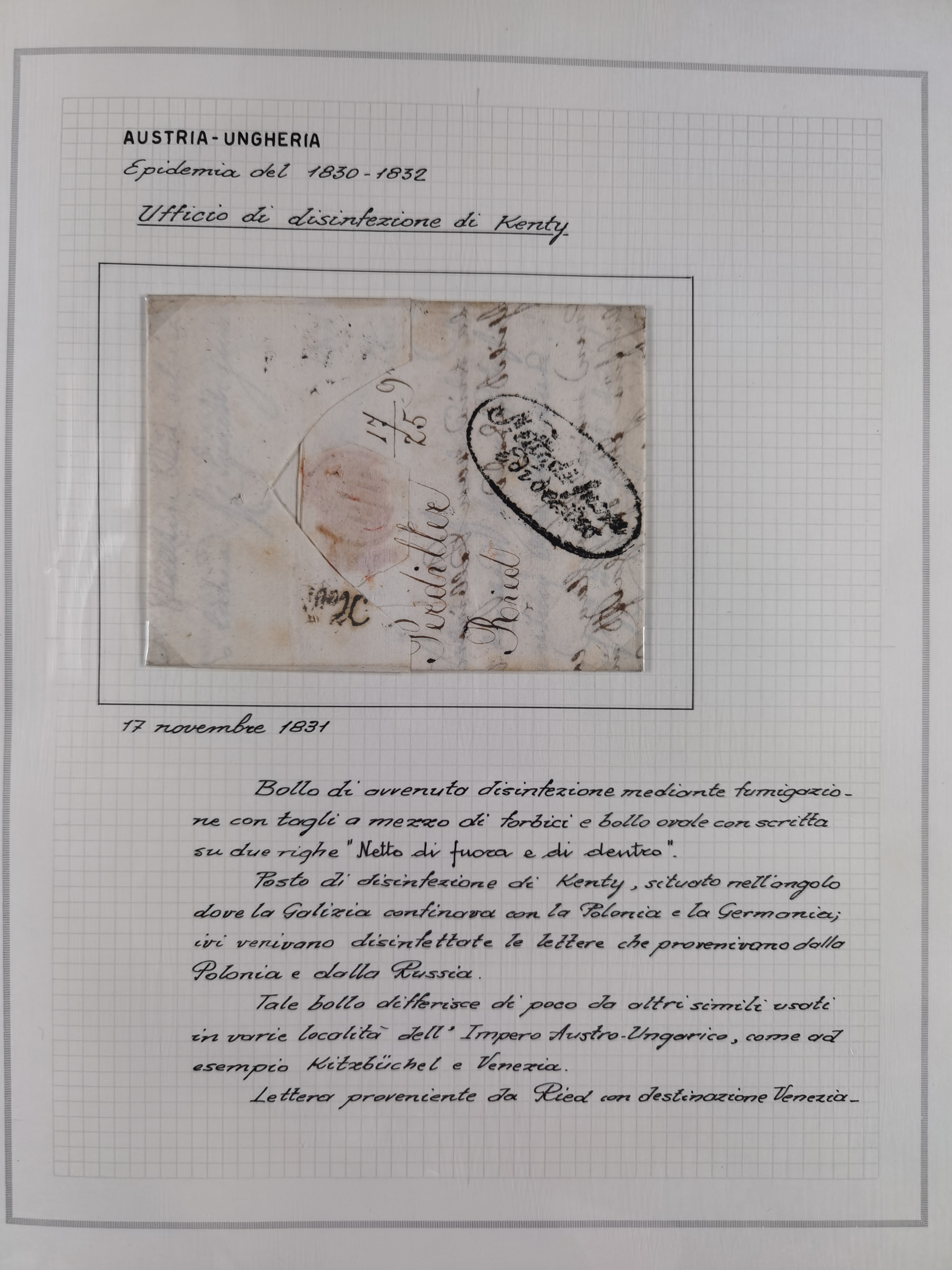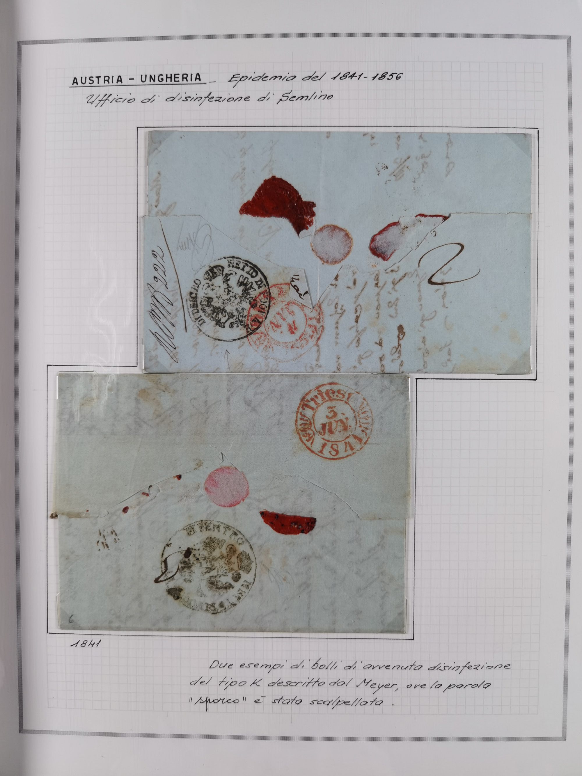 ÖSTERREICH-UNGARN: 1806/1918, über 70 Briefe und Dokumente, meist Desinfektions-Post mit Schwerpunkt von 1806 bis 1866, dabei Brief (ca. 1831) an die Prinzessin von Liechtenstein (zum Hof nach Prag). Später etwas I. Weltkrieg, sehr interessant, sauber beschrieben in zwei Alben