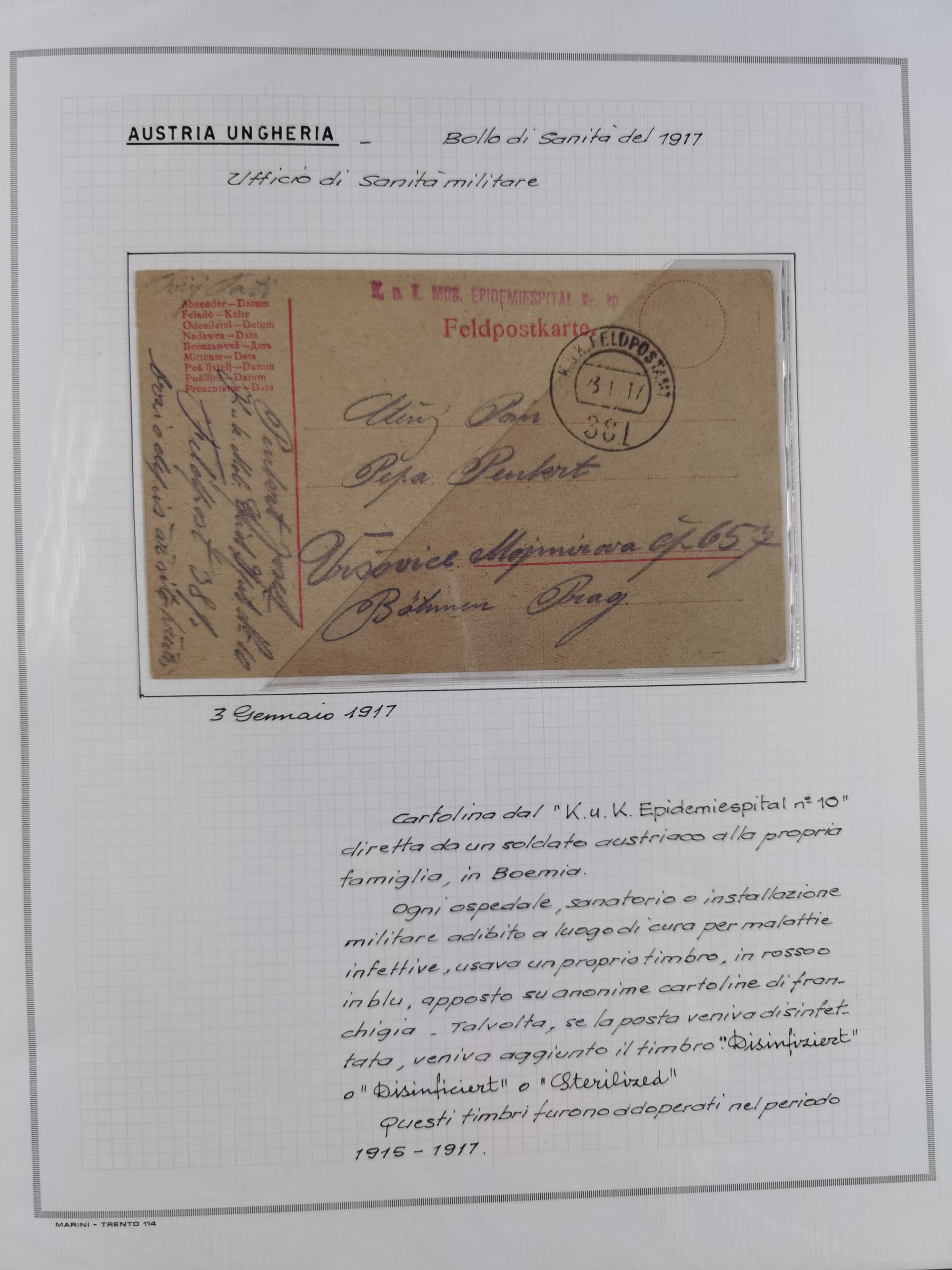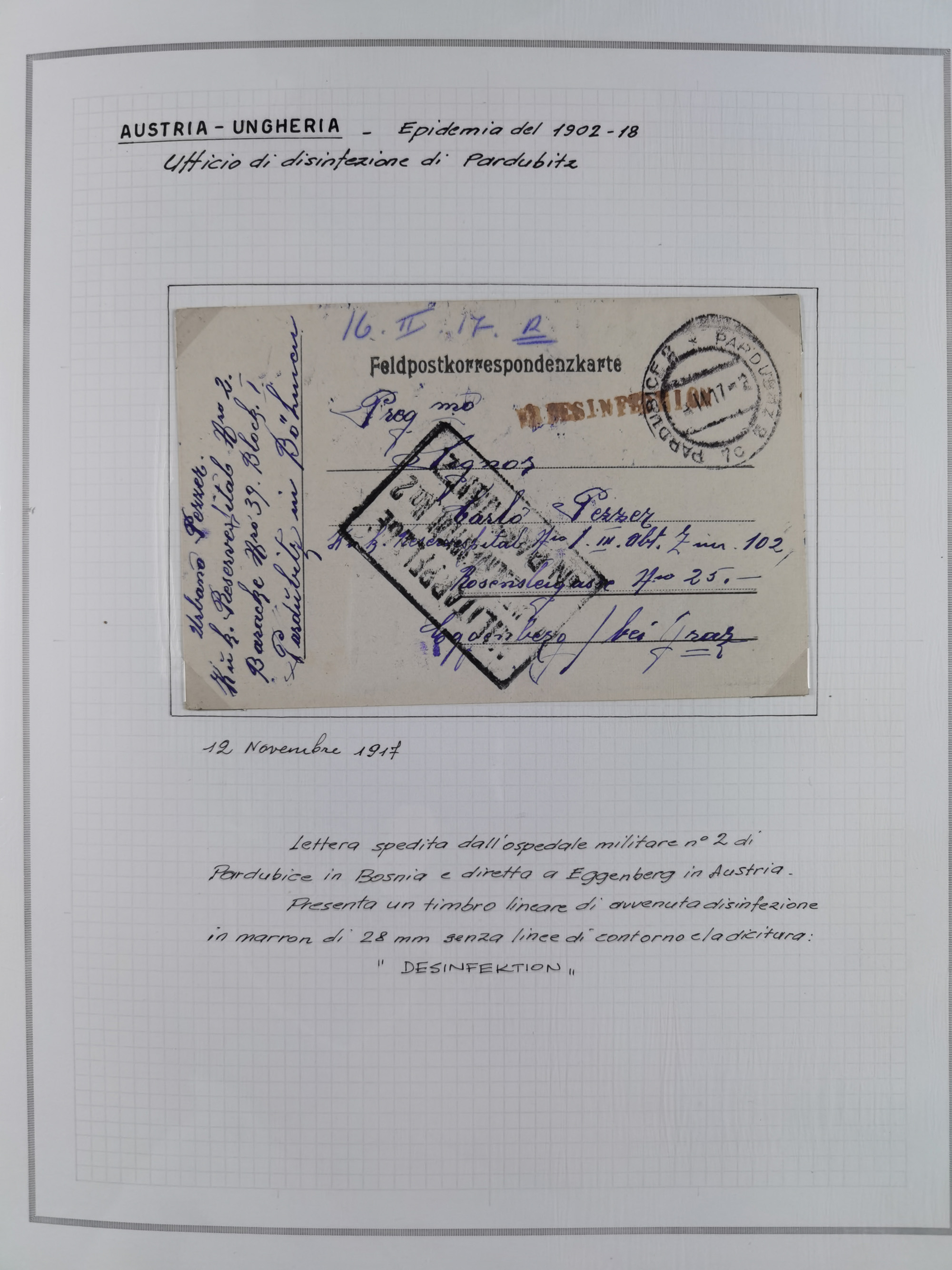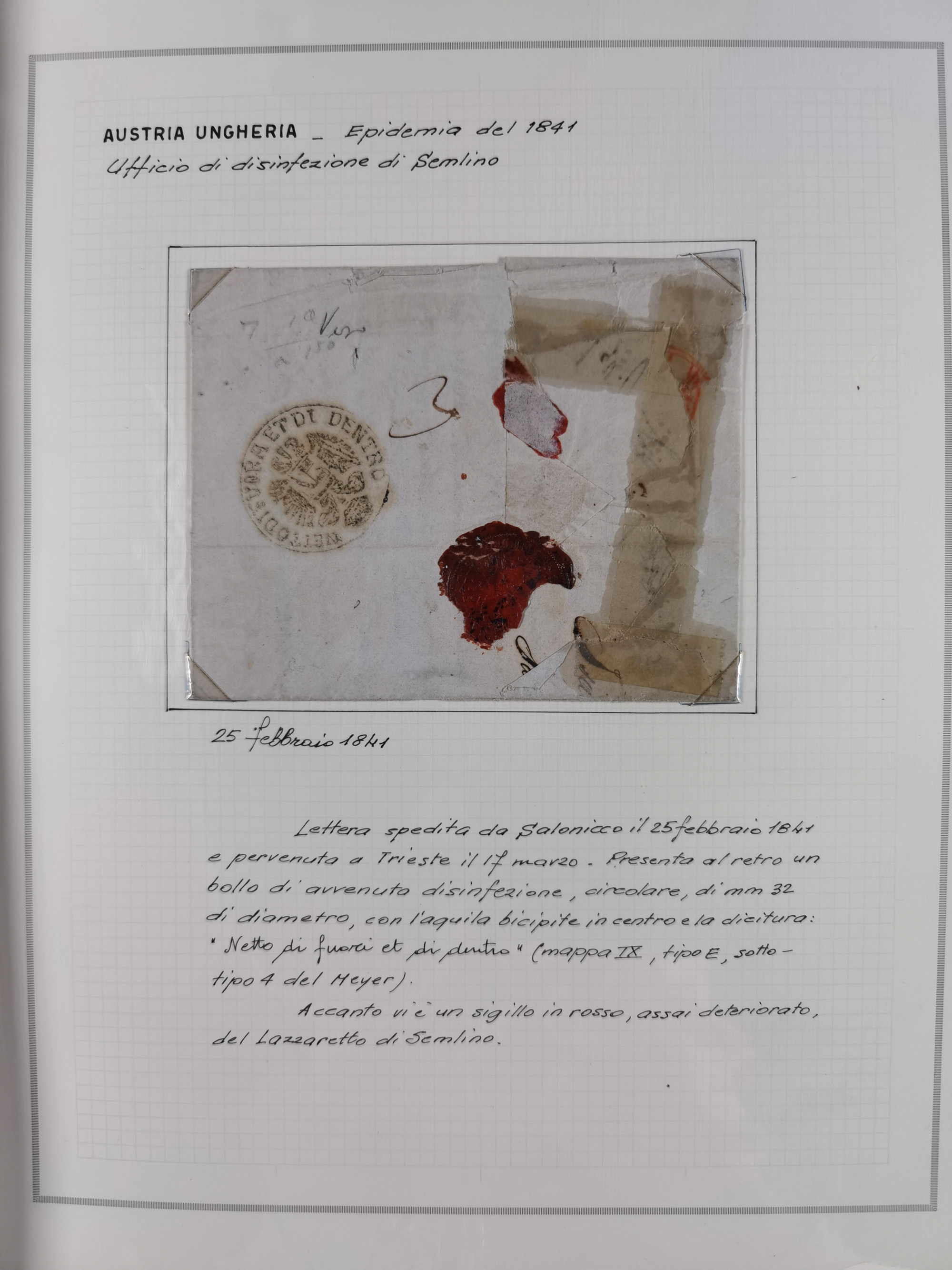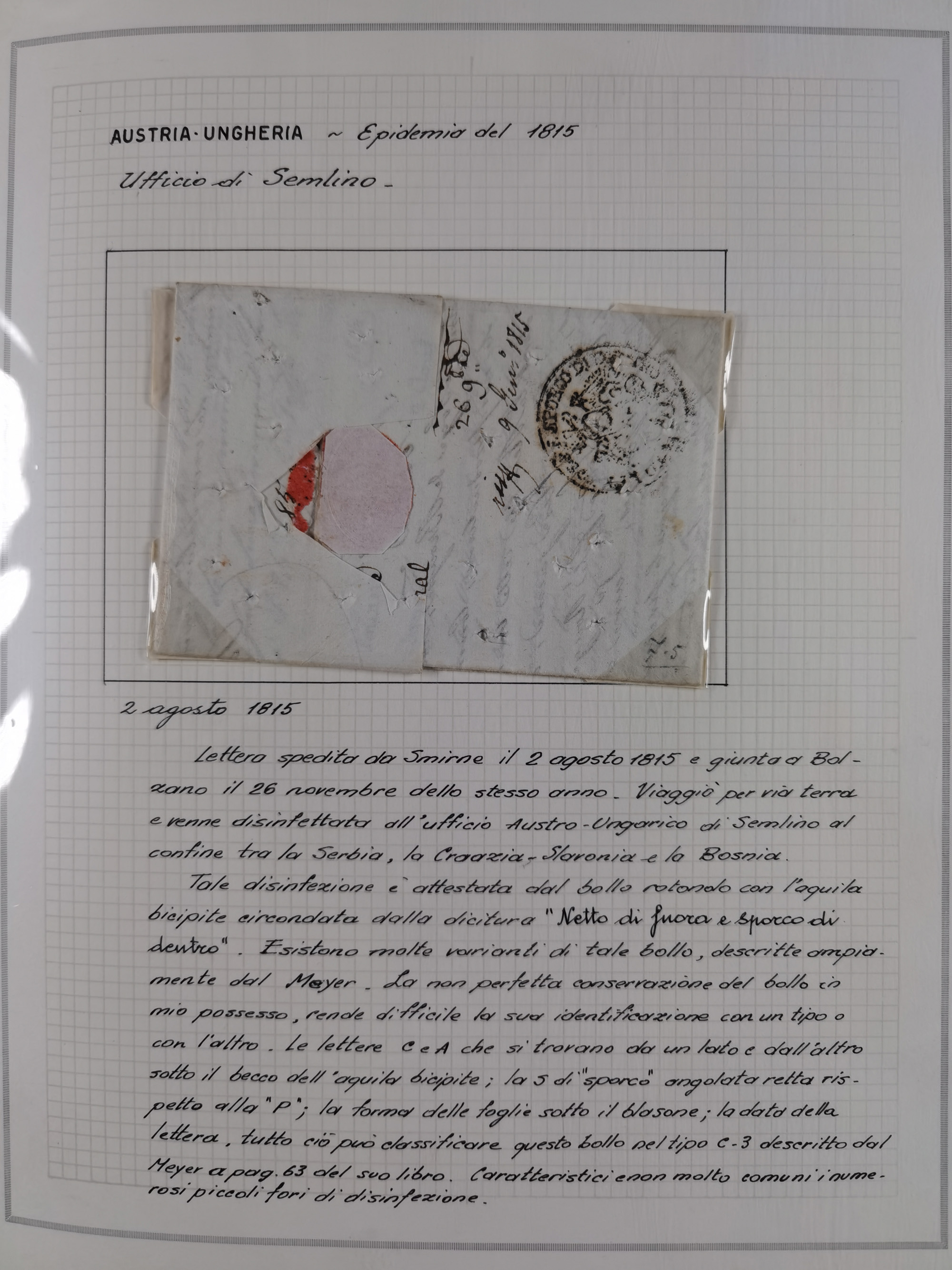 ÖSTERREICH-UNGARN: 1806/1918, über 70 Briefe und Dokumente, meist Desinfektions-Post mit Schwerpunkt von 1806 bis 1866, dabei Brief (ca. 1831) an die Prinzessin von Liechtenstein (zum Hof nach Prag). Später etwas I. Weltkrieg, sehr interessant, sauber beschrieben in zwei Alben