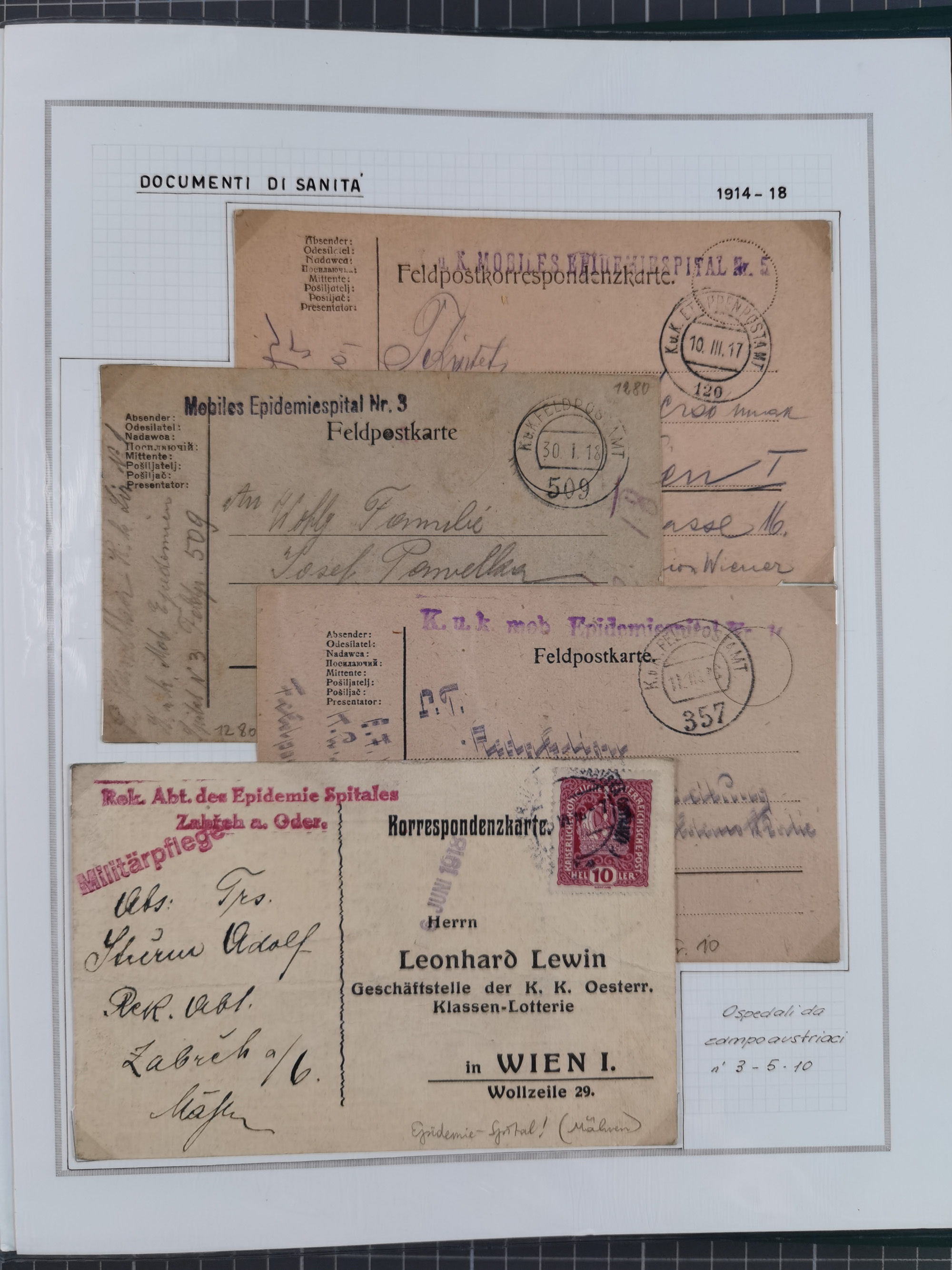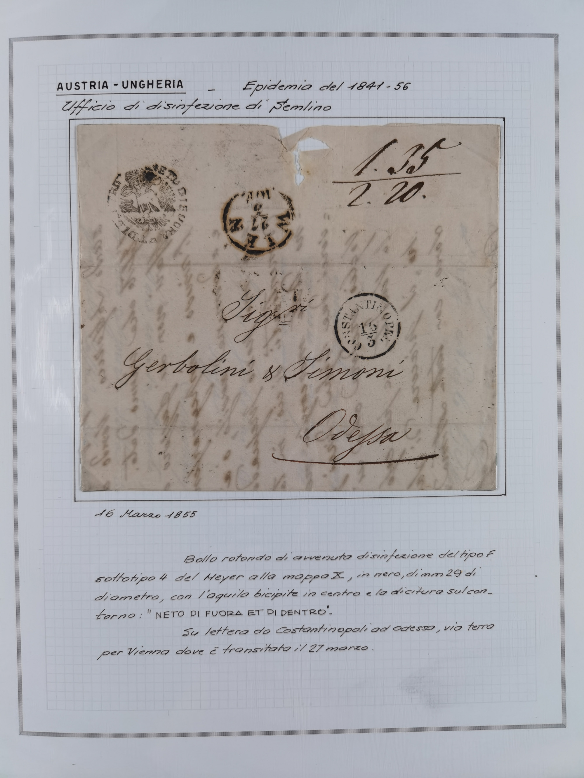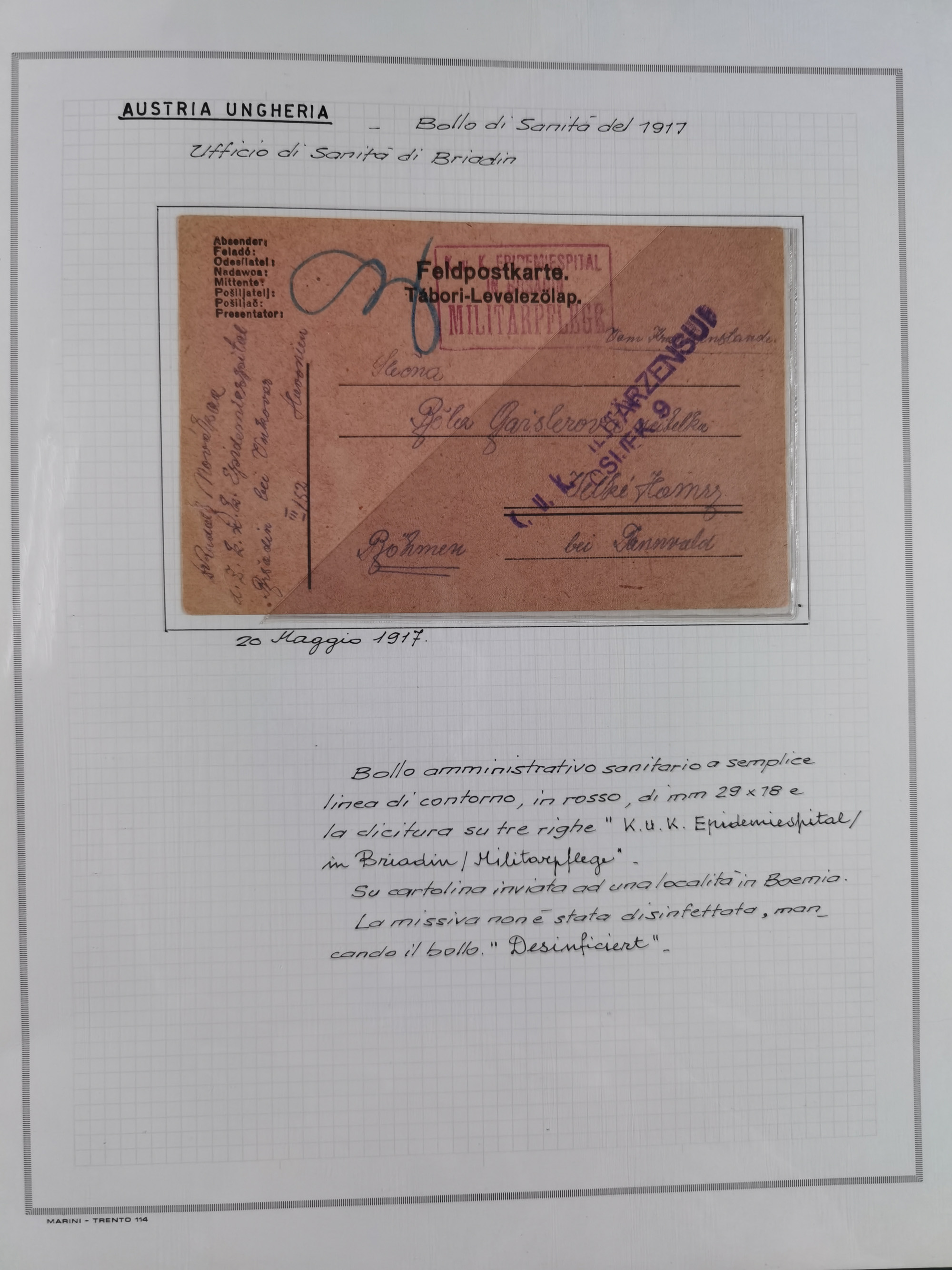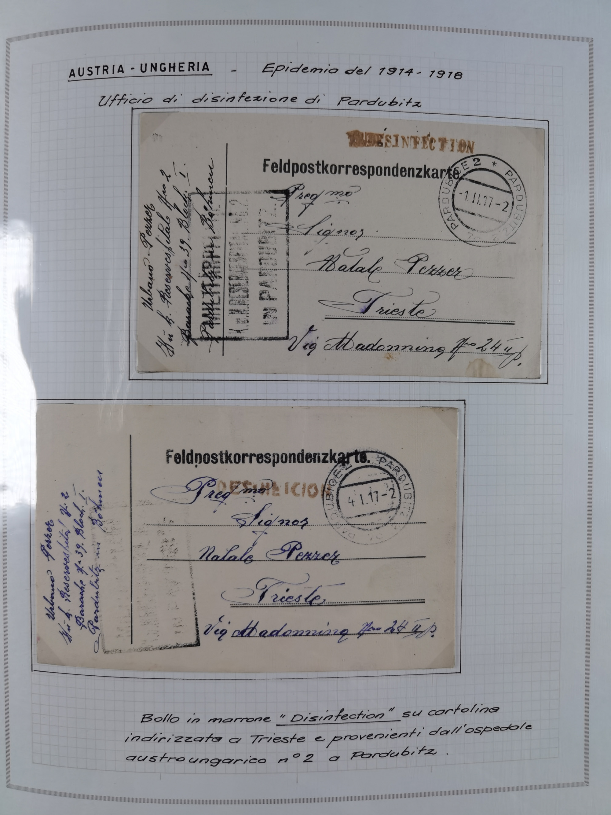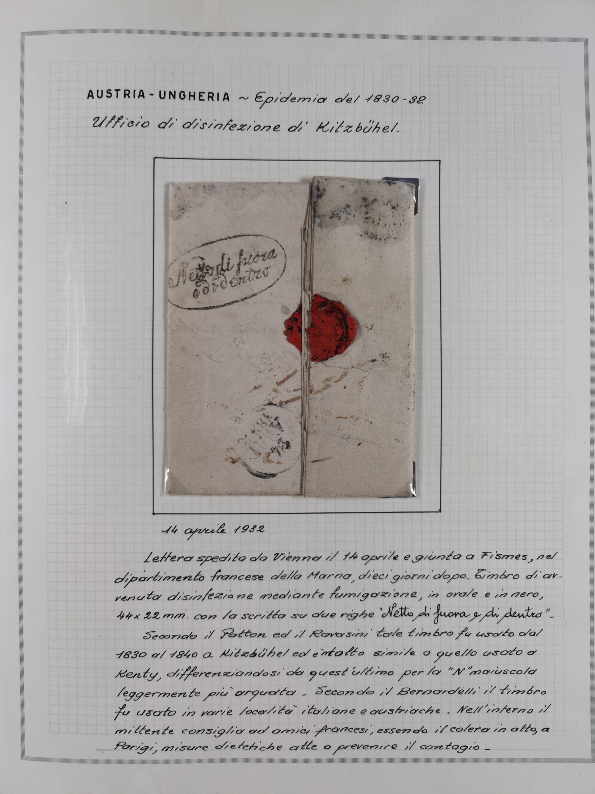 ÖSTERREICH-UNGARN: 1806/1918, über 70 Briefe und Dokumente, meist Desinfektions-Post mit Schwerpunkt von 1806 bis 1866, dabei Brief (ca. 1831) an die Prinzessin von Liechtenstein (zum Hof nach Prag). Später etwas I. Weltkrieg, sehr interessant, sauber beschrieben in zwei Alben