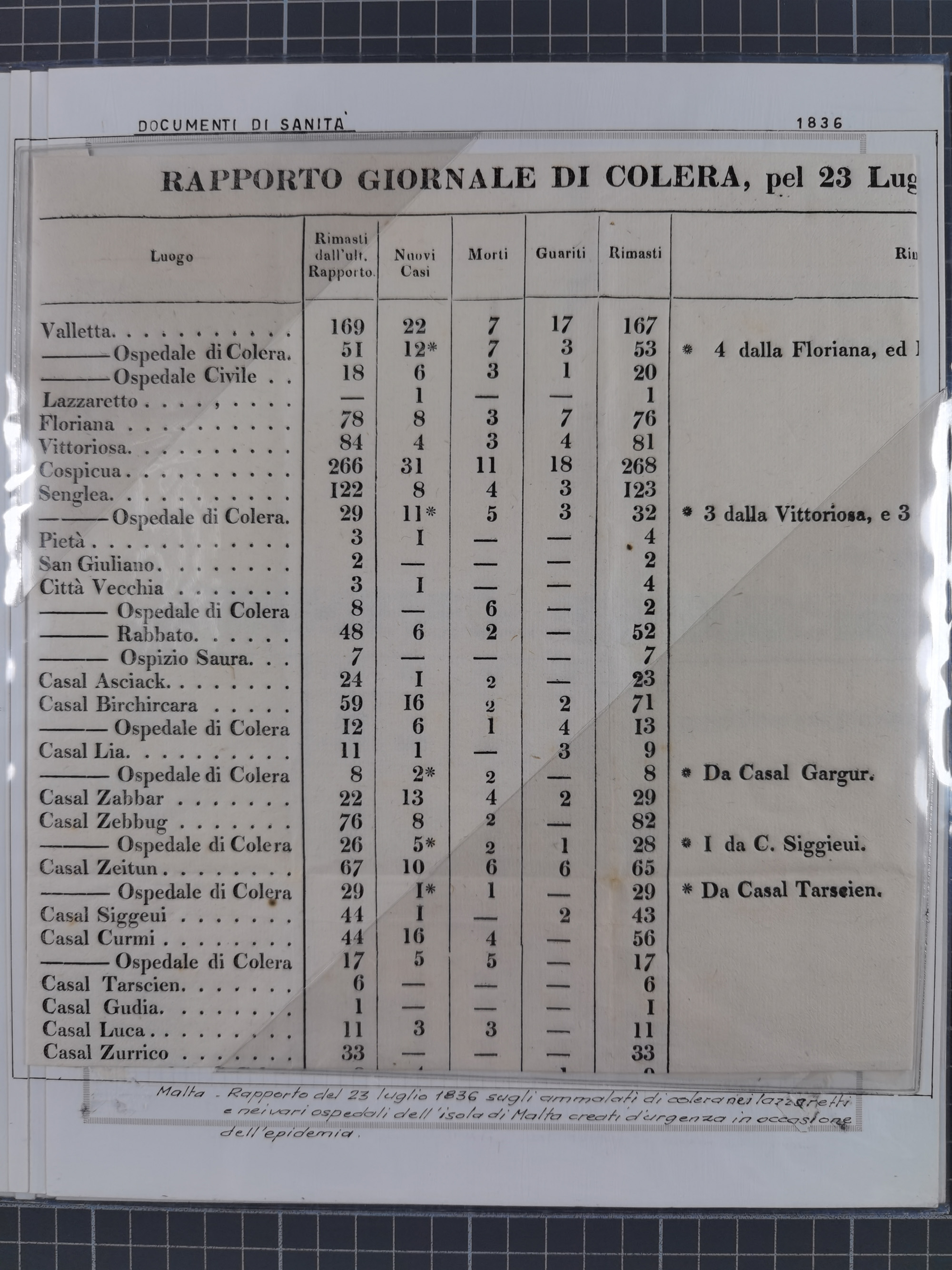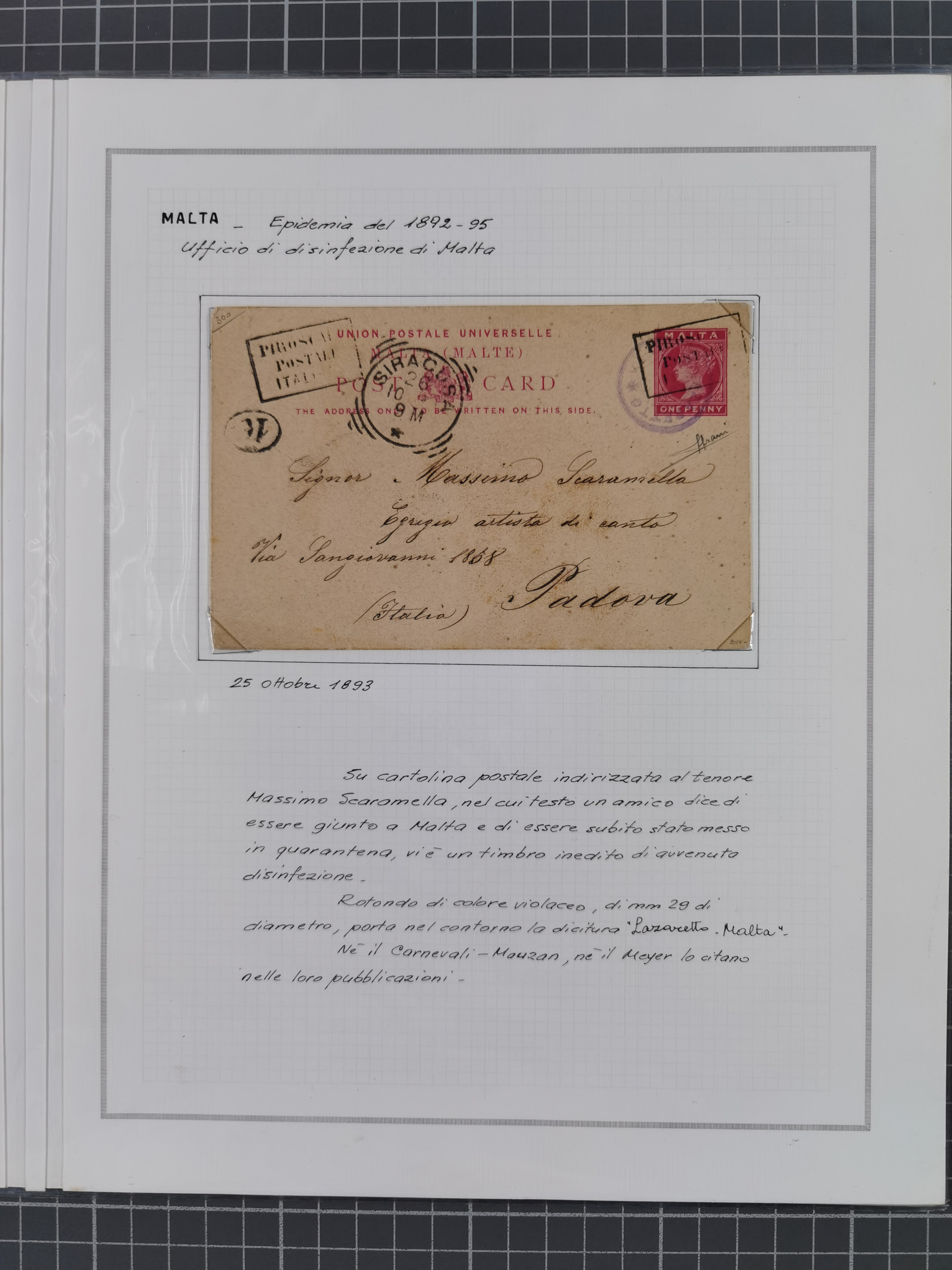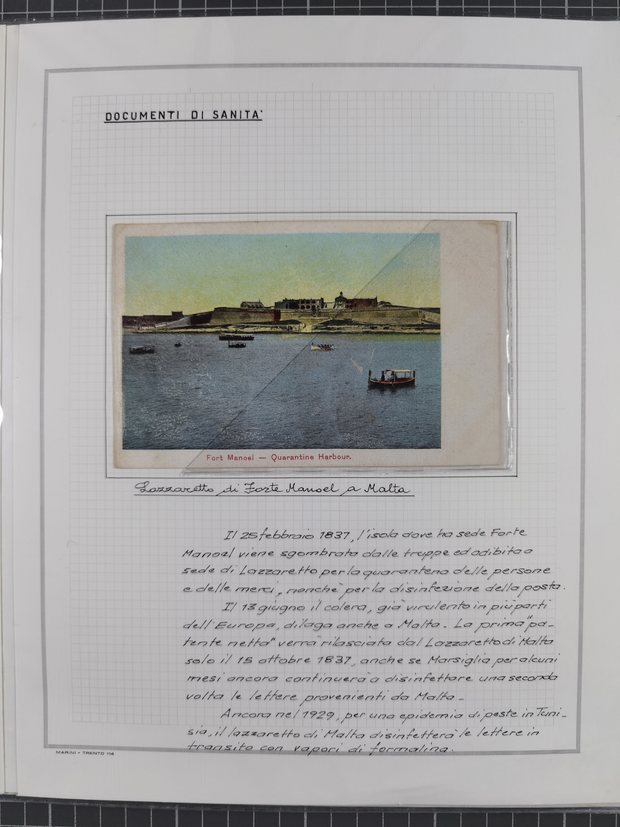 MALTA: 1836/1900, 7 Desinfektionsbriefe. Dazu ein Rapport von 1836 mit der Anzahl der Cholerafälle und Todeszahlen. Sehr interessant. Sauber beschrieben im Album