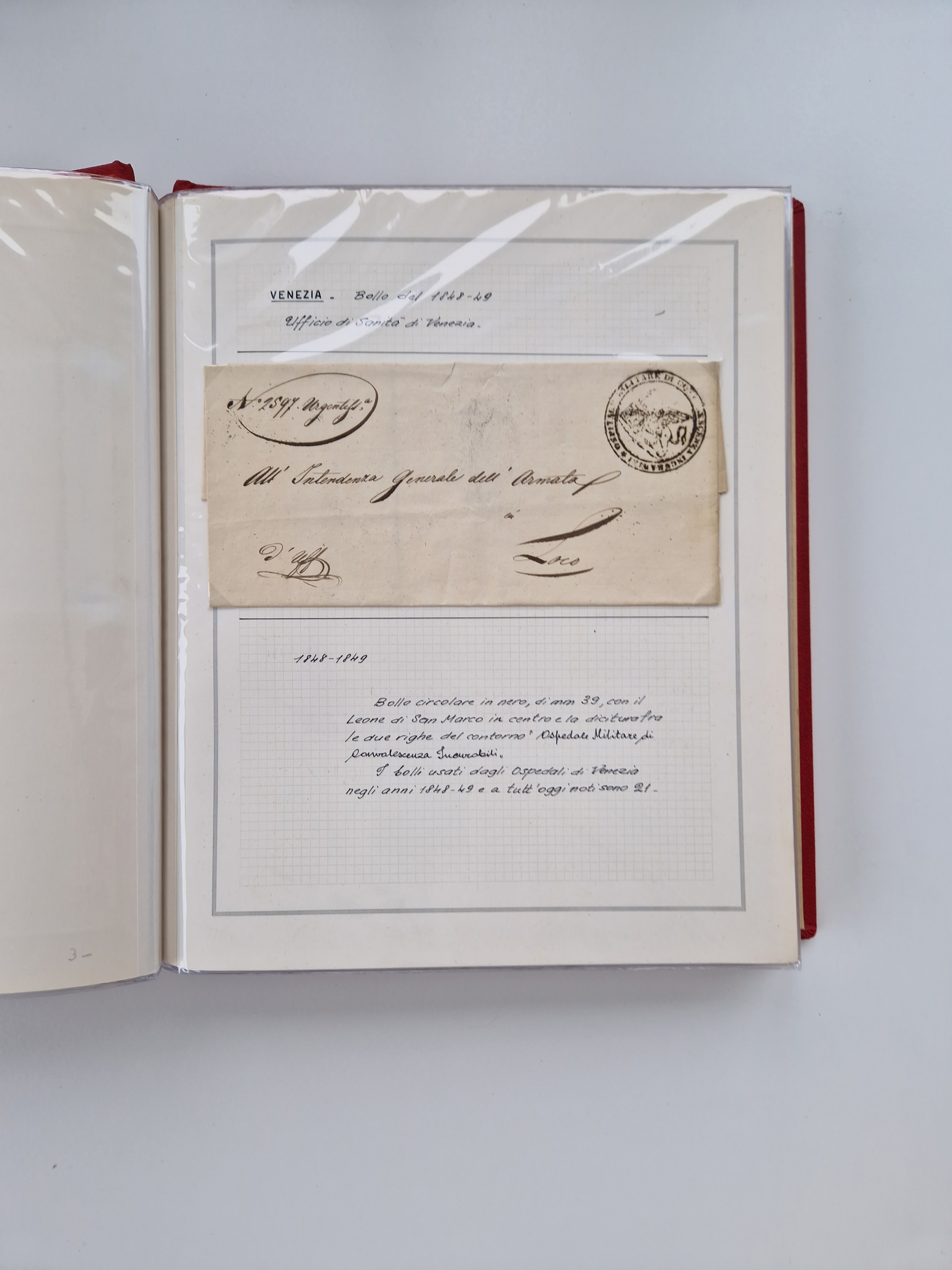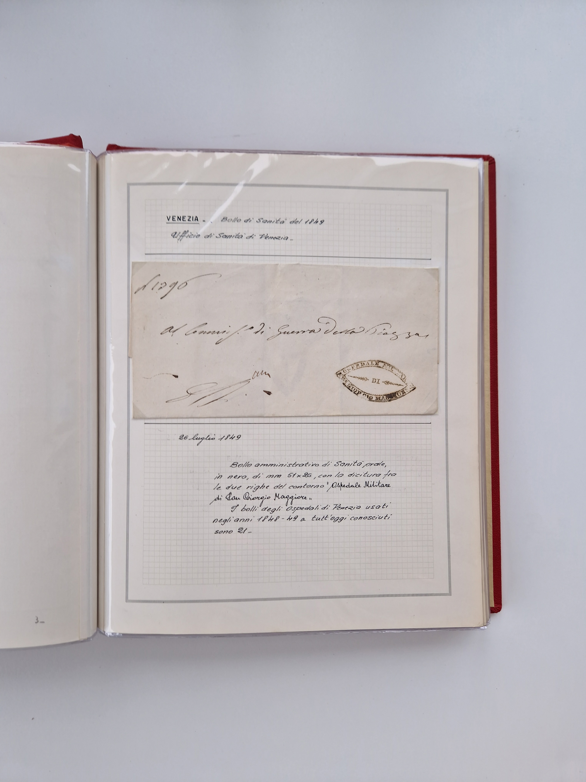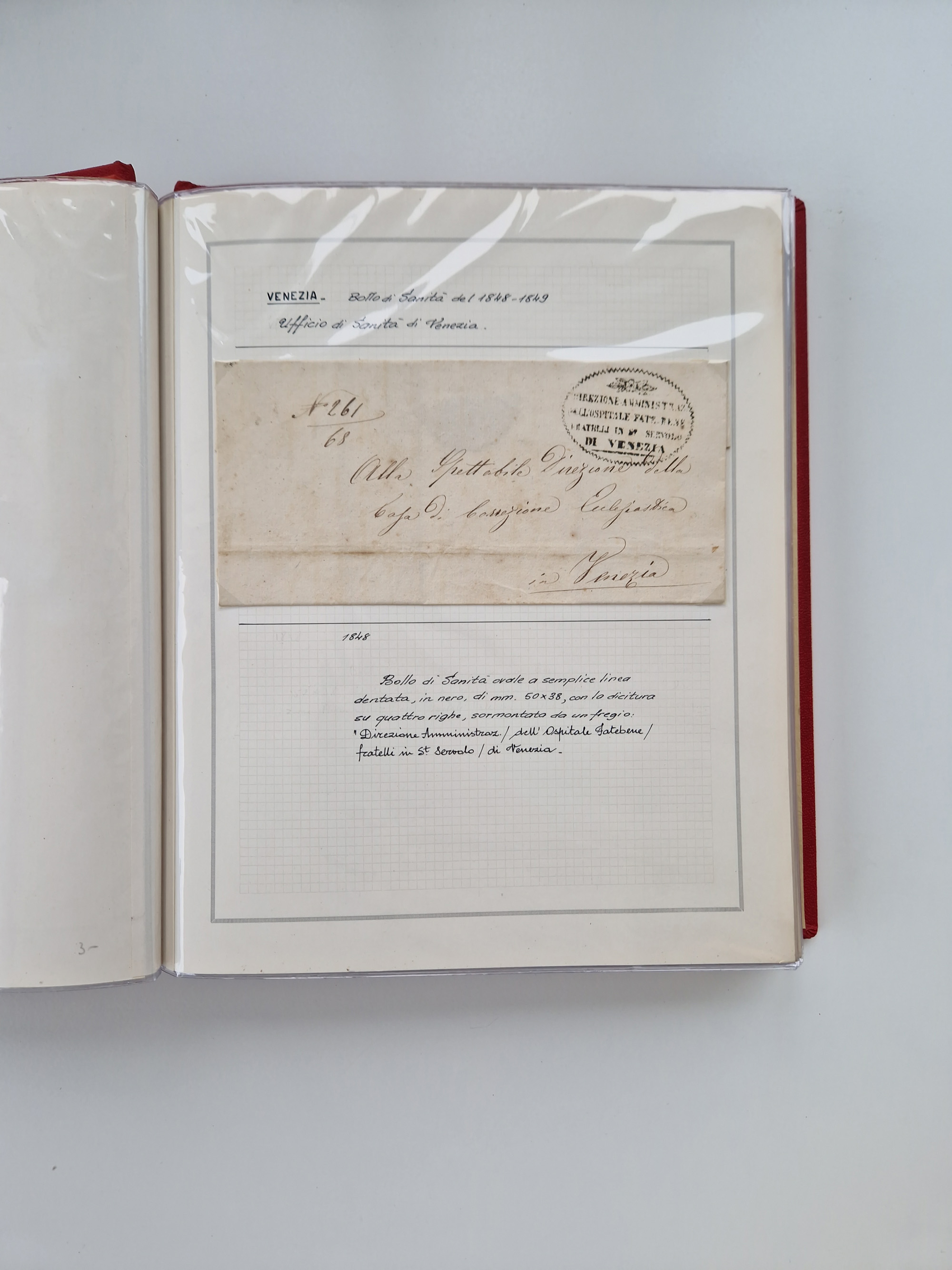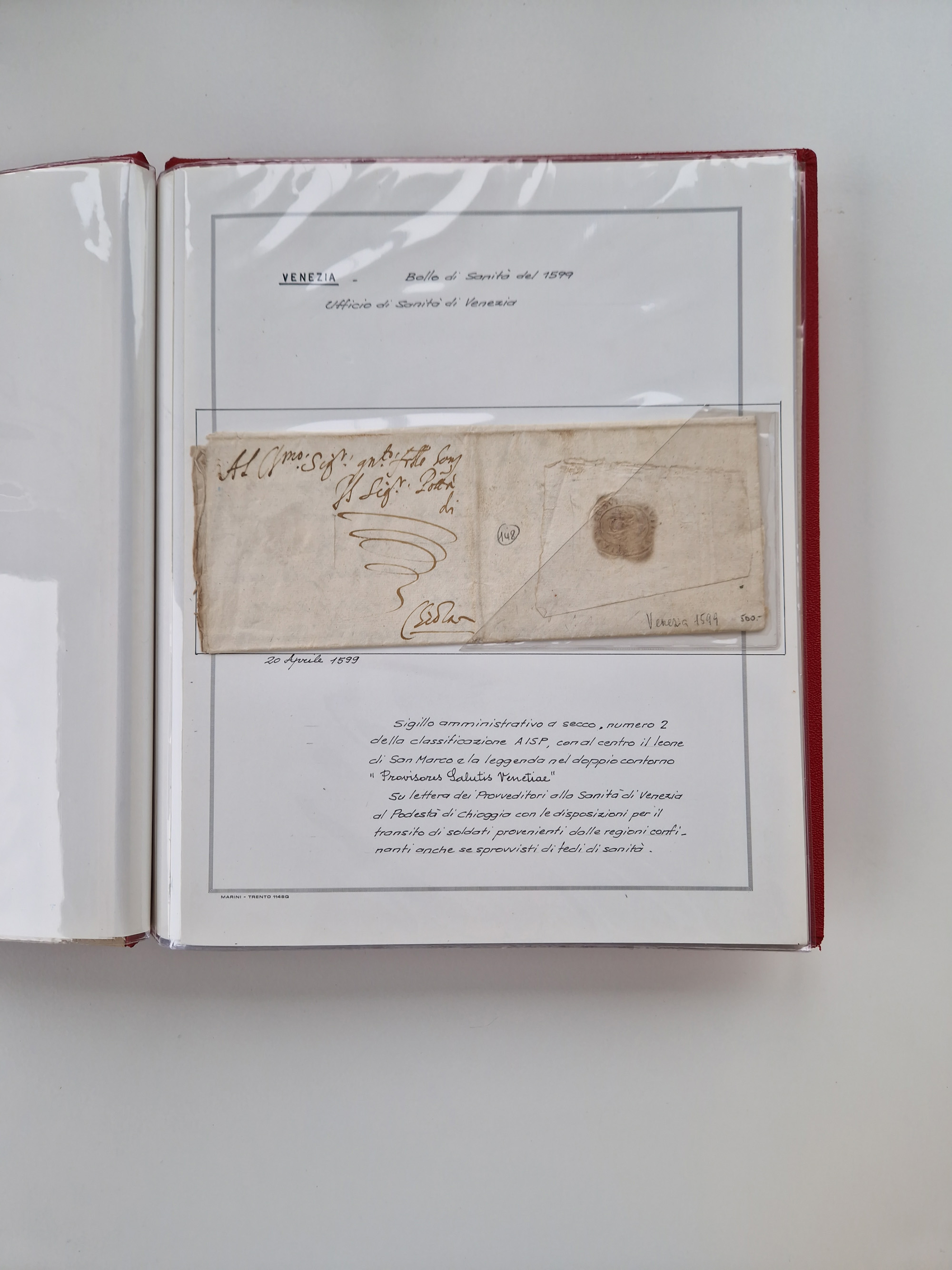 VENETIEN: 1549/1849, 40 Briefe und Dokumente, angefangen mit 4 frühen Briefen aus 1549 bis 1606, dabei u.a. ein Brief aus 1549 mit Anweisungen, die nach den Pestepidemien durchgeführt werden sollen, mit Trockensiegel Nr. 1 nach dem AISP-Katalog, (dieses nur von ca. 1549-1601 in Verwendung), sowie Brief aus 1606 von Alexandria nach Venedig, sauber beschrieben in drei Alben